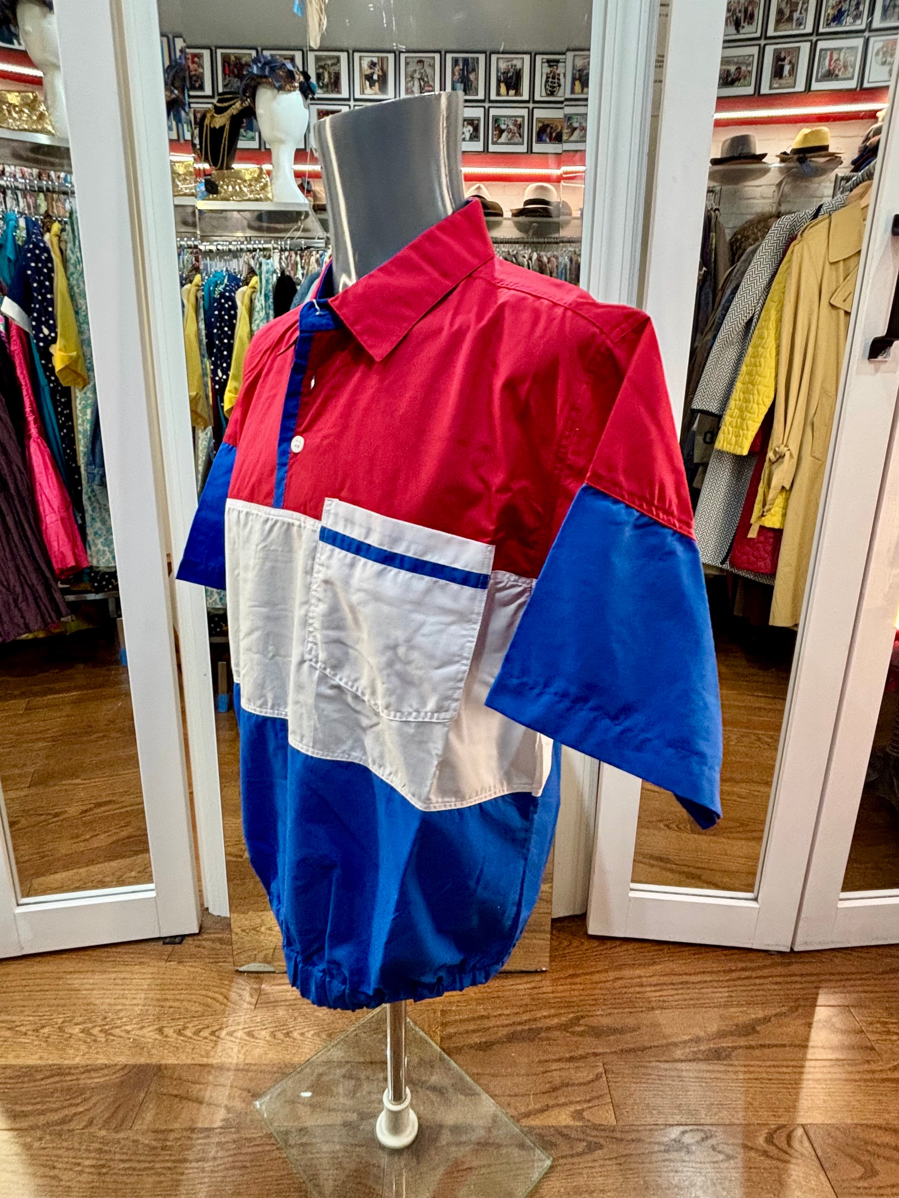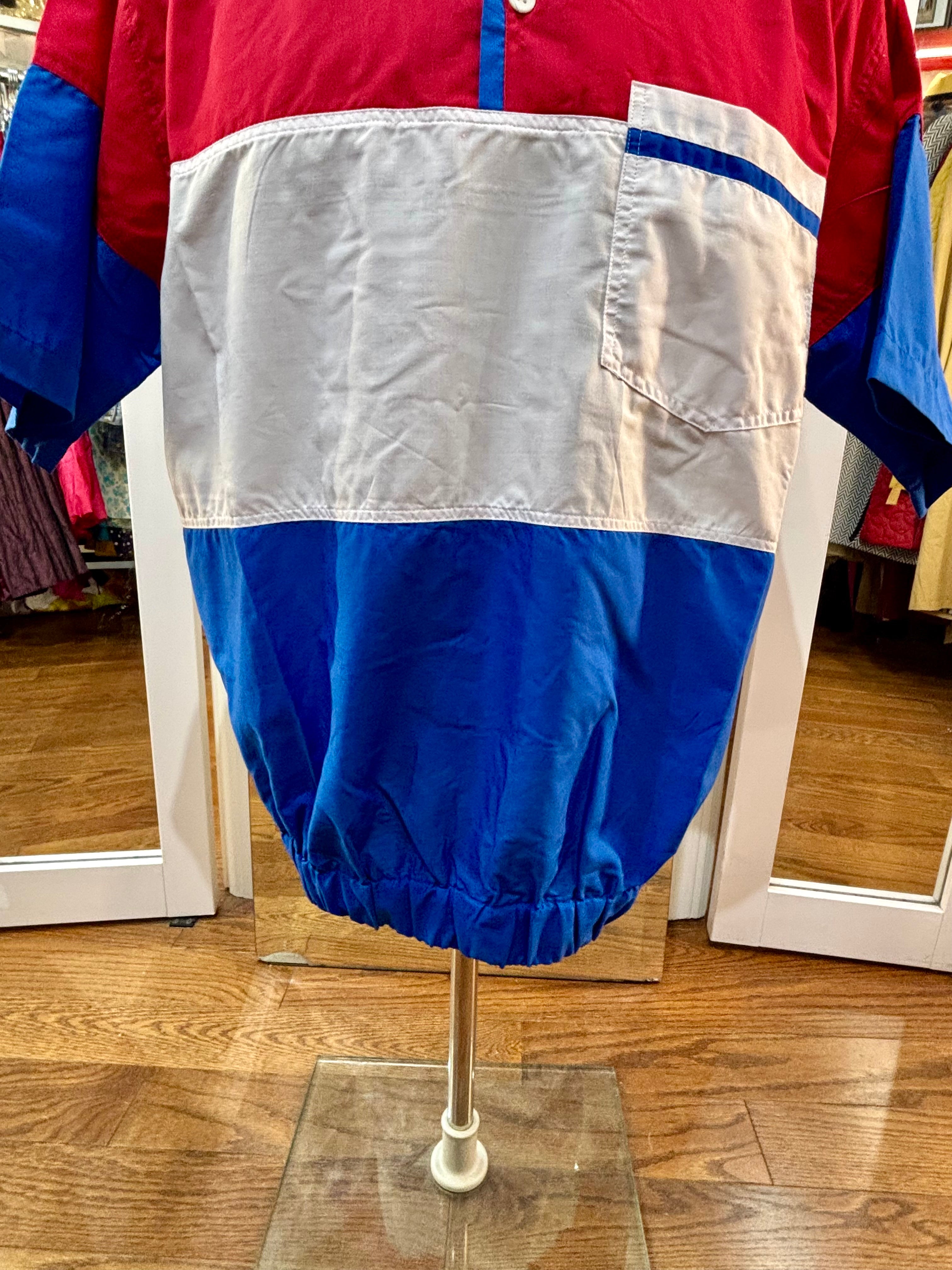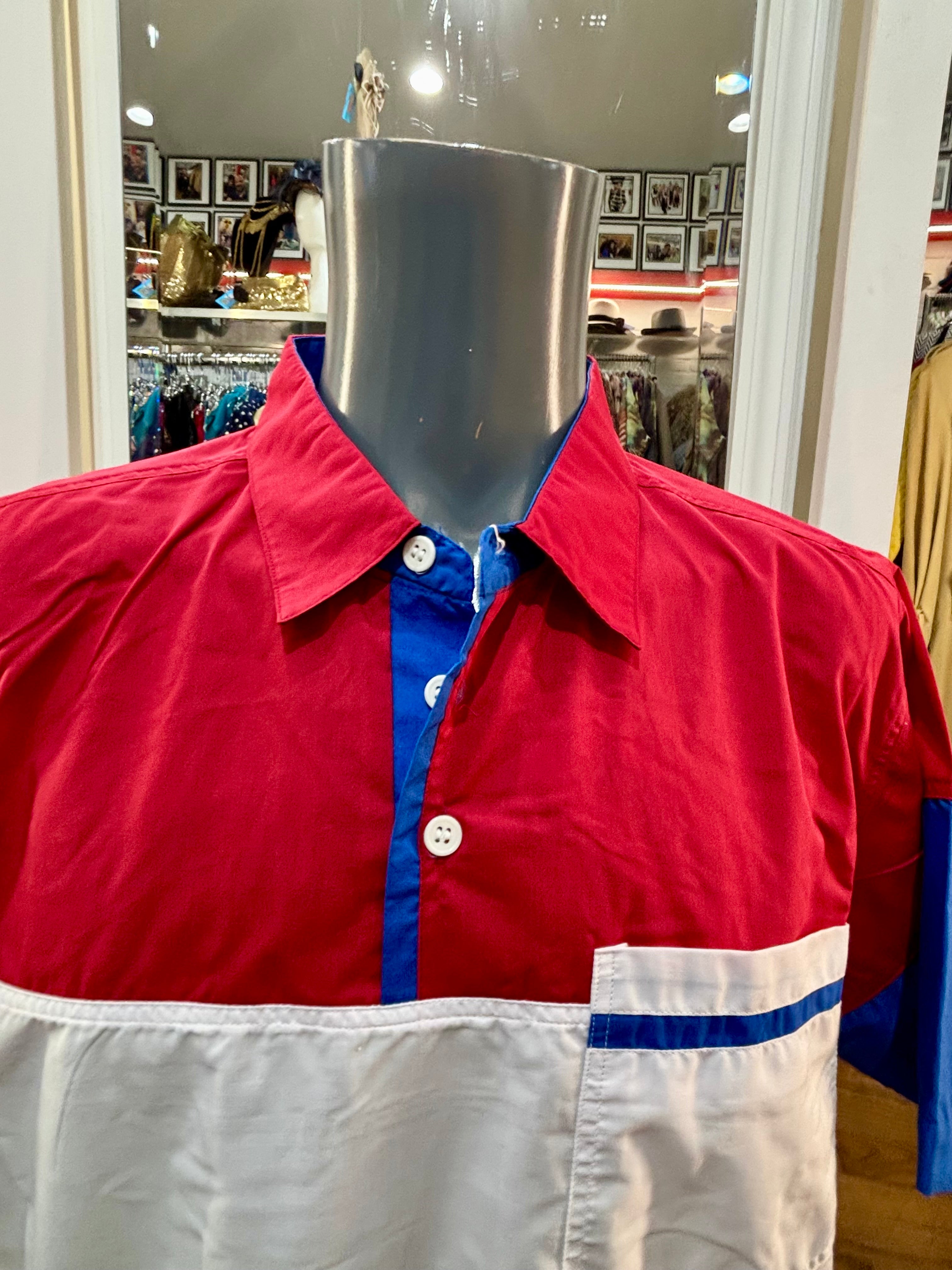 80’s White Multicolor Banded Color Block Style Shirt By Award - Deadstock