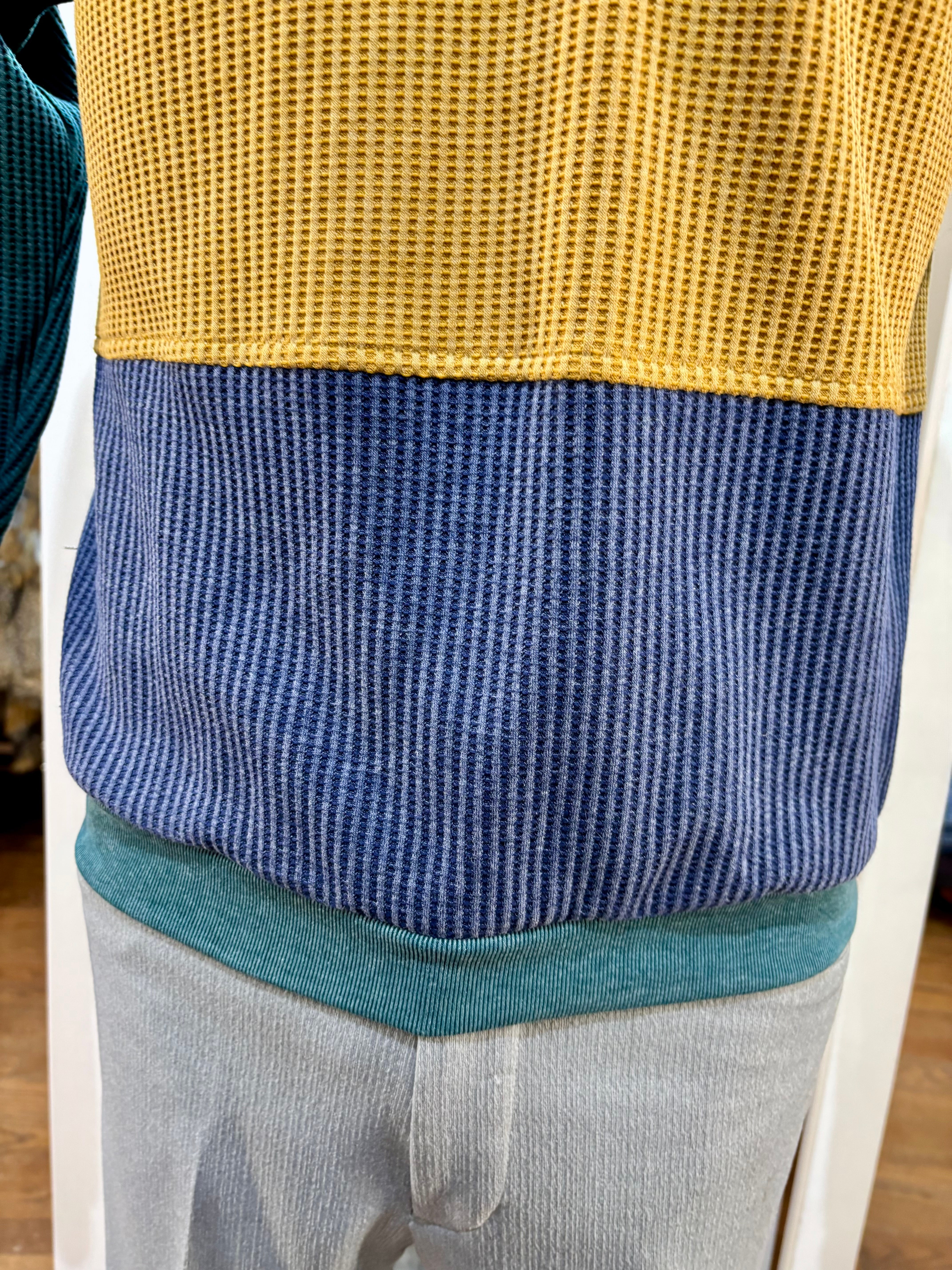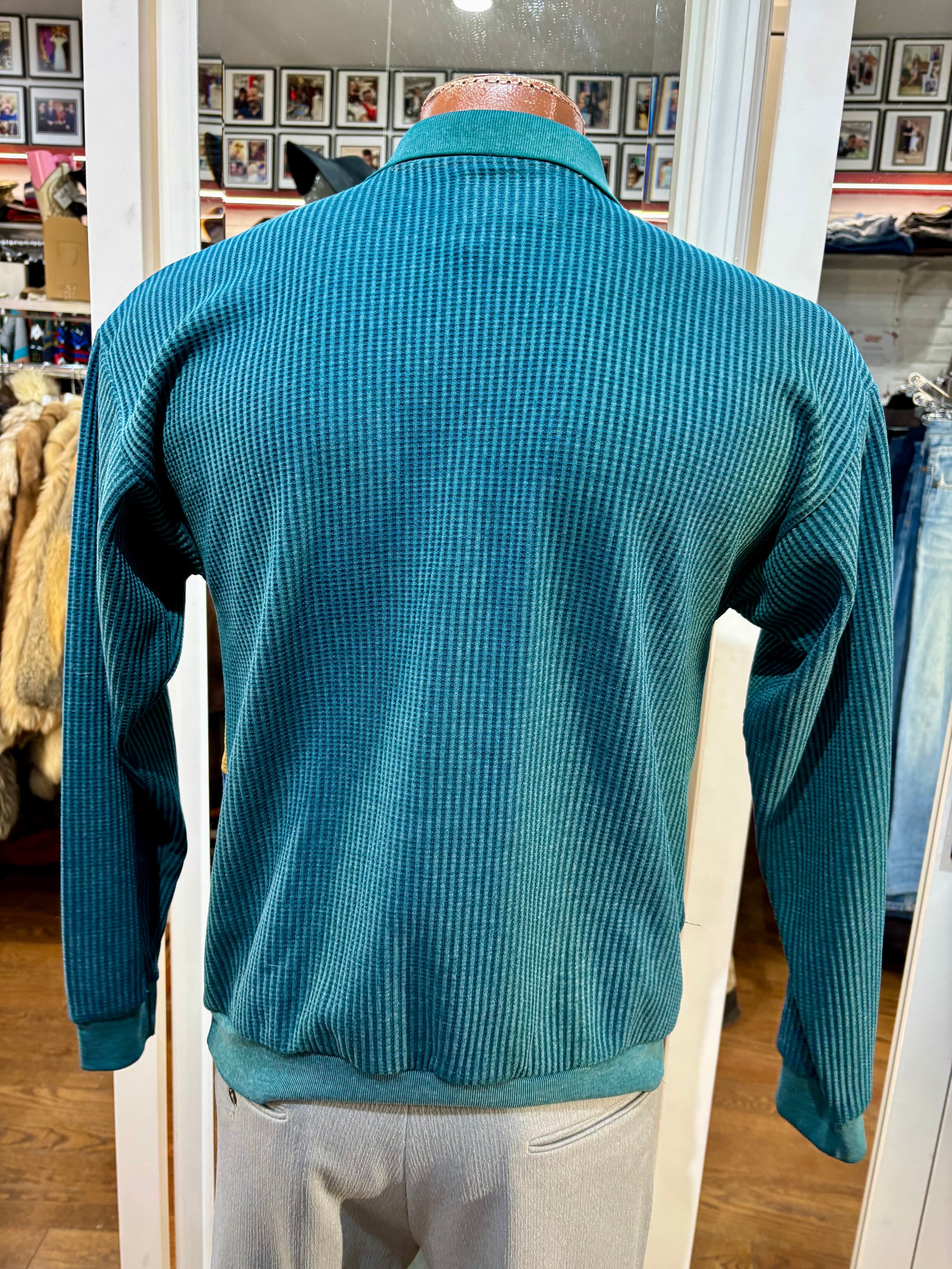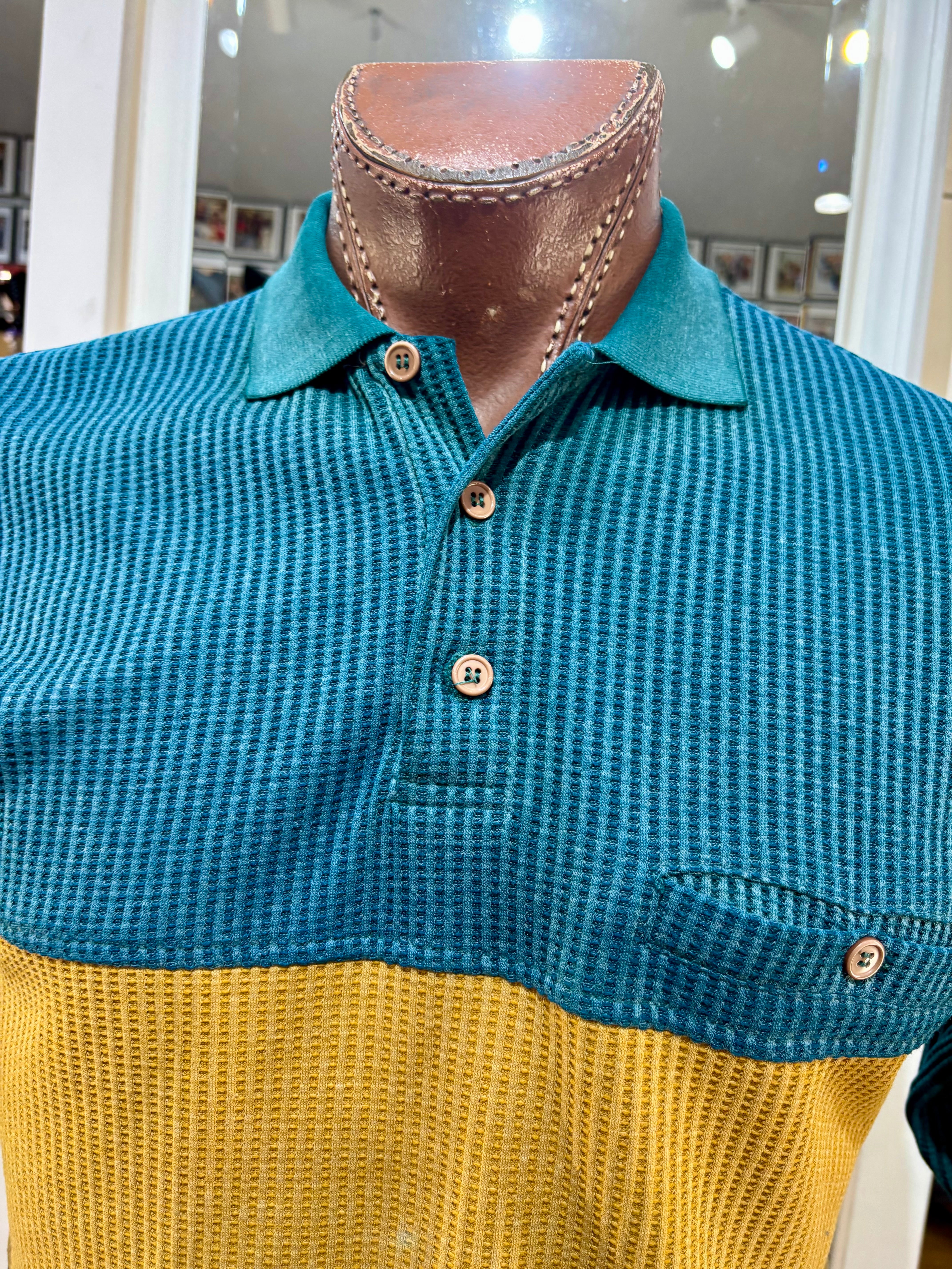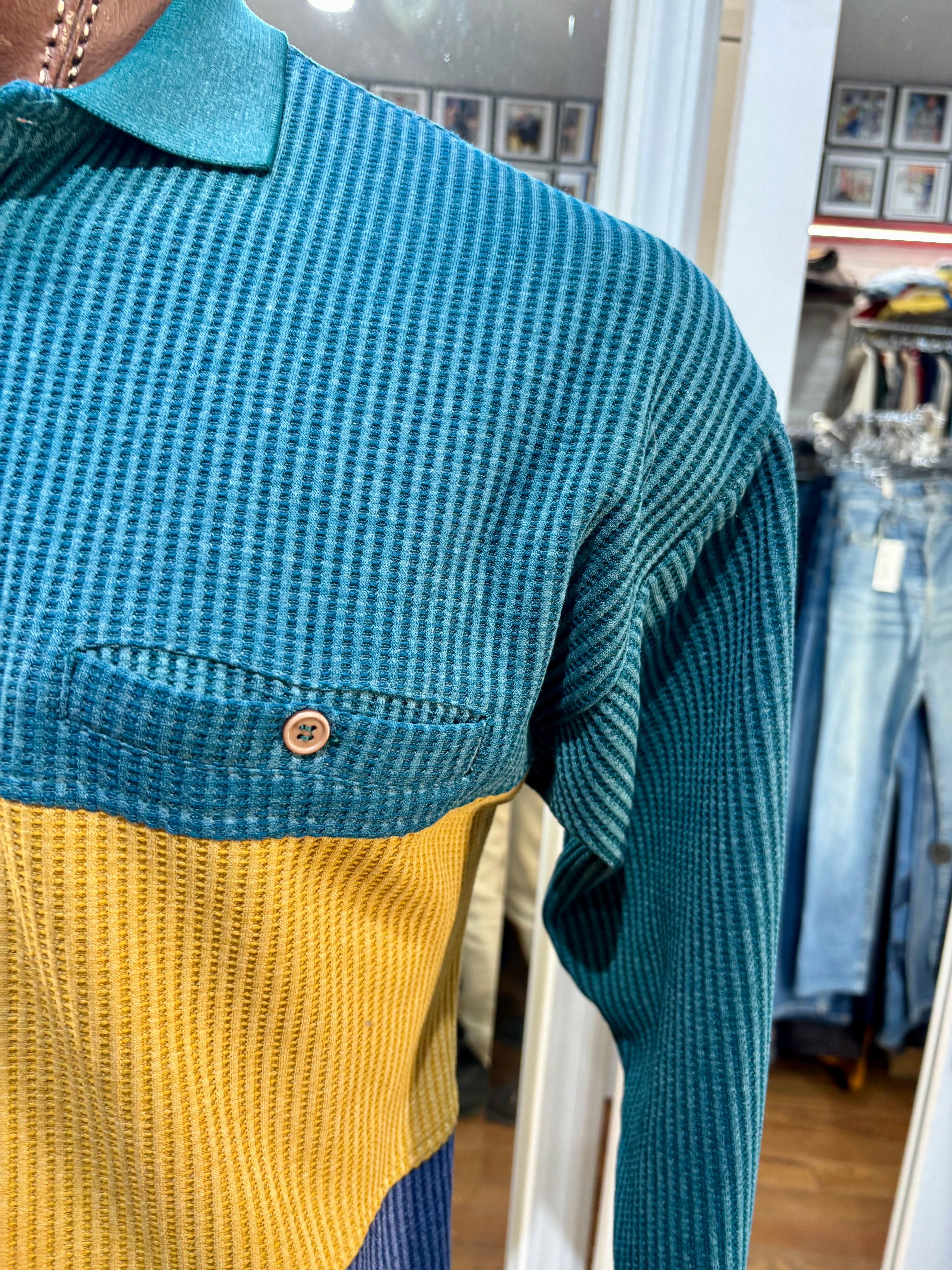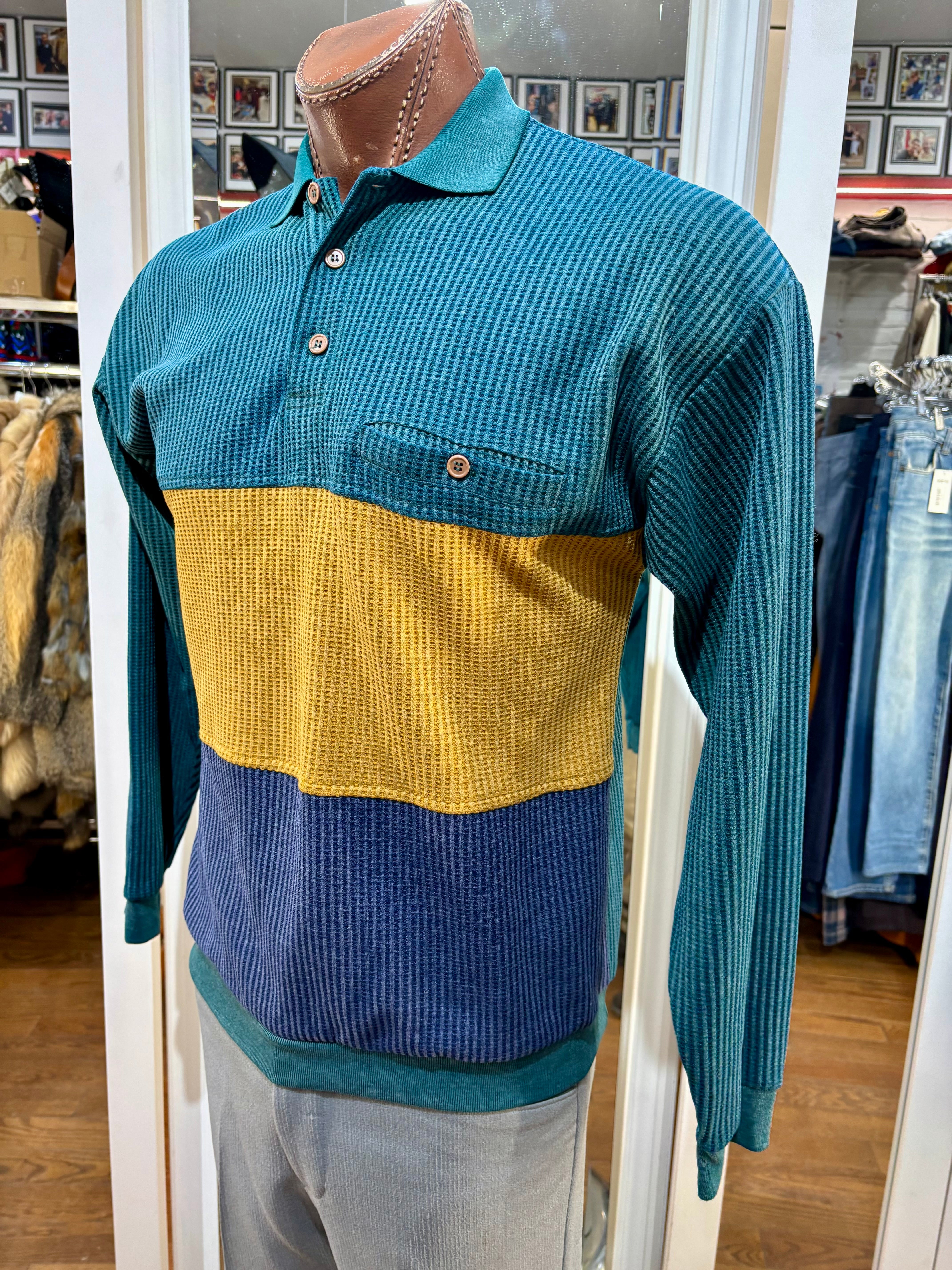 90’s Green Color Block Collared Pull By Hukapoo