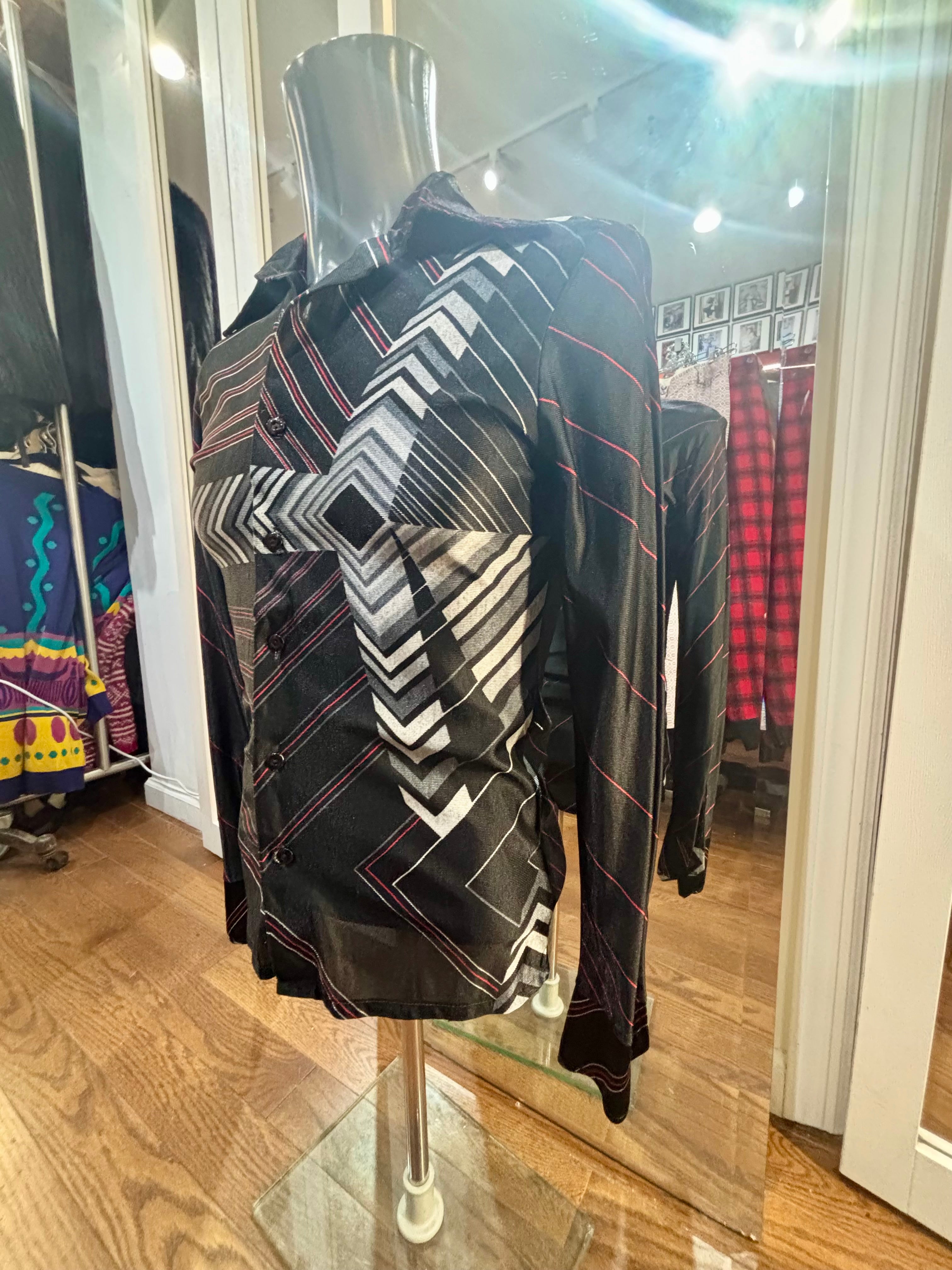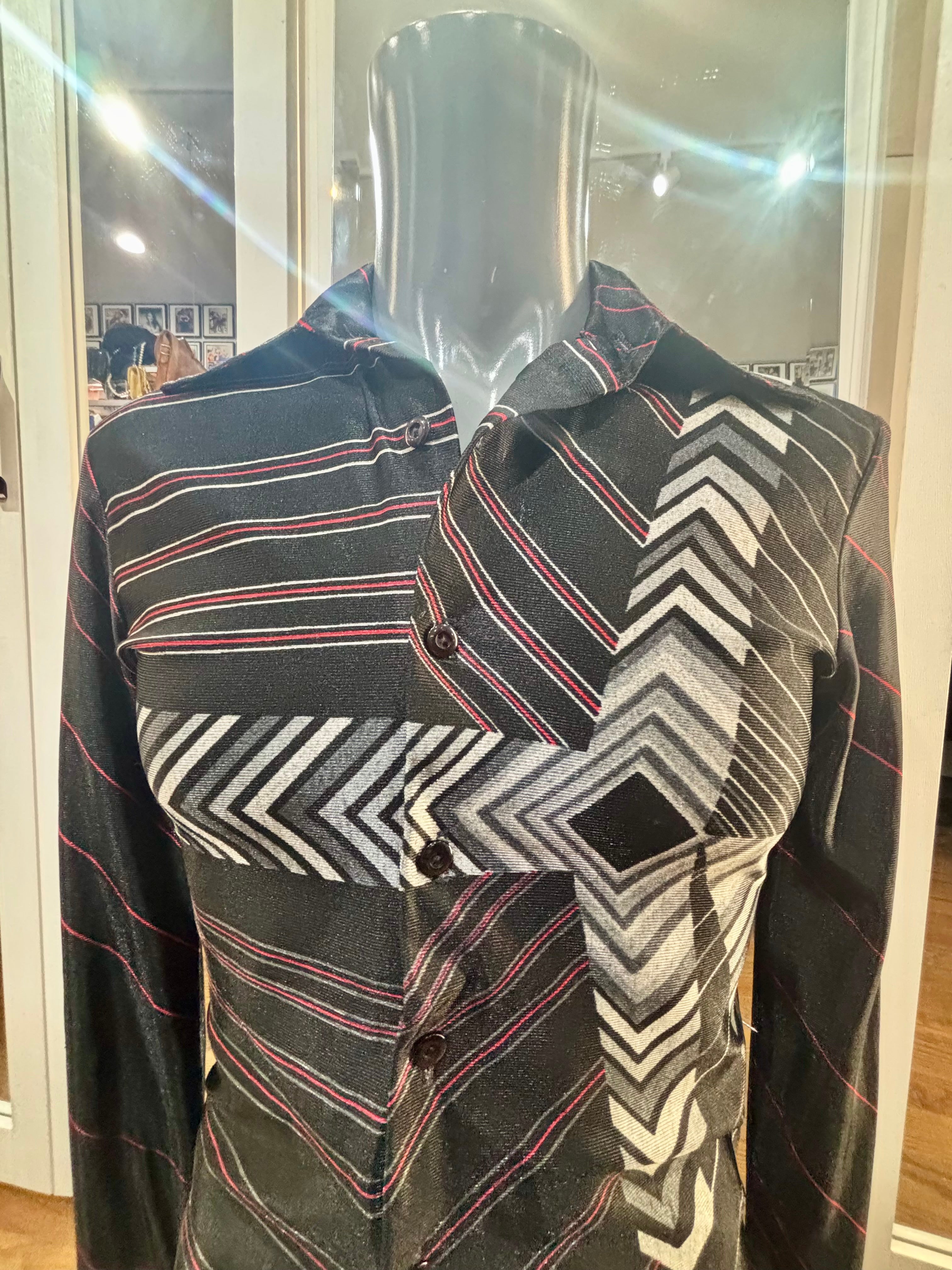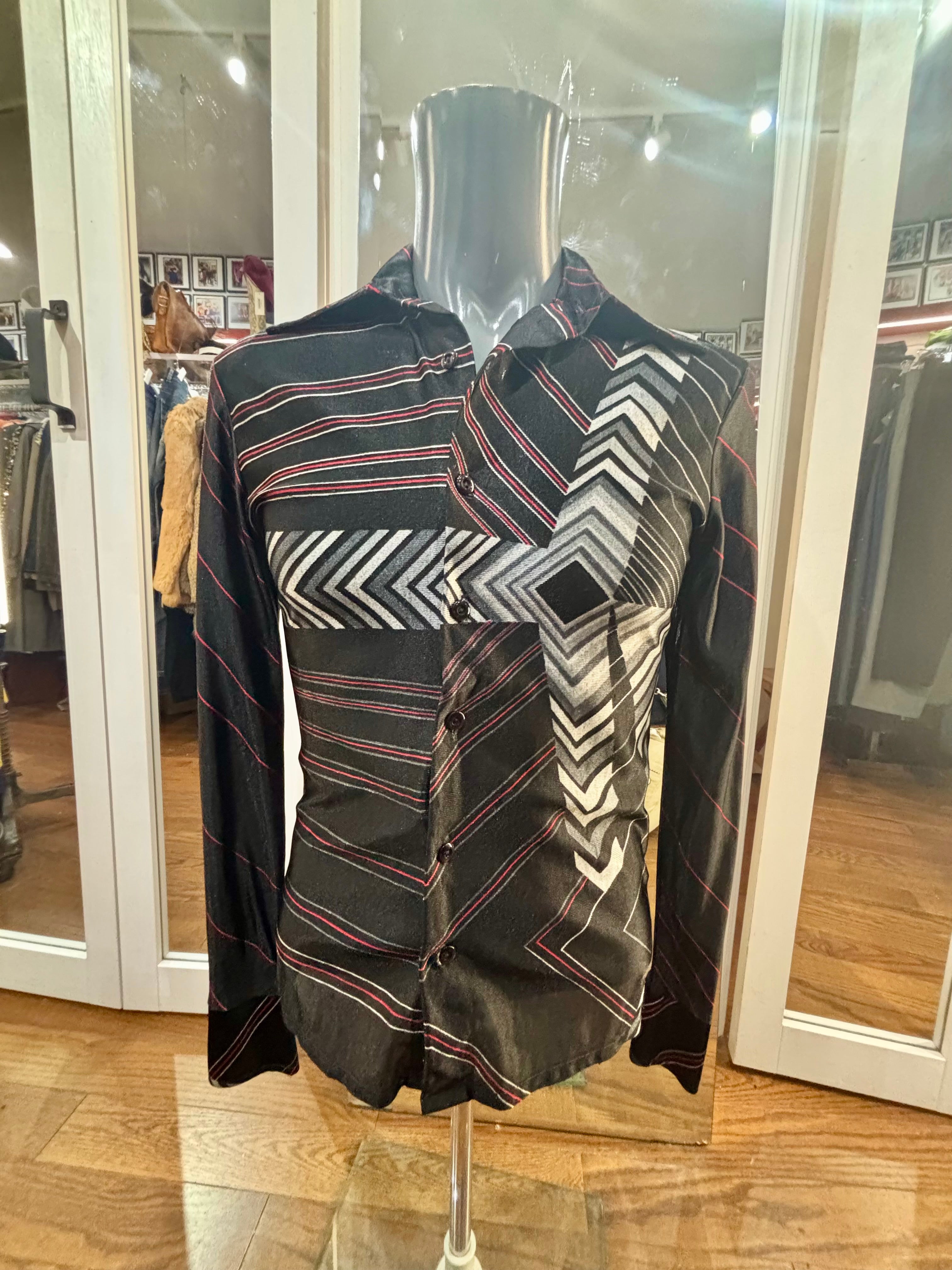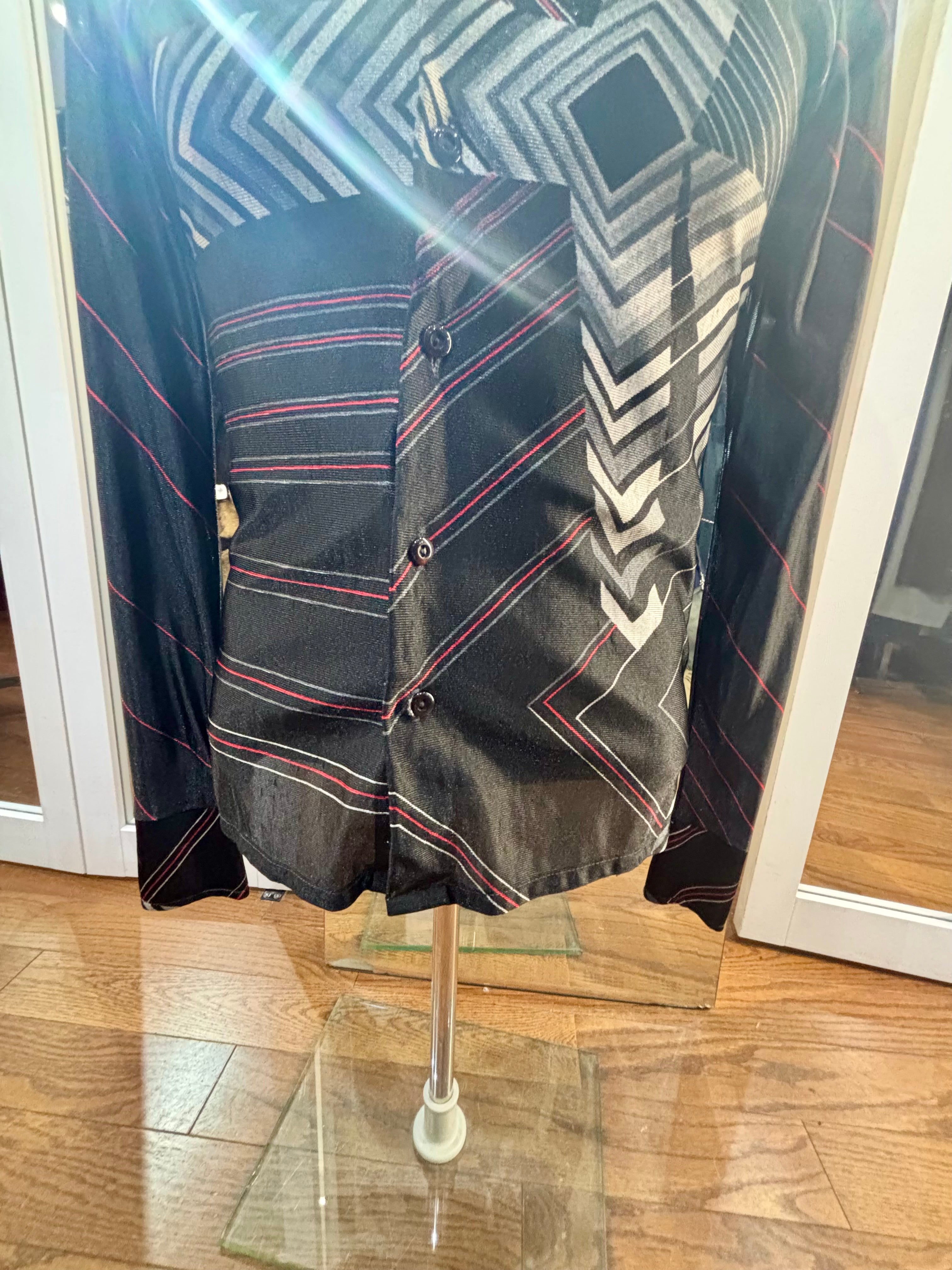 70’s Black Multicolor Abstract Disco Print Shirt By Saturday Night Fever