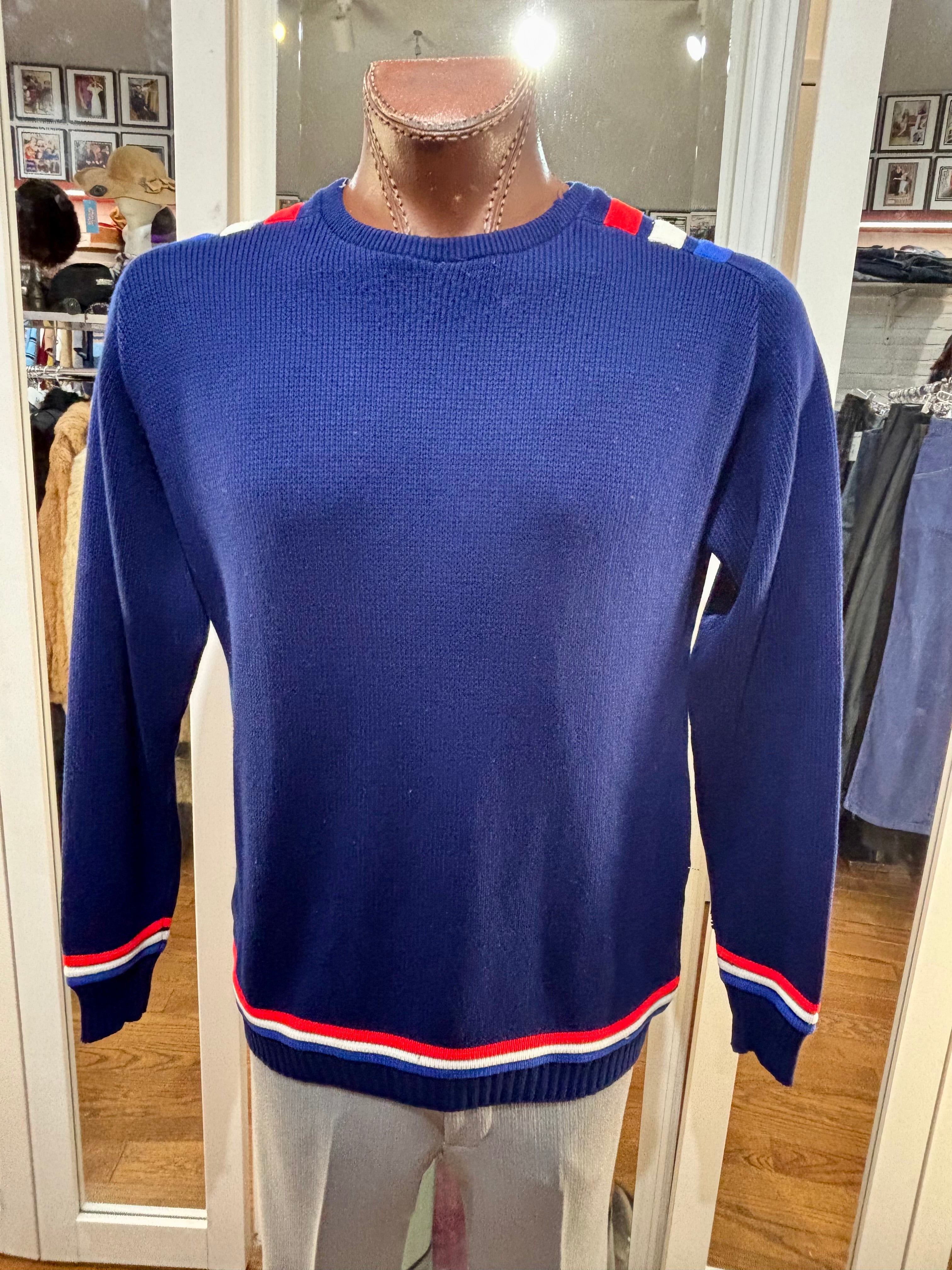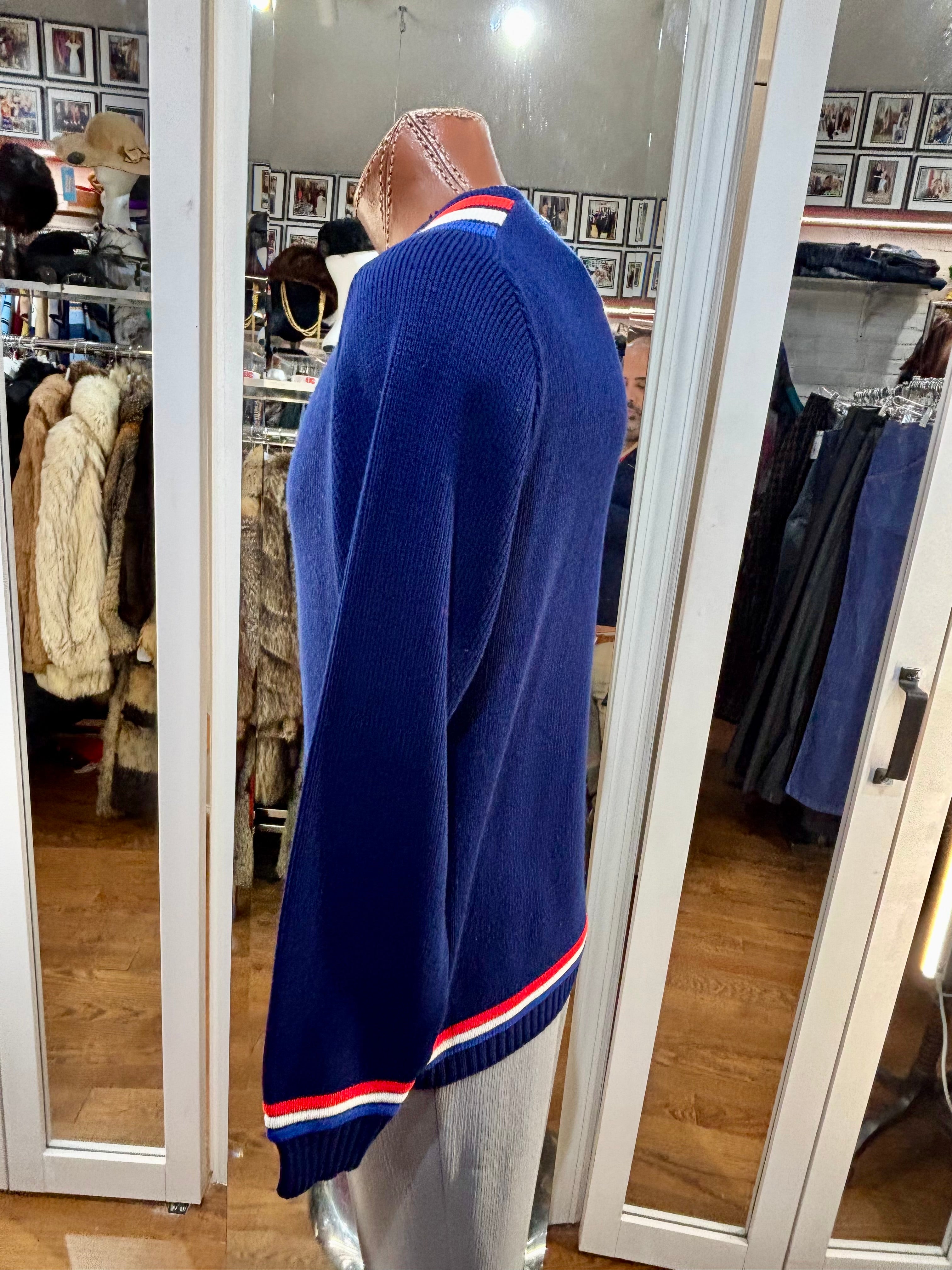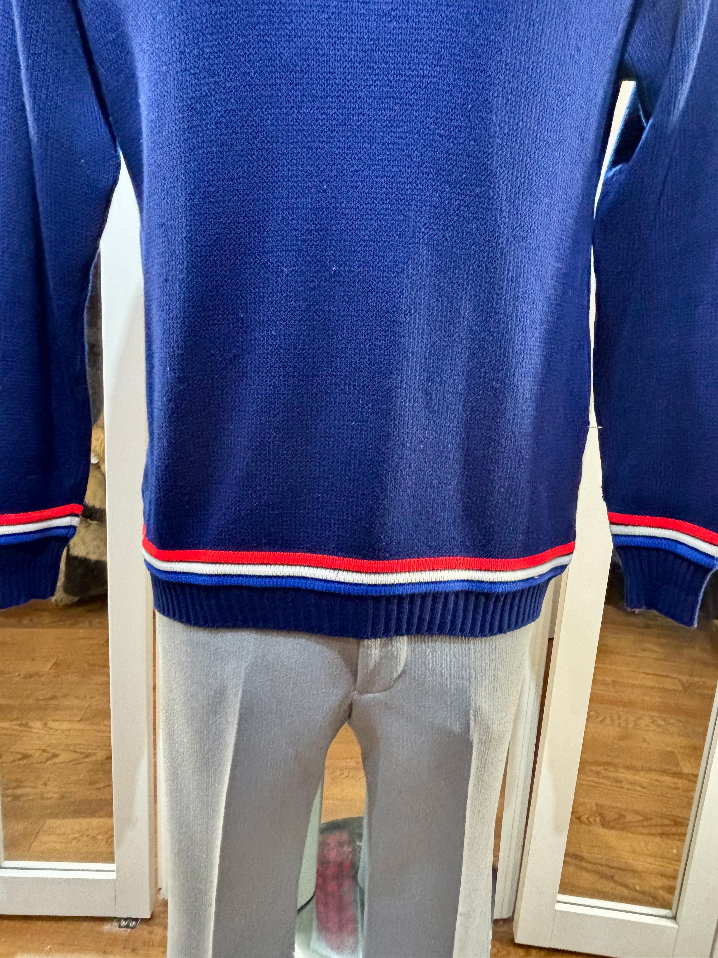70’s Navy Blue With Nautical Trim Ski Sweater By Jersild
