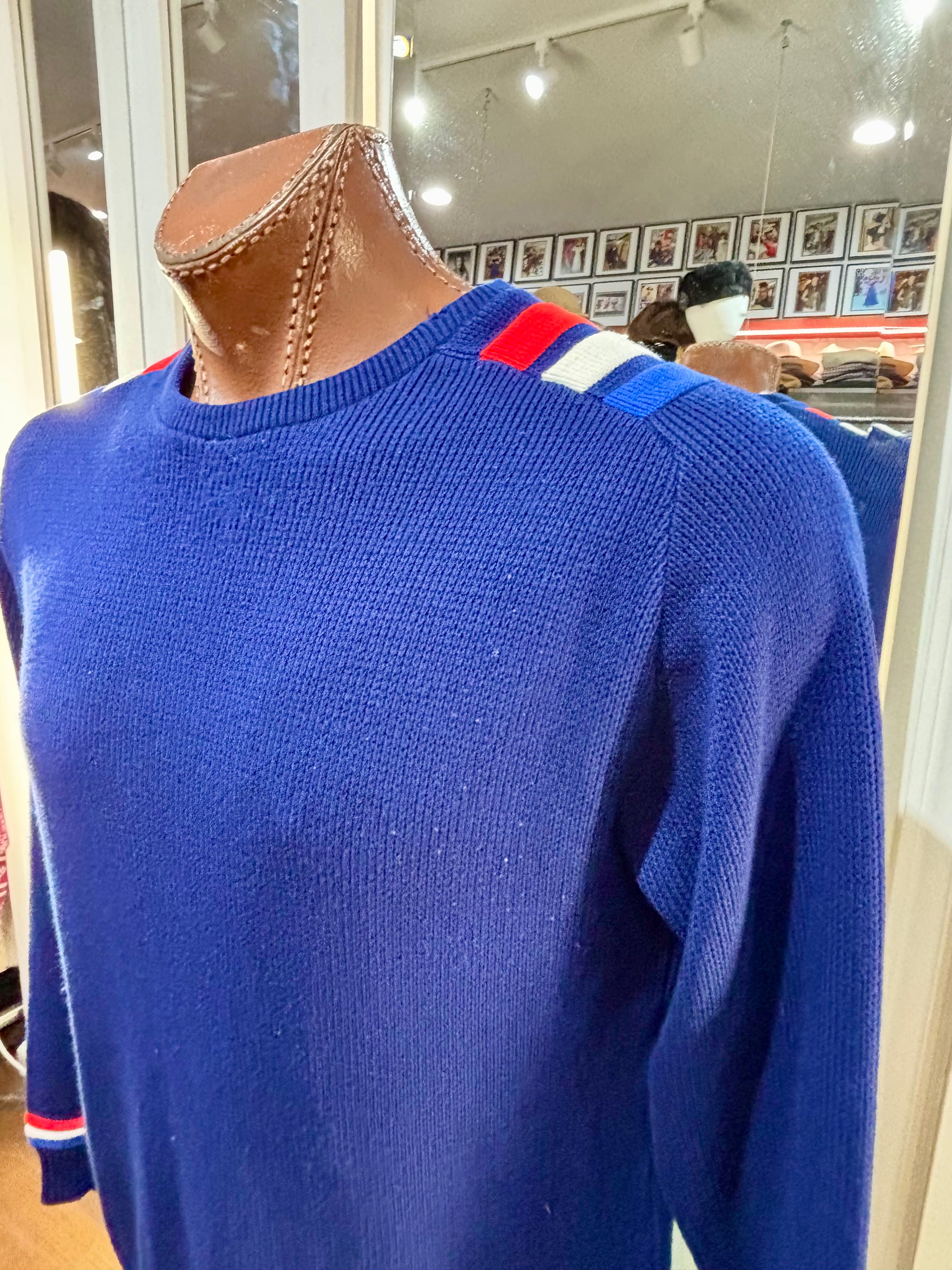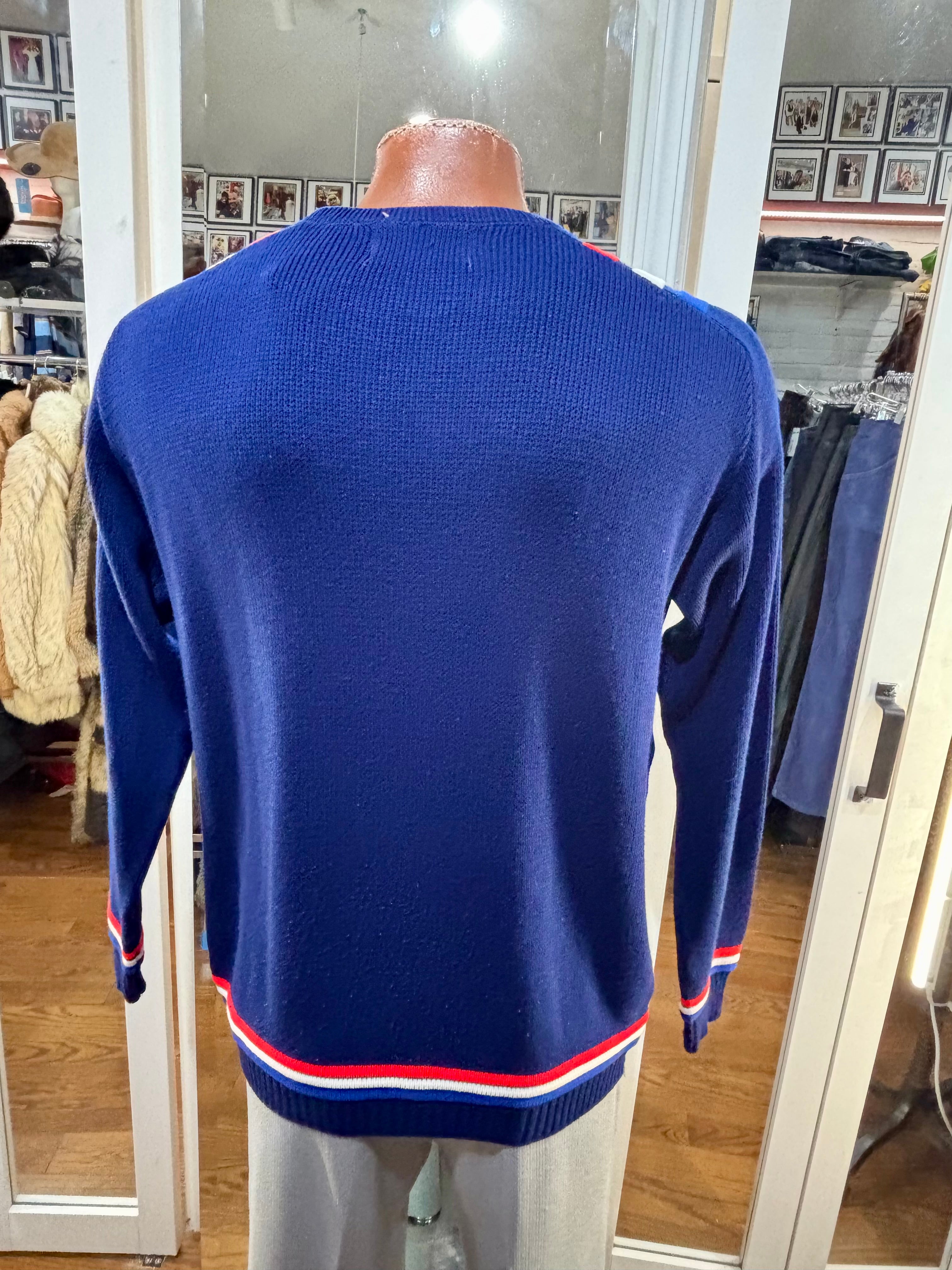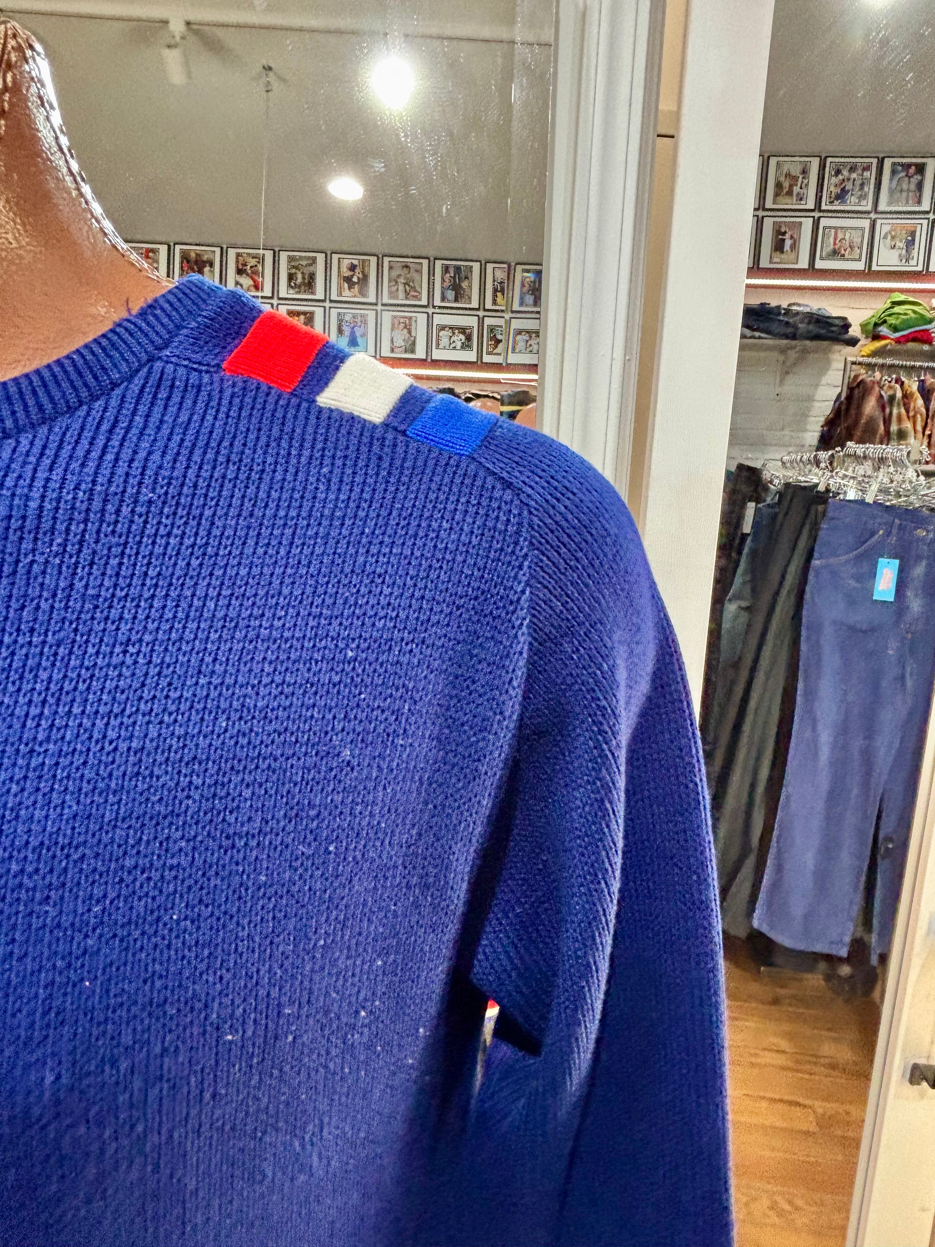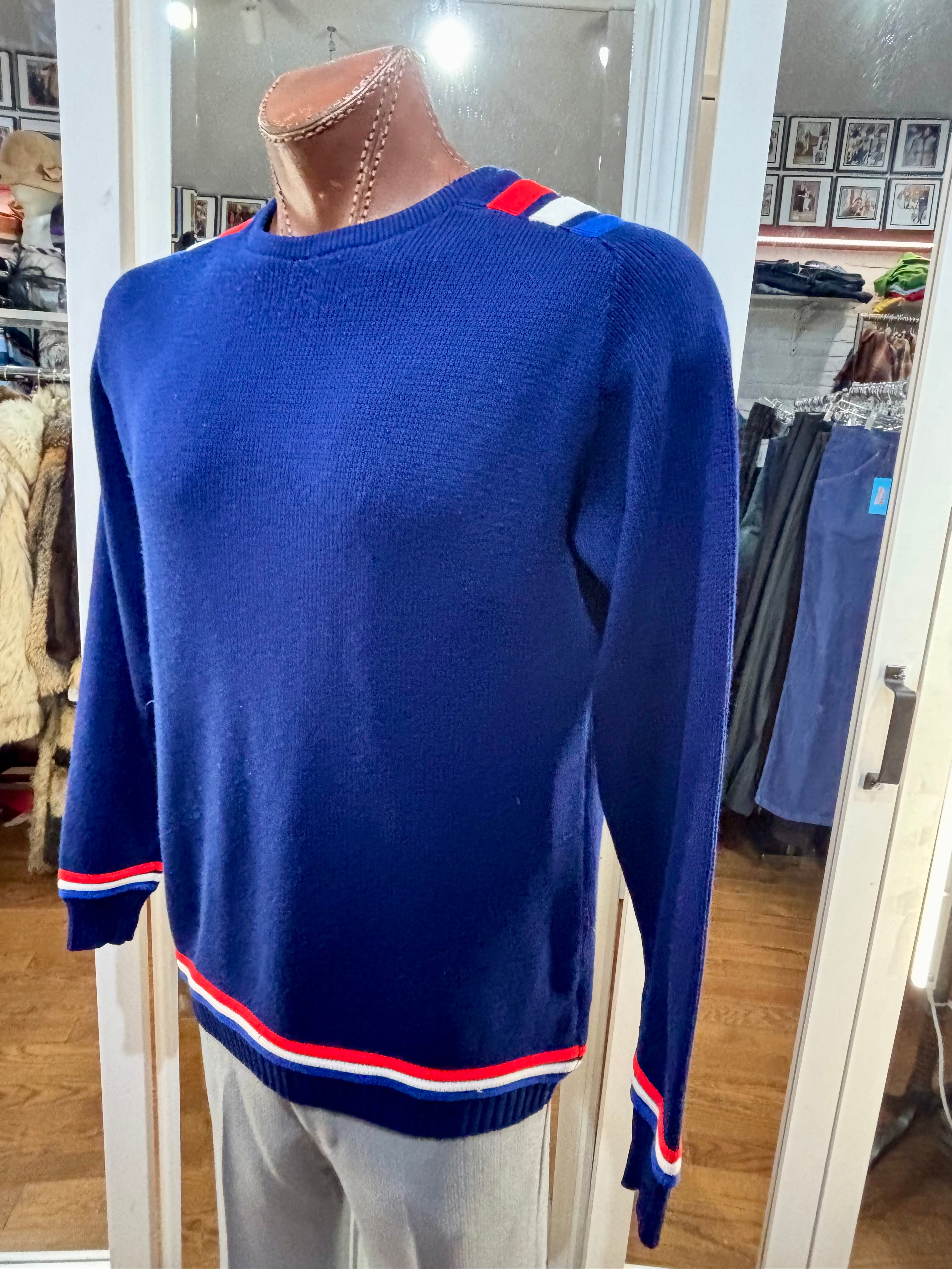 70’s Navy Blue With Nautical Trim Ski Sweater By Jersild