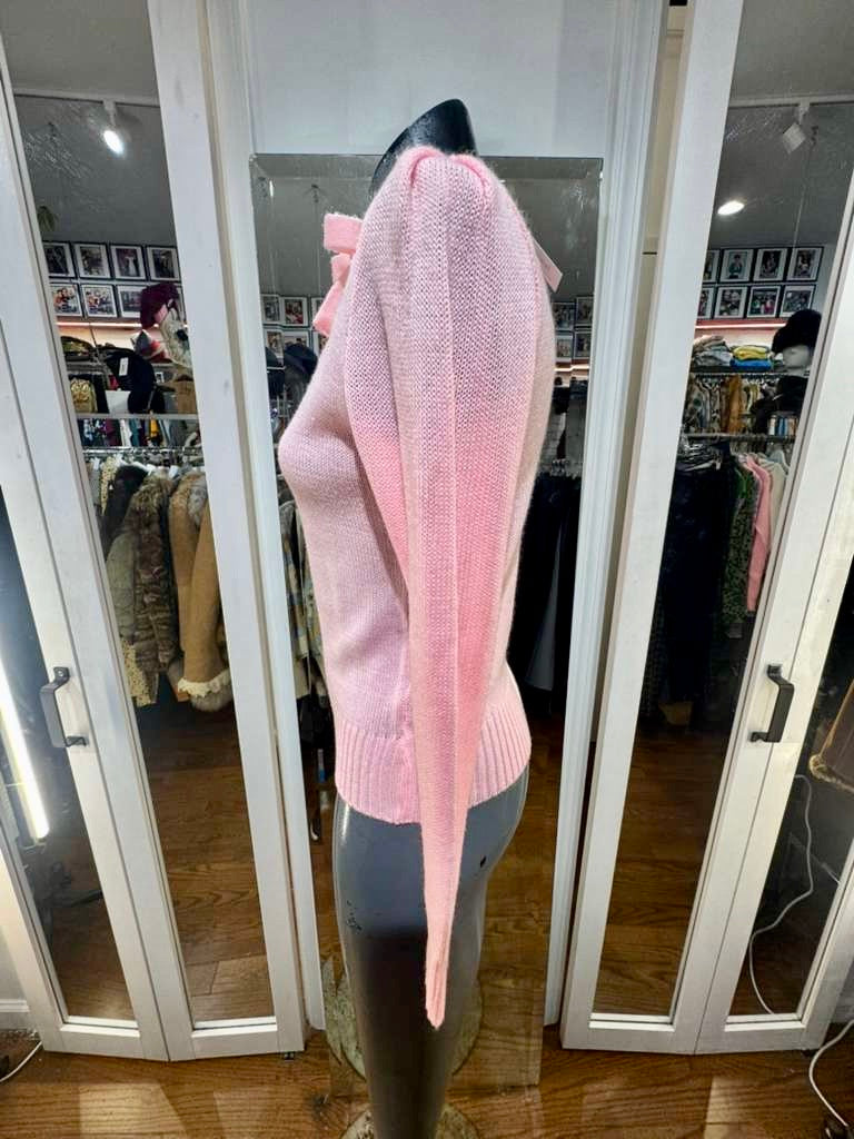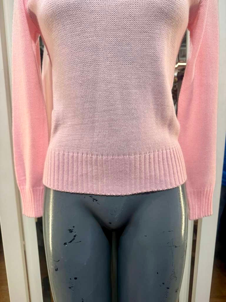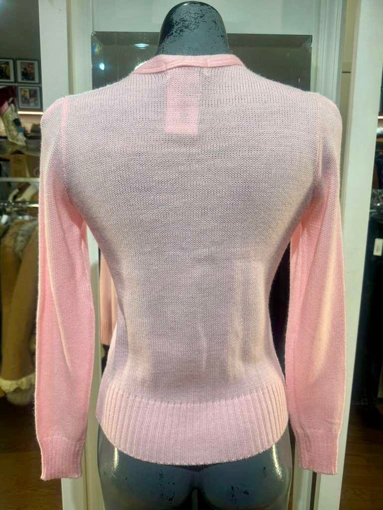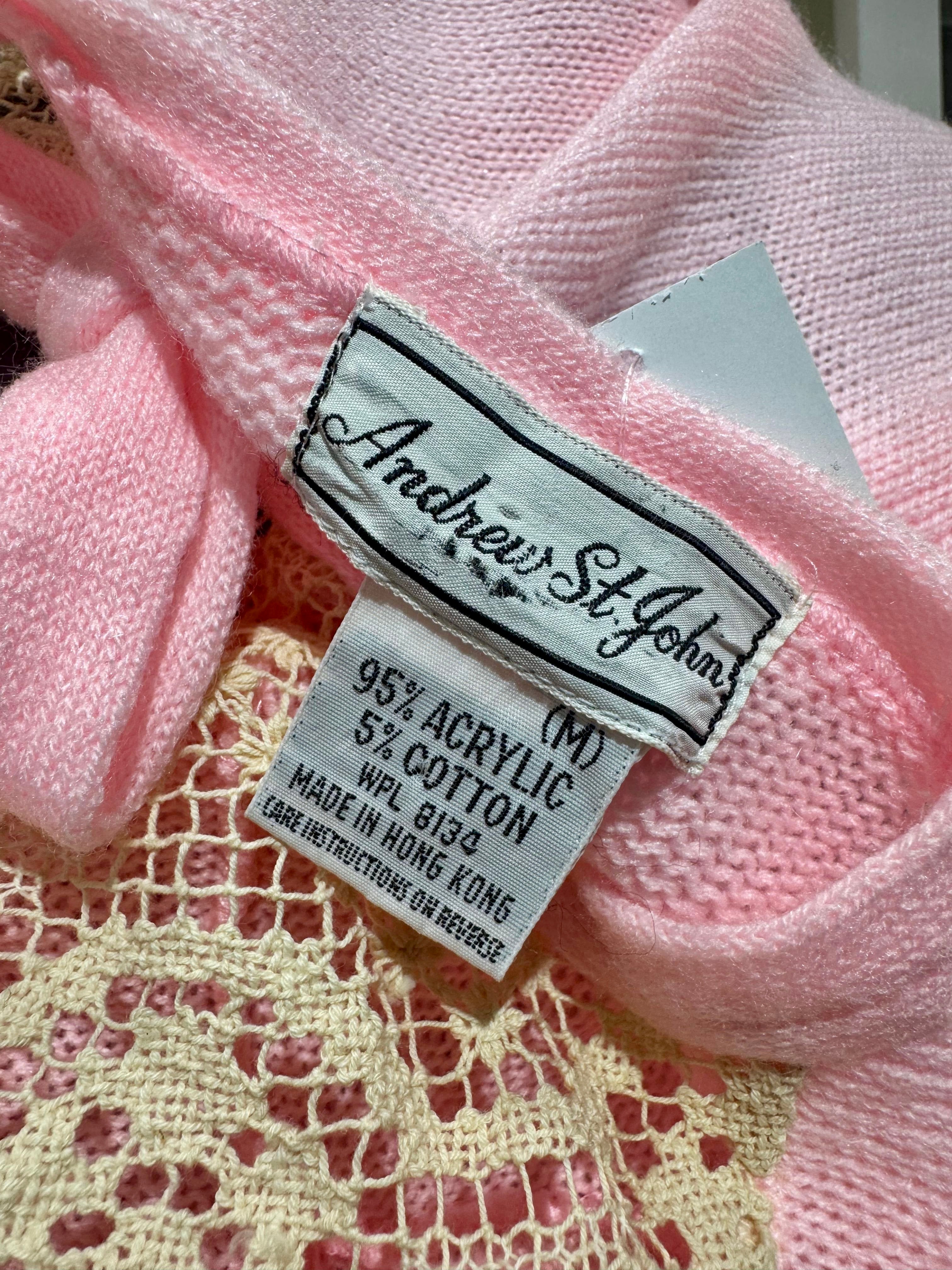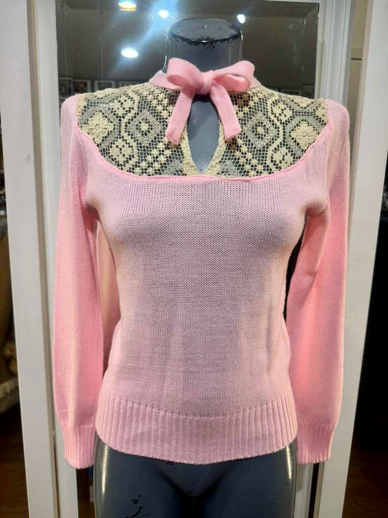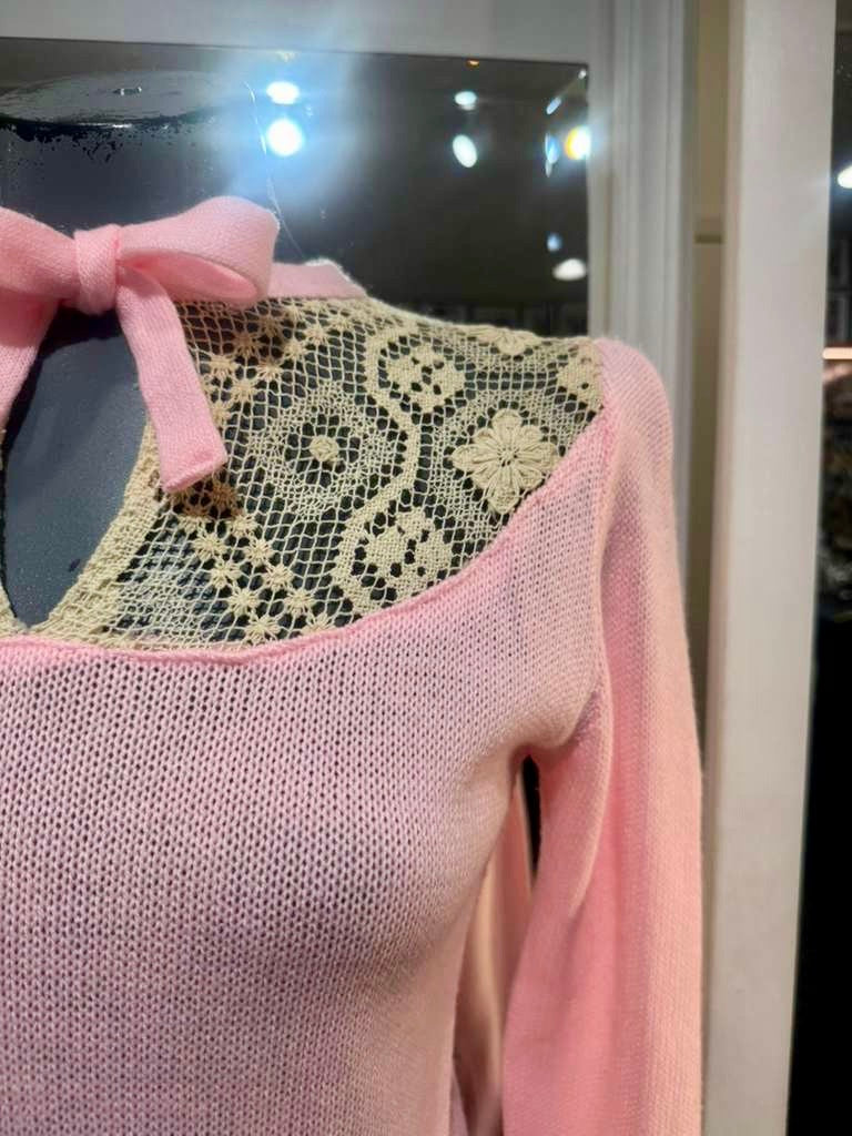 70’s Pale Pink And Beige Lace Details long Sleeve Pull Sweater By Andrew St John