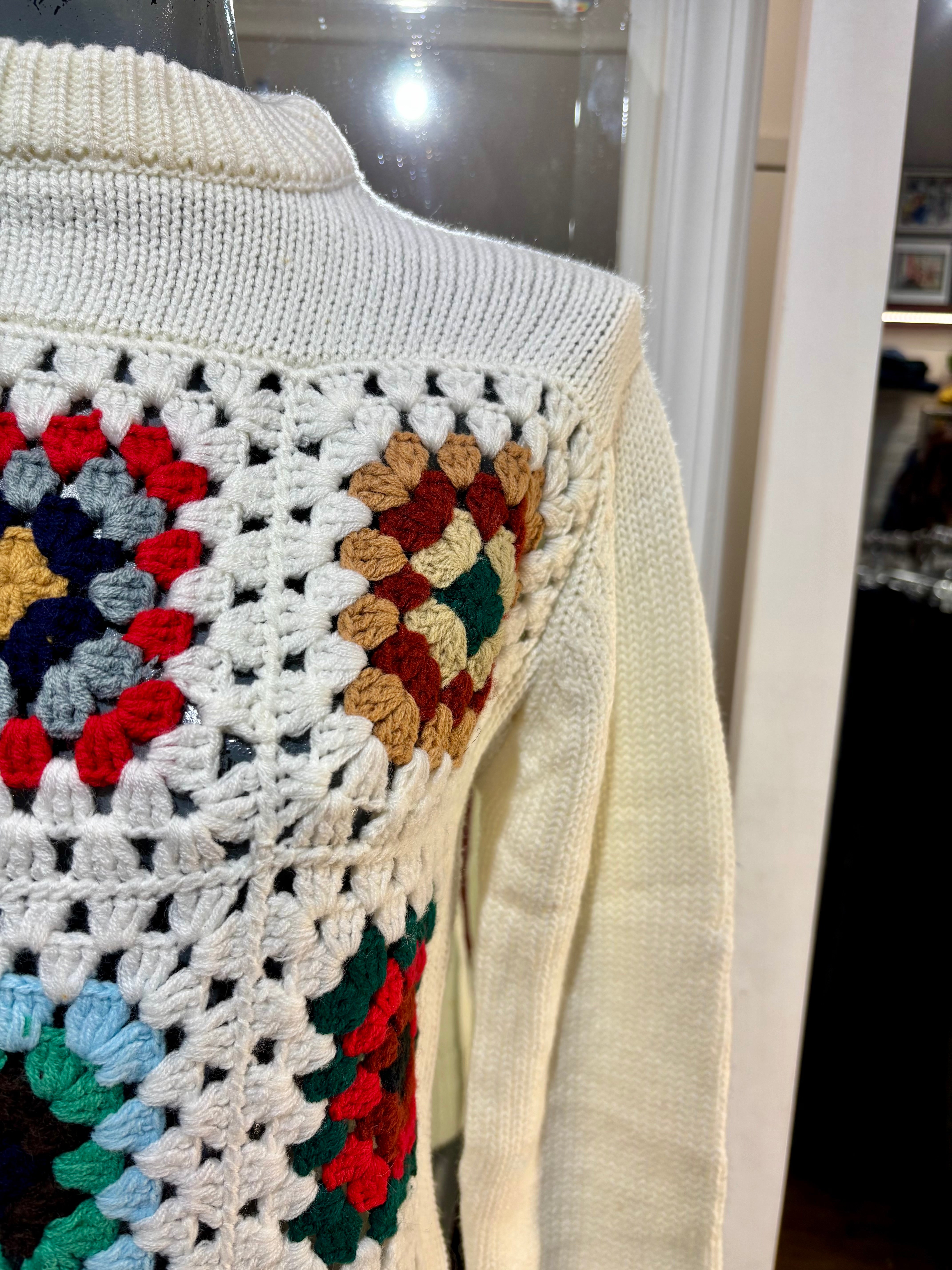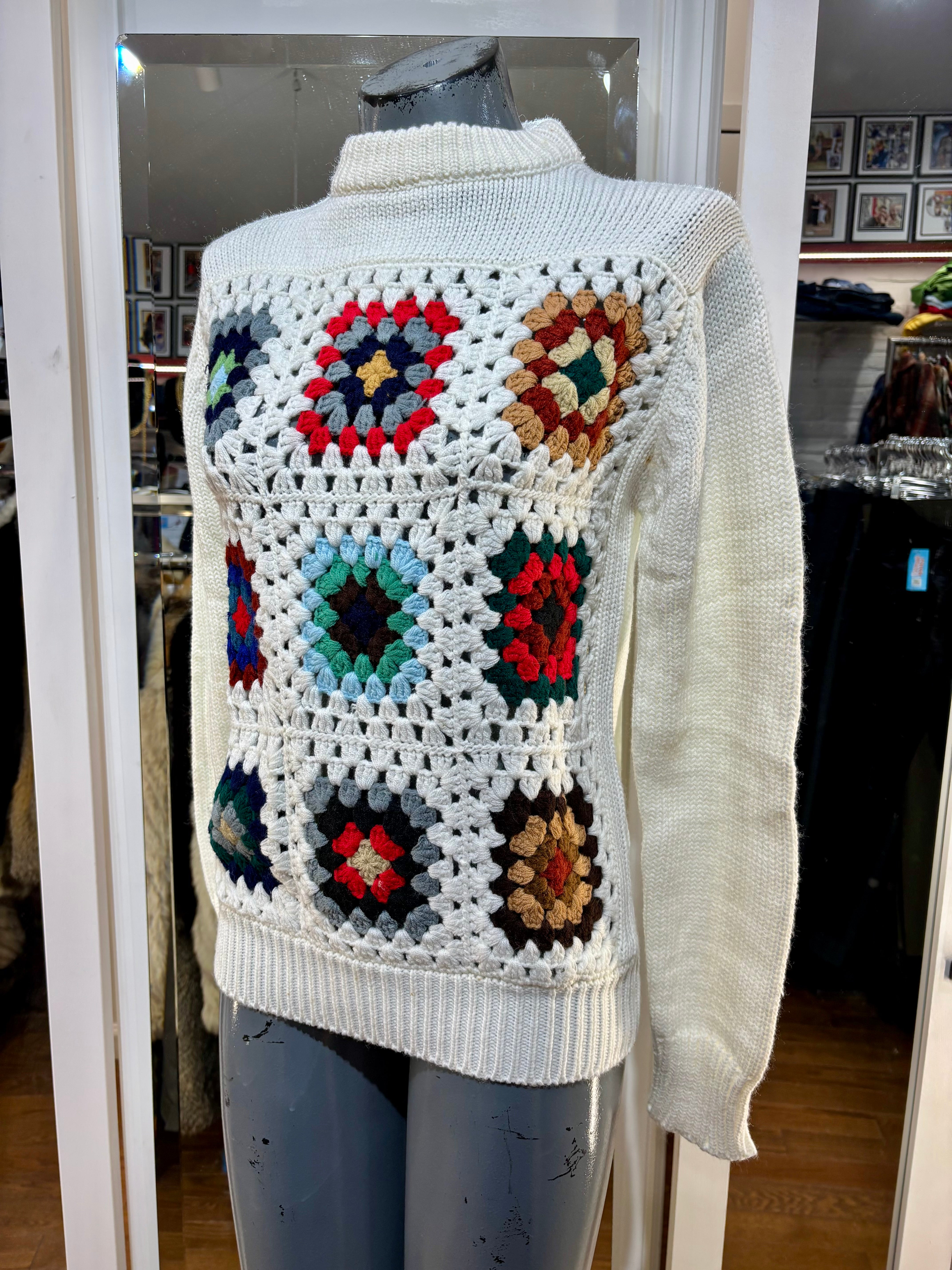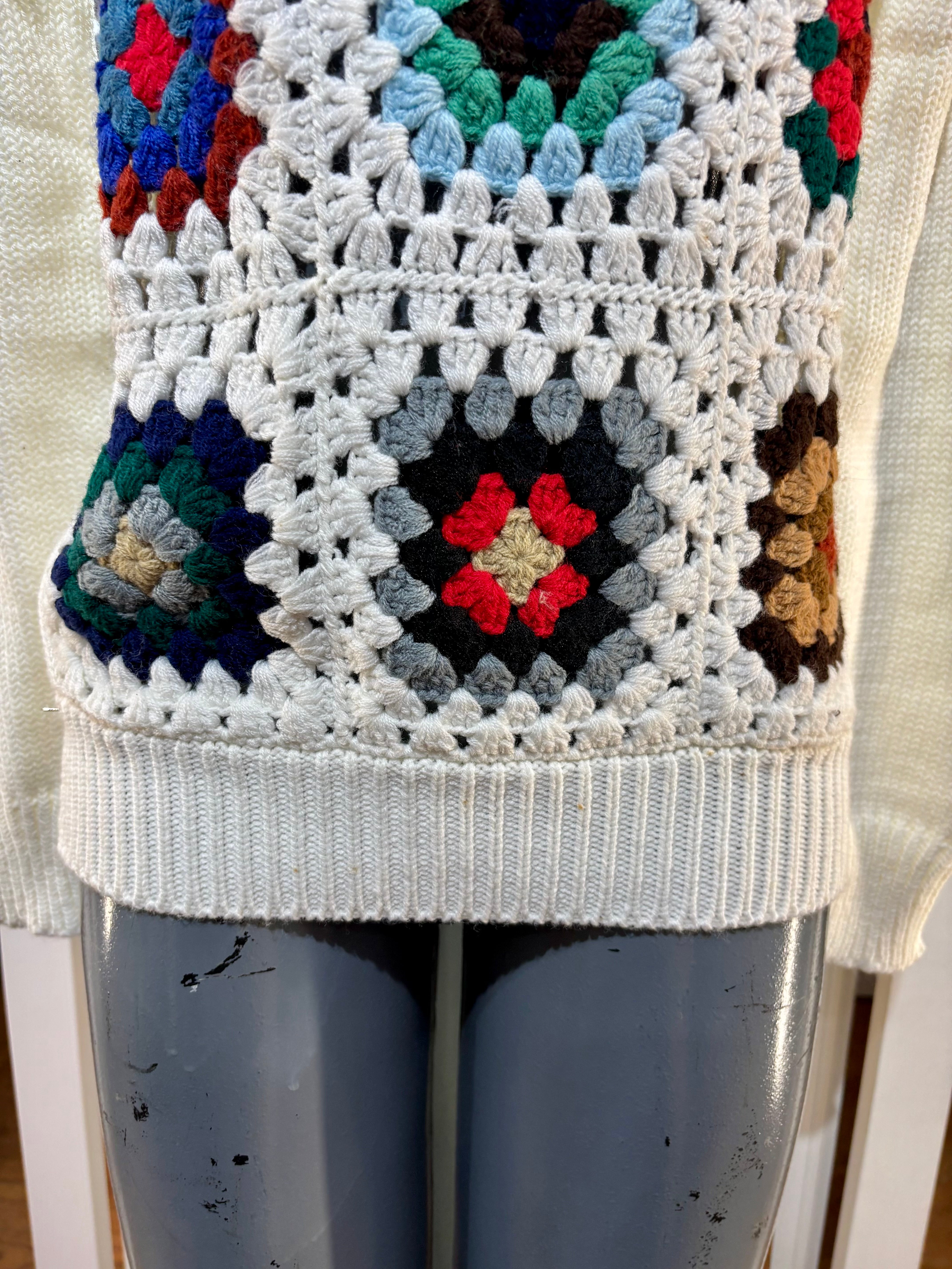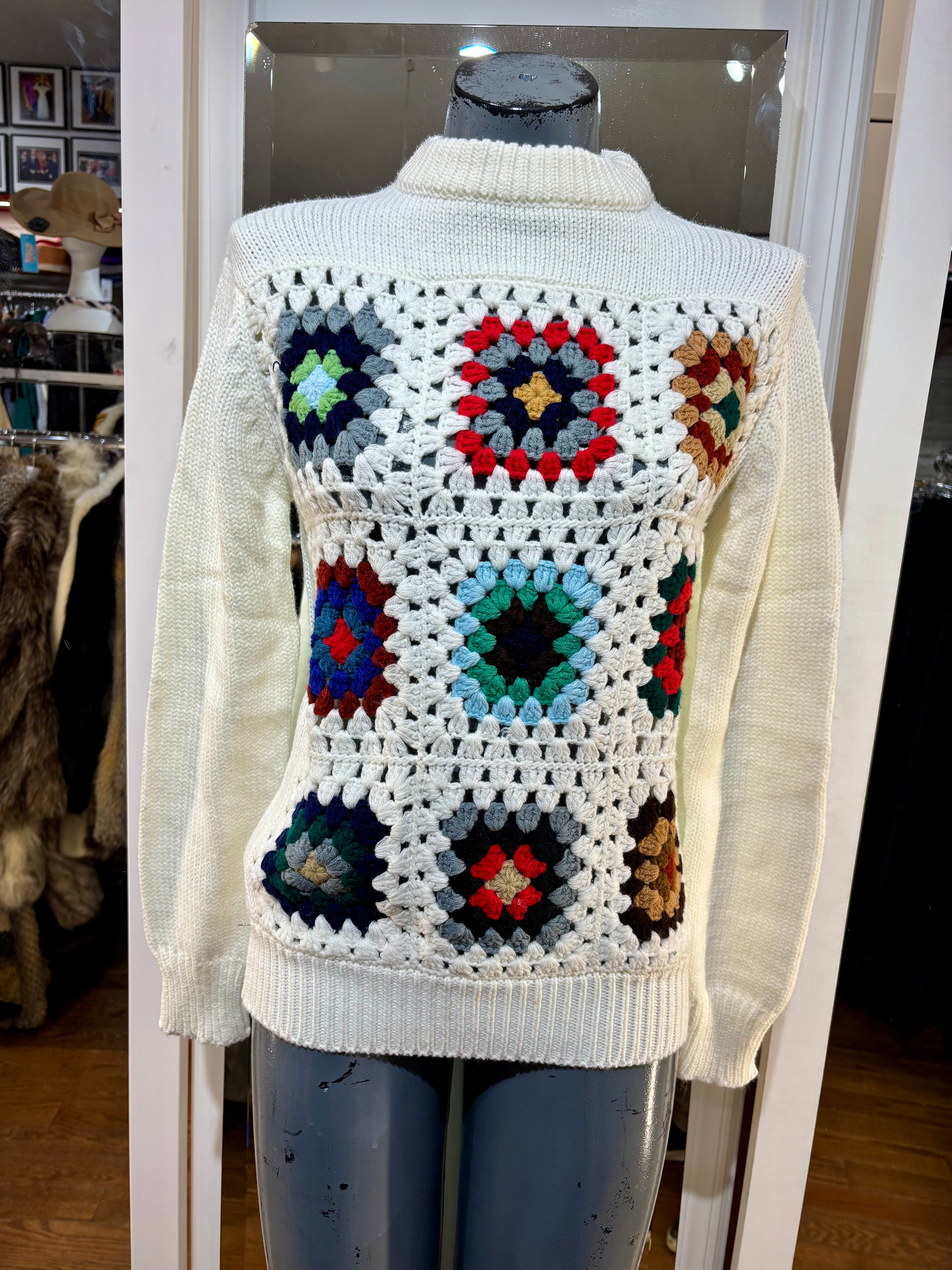 70’s Off White Multicolor Crochet Details Crew Neck Sweater By Mark Sweater