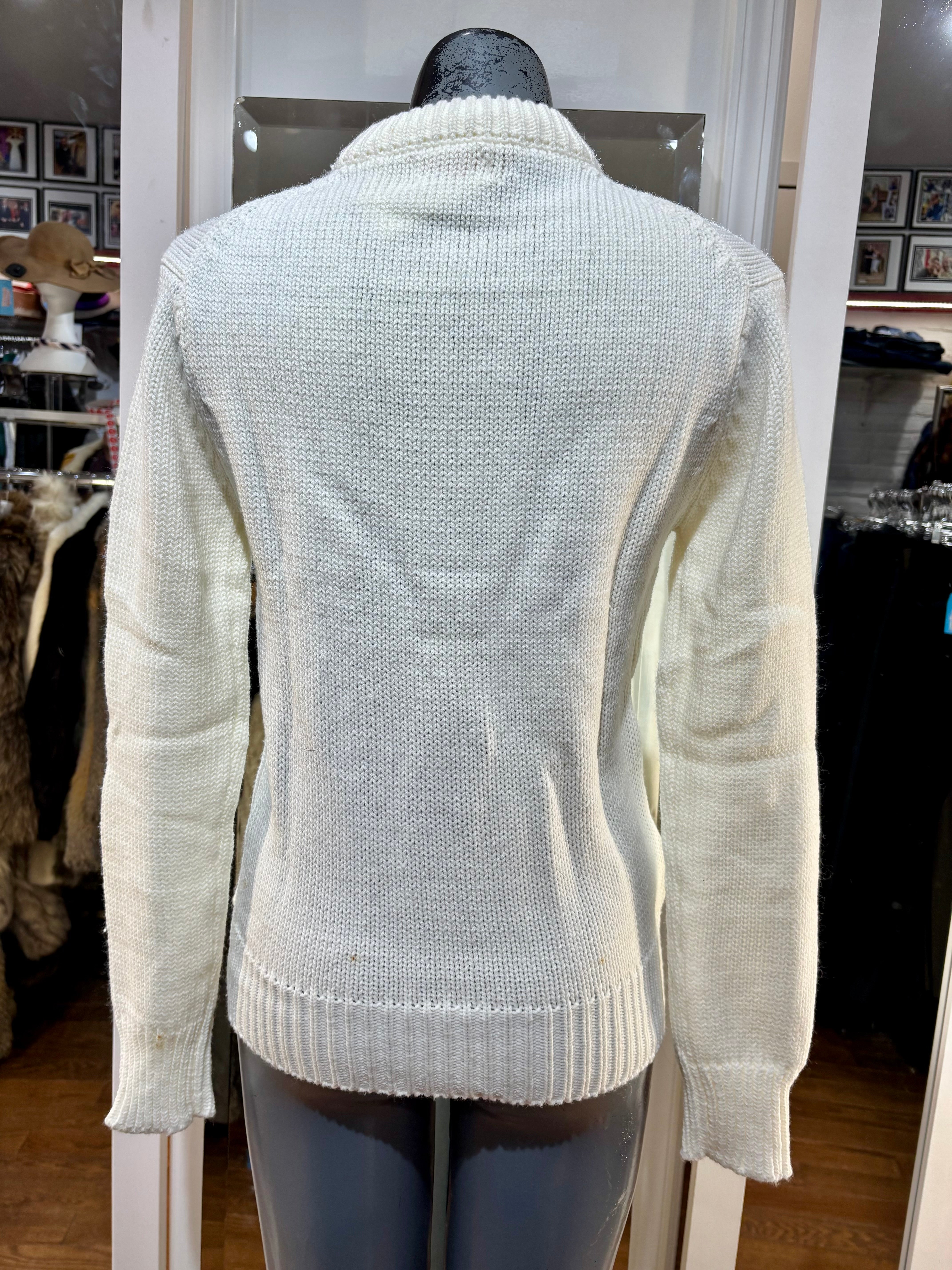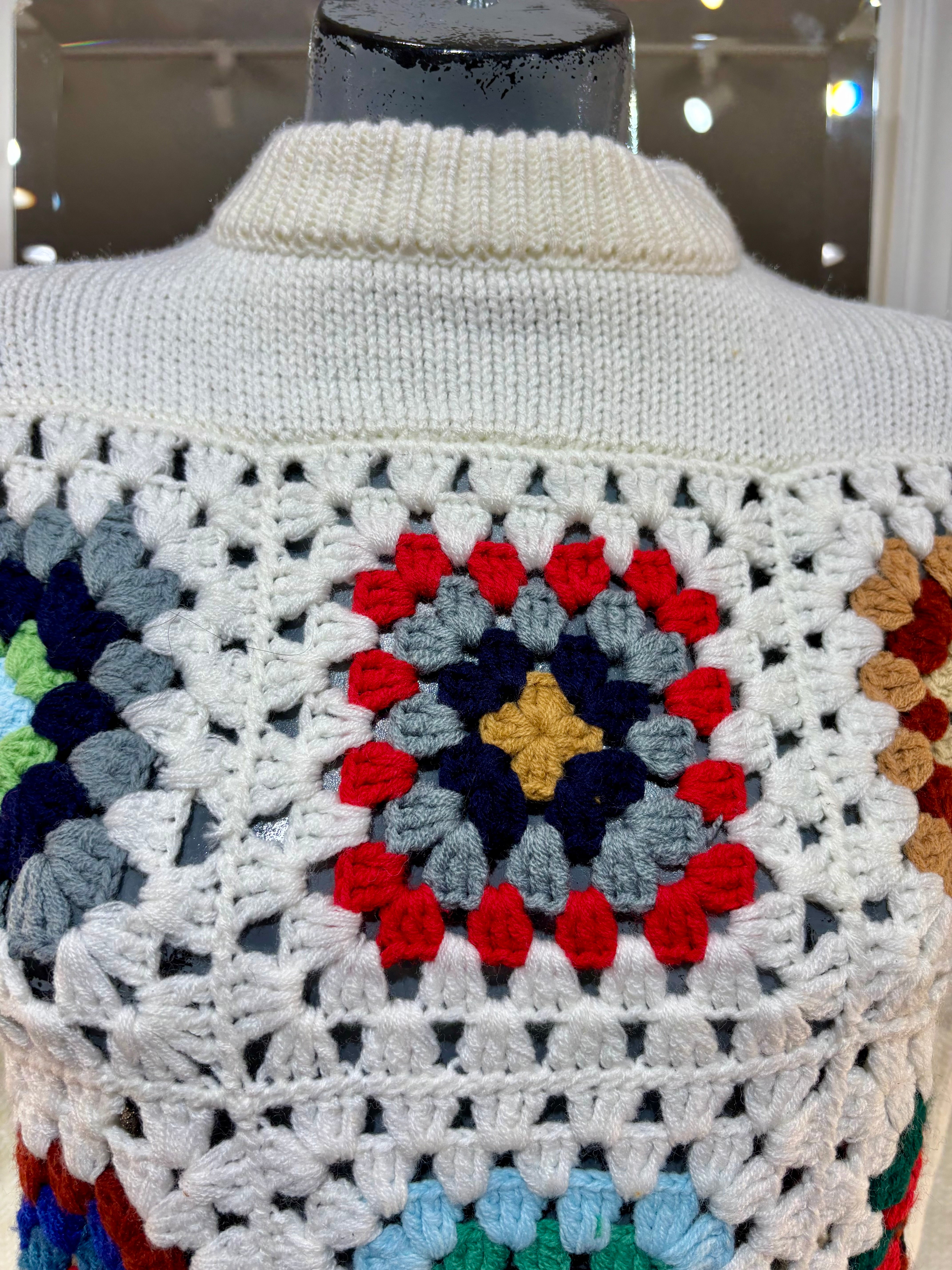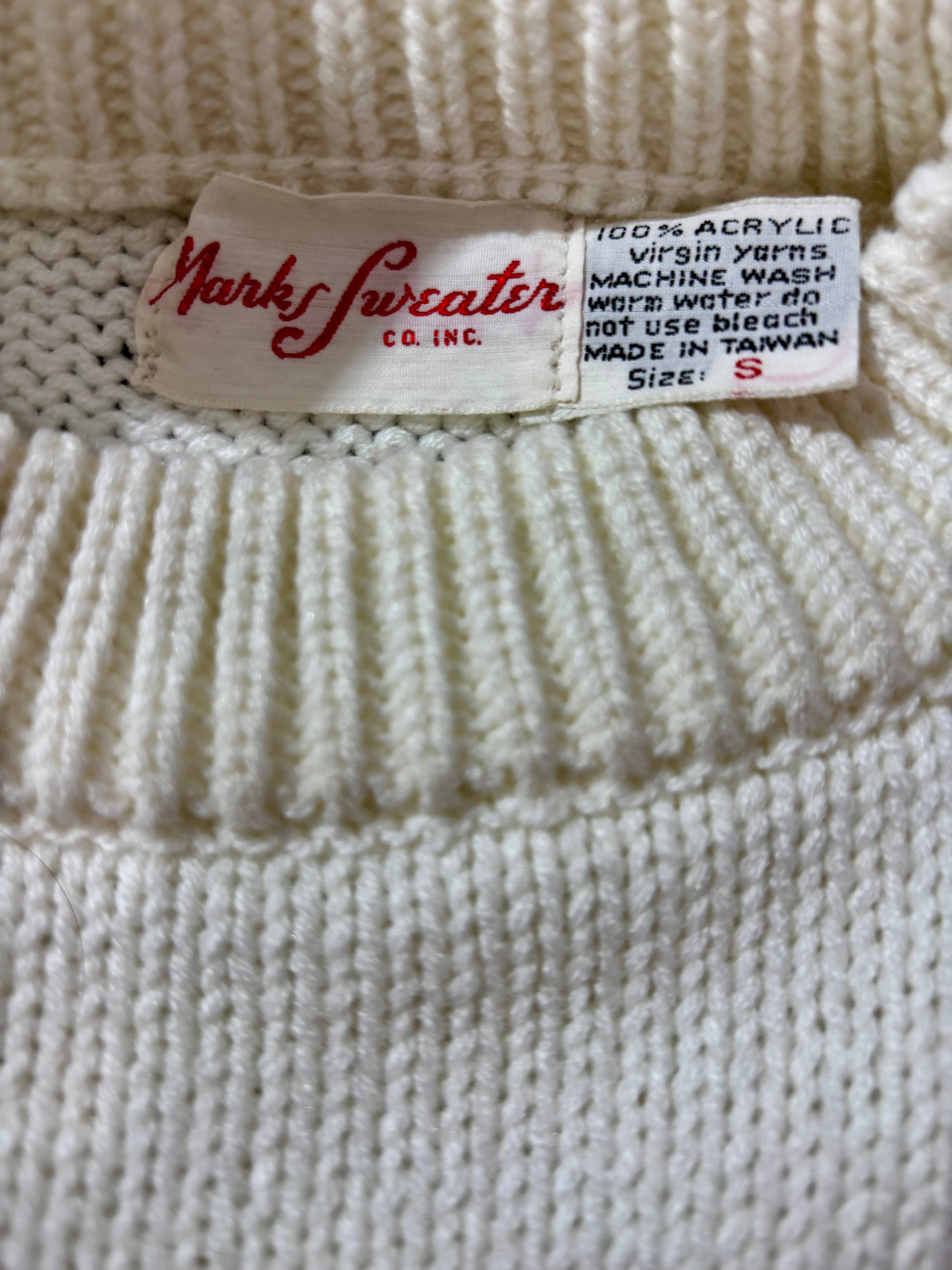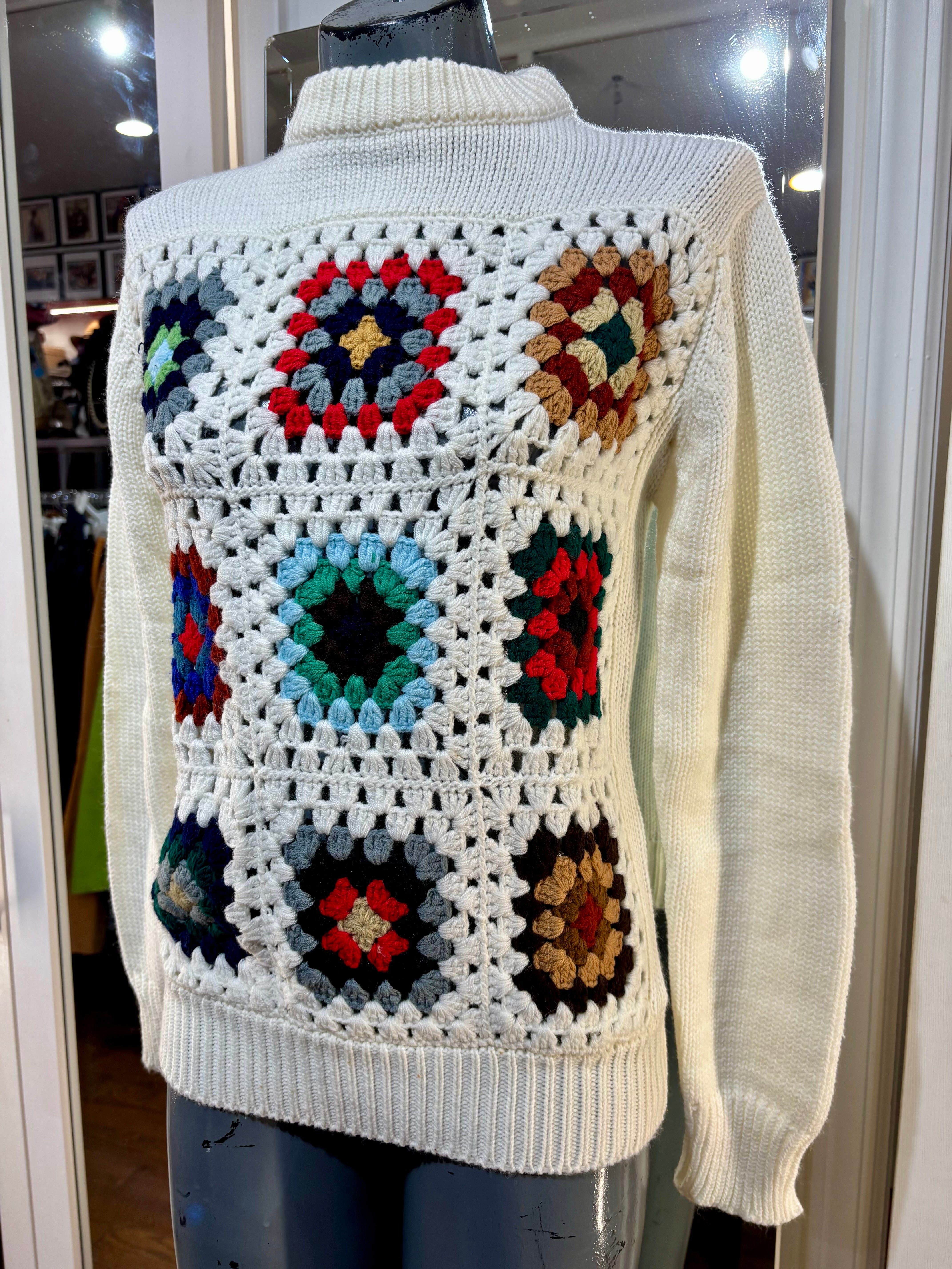 70’s Off White Multicolor Crochet Details Crew Neck Sweater By Mark Sweater