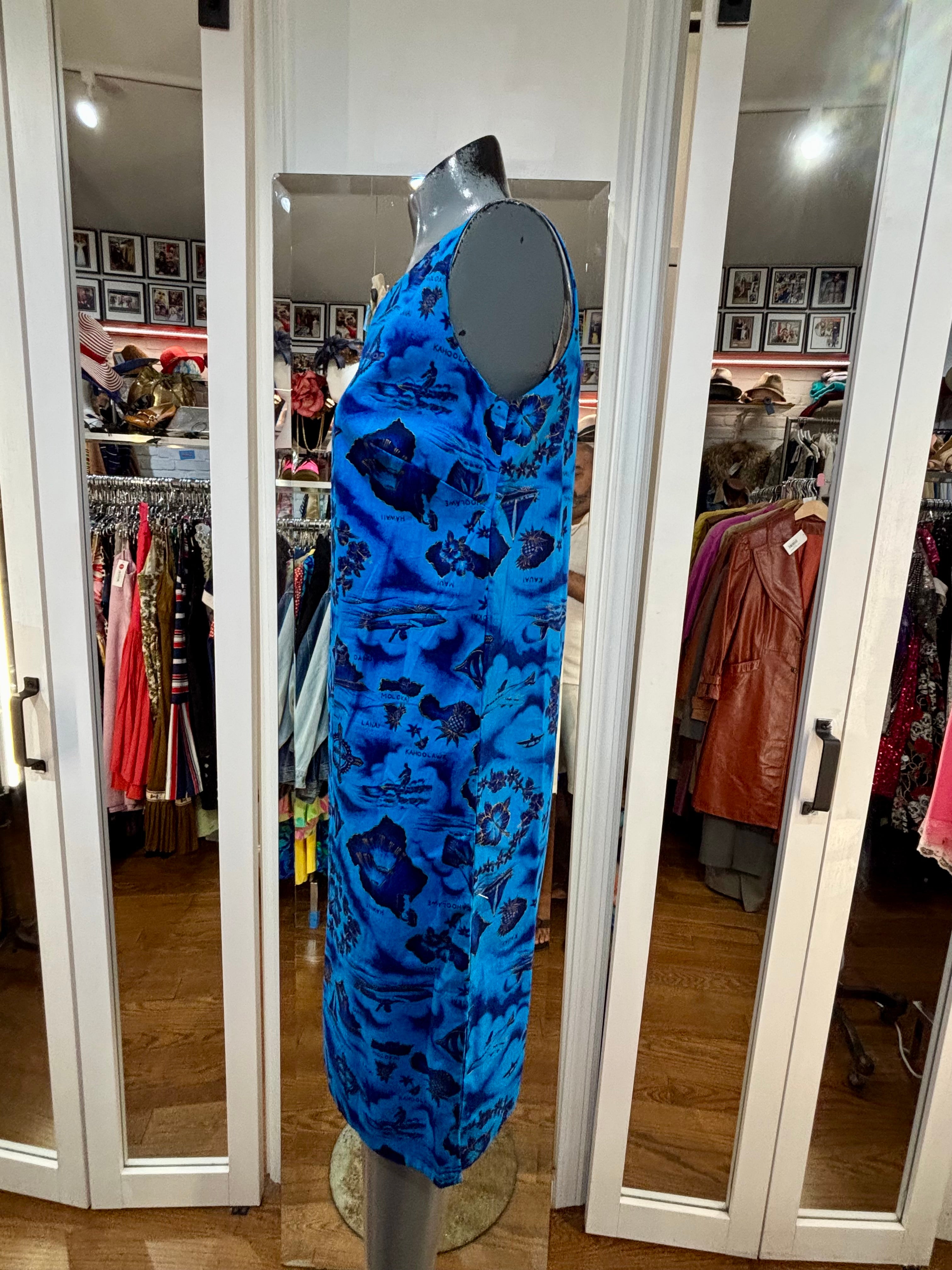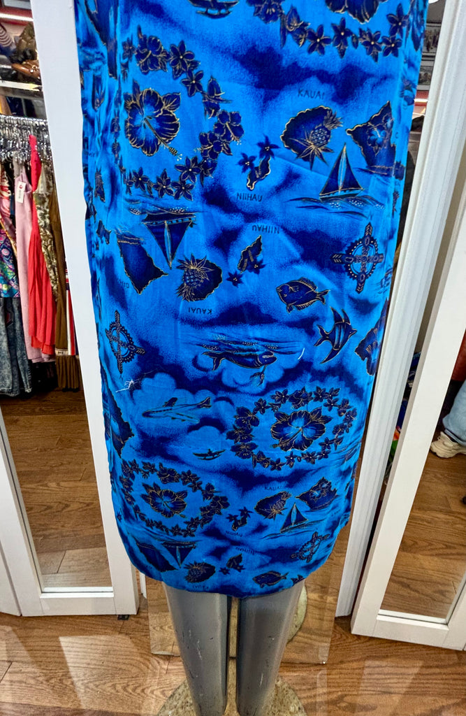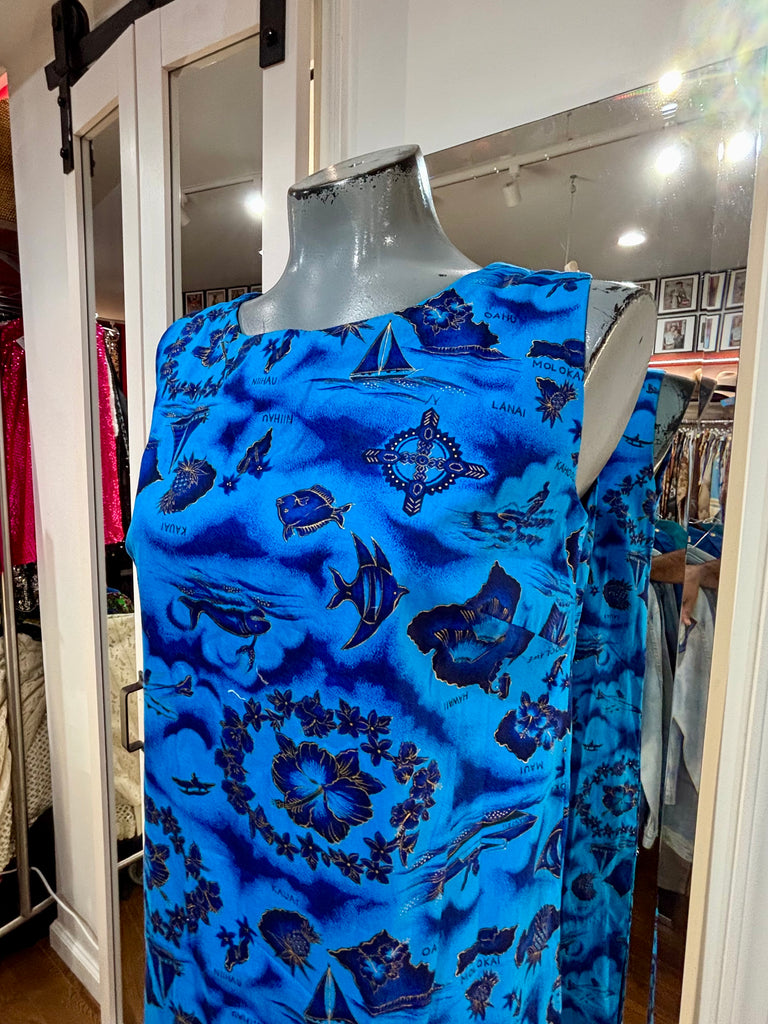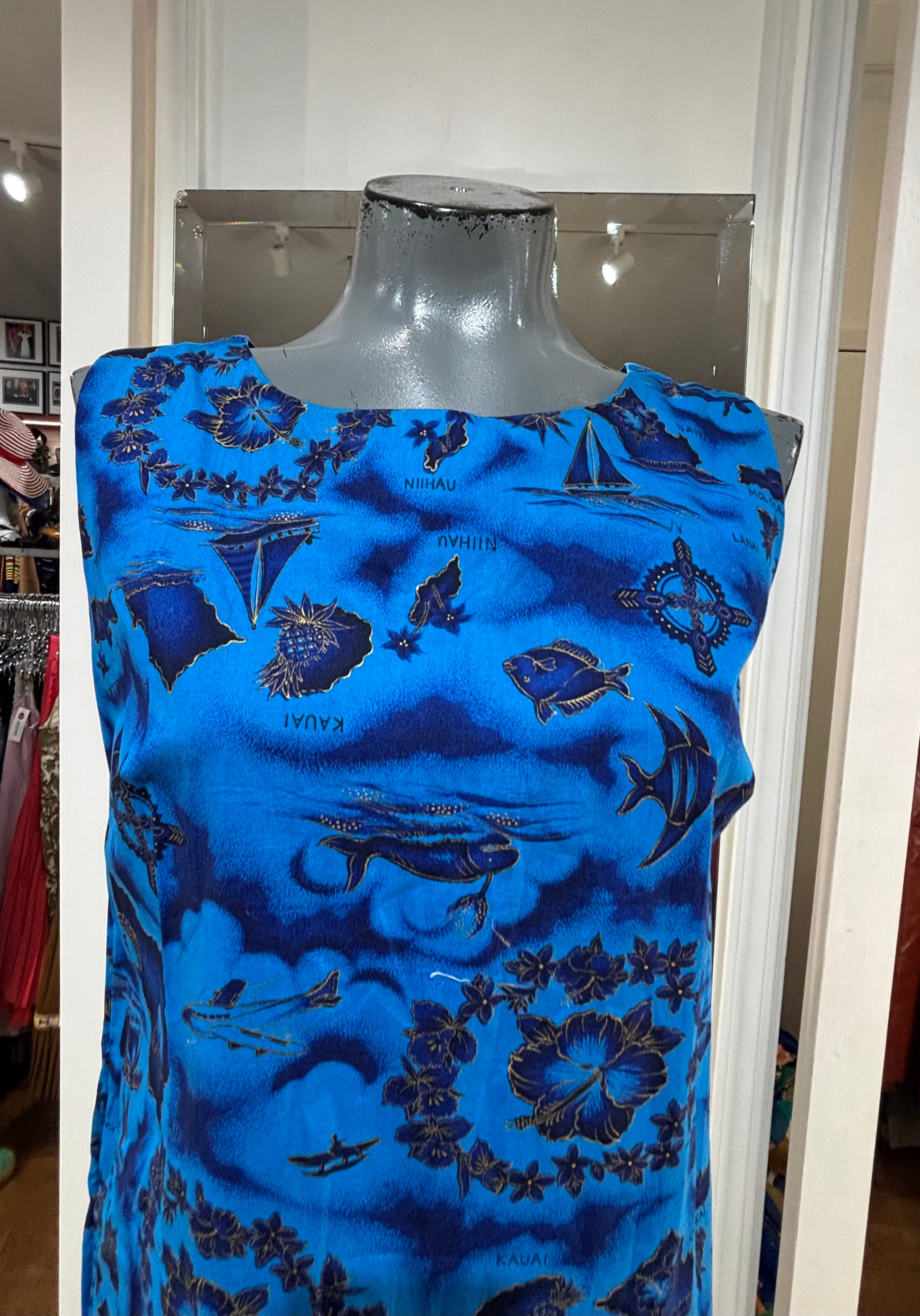 70’s Royal Blue Non Sleeve Hawaiian Dress By Ui Maikai