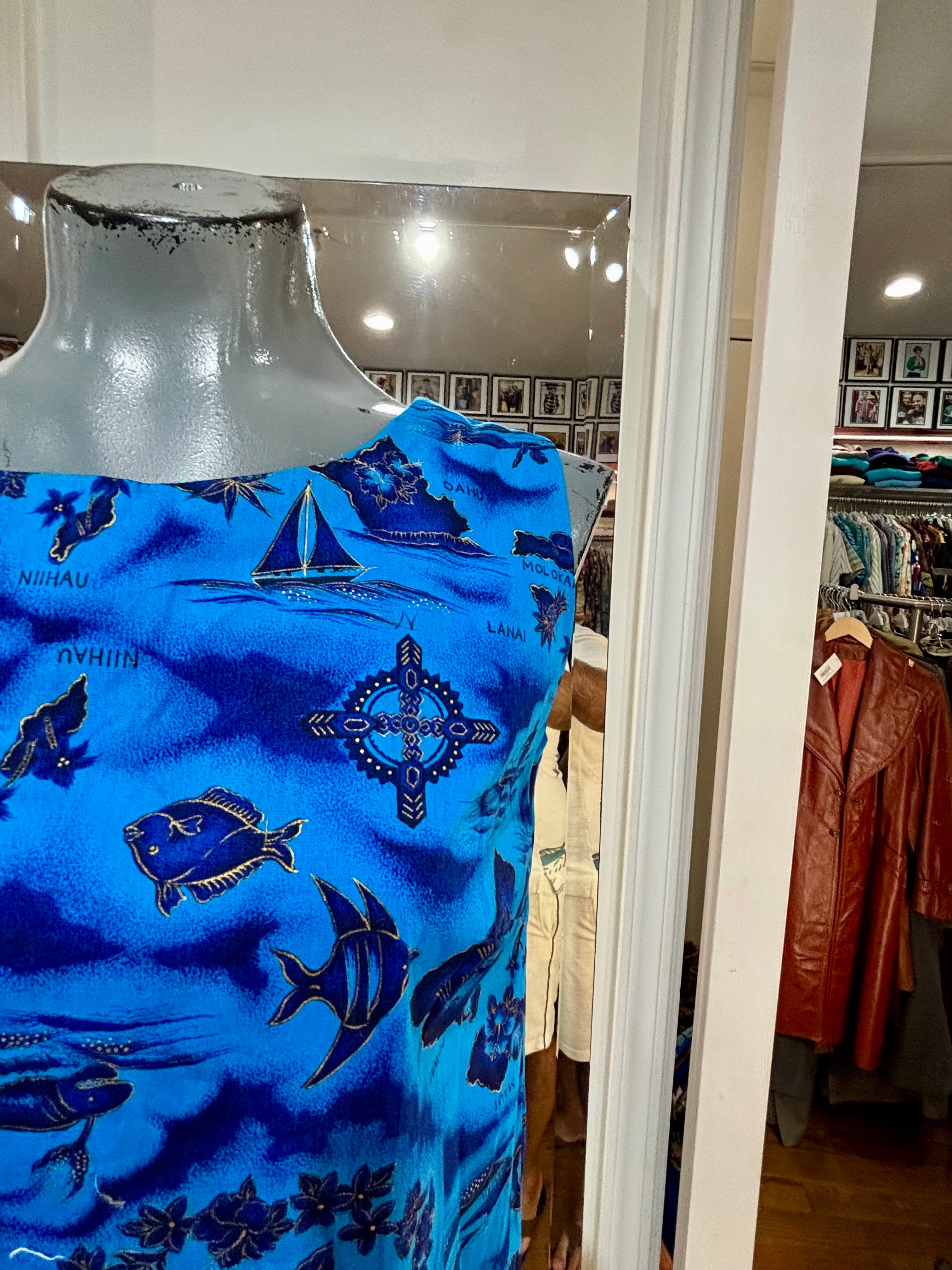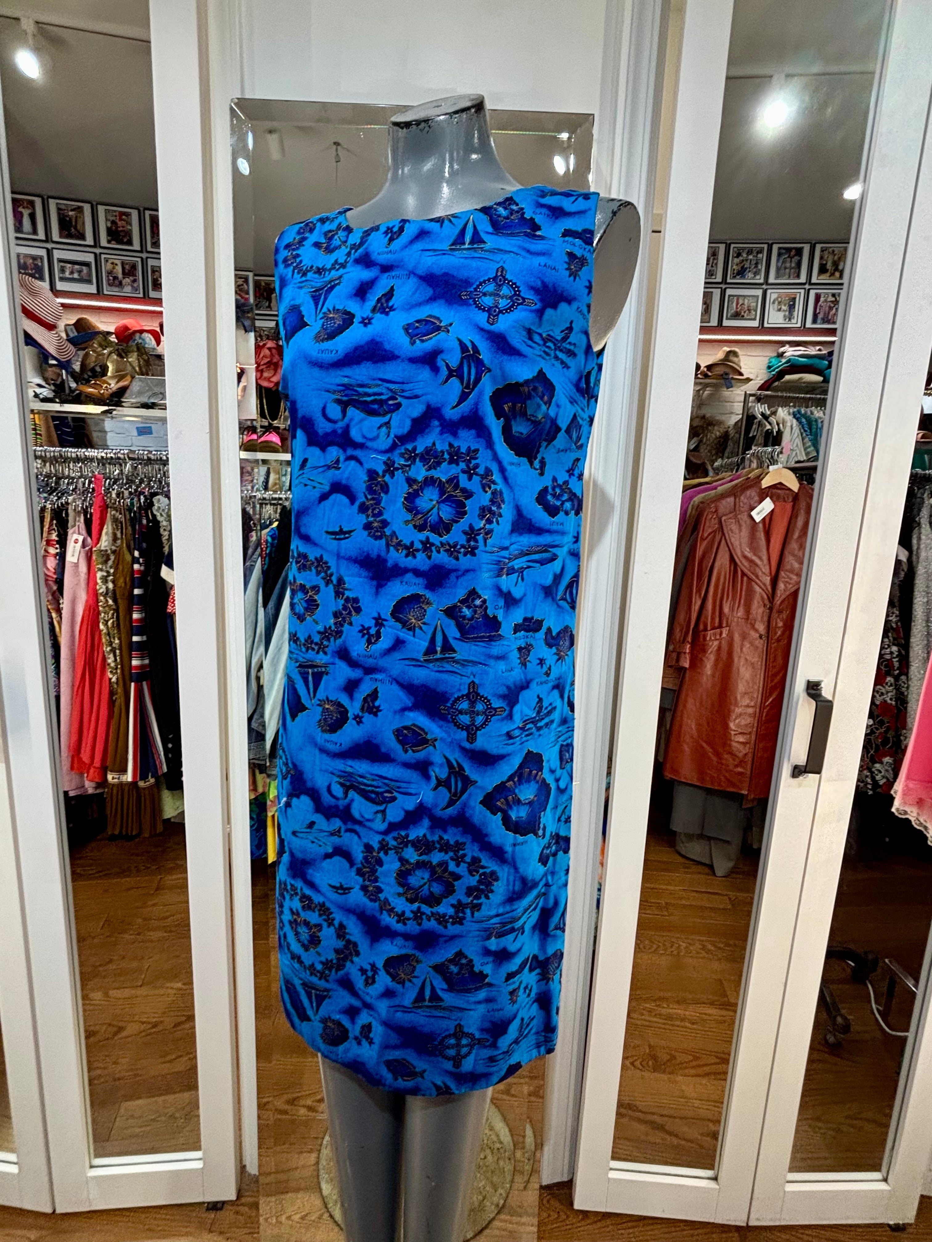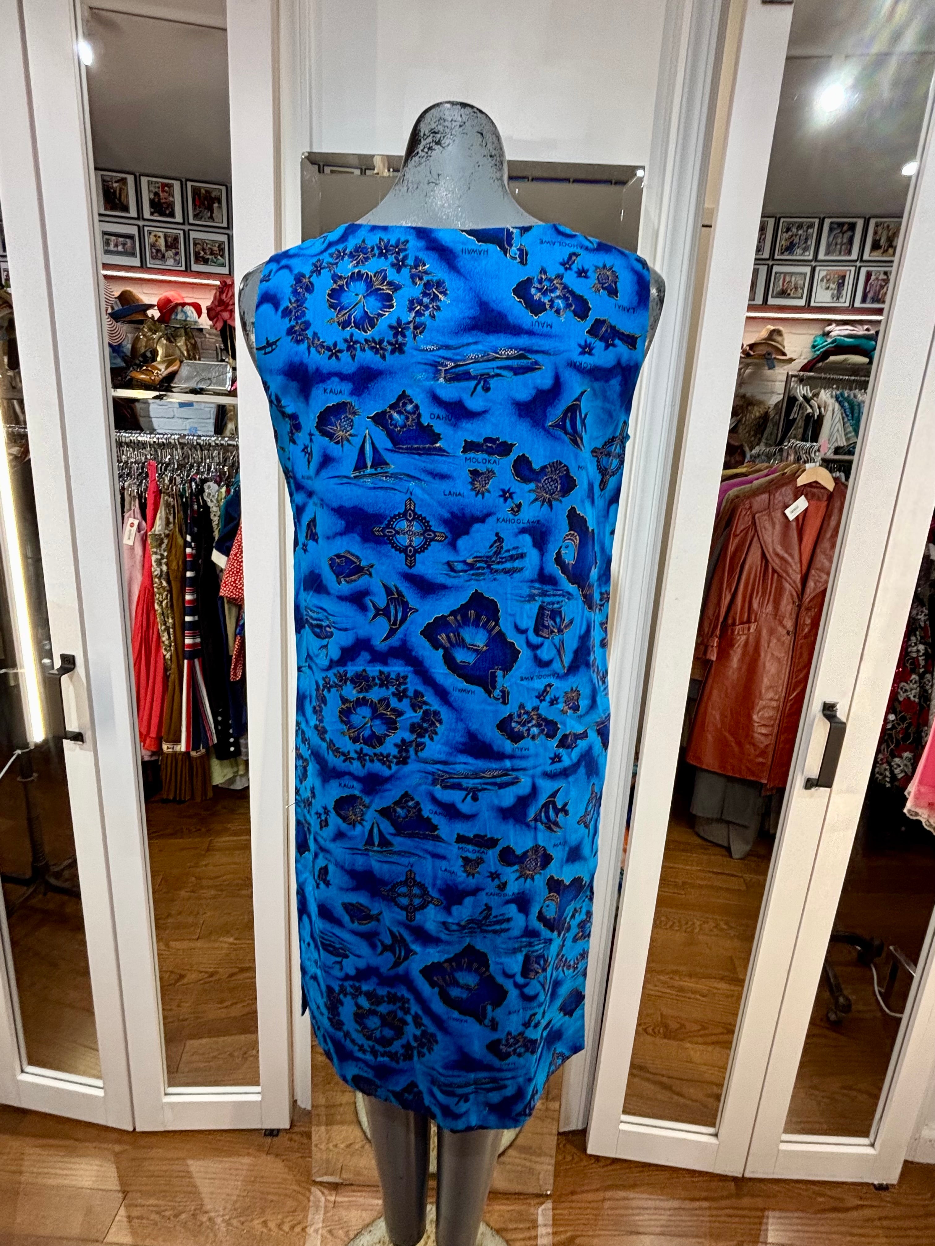 70’s Royal Blue Non Sleeve Hawaiian Dress By Ui Maikai