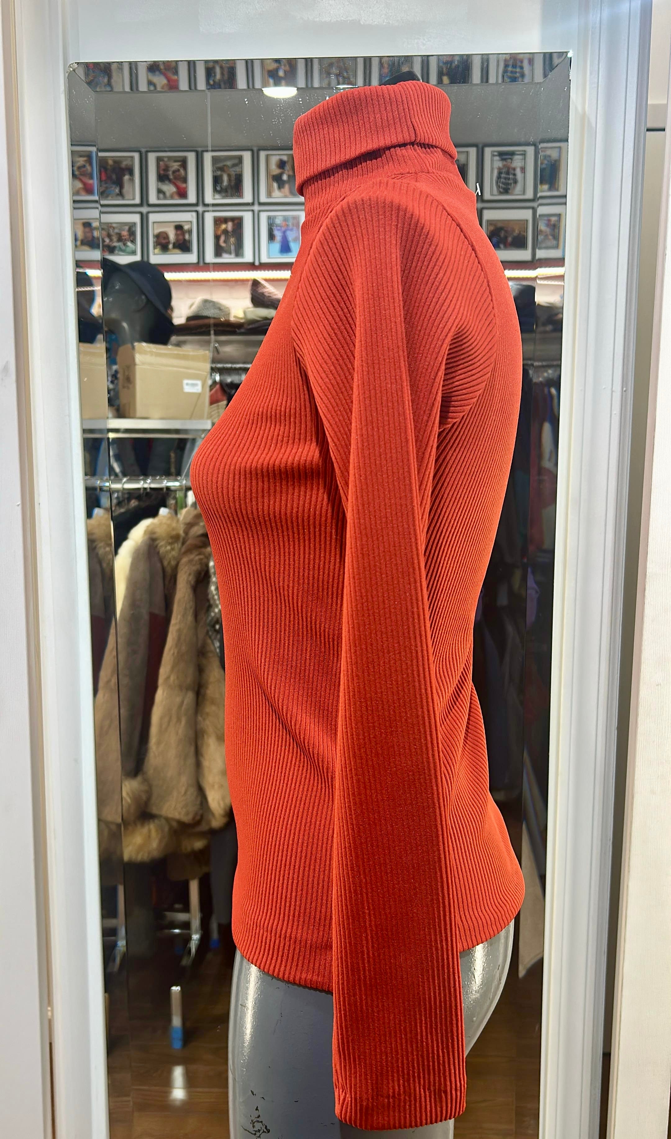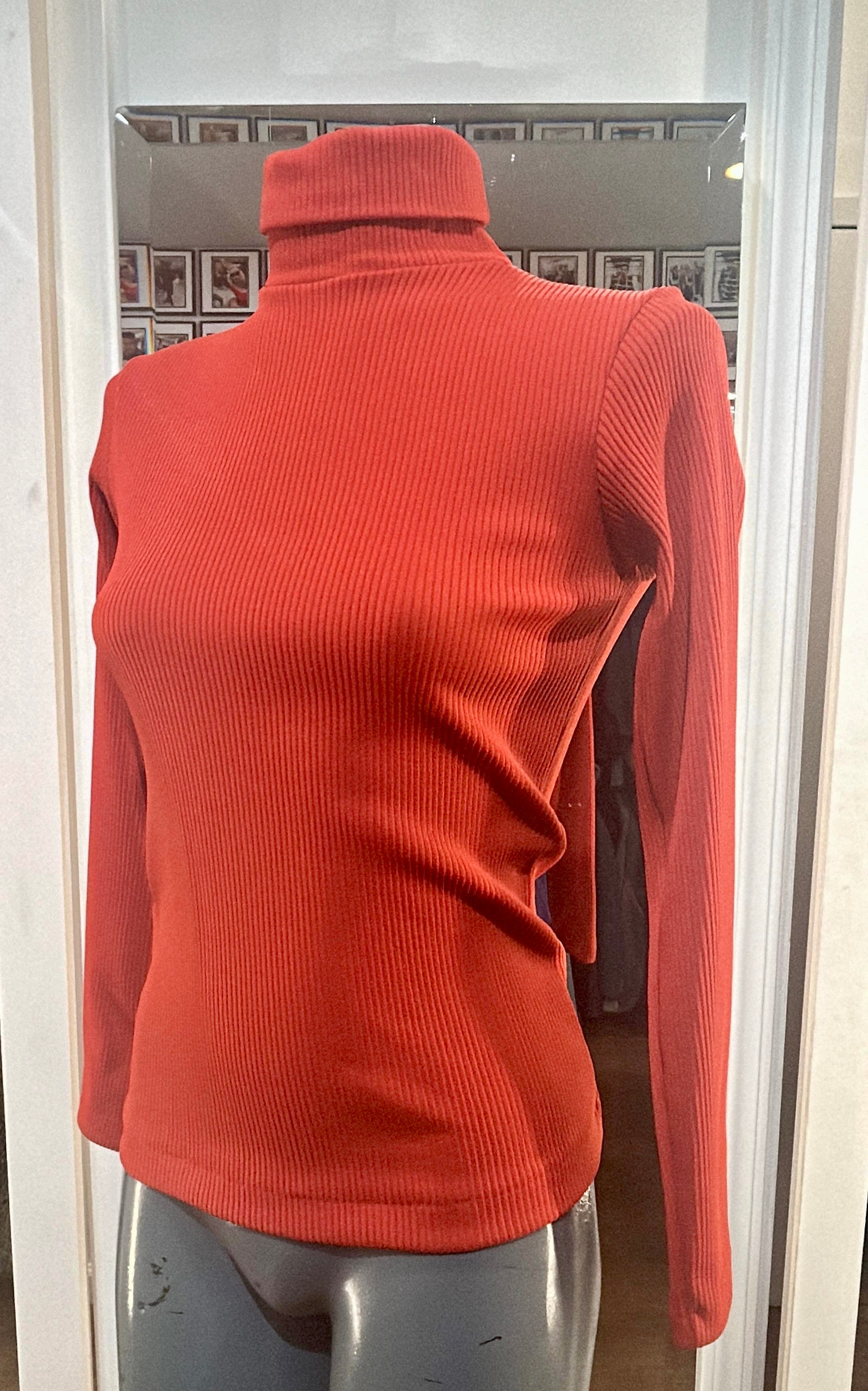 70’s Orange Turtle Neck Long Sleeve Pull Dead Stock By Knitpix