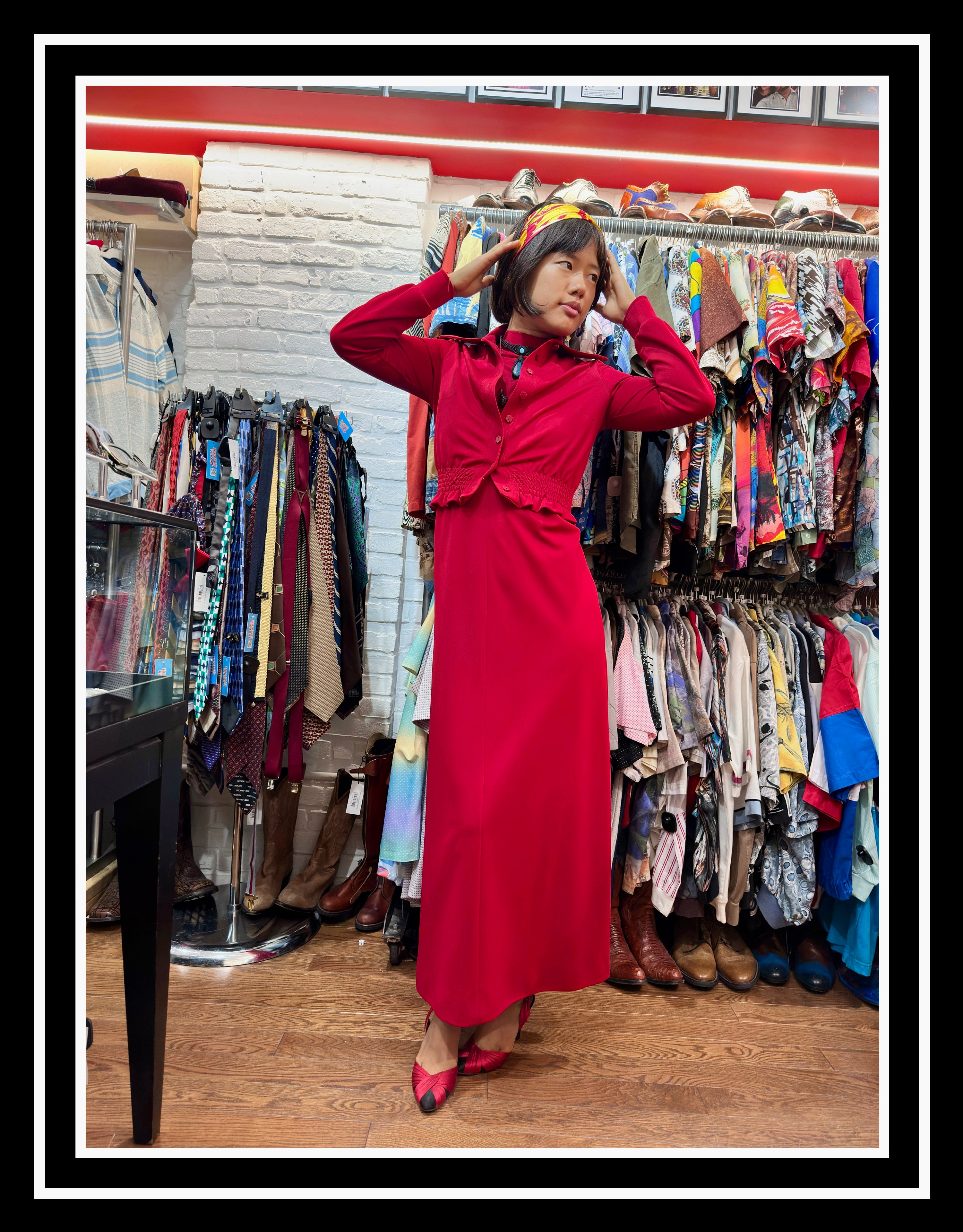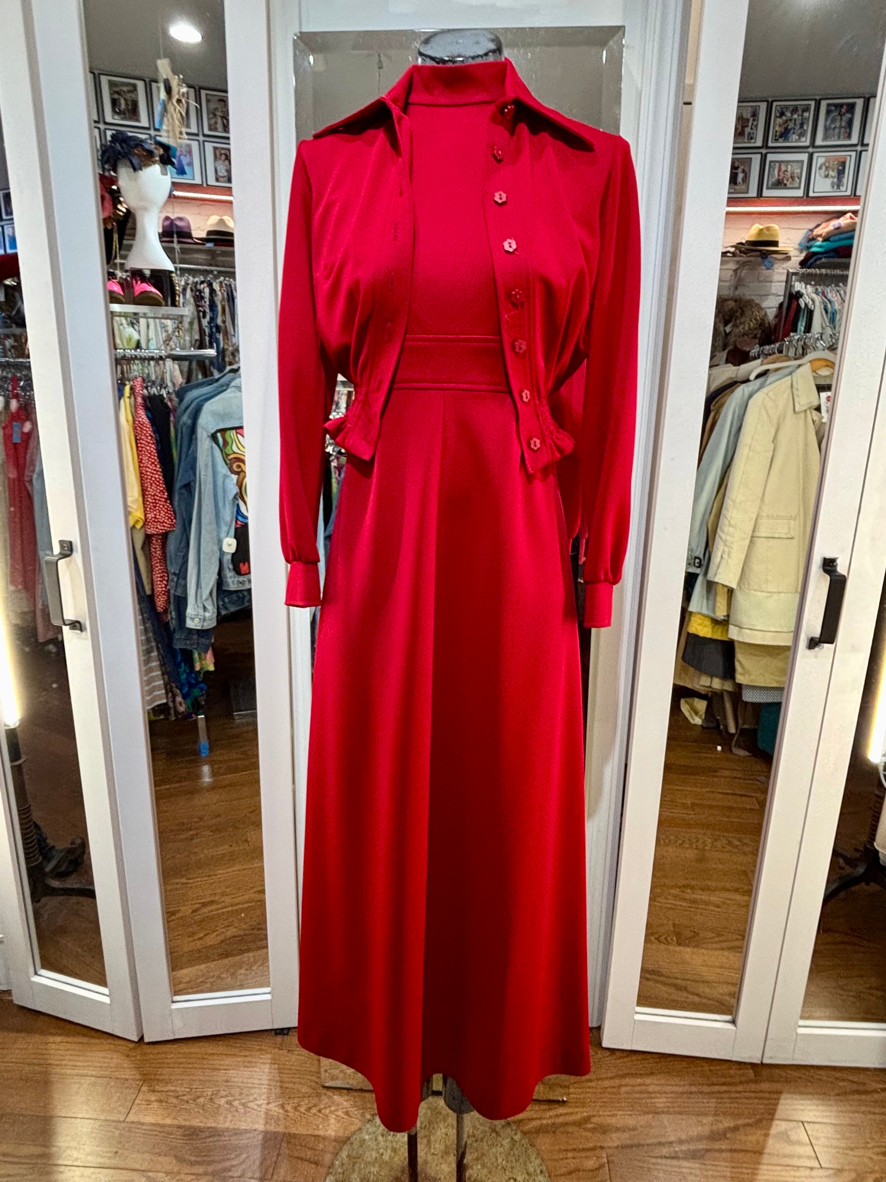 70’s Red Maxi Dress Whit Crop Jacket 2 piece Set