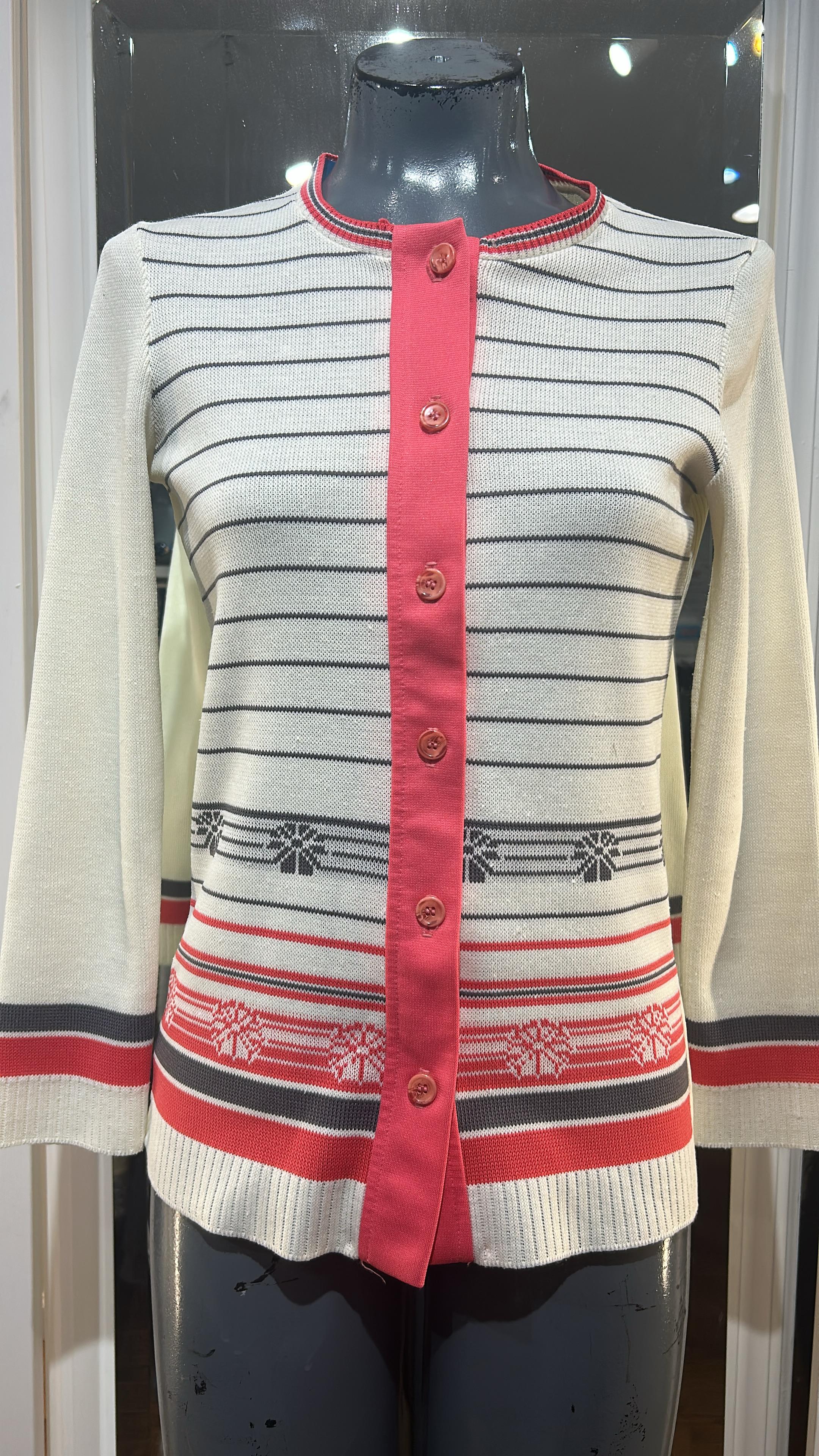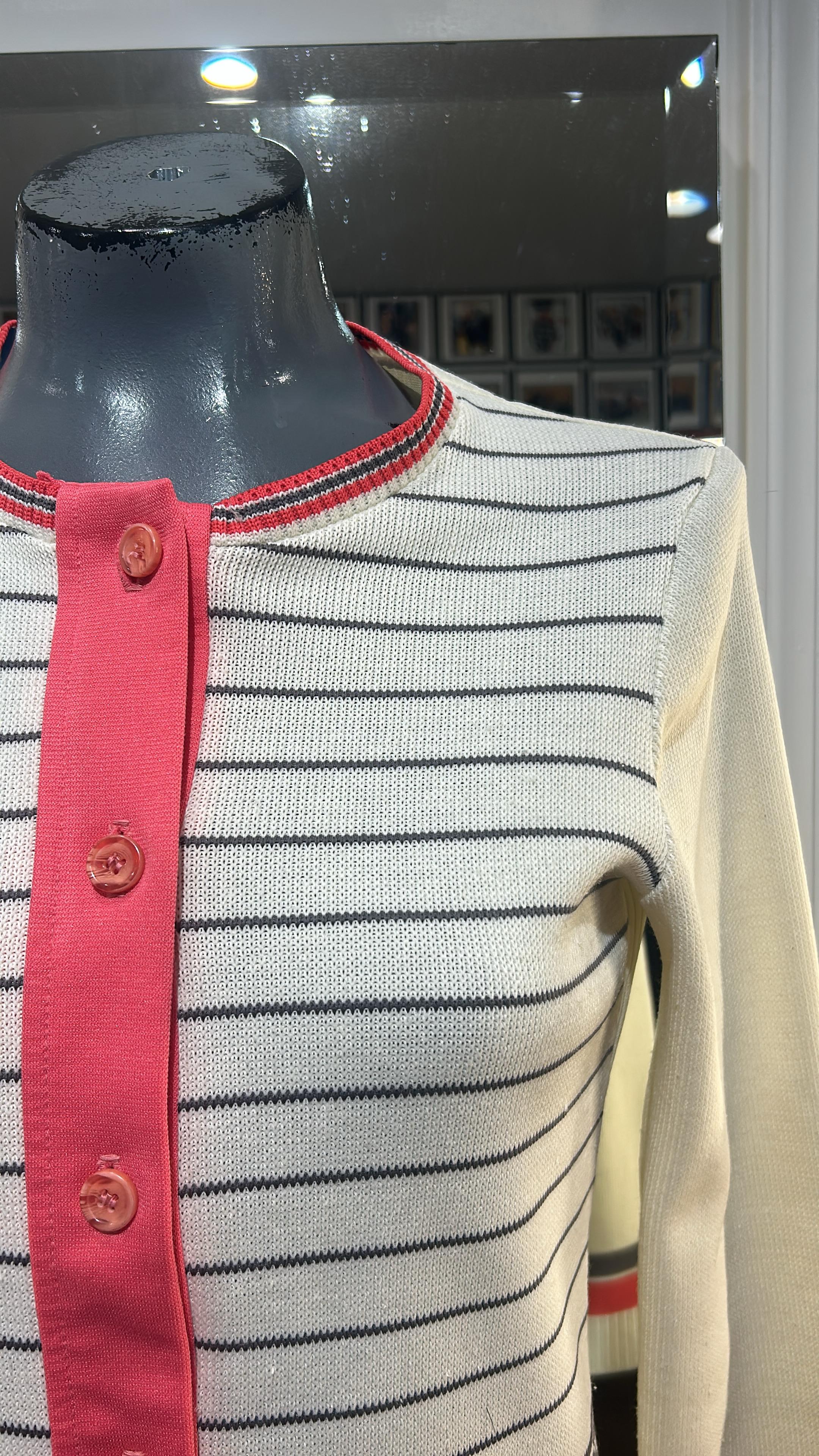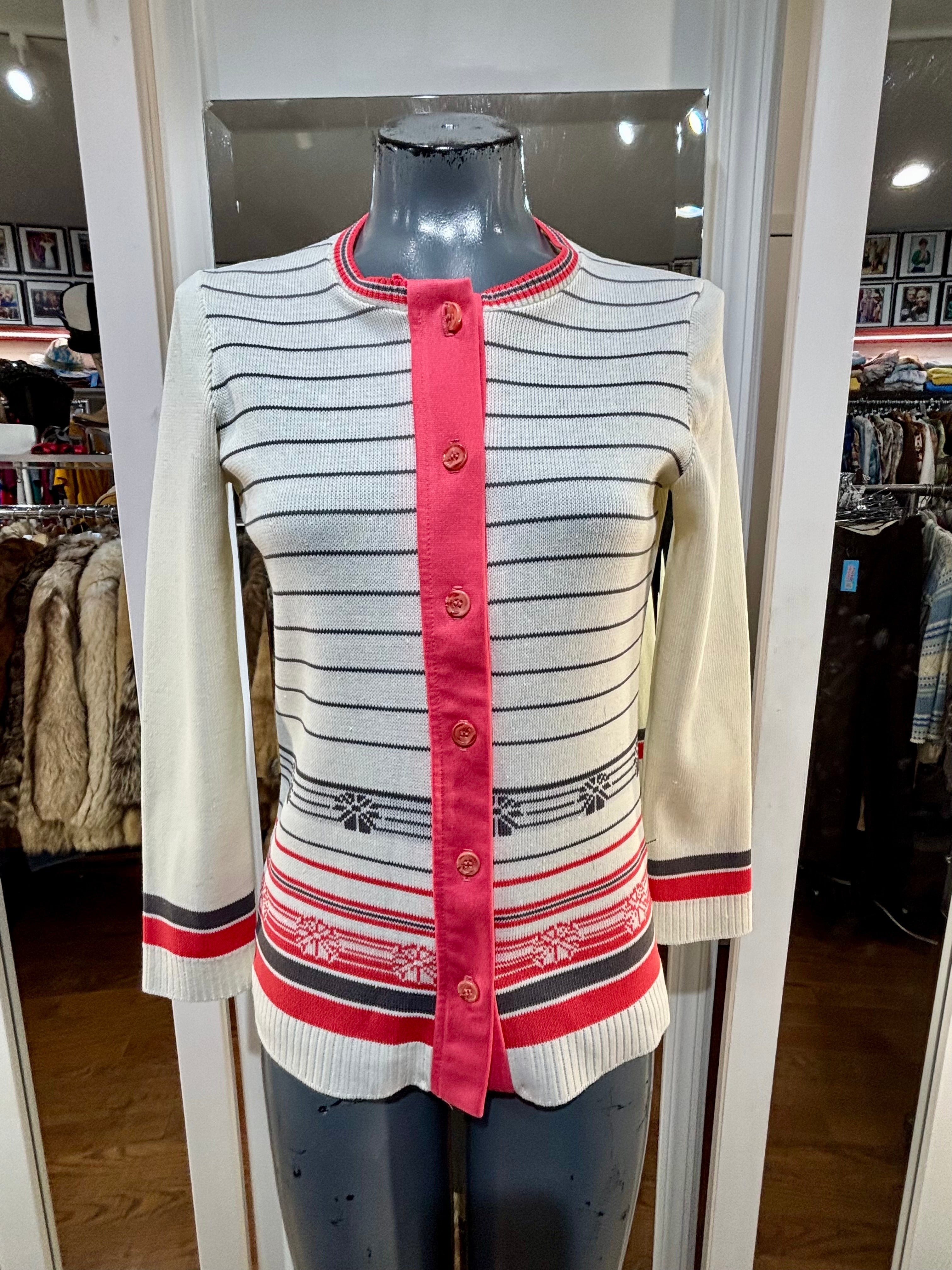 70’s White & Red Stripes Button Cardigan