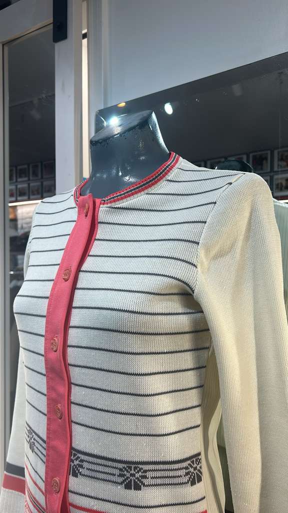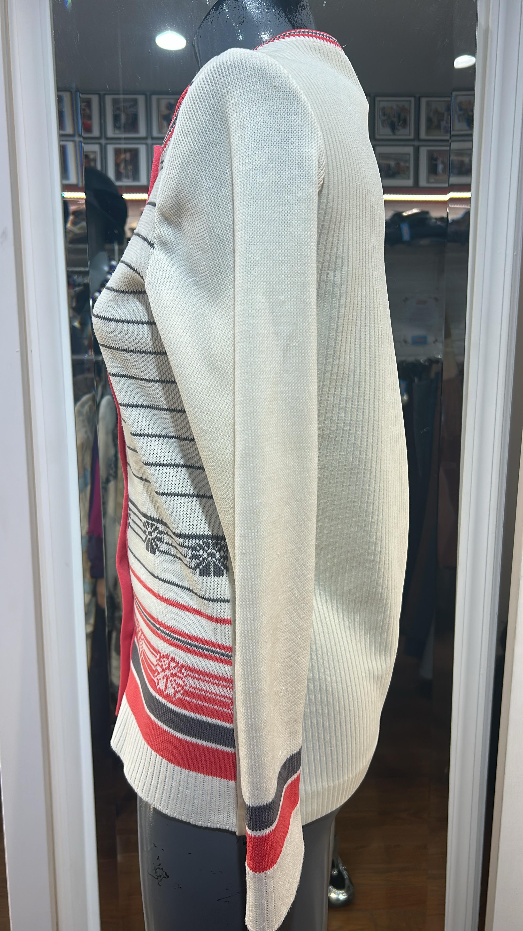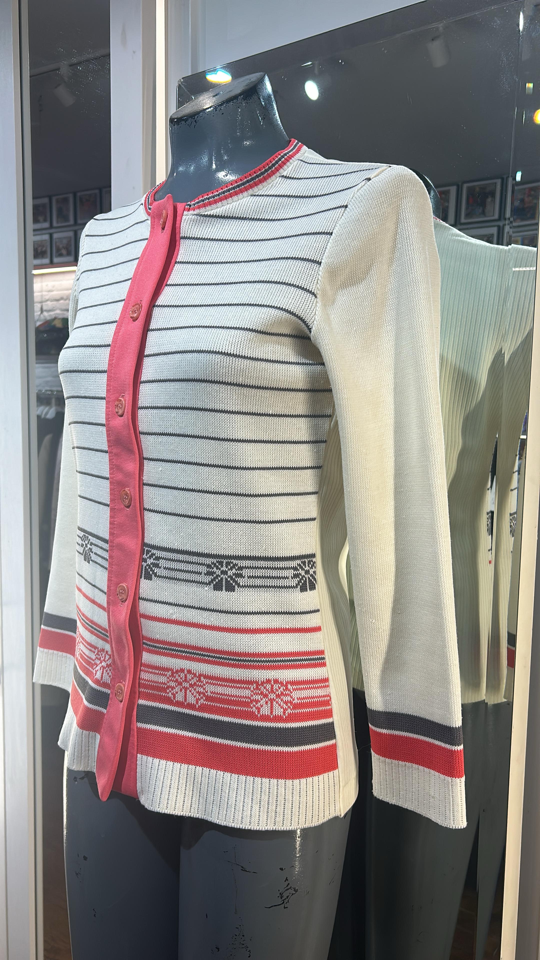 70’s White & Red Stripes Button Cardigan