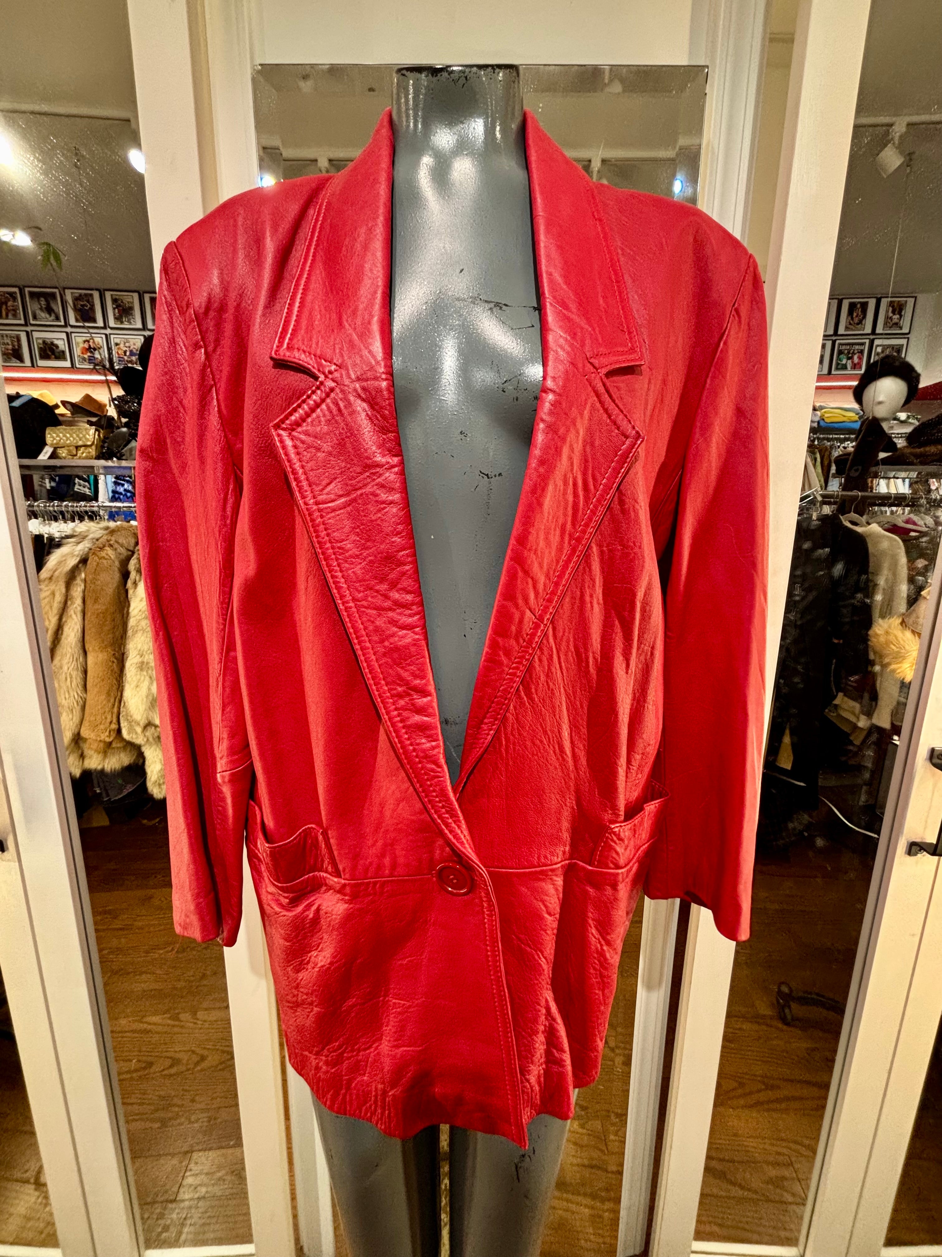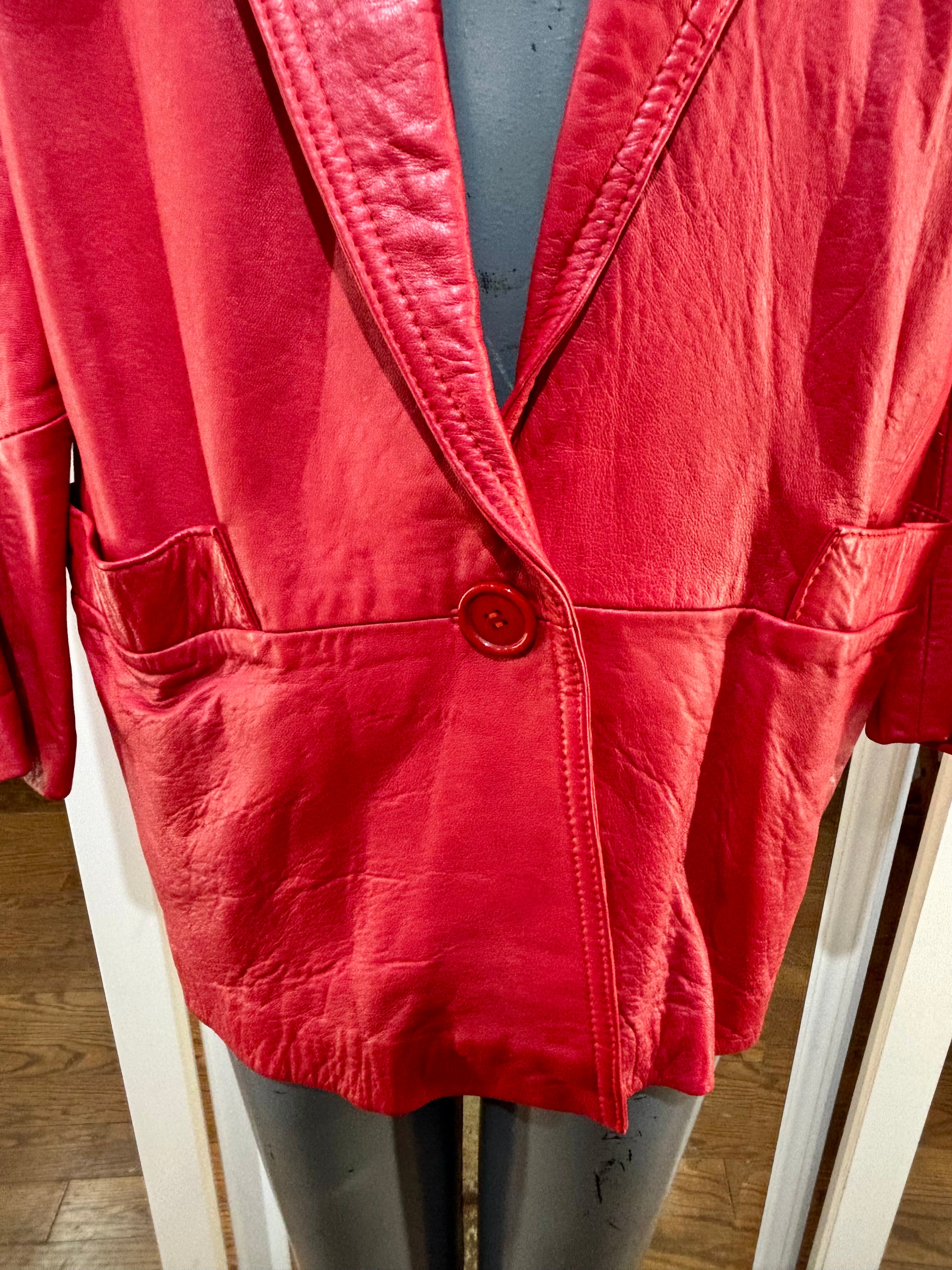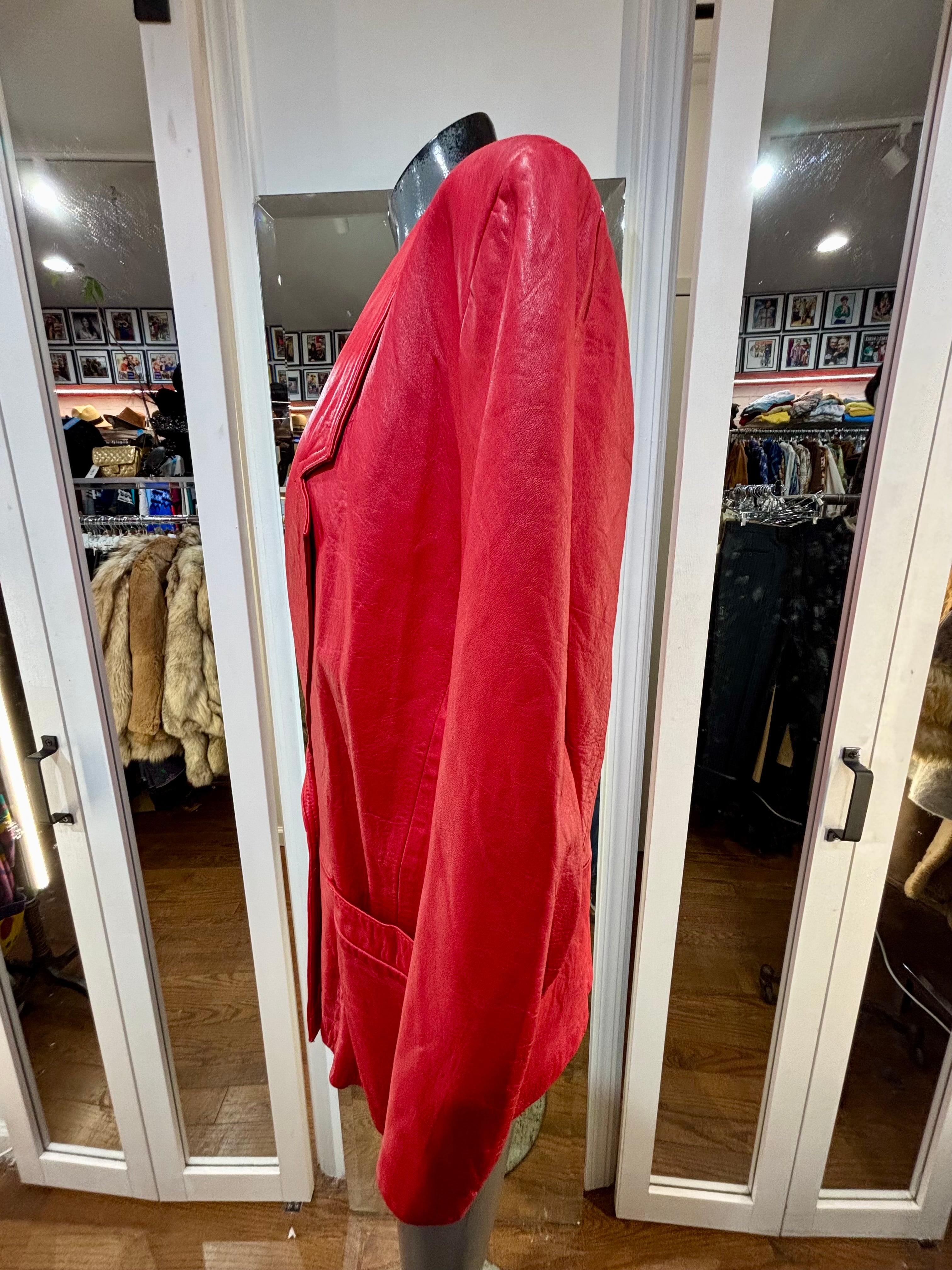 80’s Red Oversized 3/4 Length Leather Jacket By The Leather Warehouse