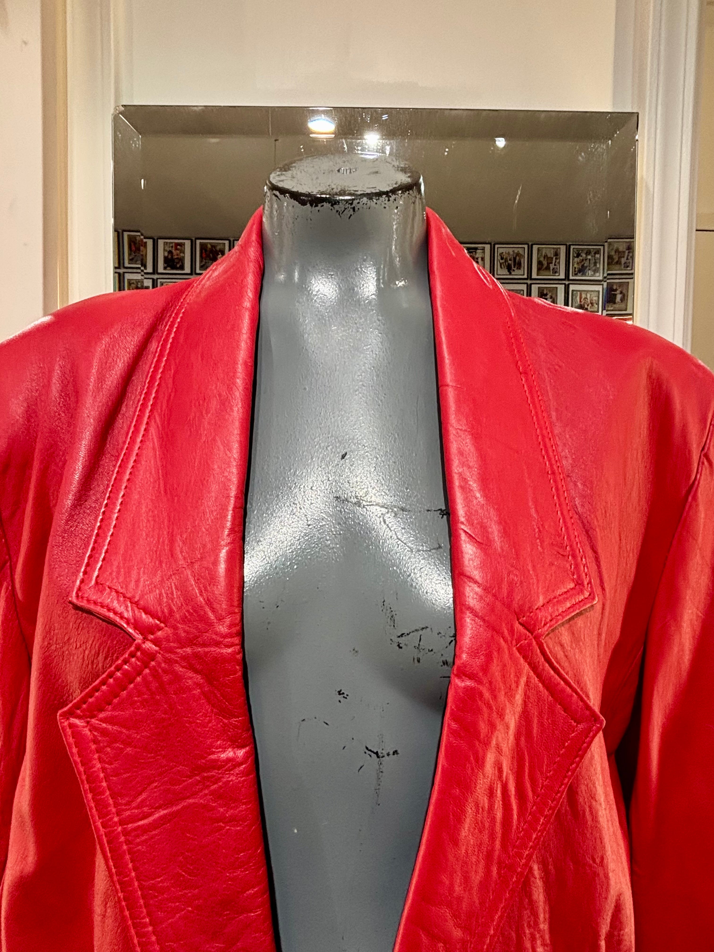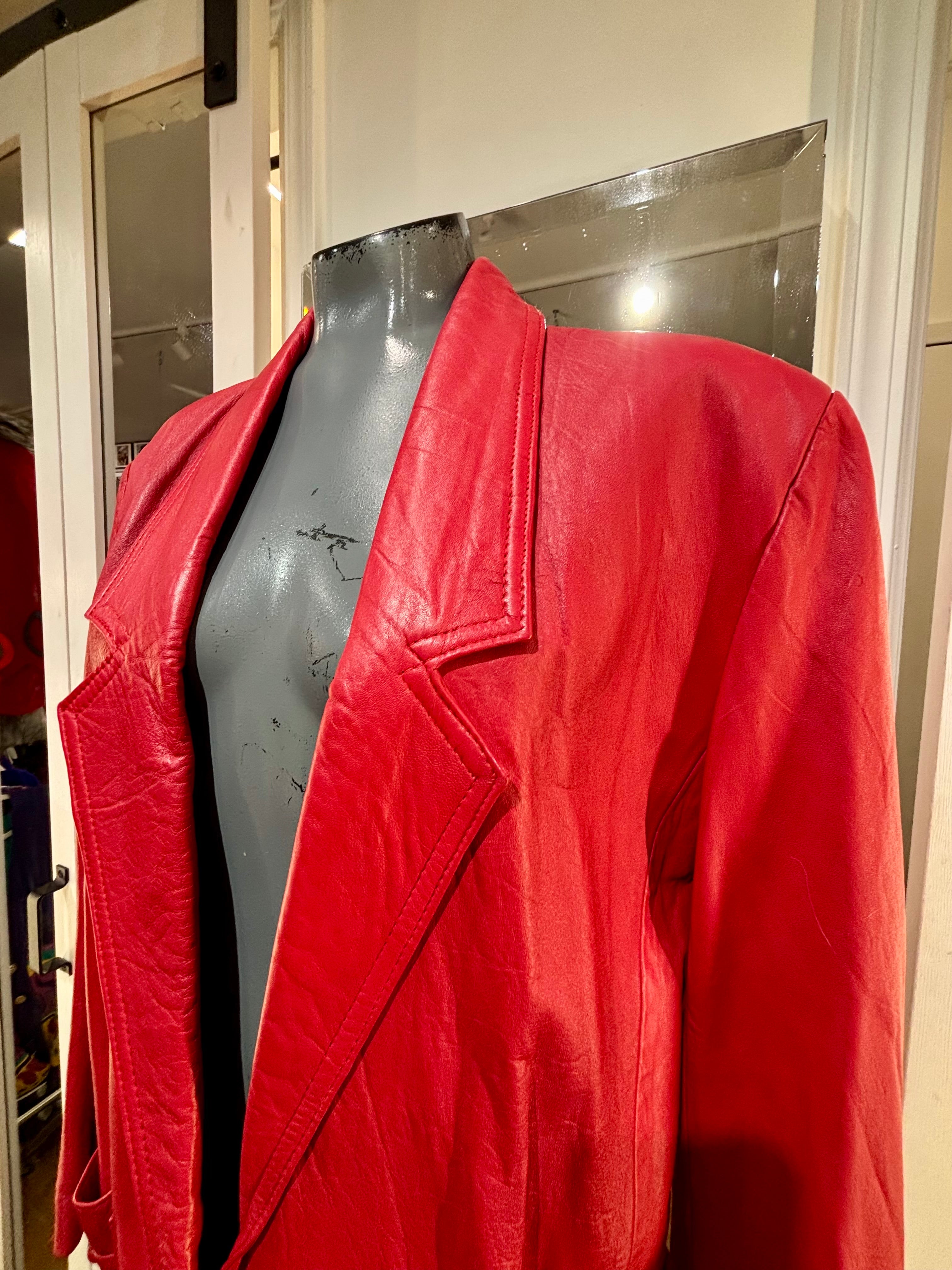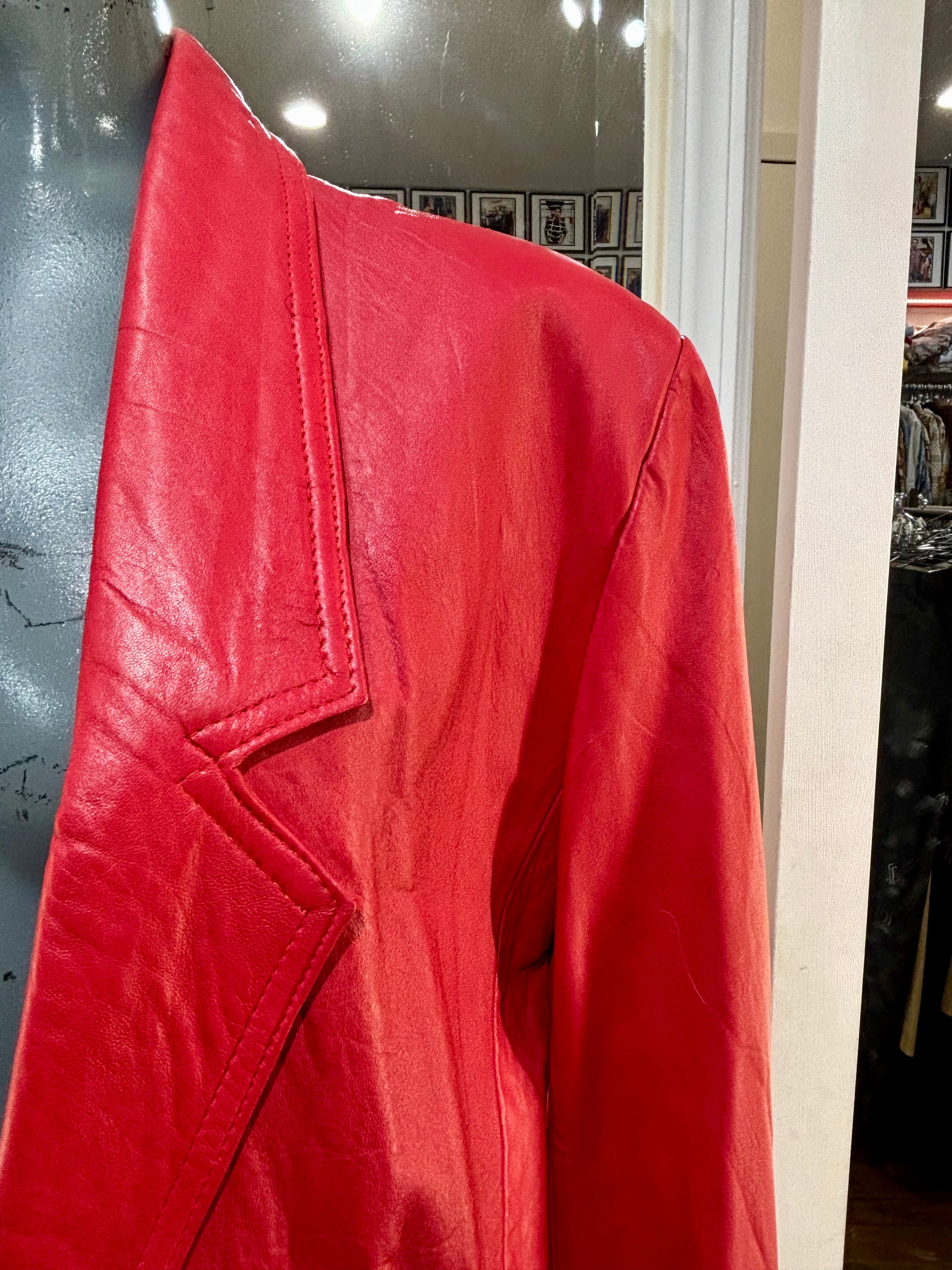 80’s Red Oversized 3/4 Length Leather Jacket By The Leather Warehouse