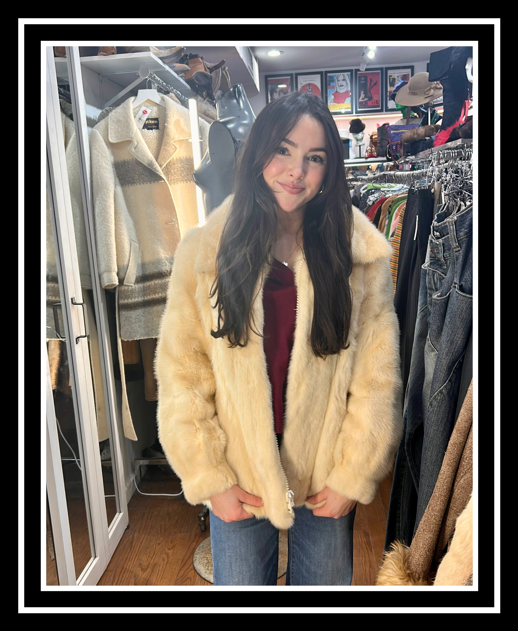 70’s Off White Zip Short Rabbit Coat By Catherine J. Guilbert Paris