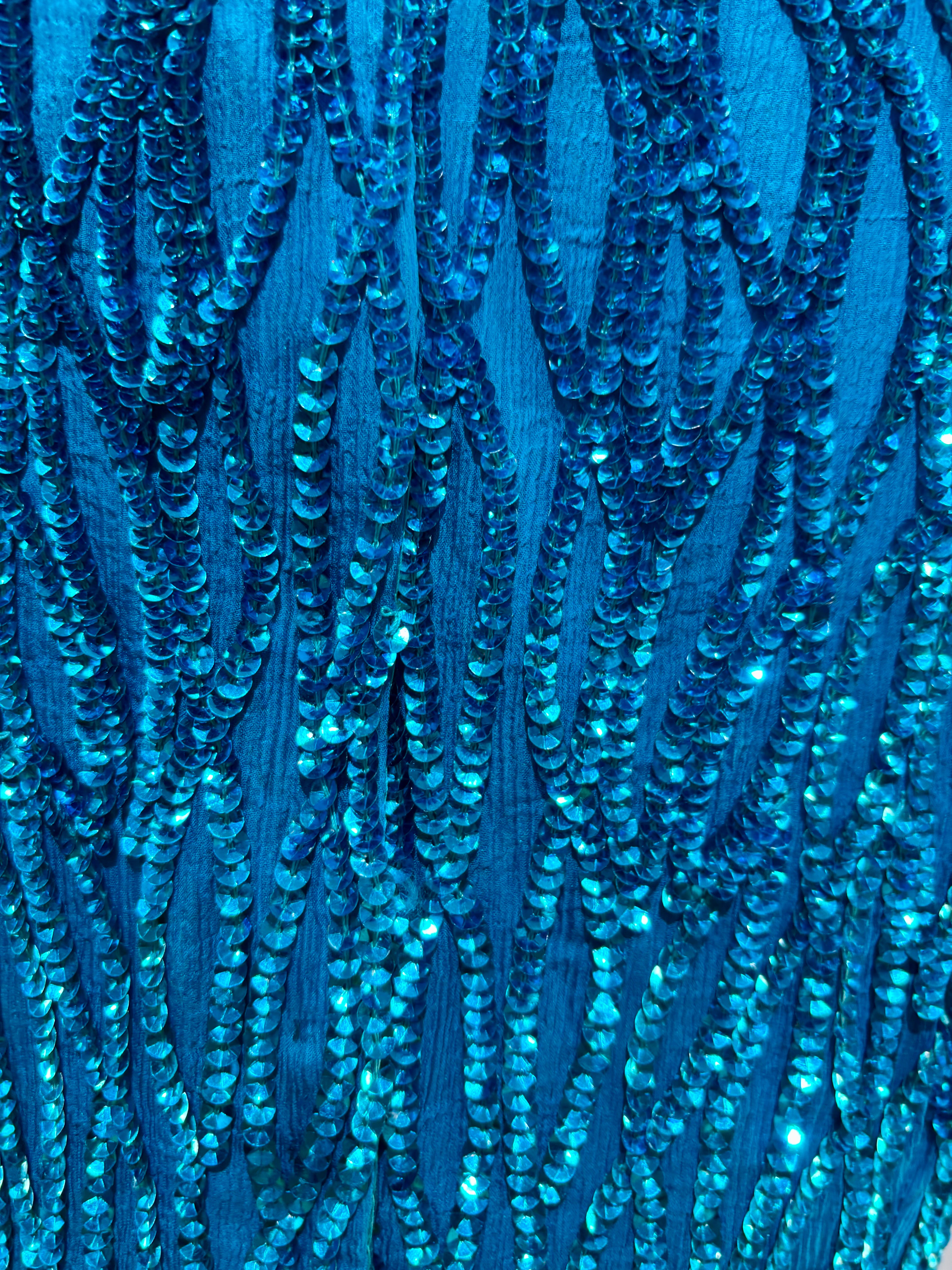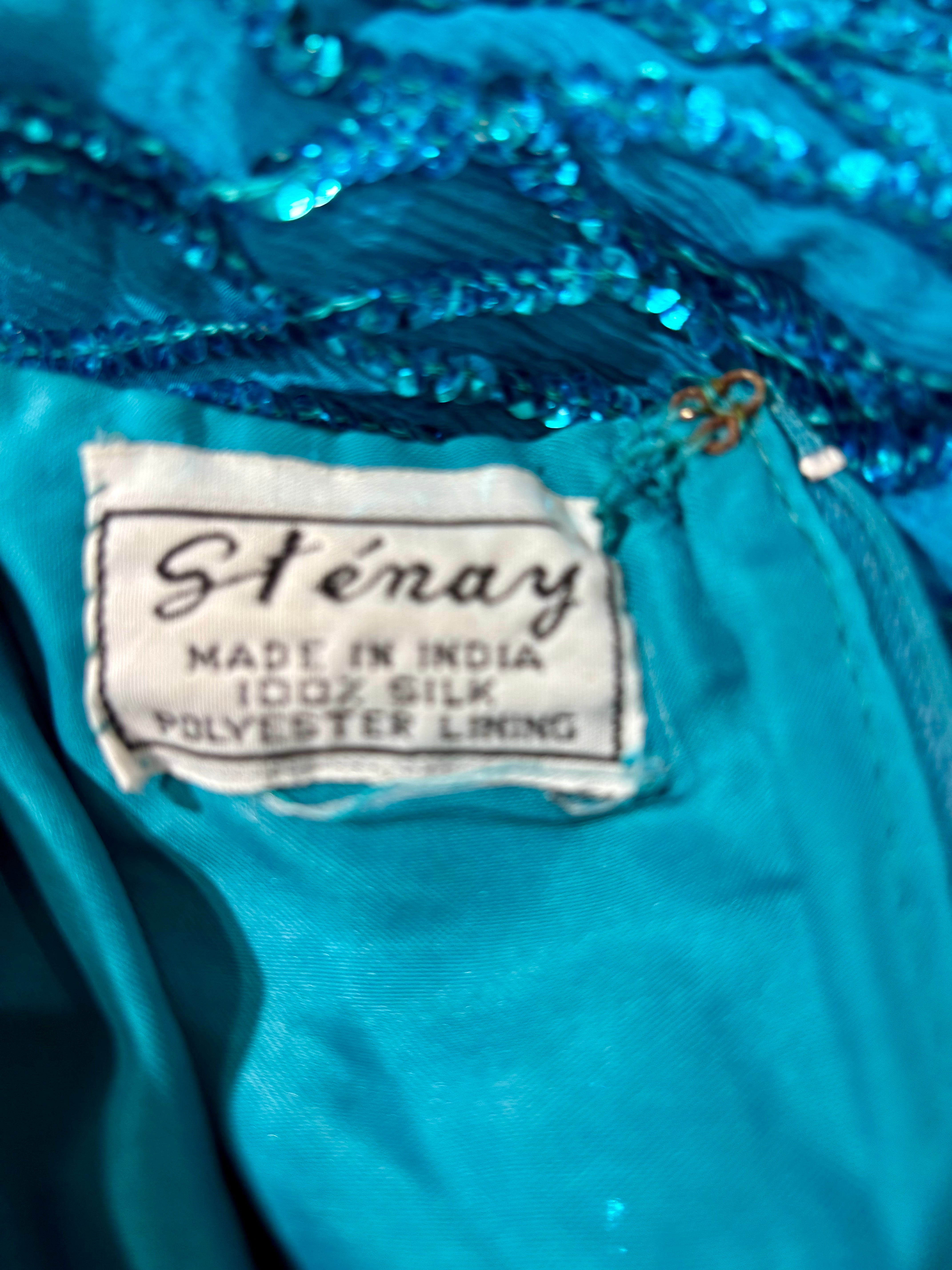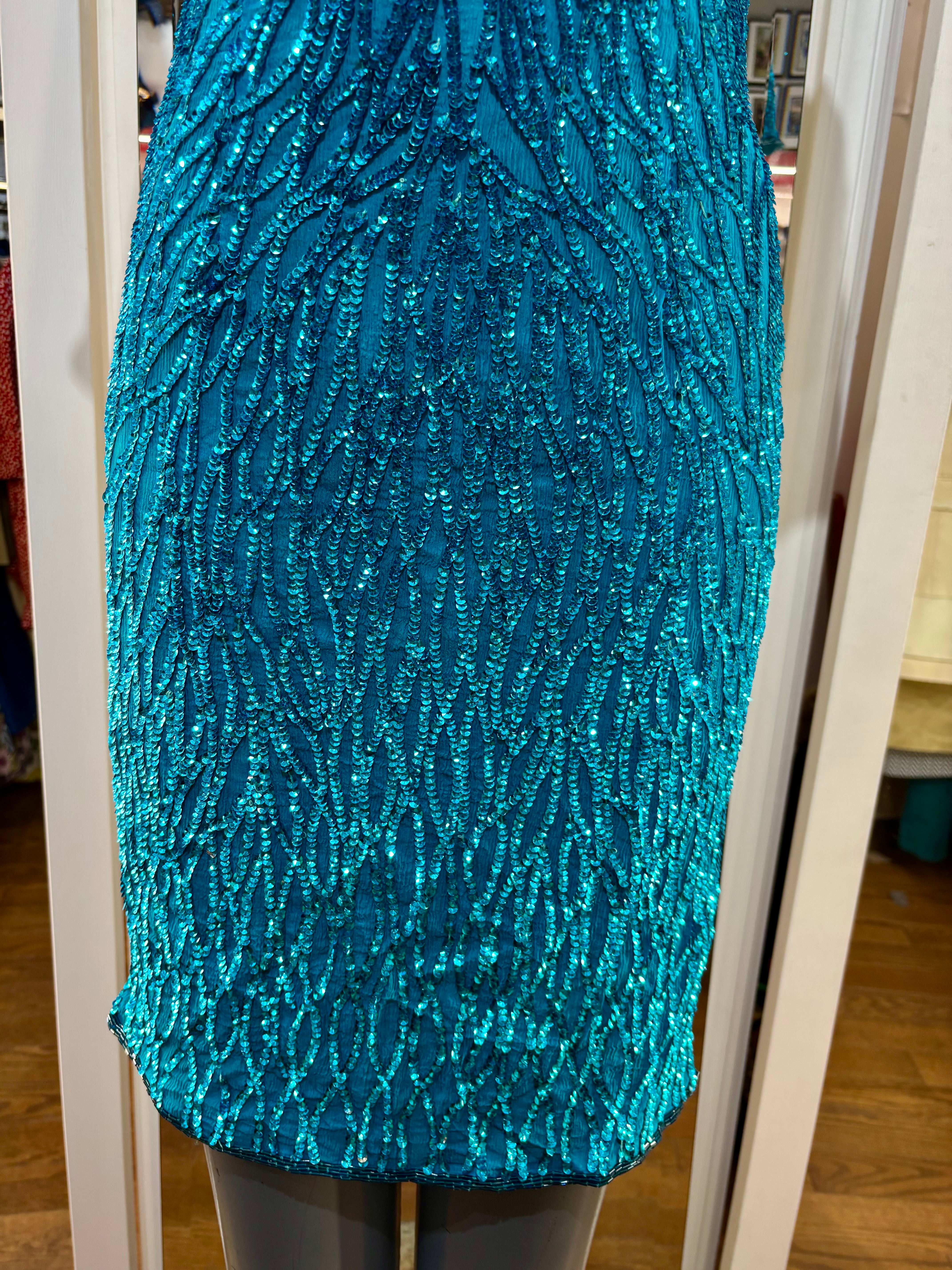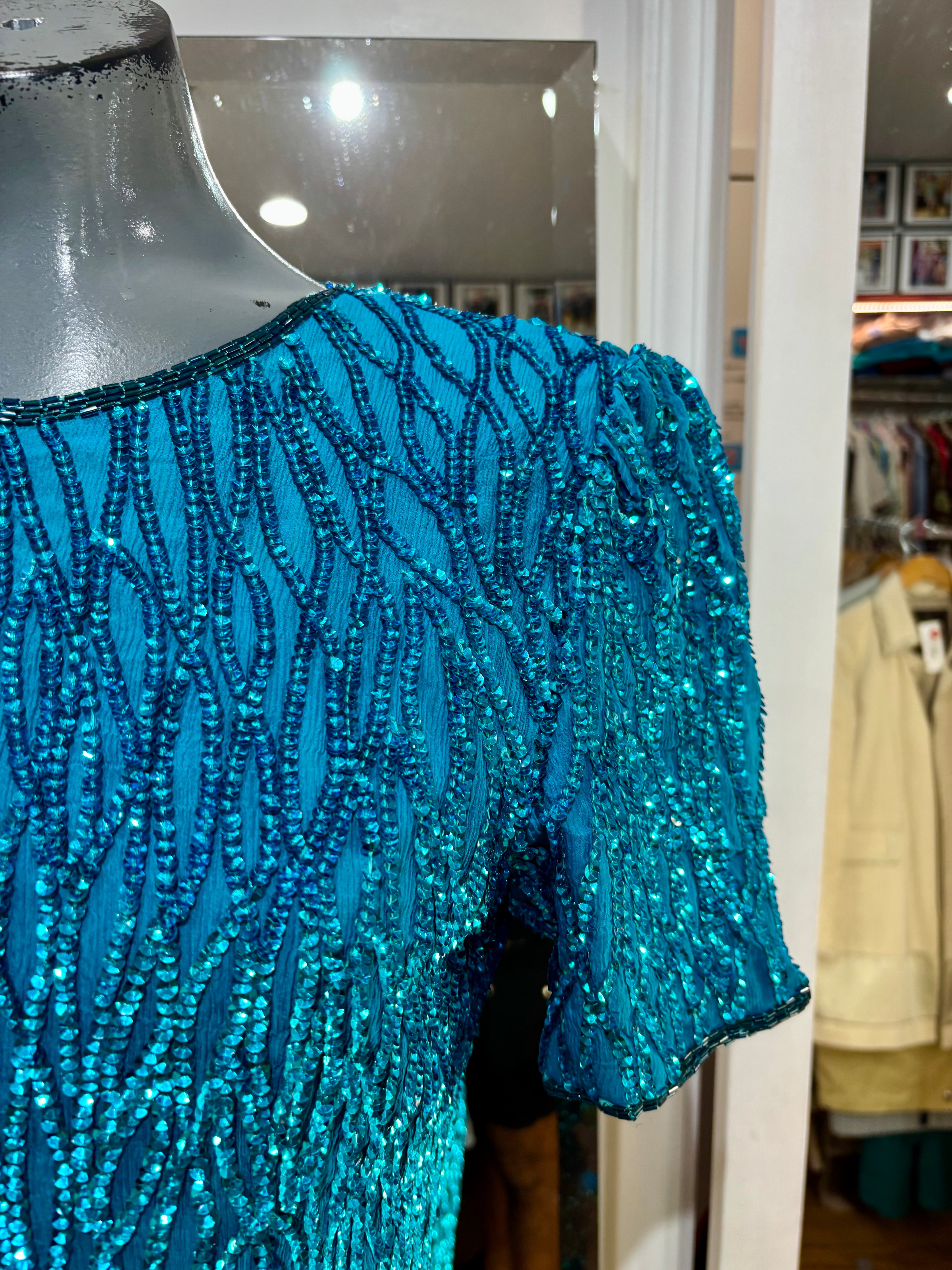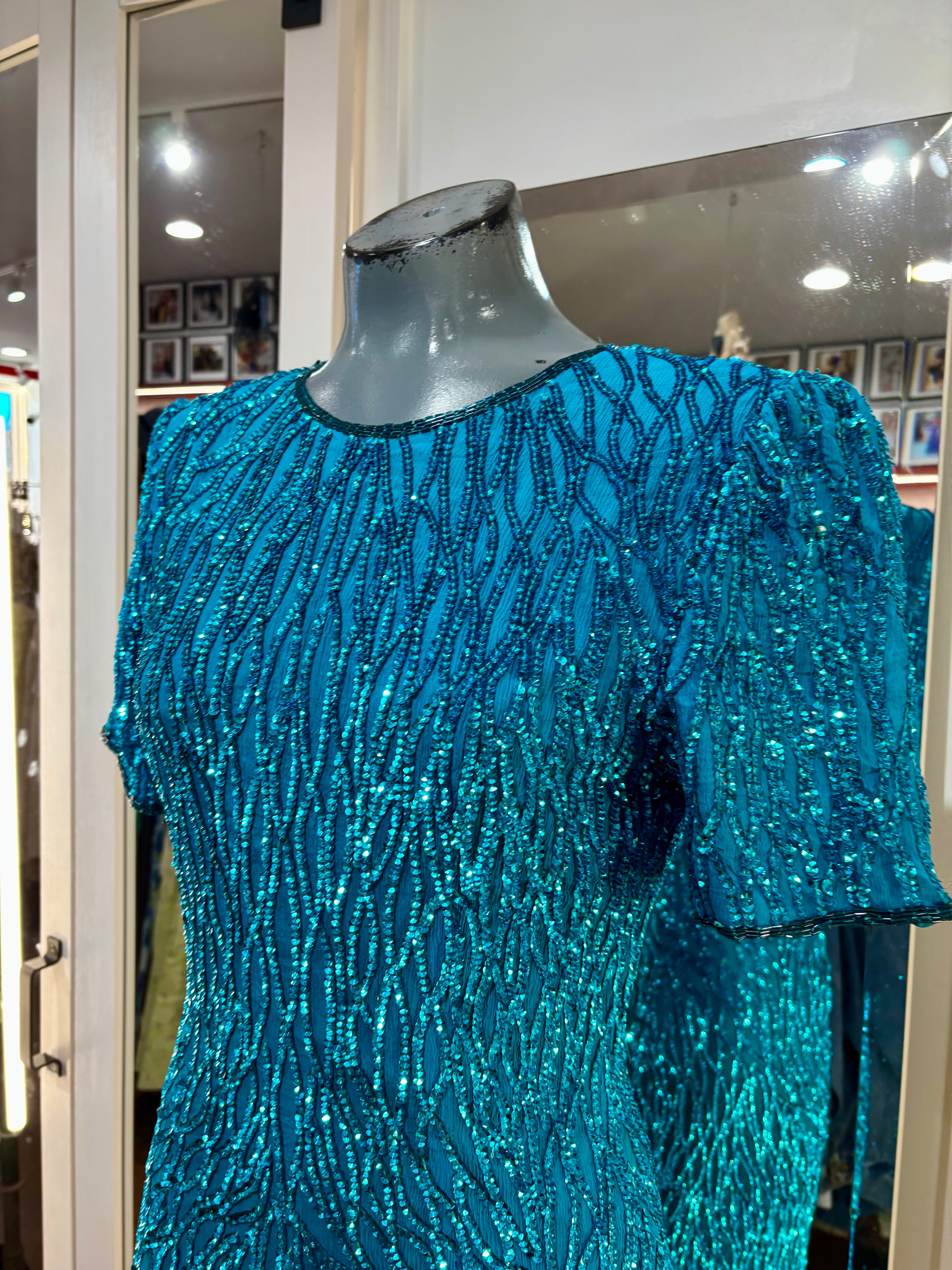 80’s Turquoise Beaded Short Sleeve Dress By Sténay