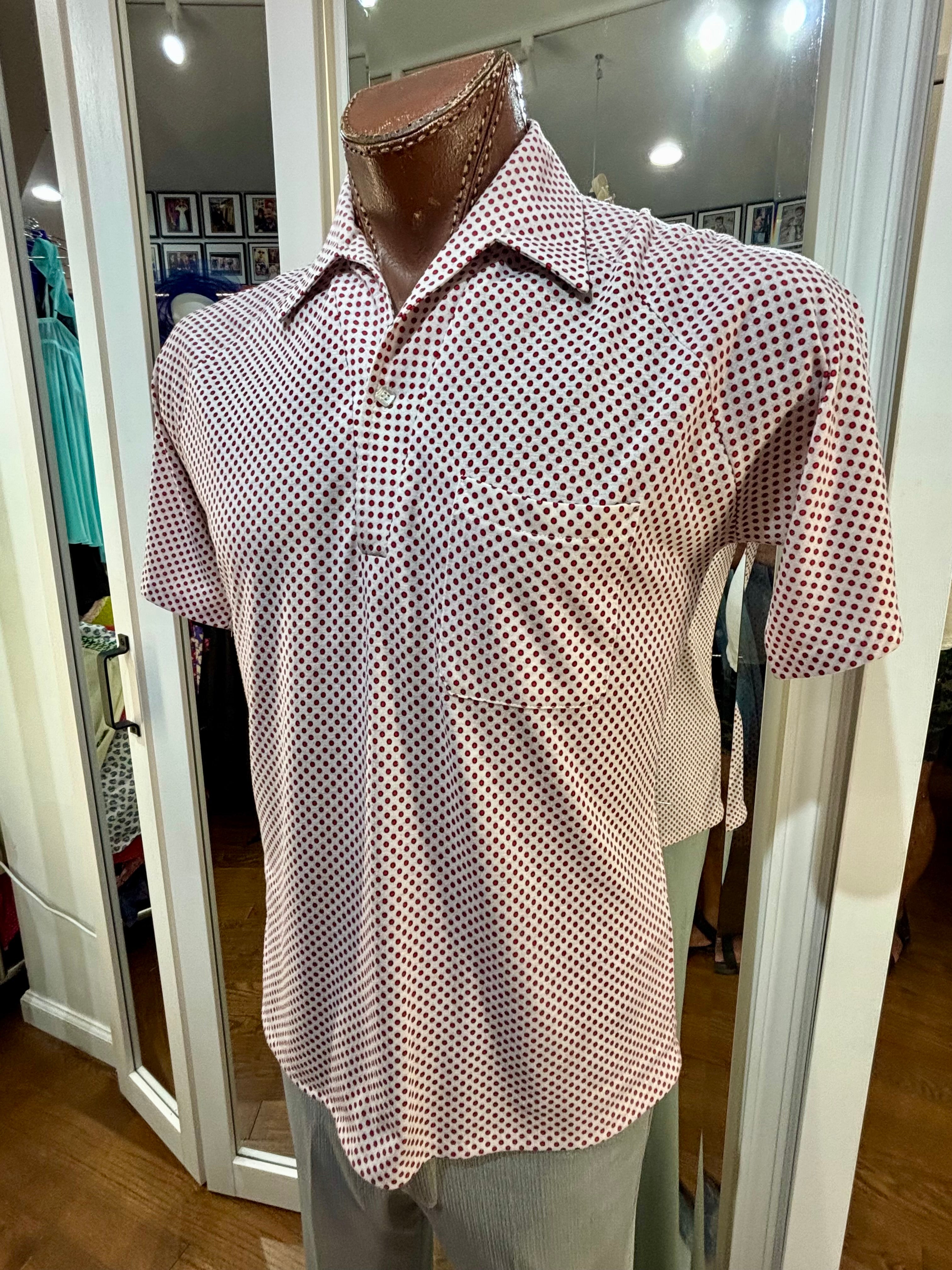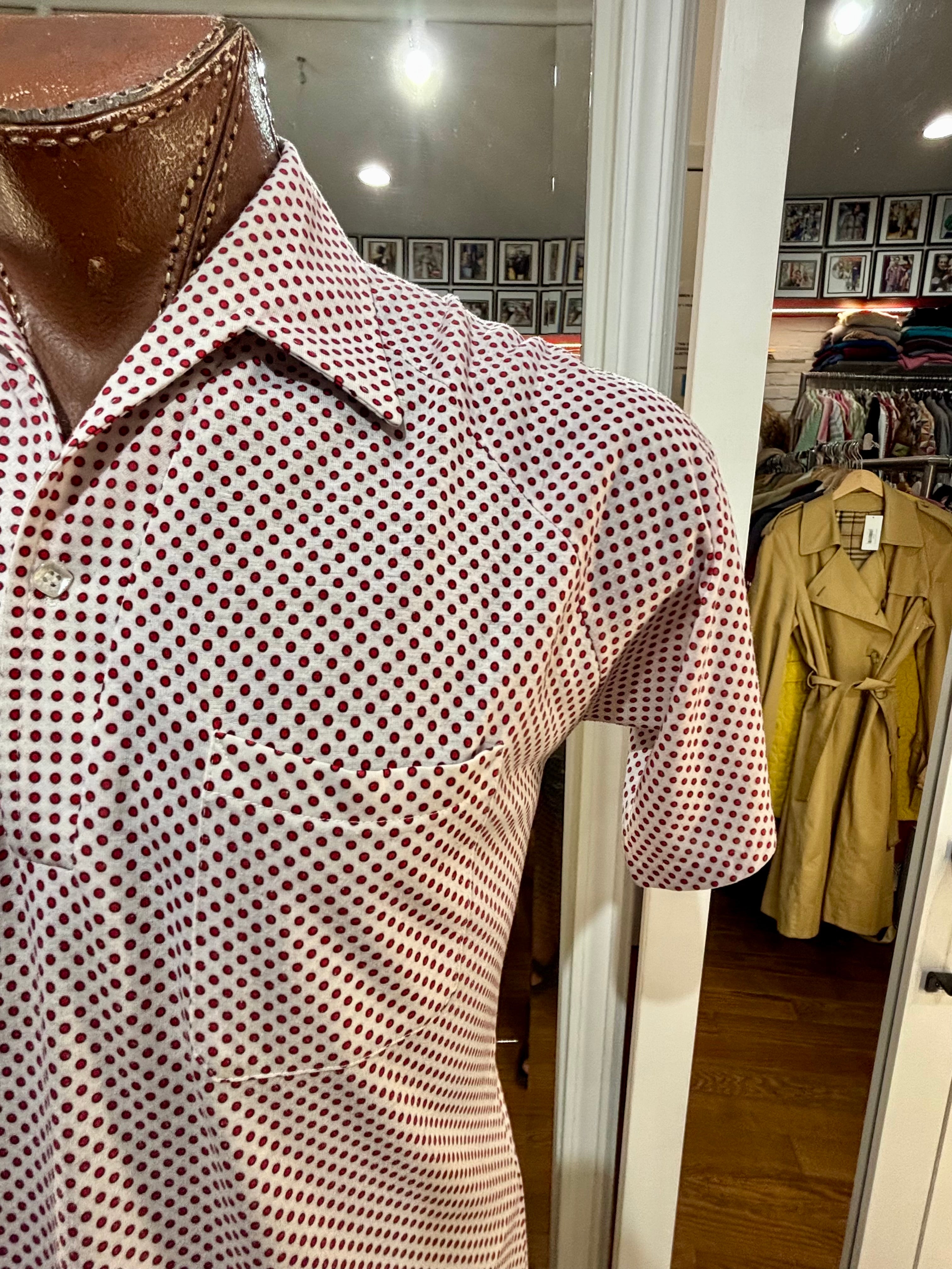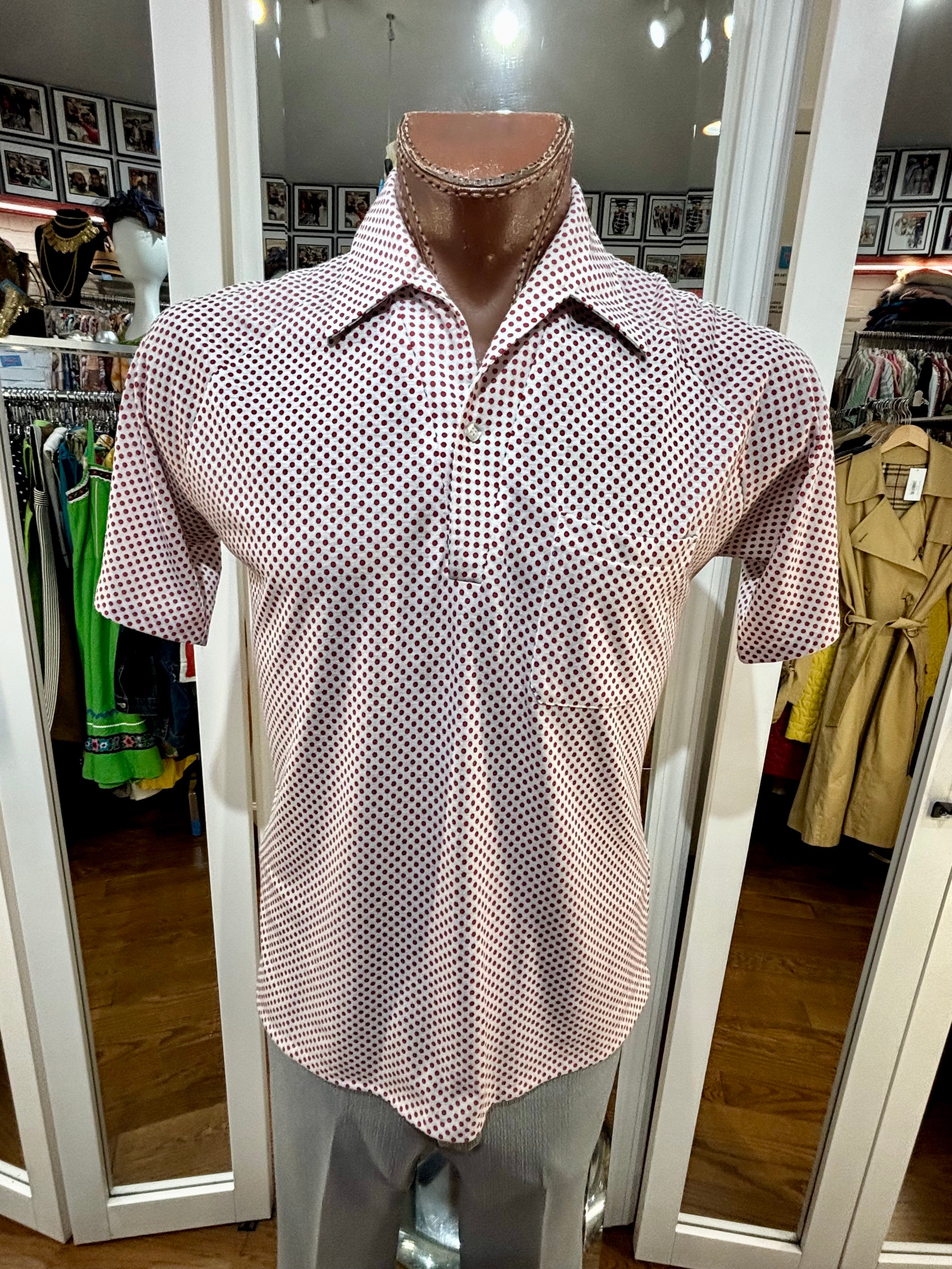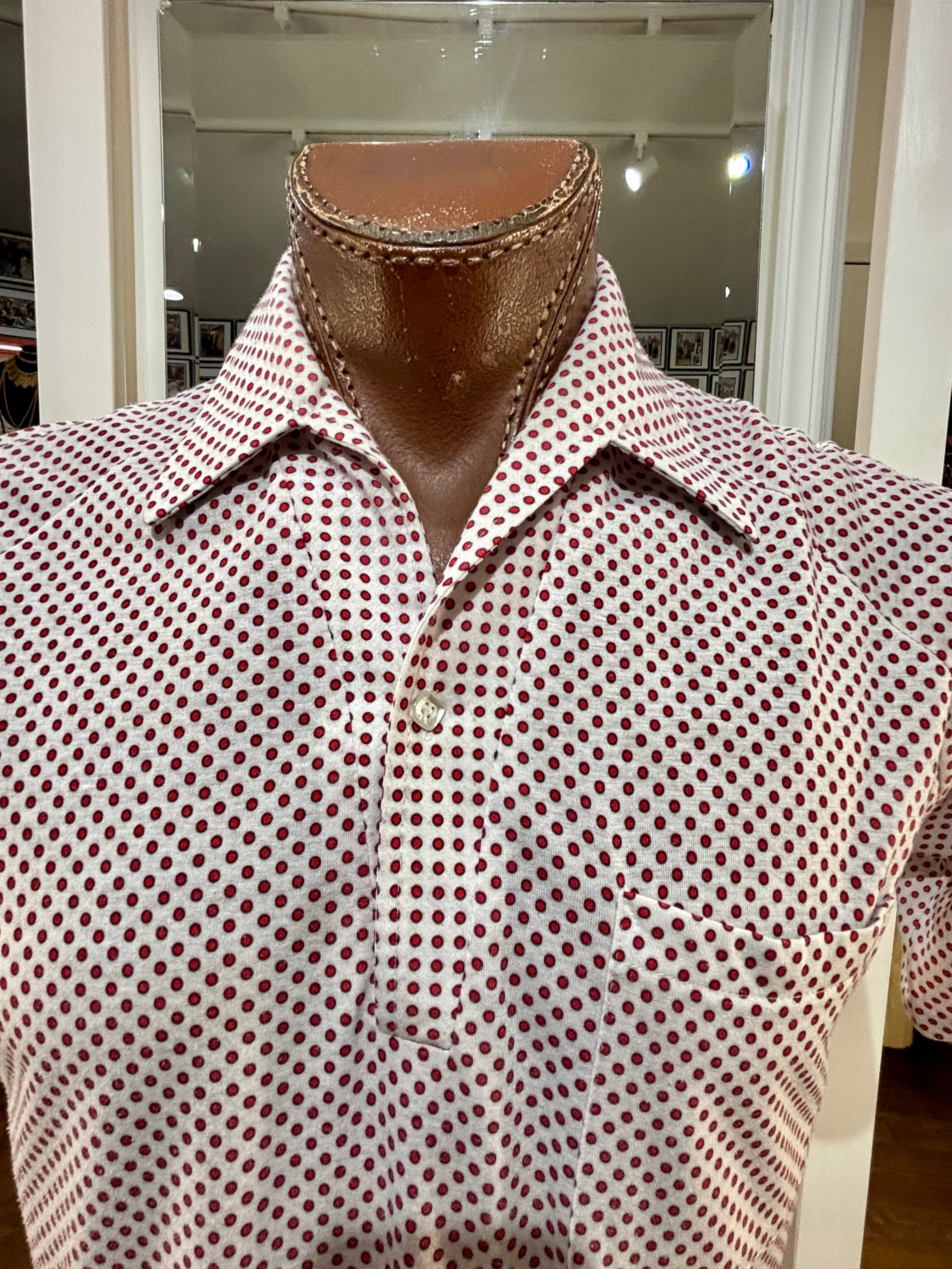 70’s White With Red And Black Dots Collared Disco Polo By Resort Ware