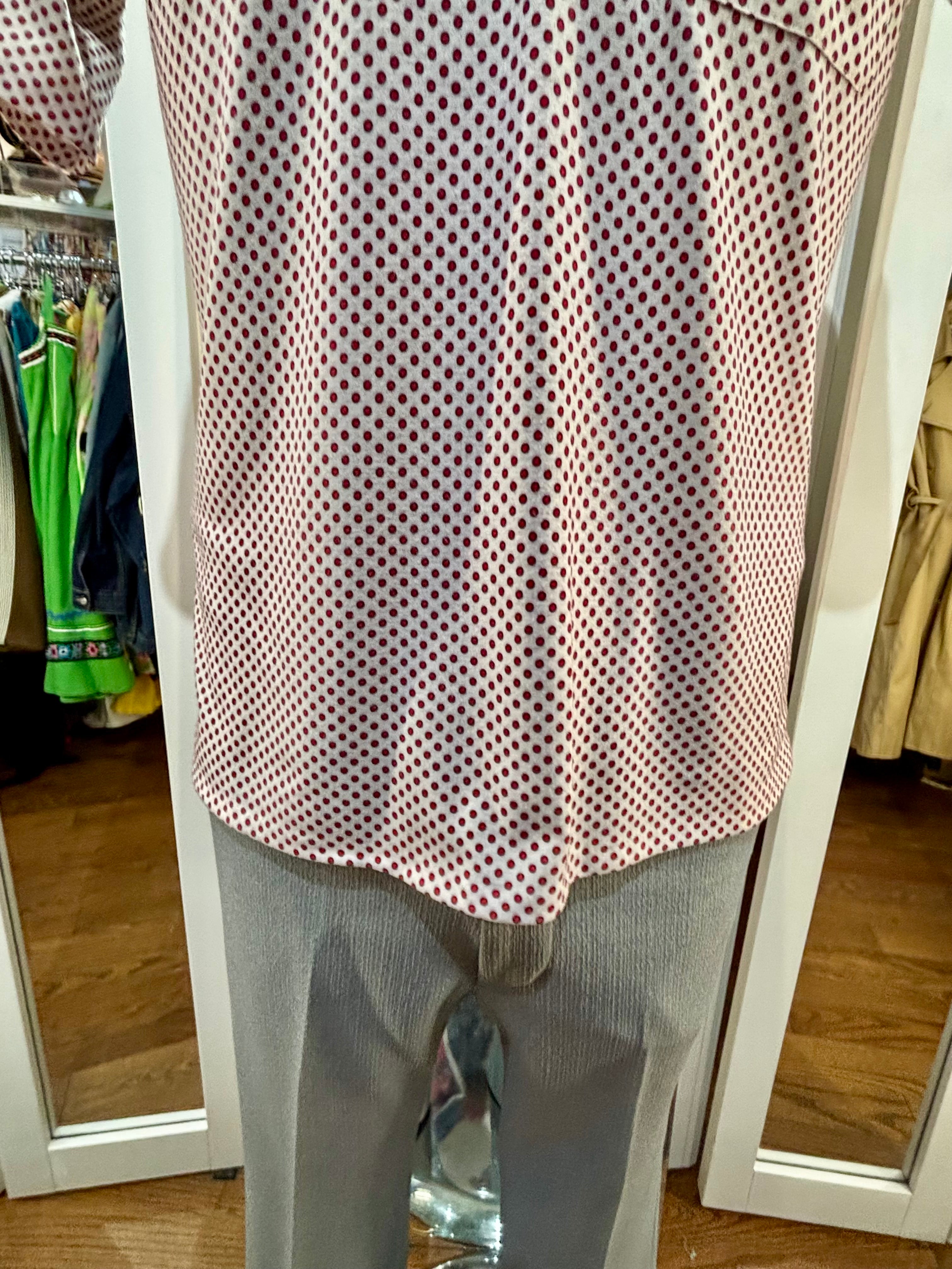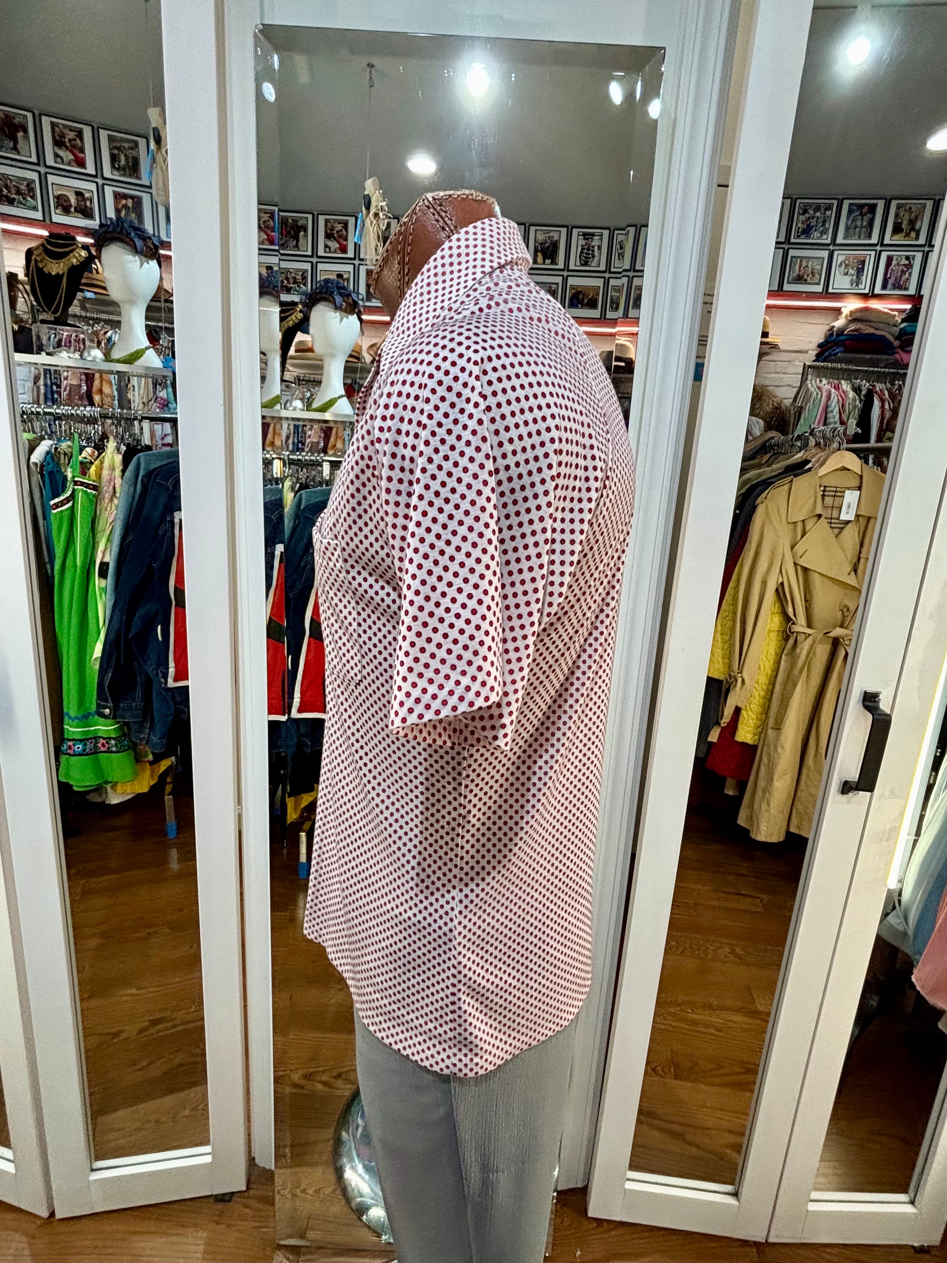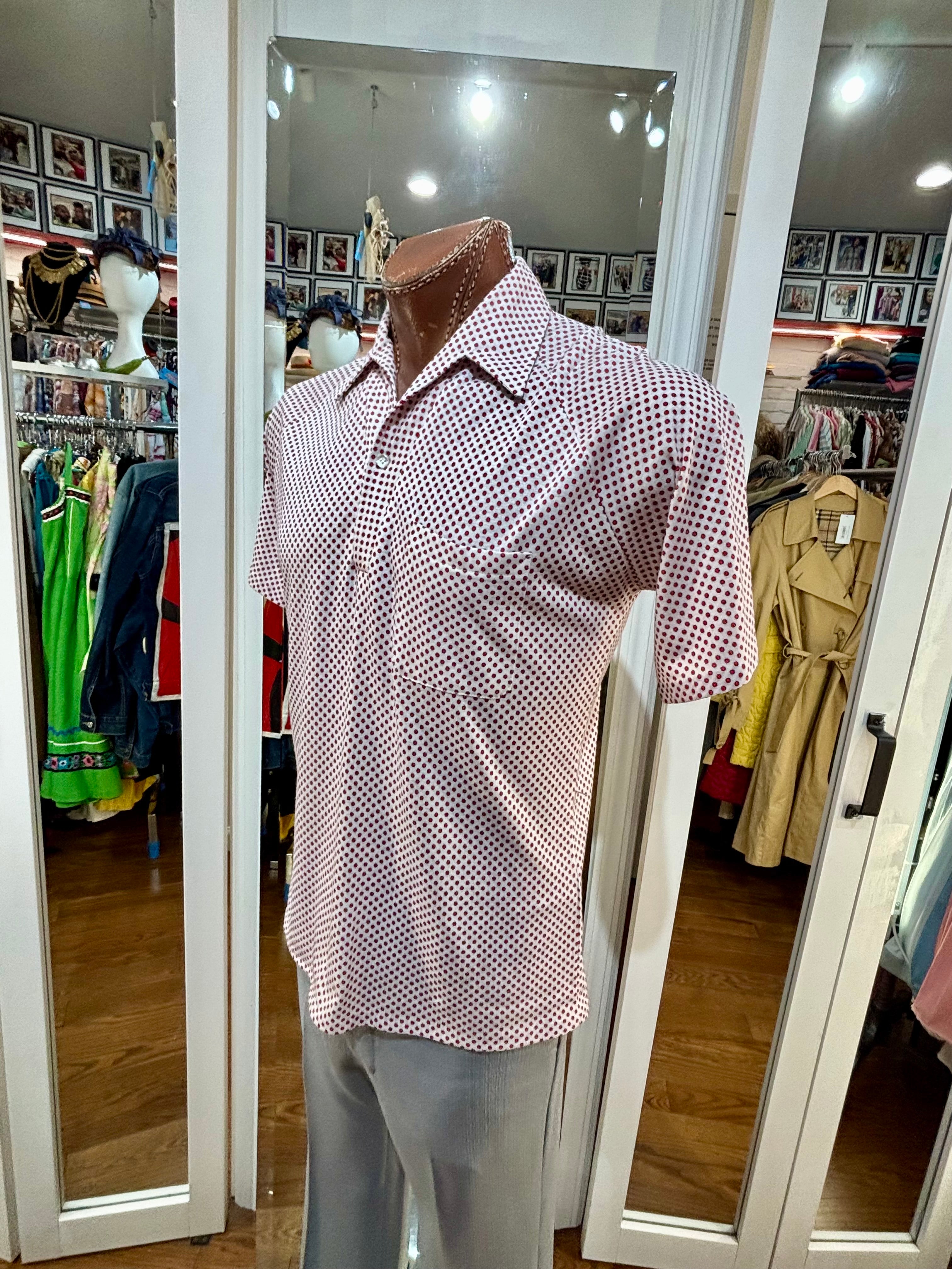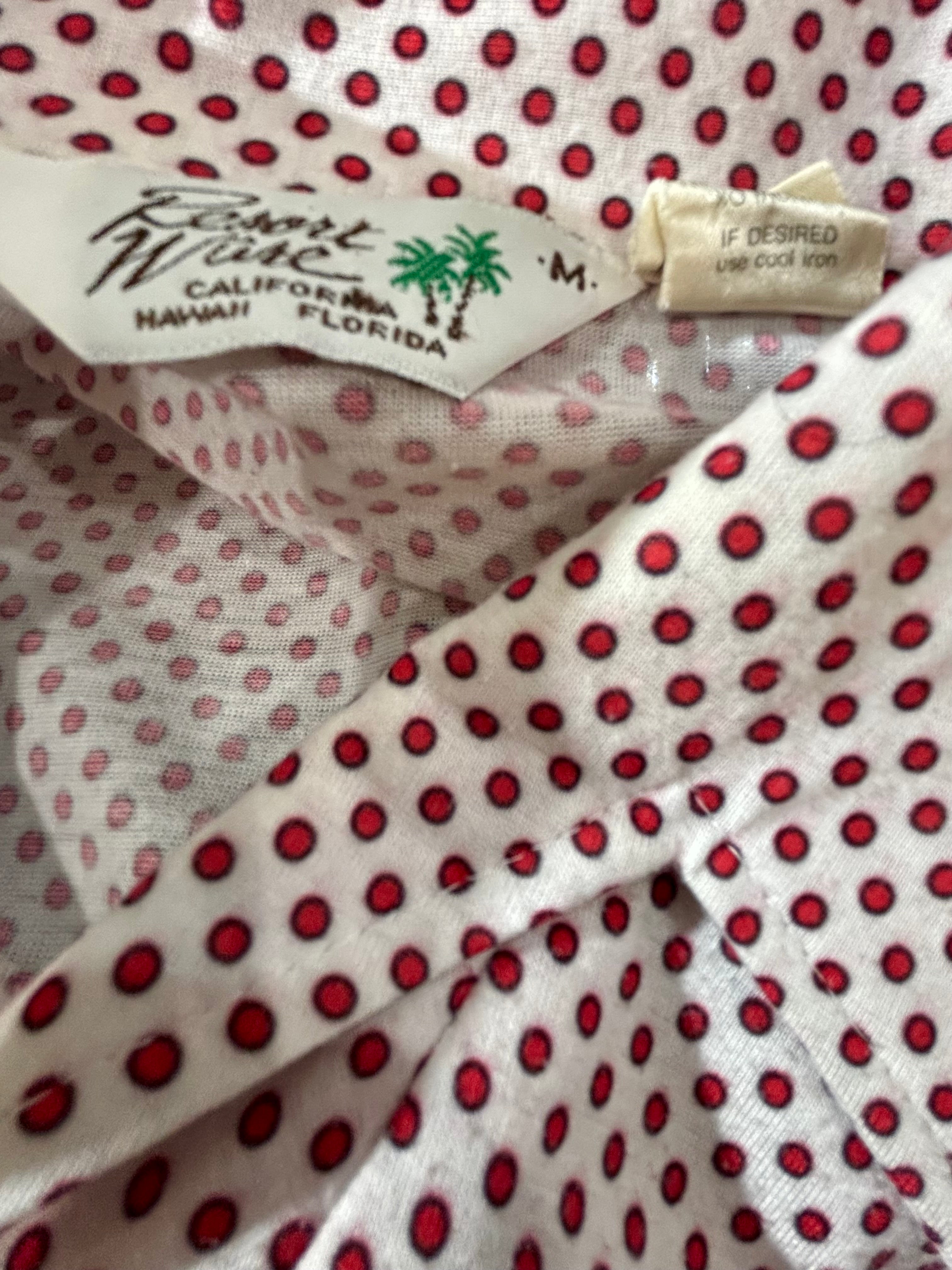 70’s White With Red And Black Dots Collared Disco Polo By Resort Ware