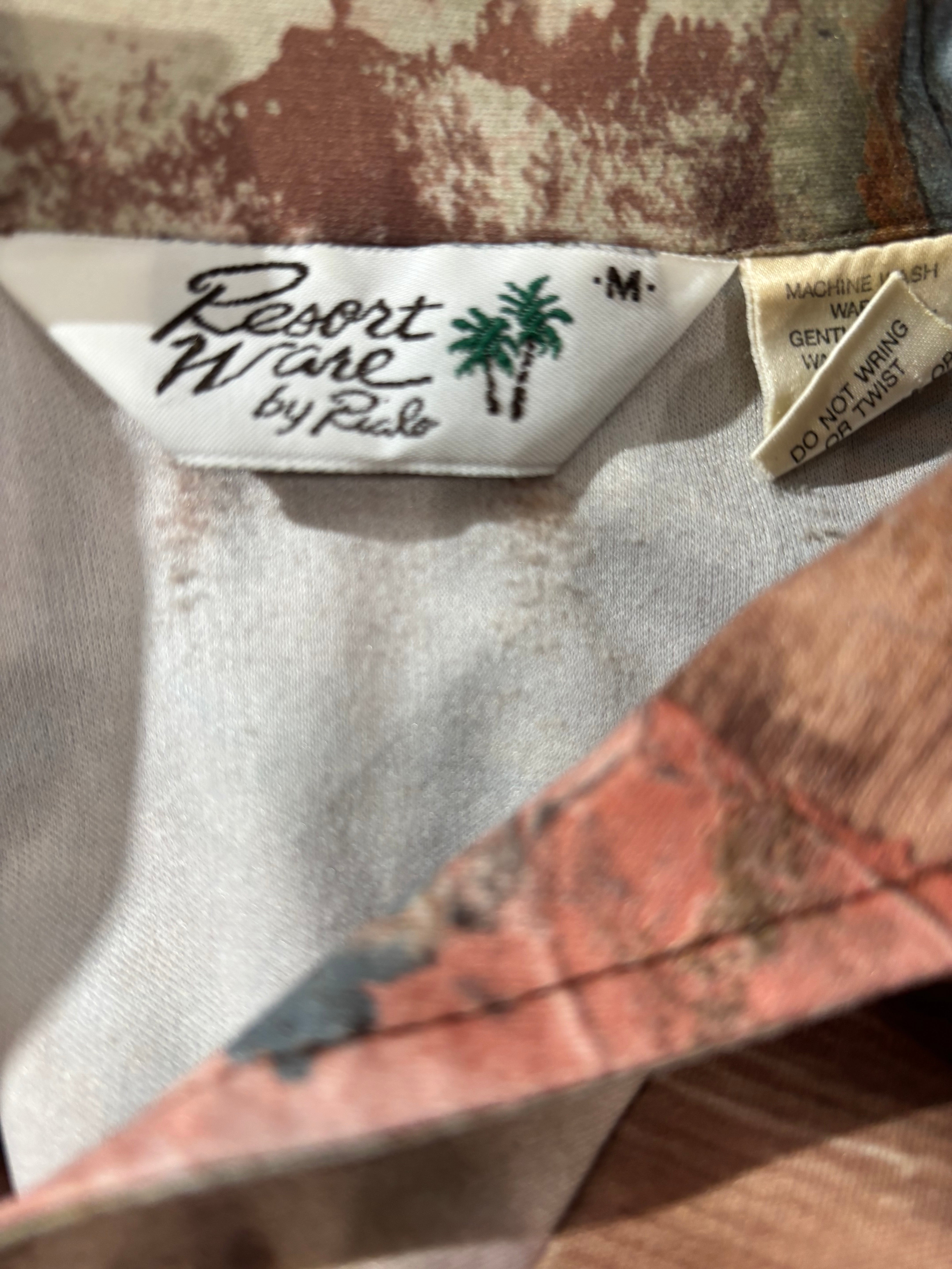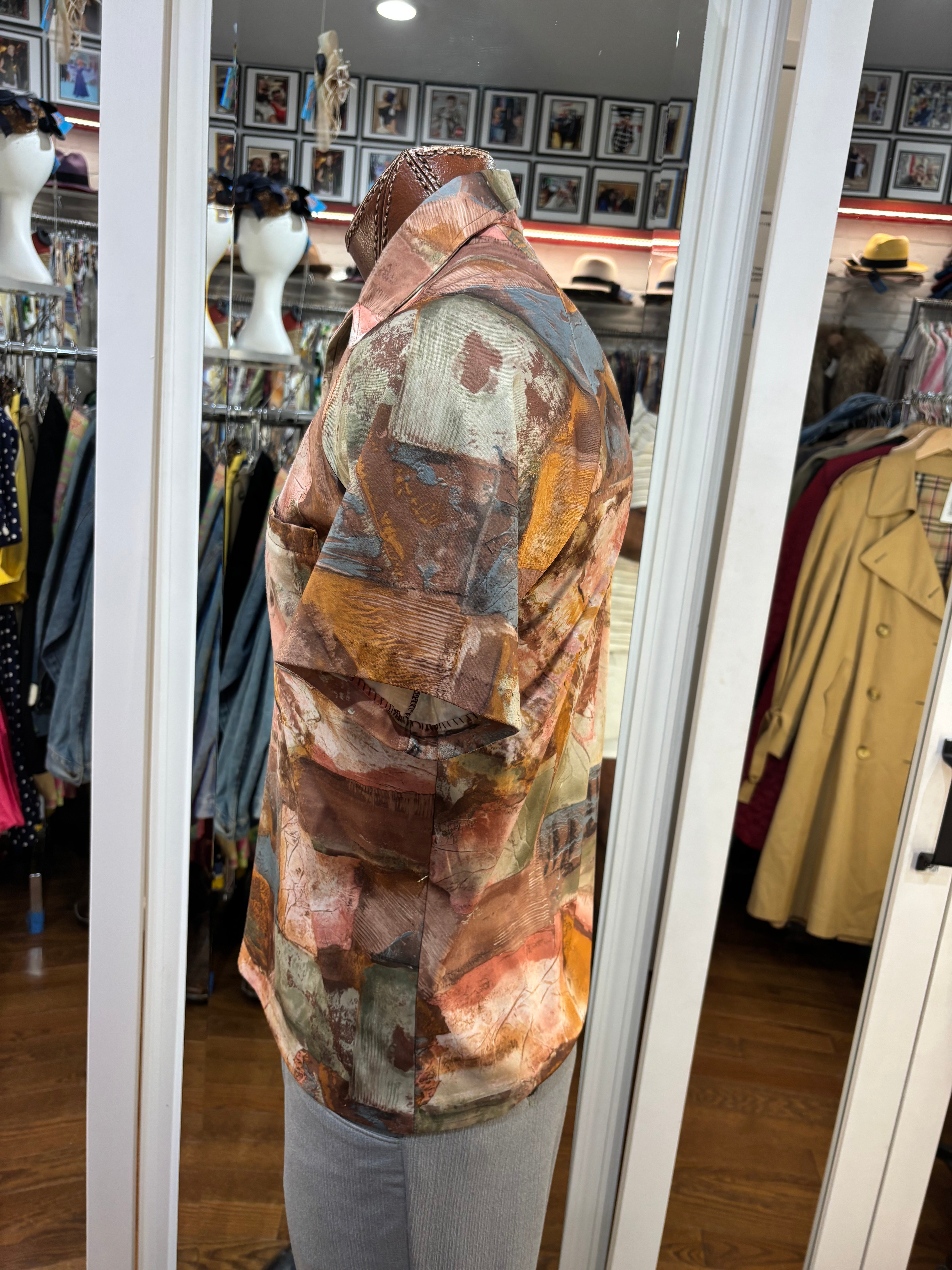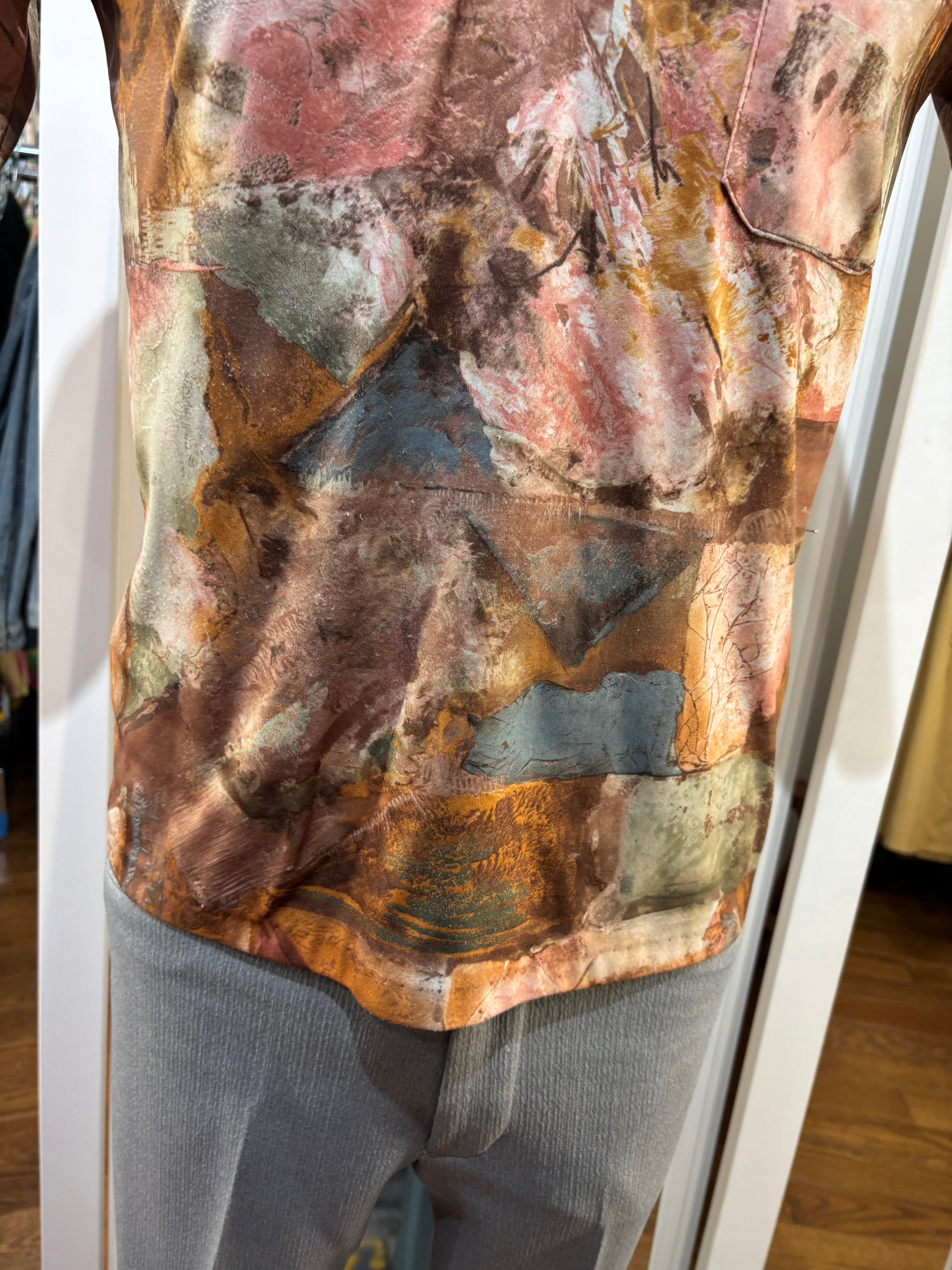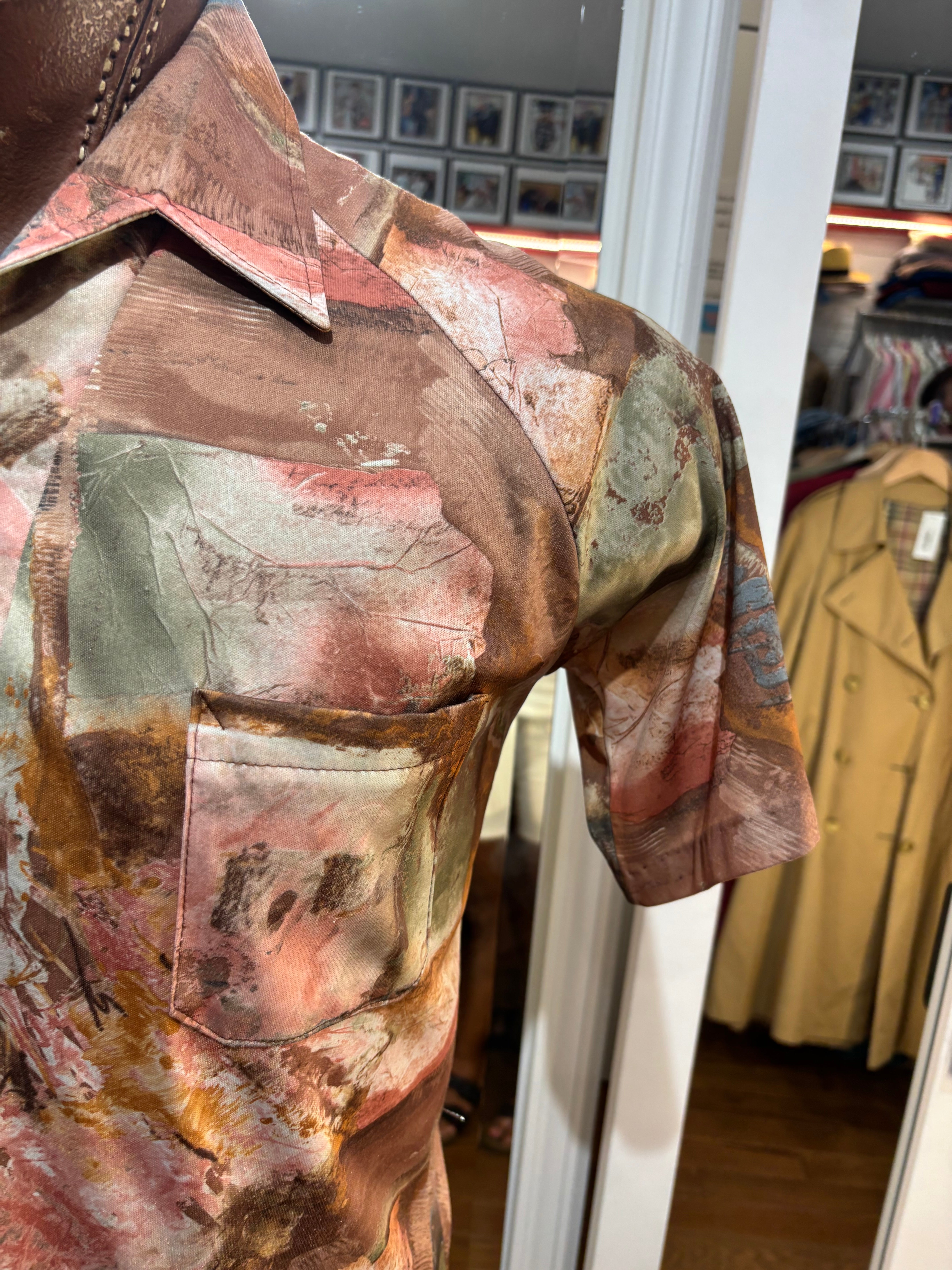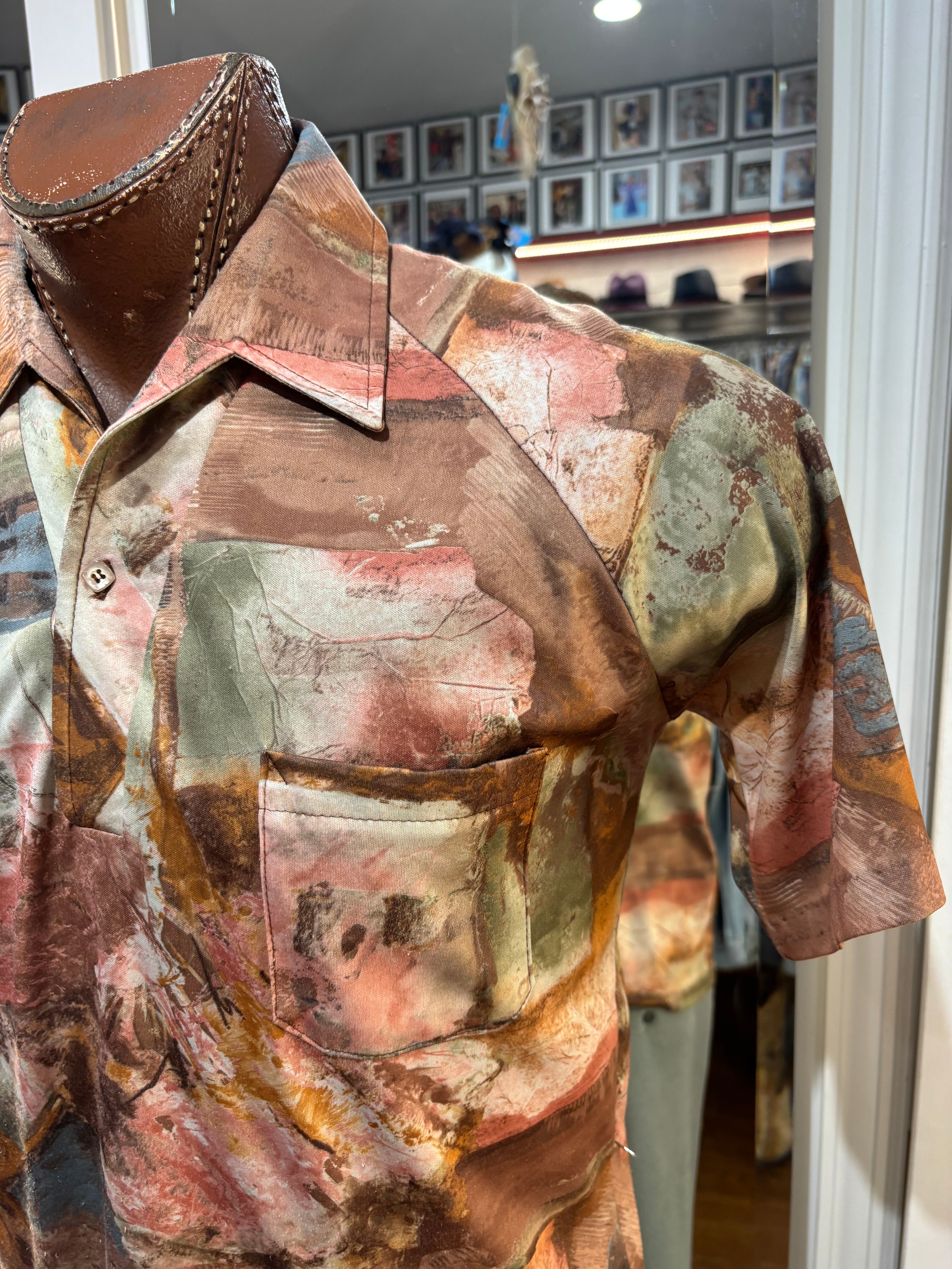 70’s Brown Abstract Multicolor Print Collared Disco Polo Shirt By Resort Ware