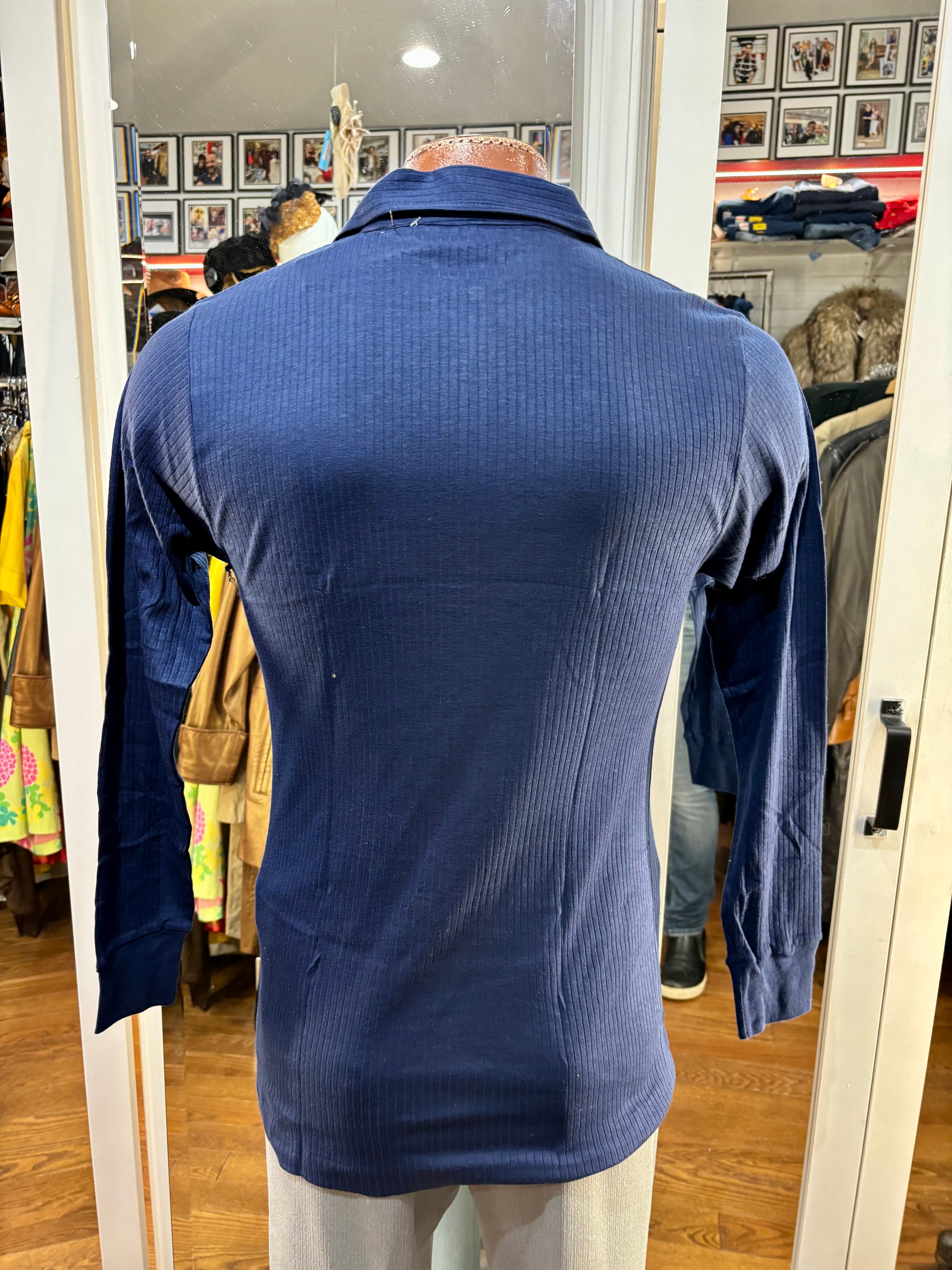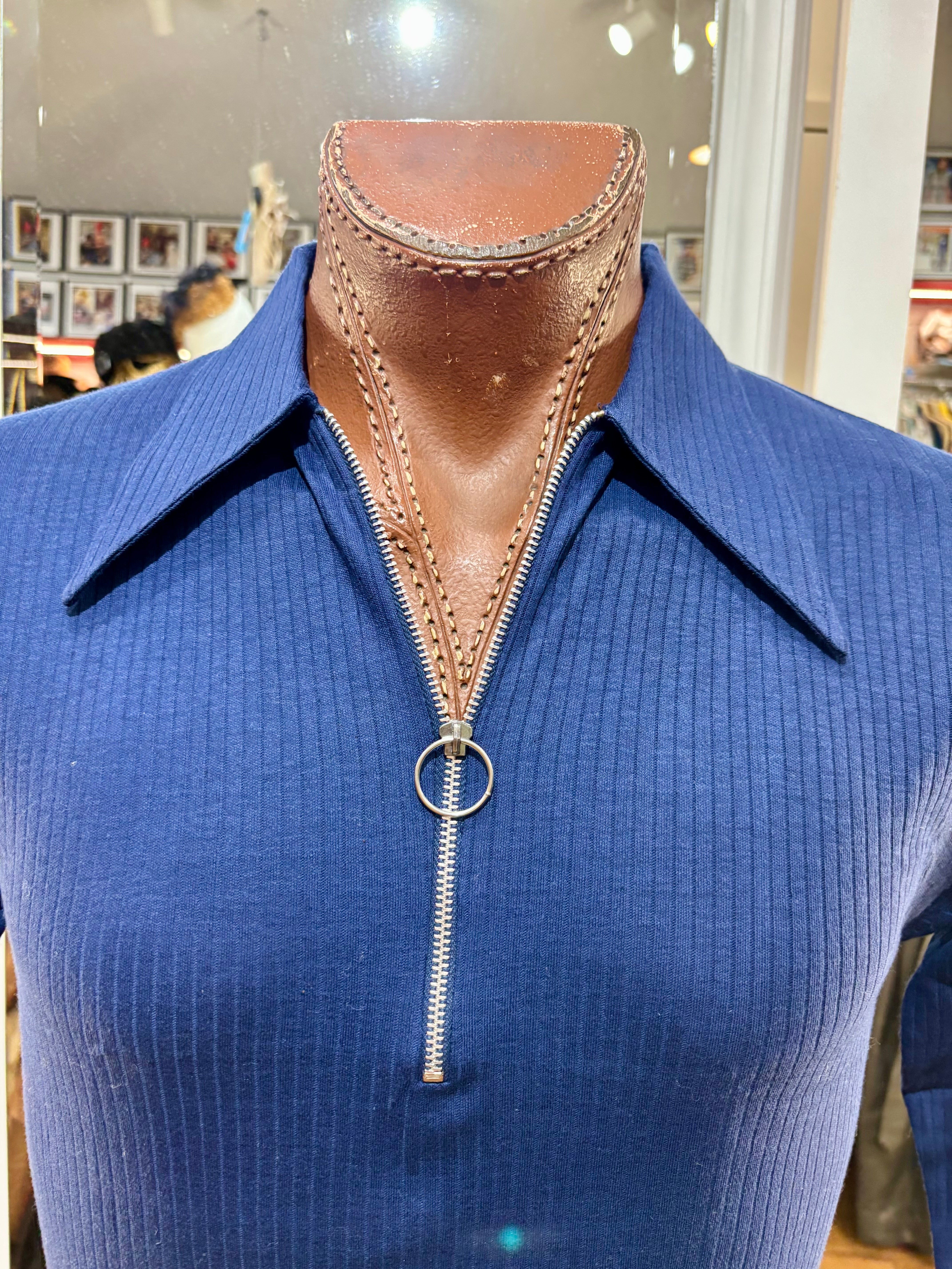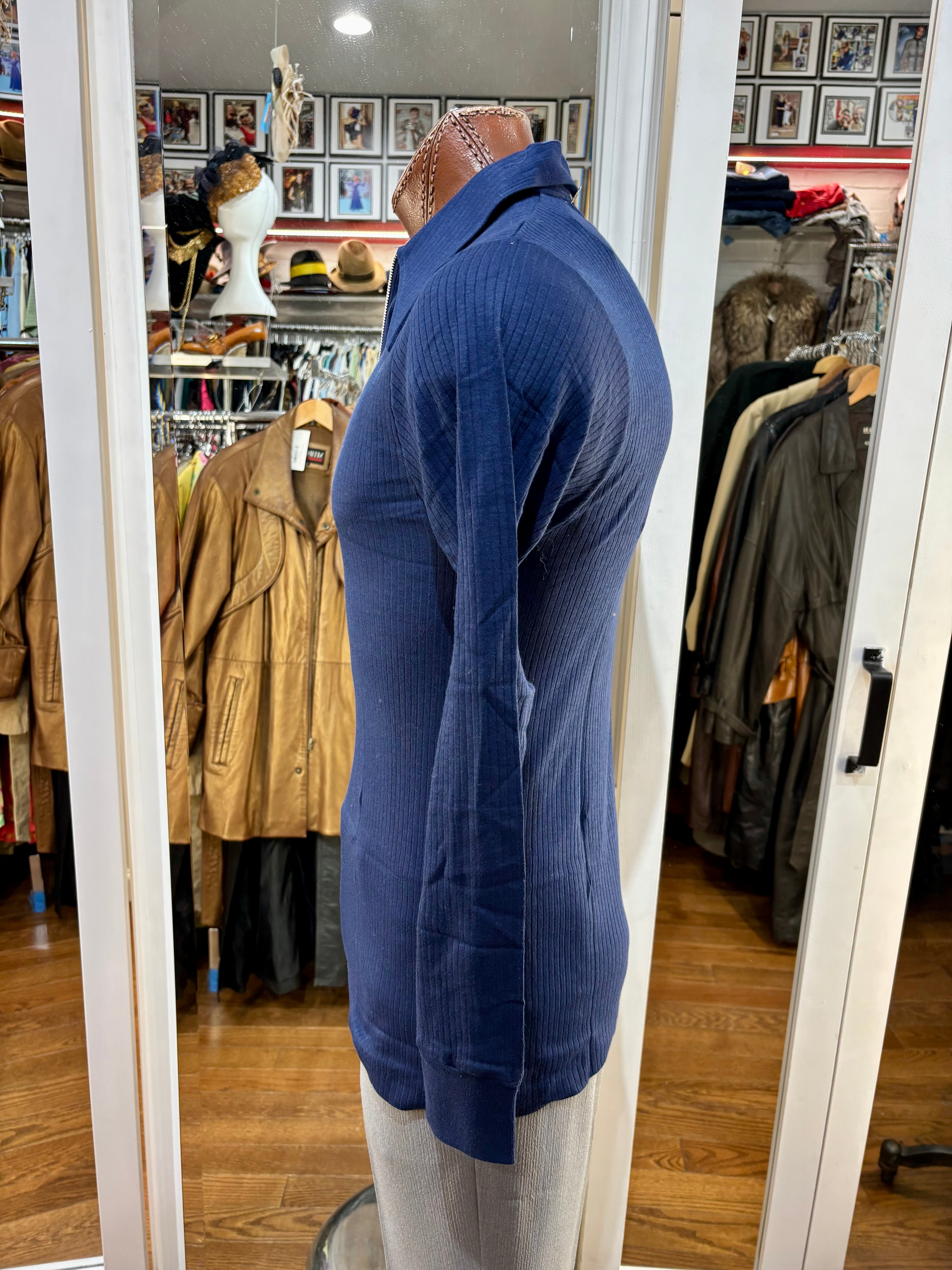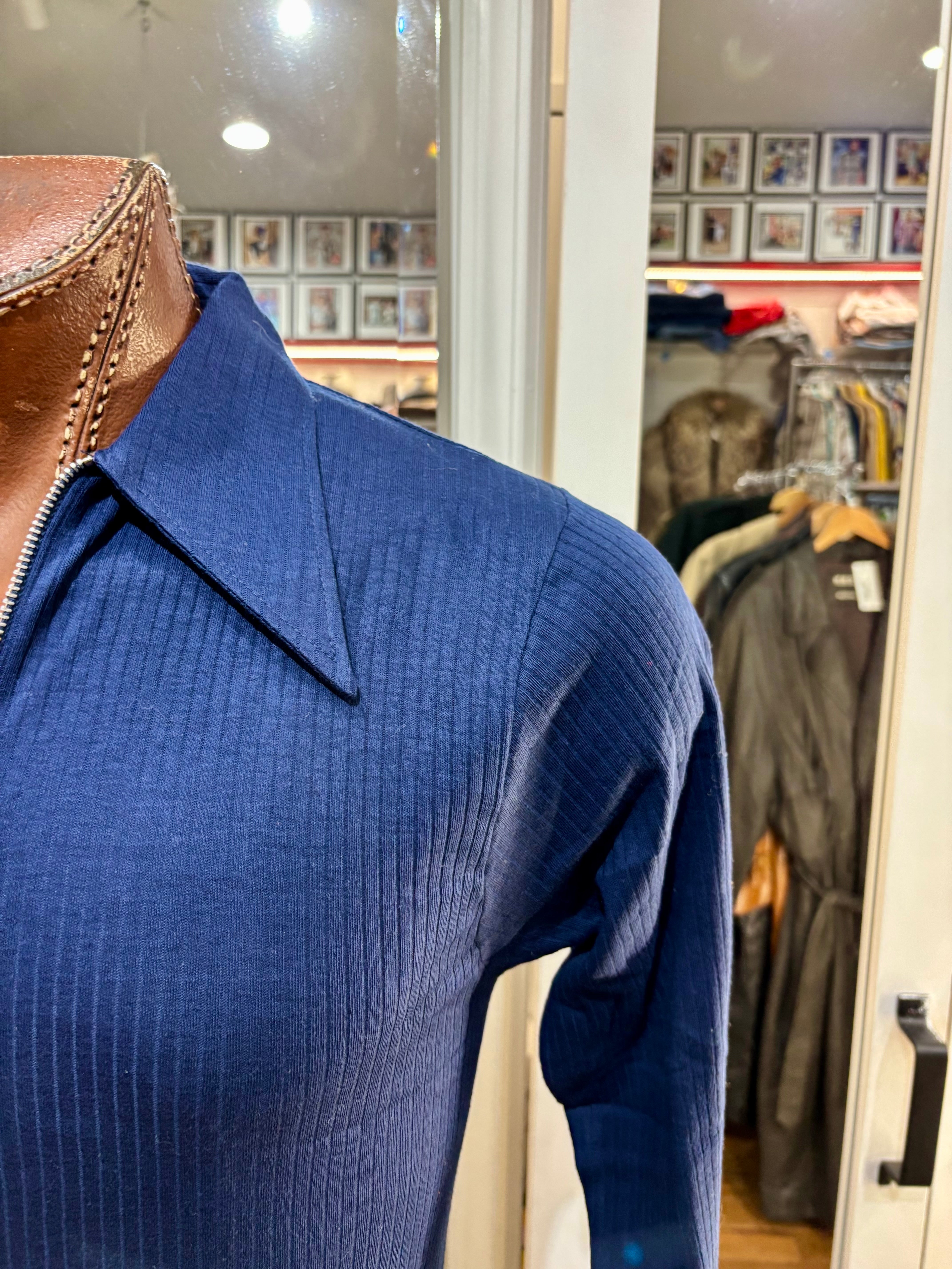 70’s Navy Zip Collar Collared Pull By Smartex Combed