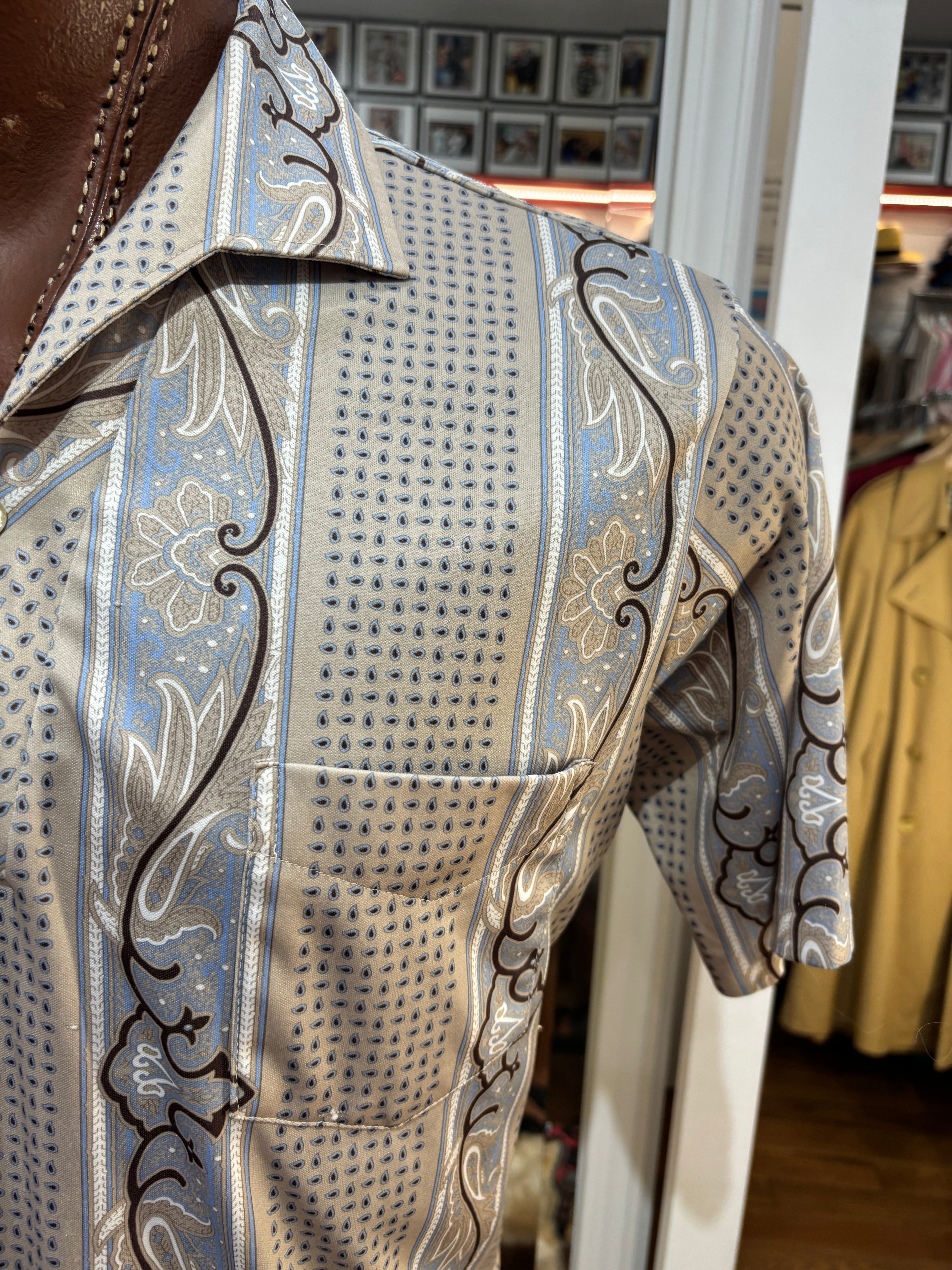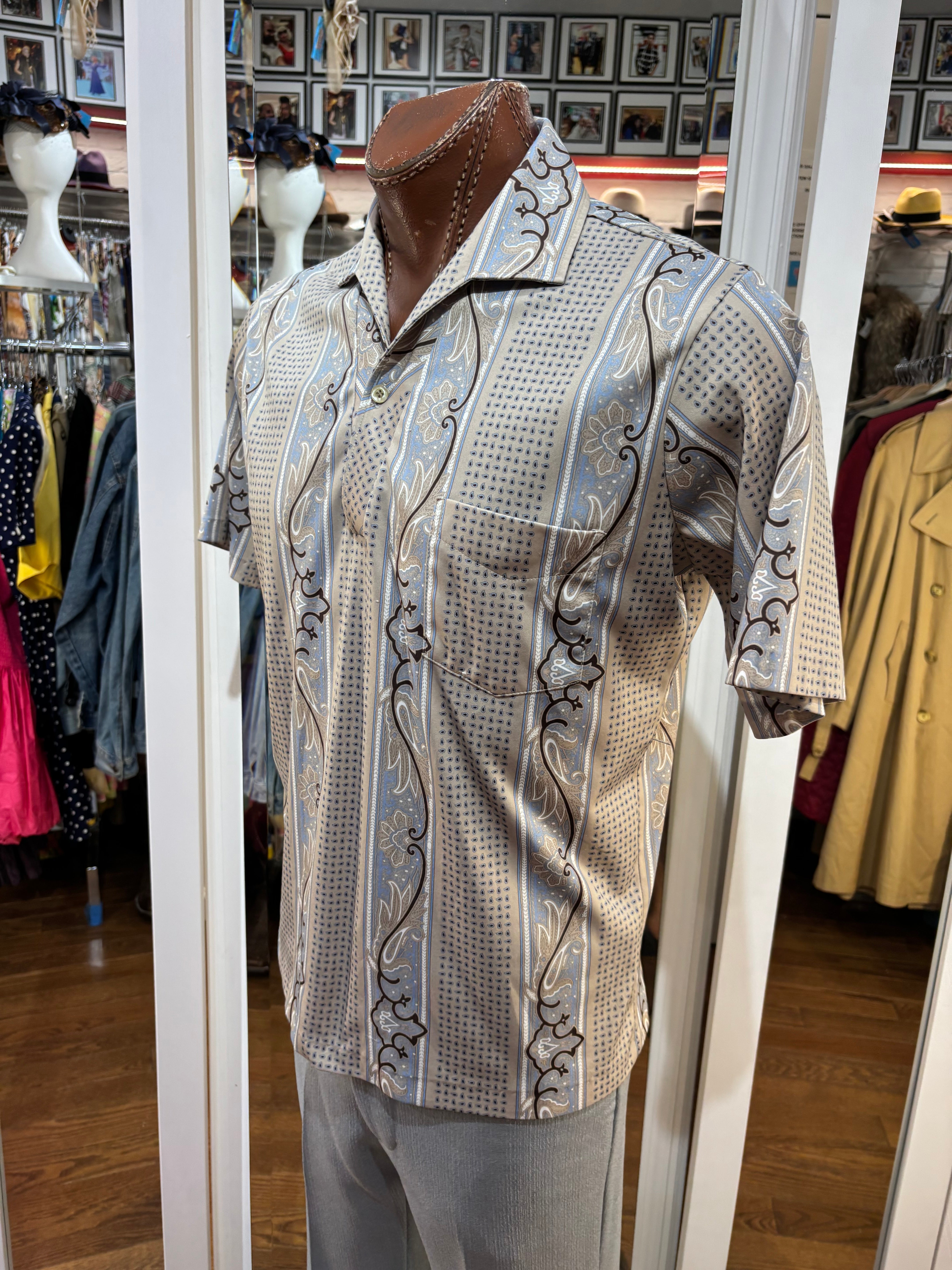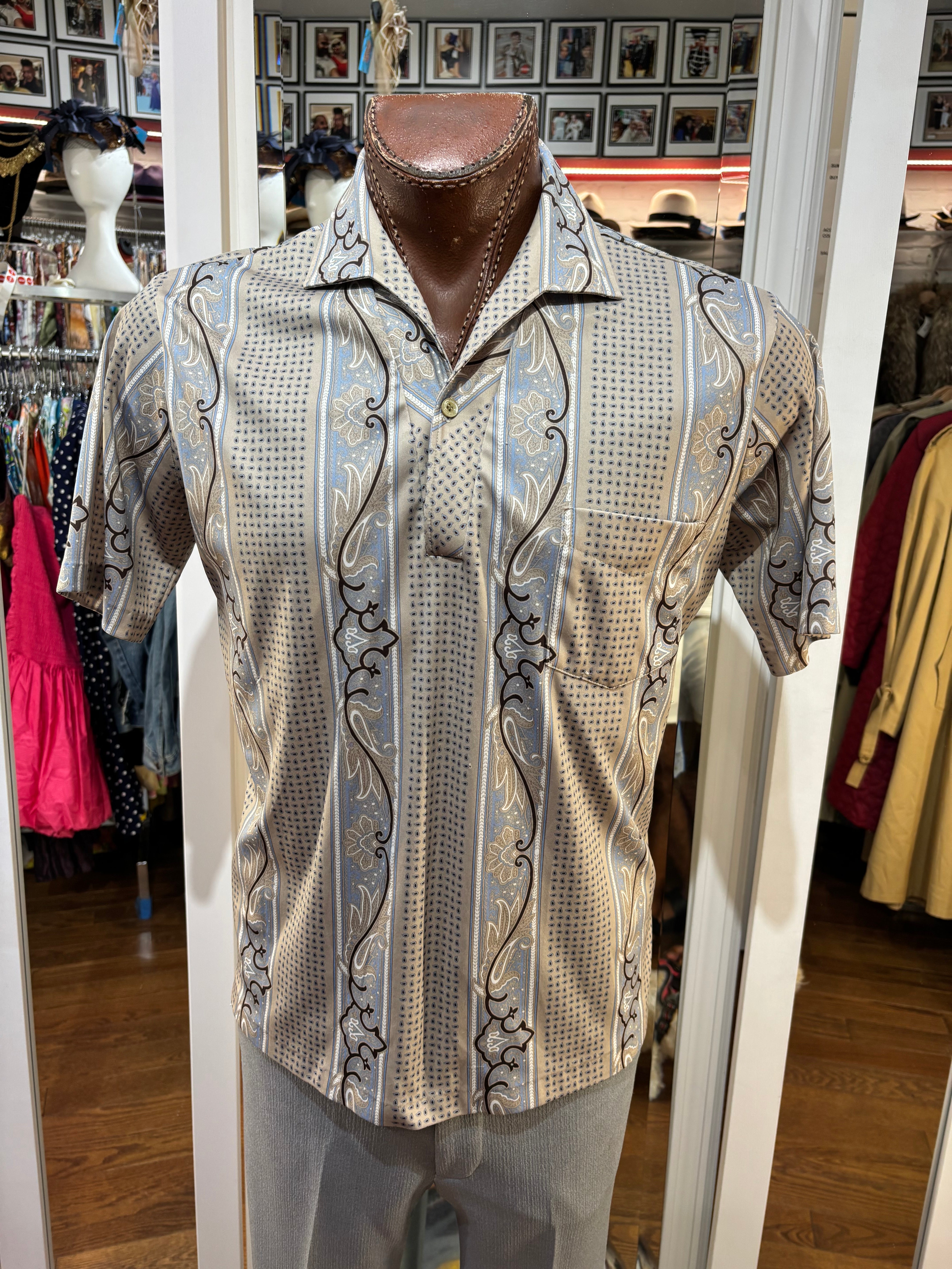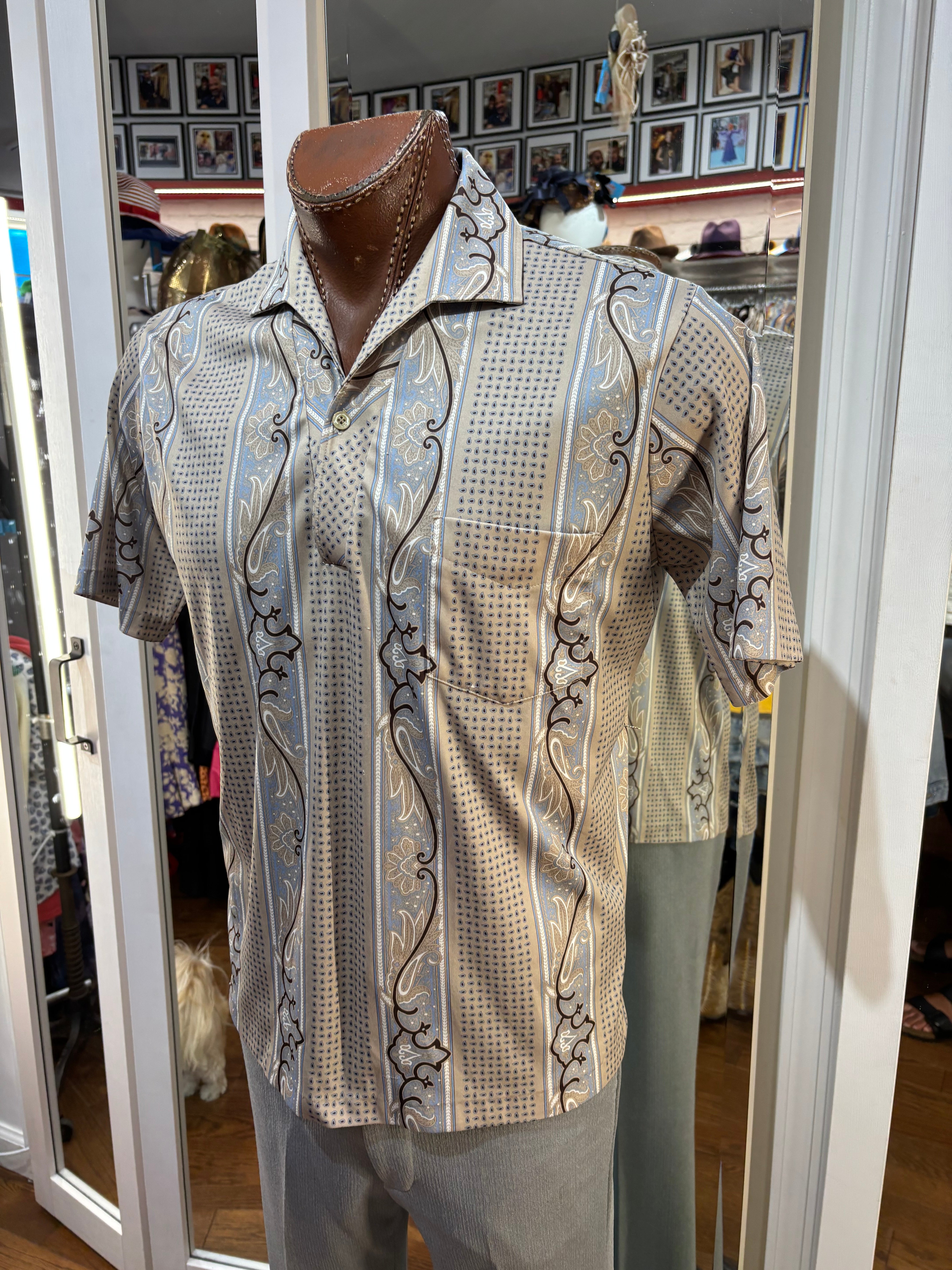 70’s Light Gray Abstract Multicolor Print Collared Disco Polo Shirt By Spire