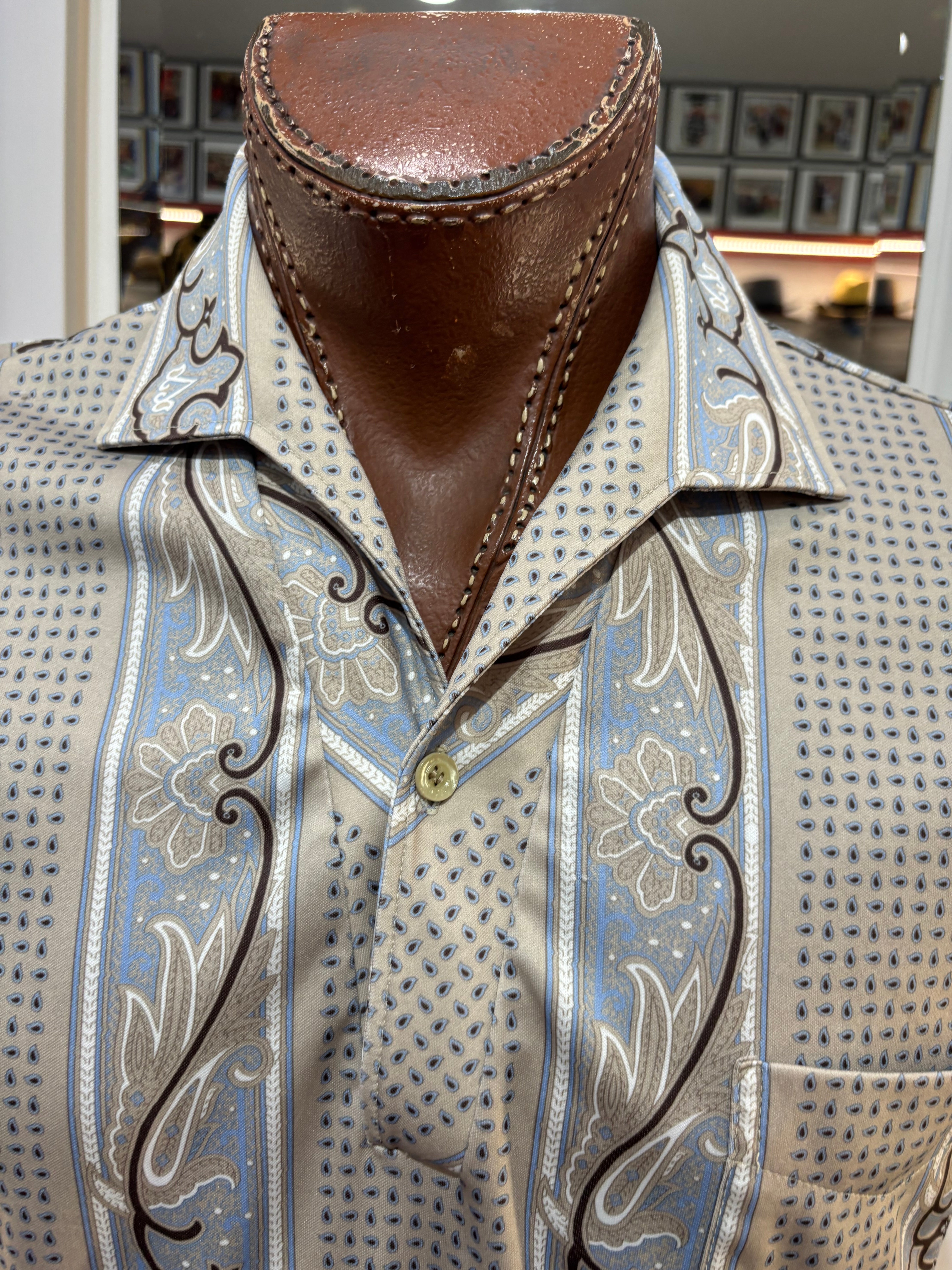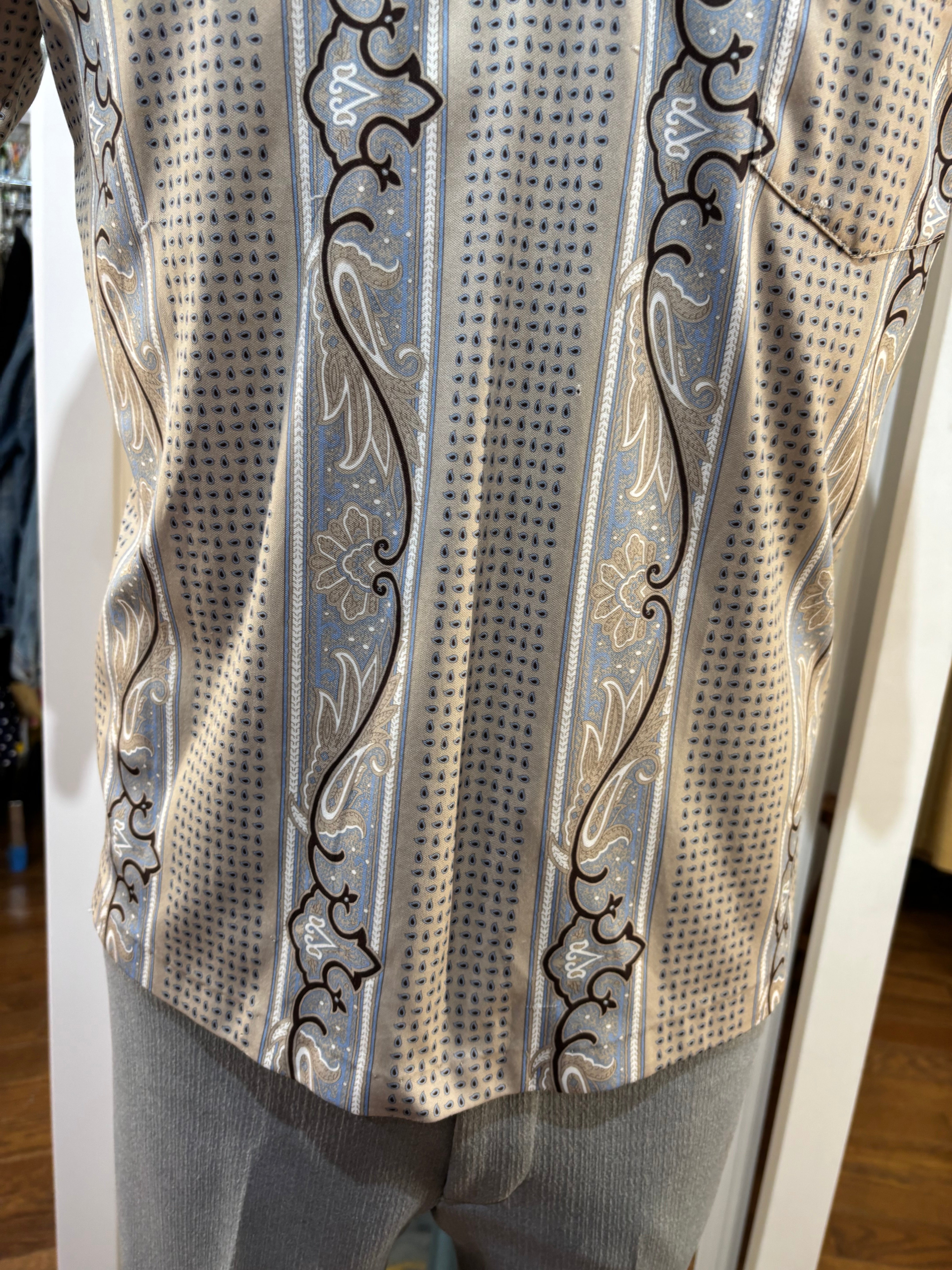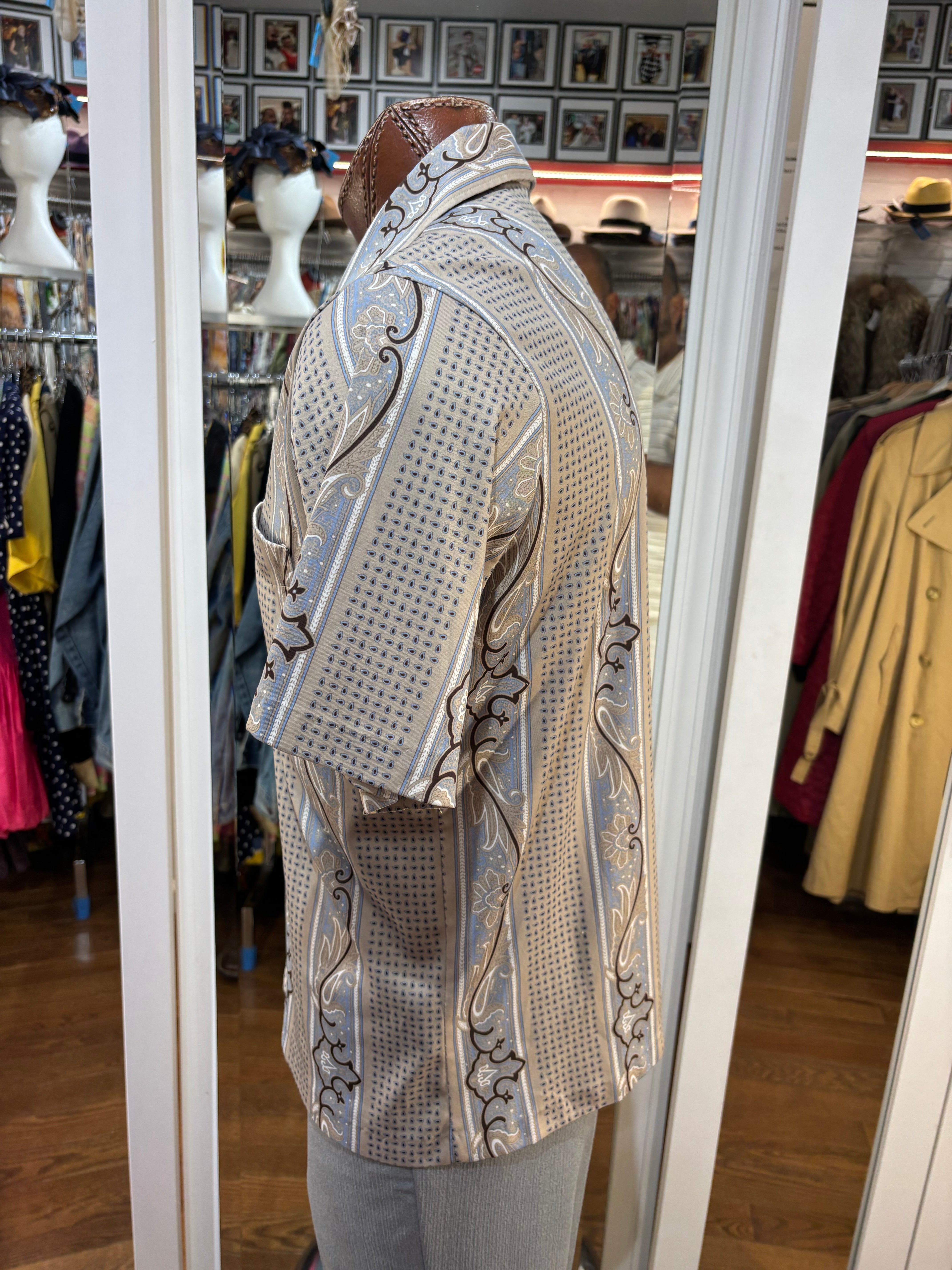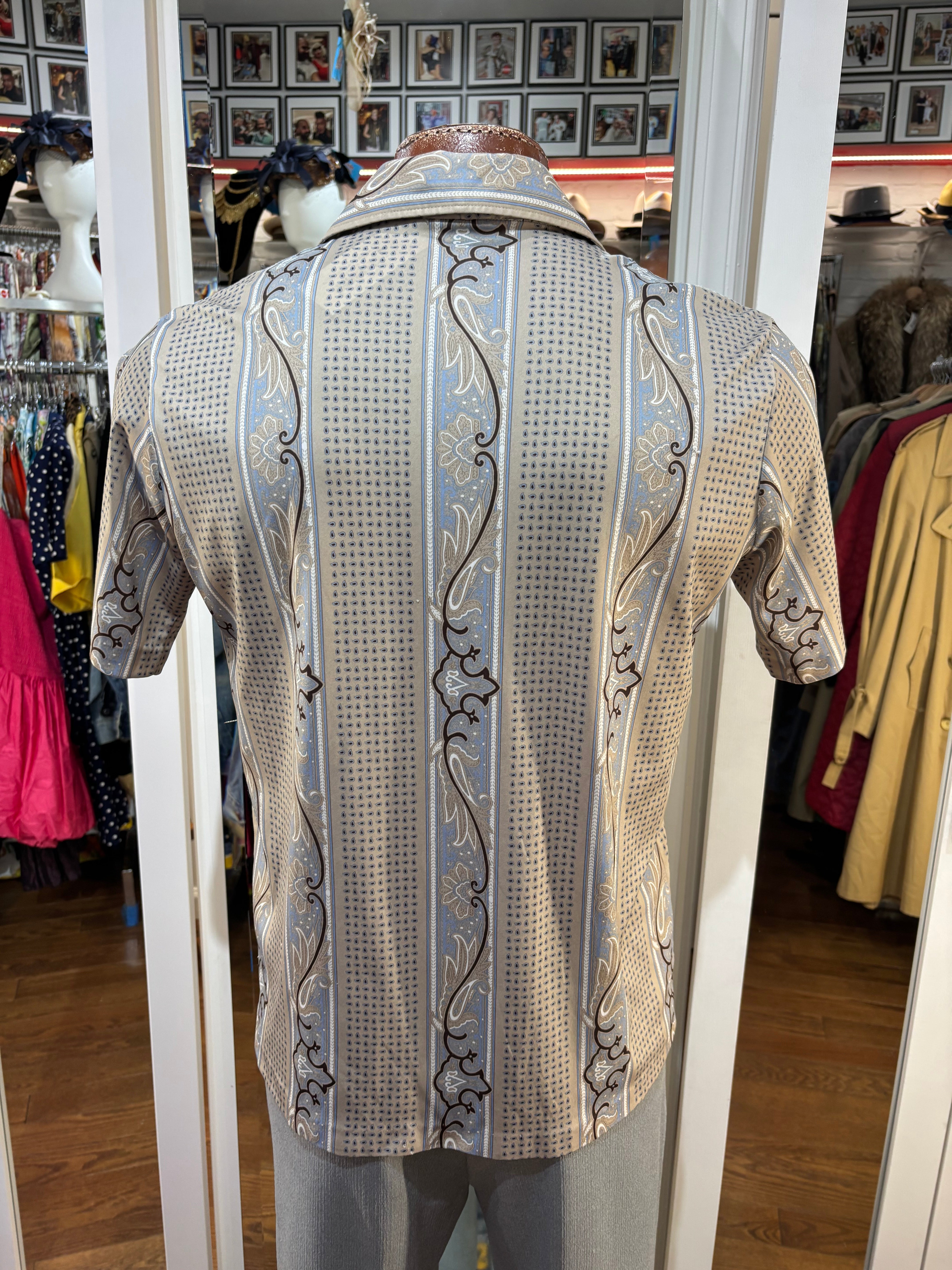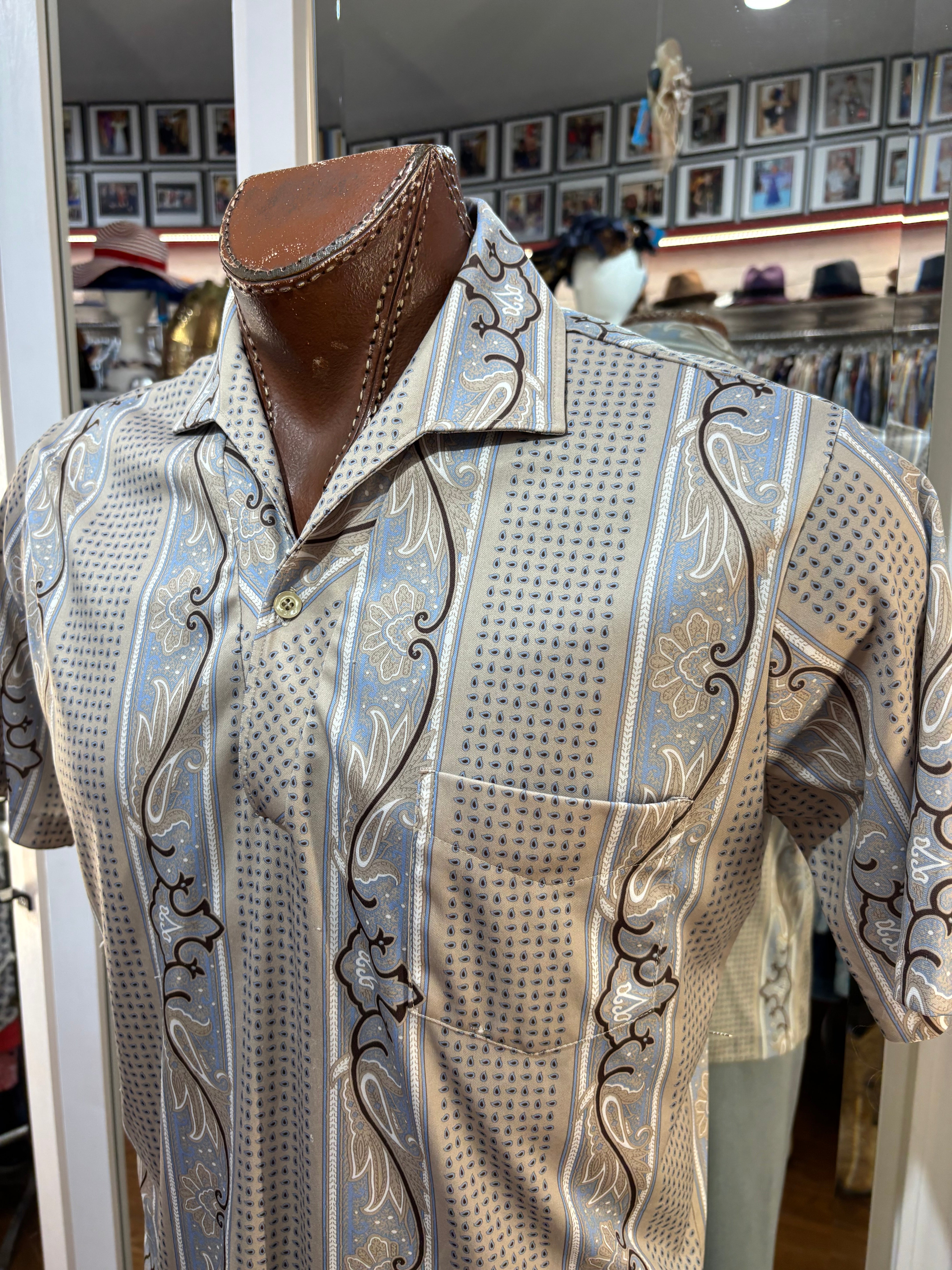70’s Light Gray Abstract Multicolor Print Collared Disco Polo Shirt By Spire
