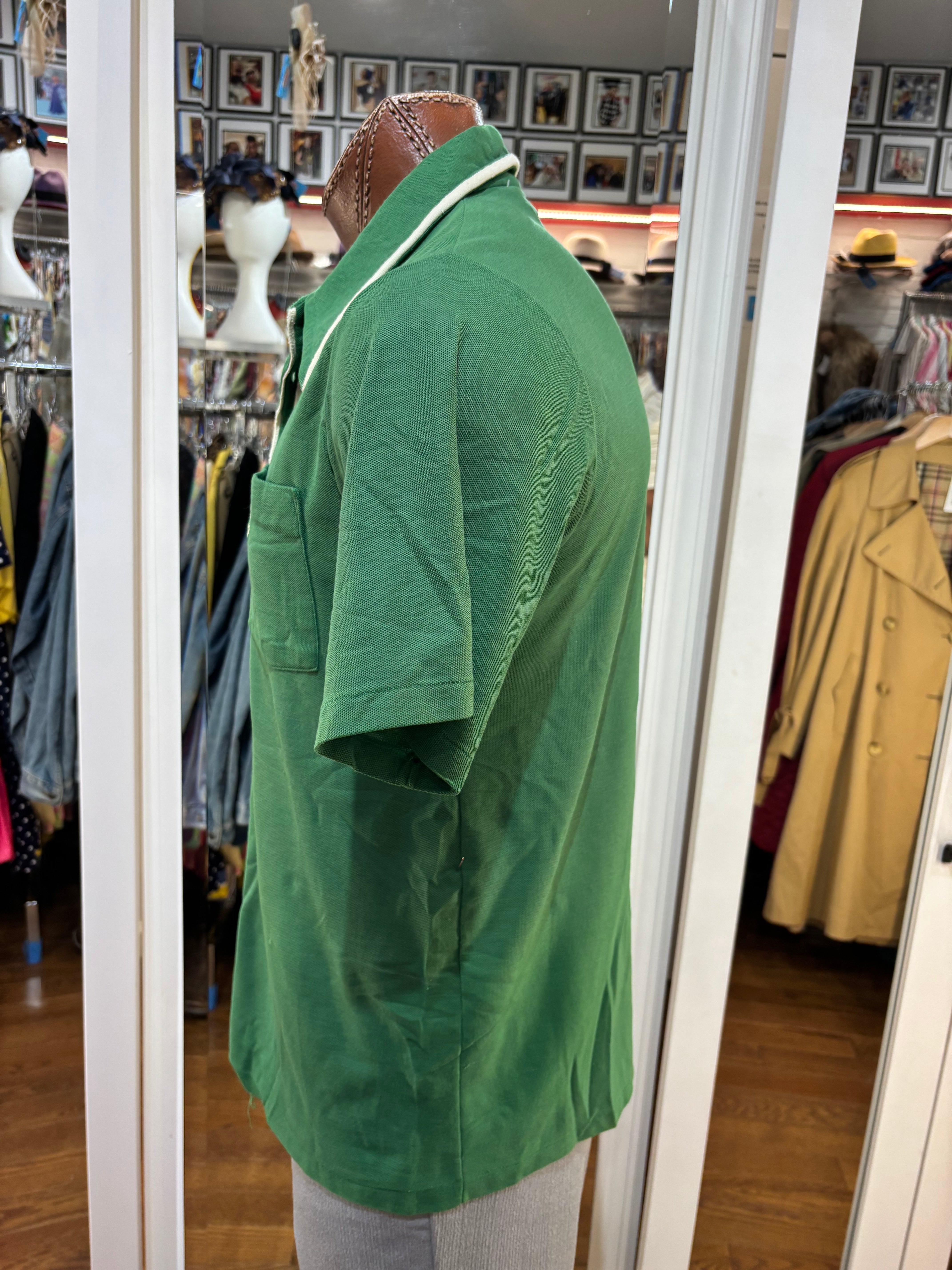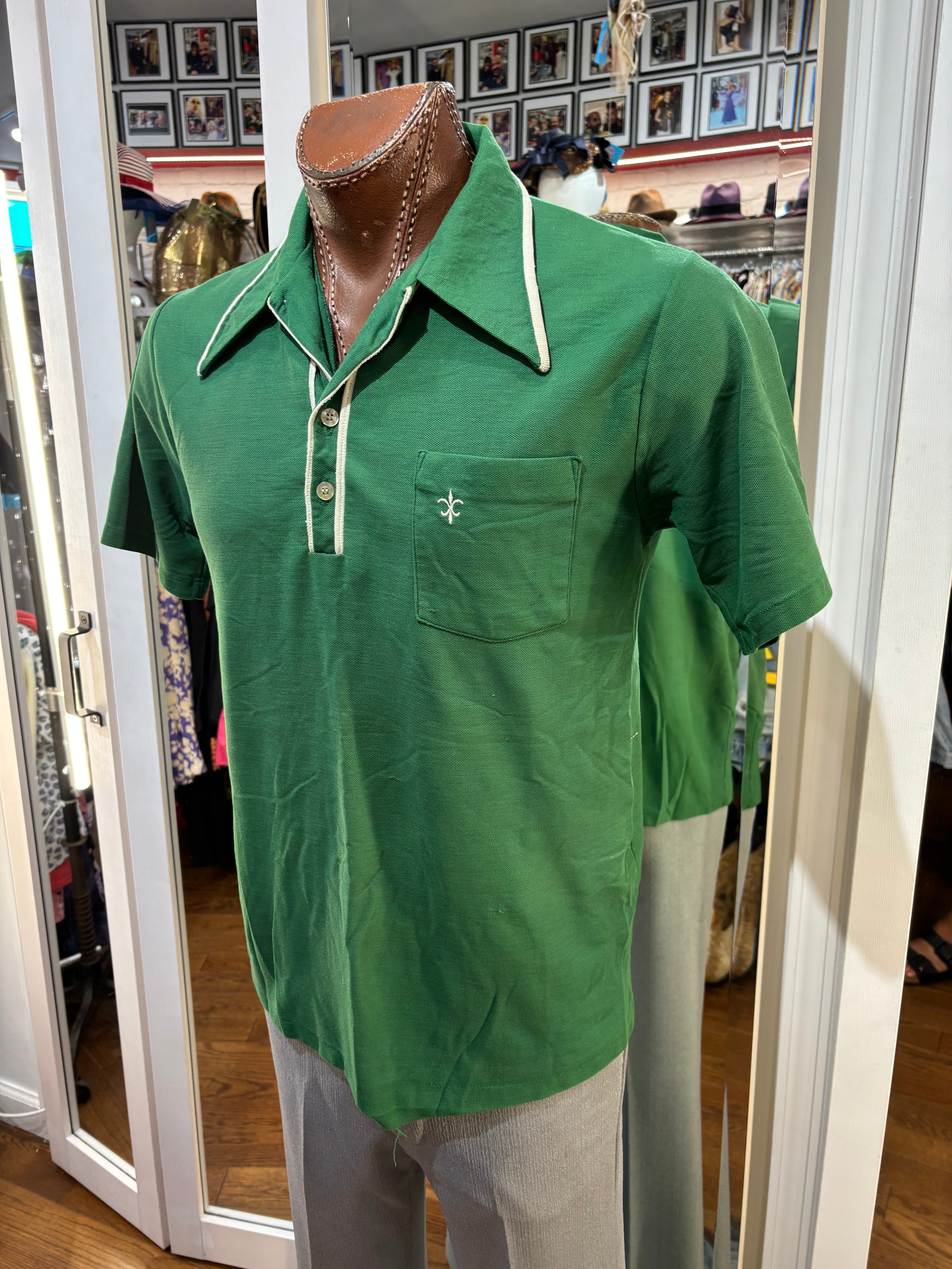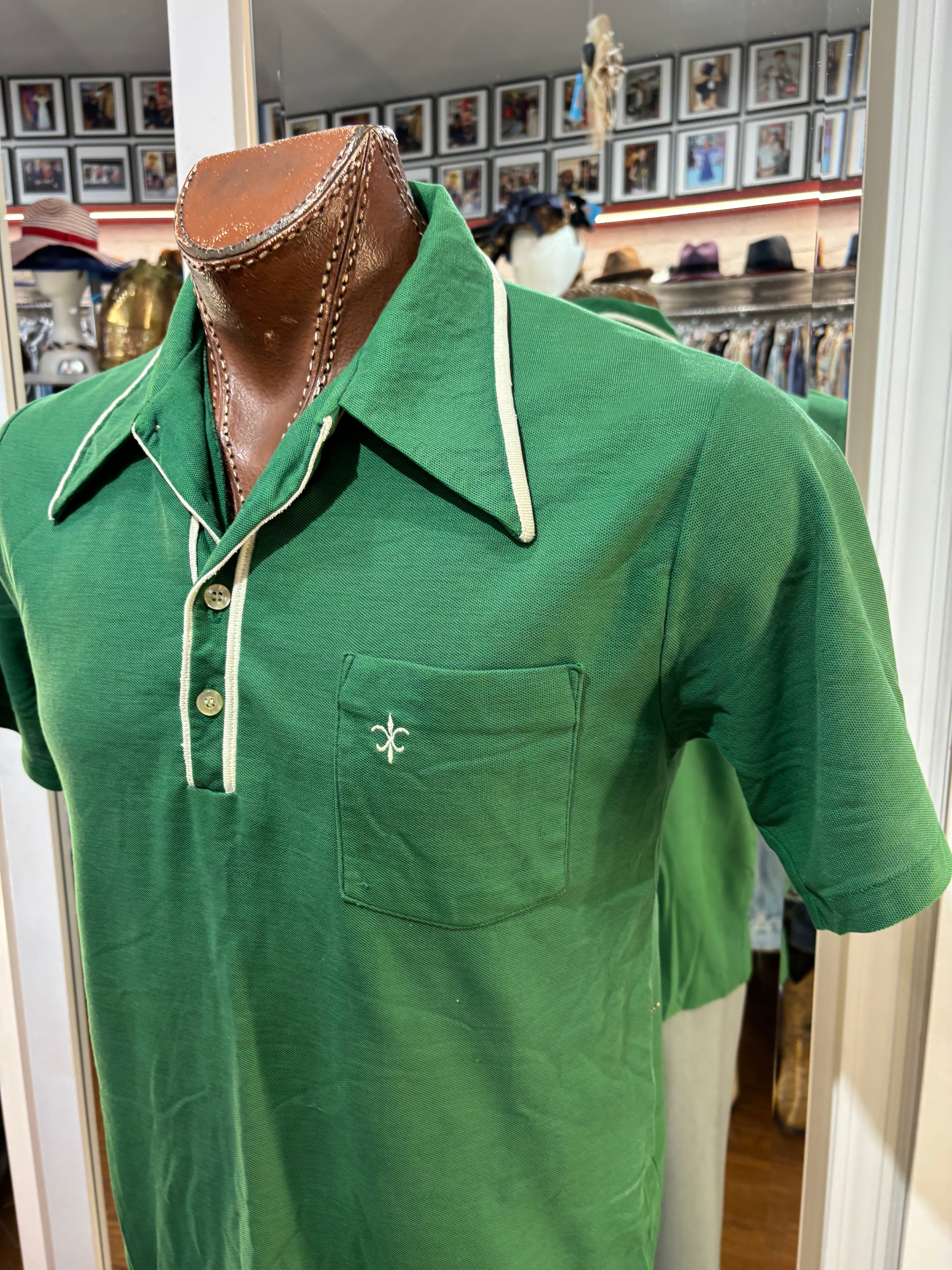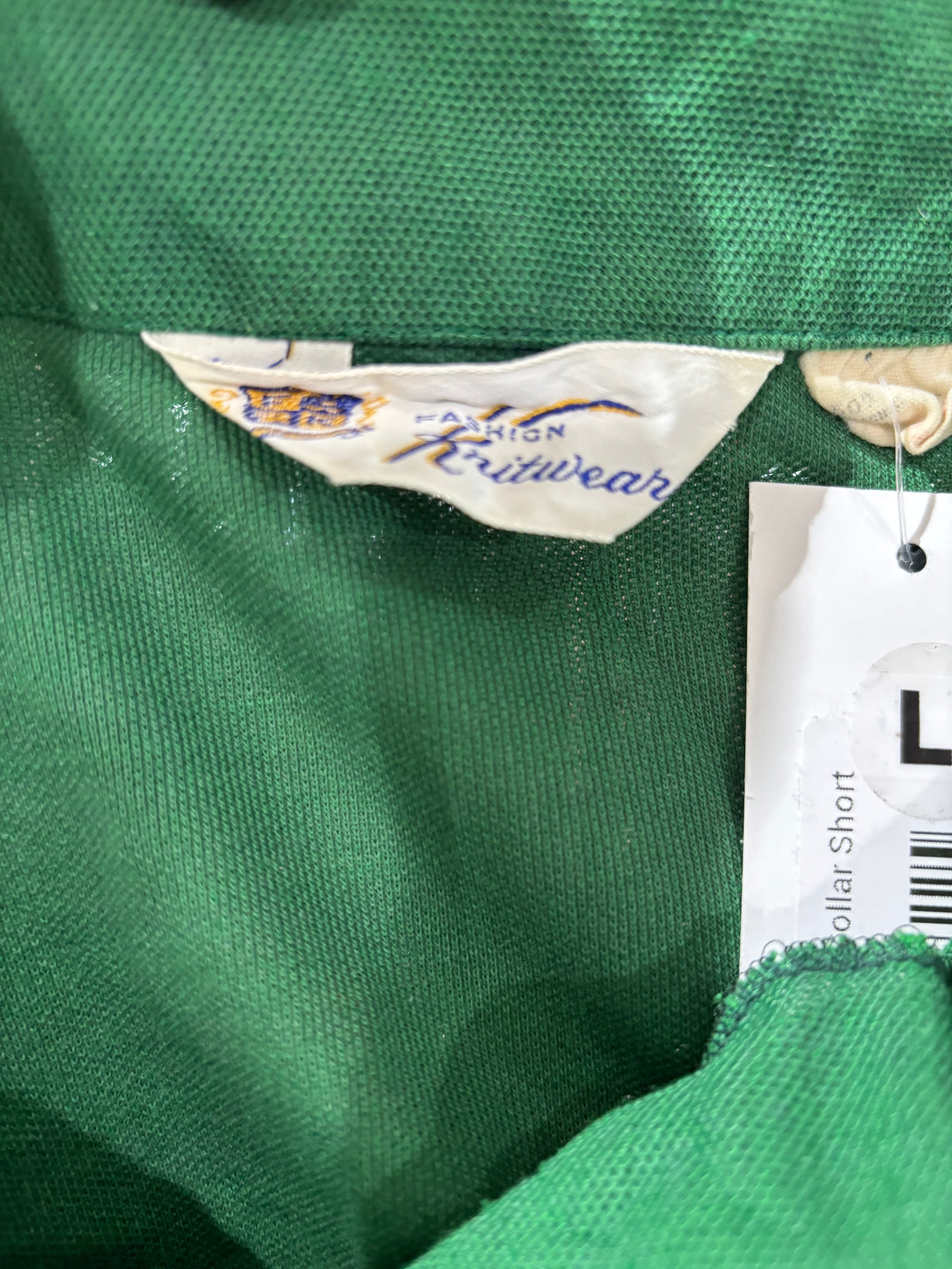 70’s kelly Green Solid Print Collared Disco Polo Shirt By By Fashion Knitwear