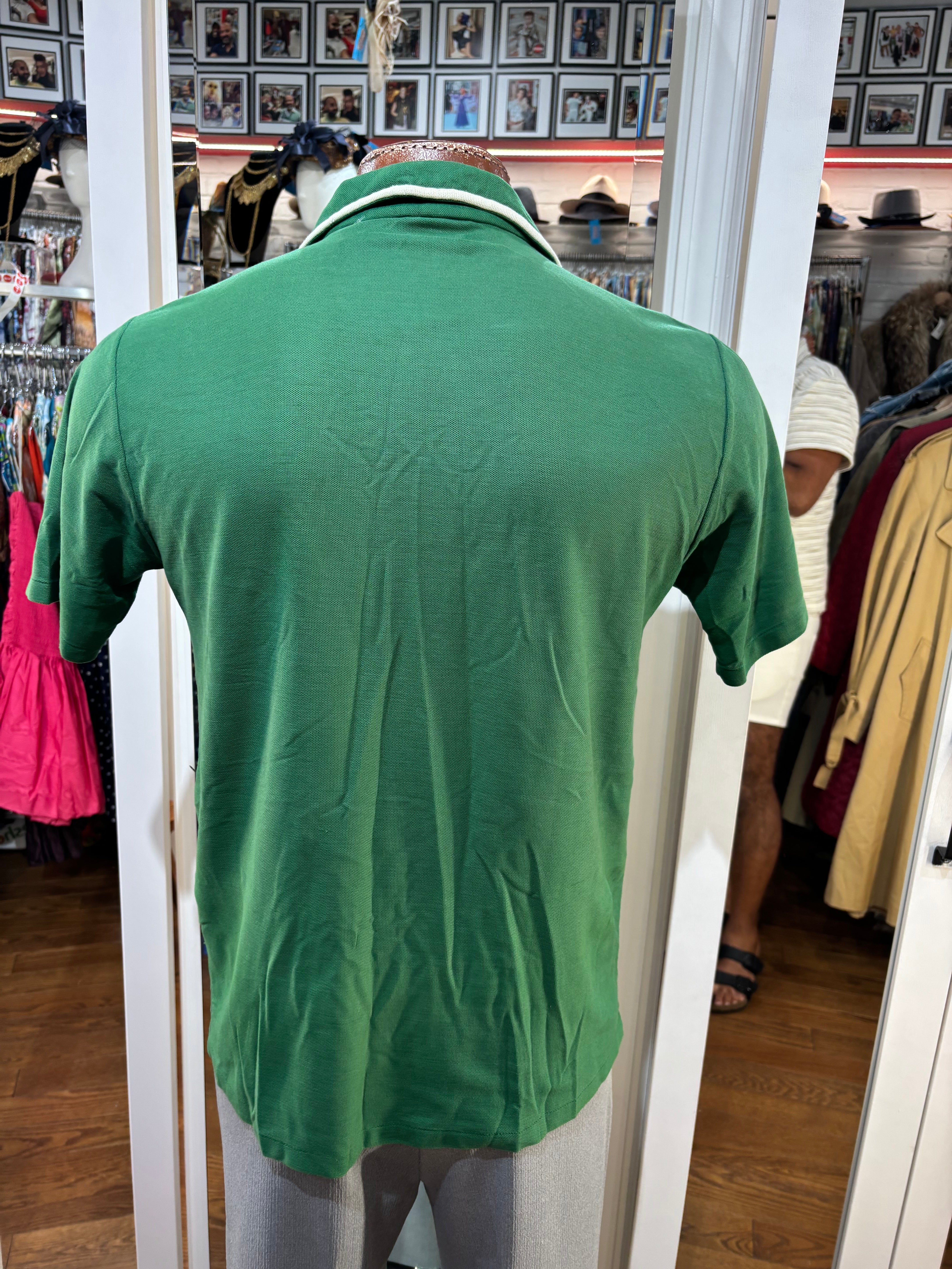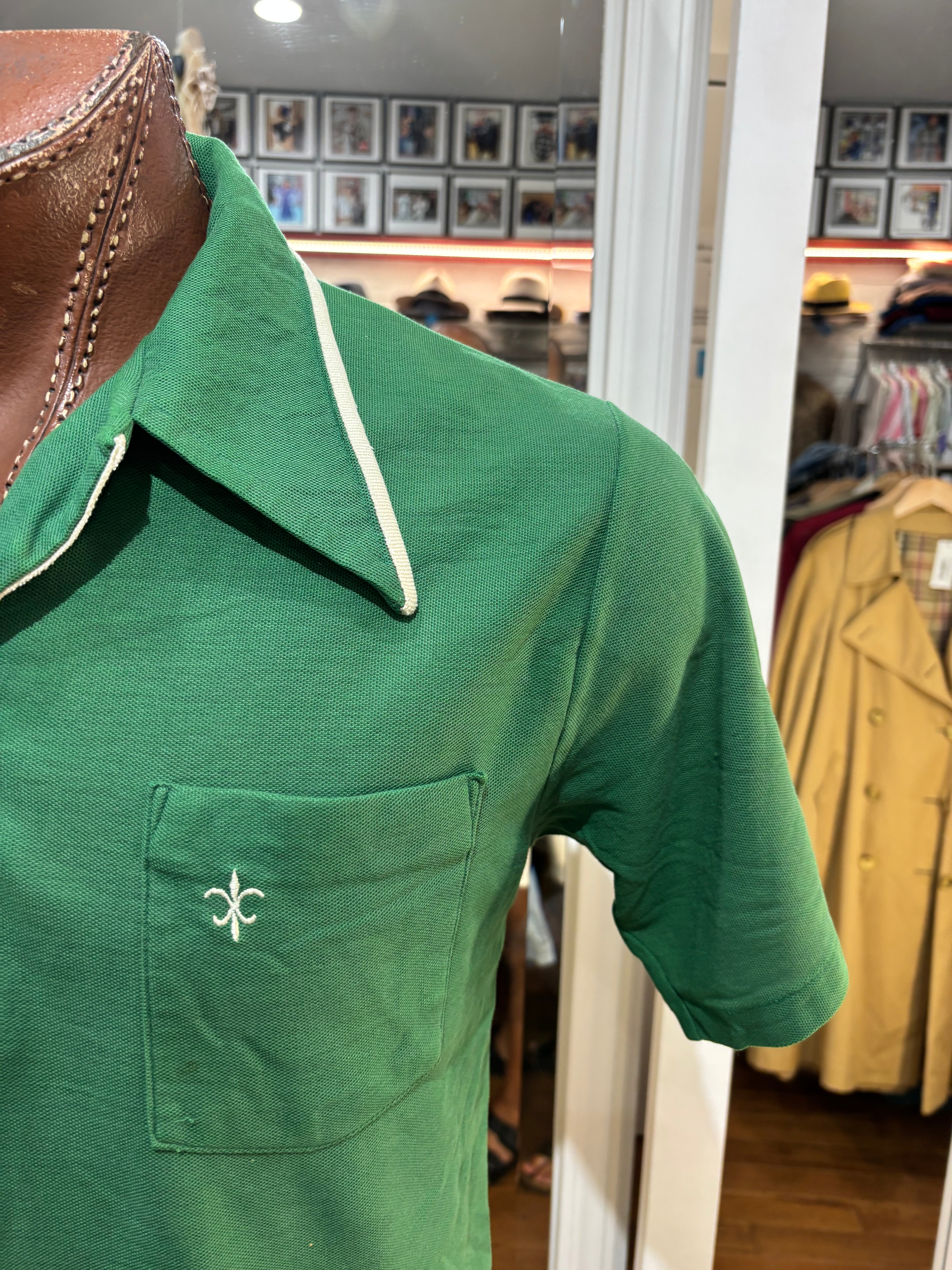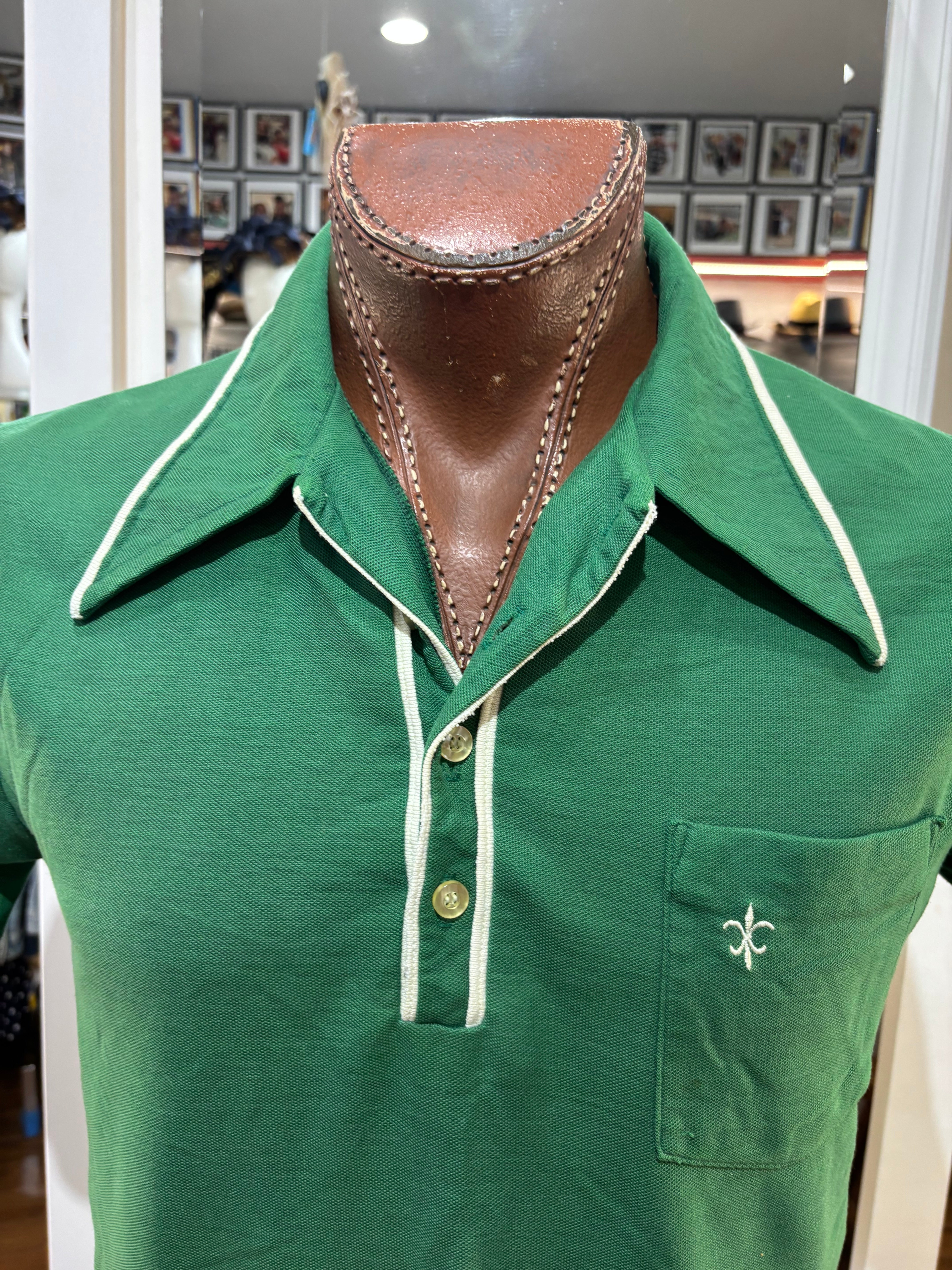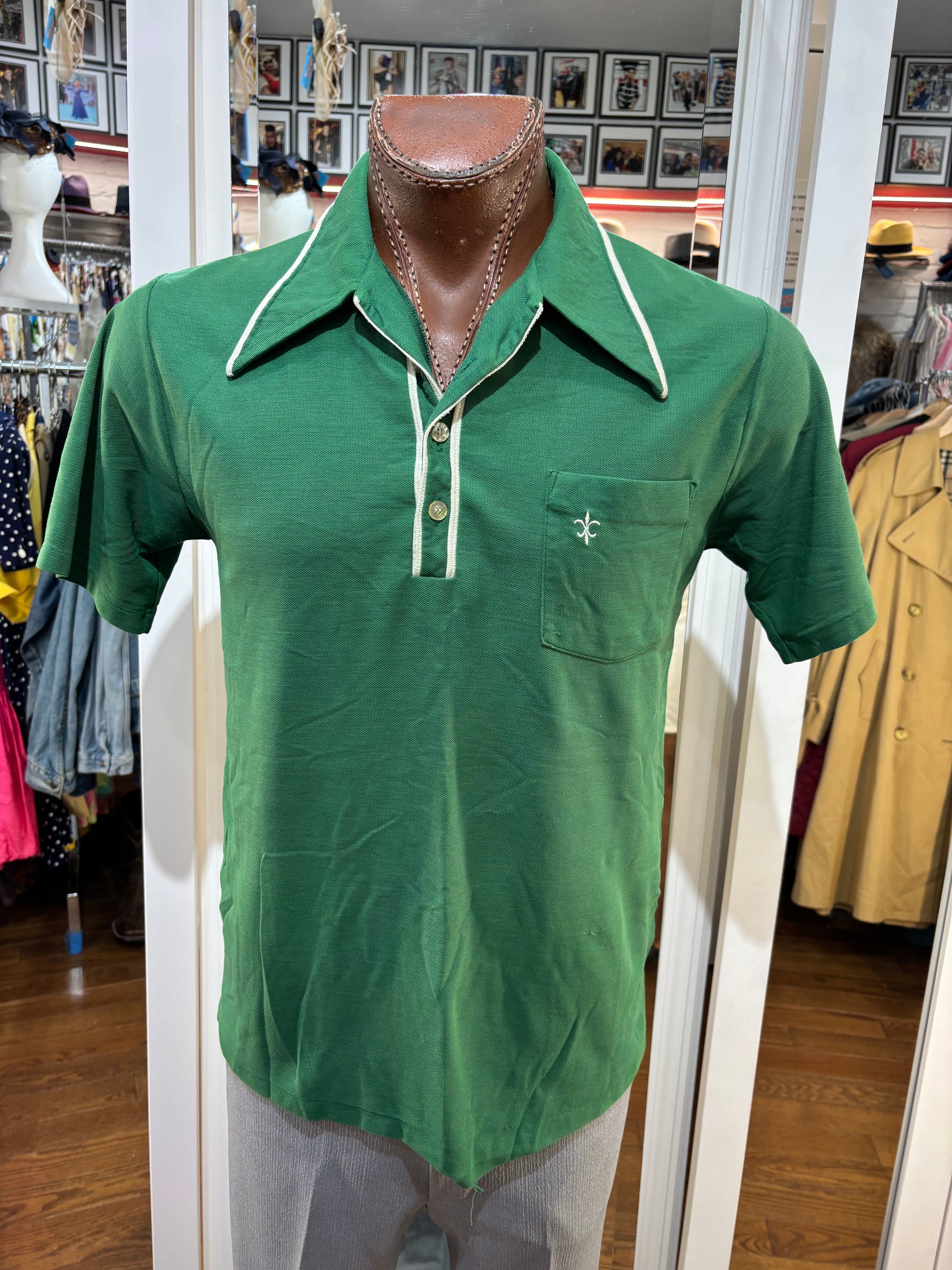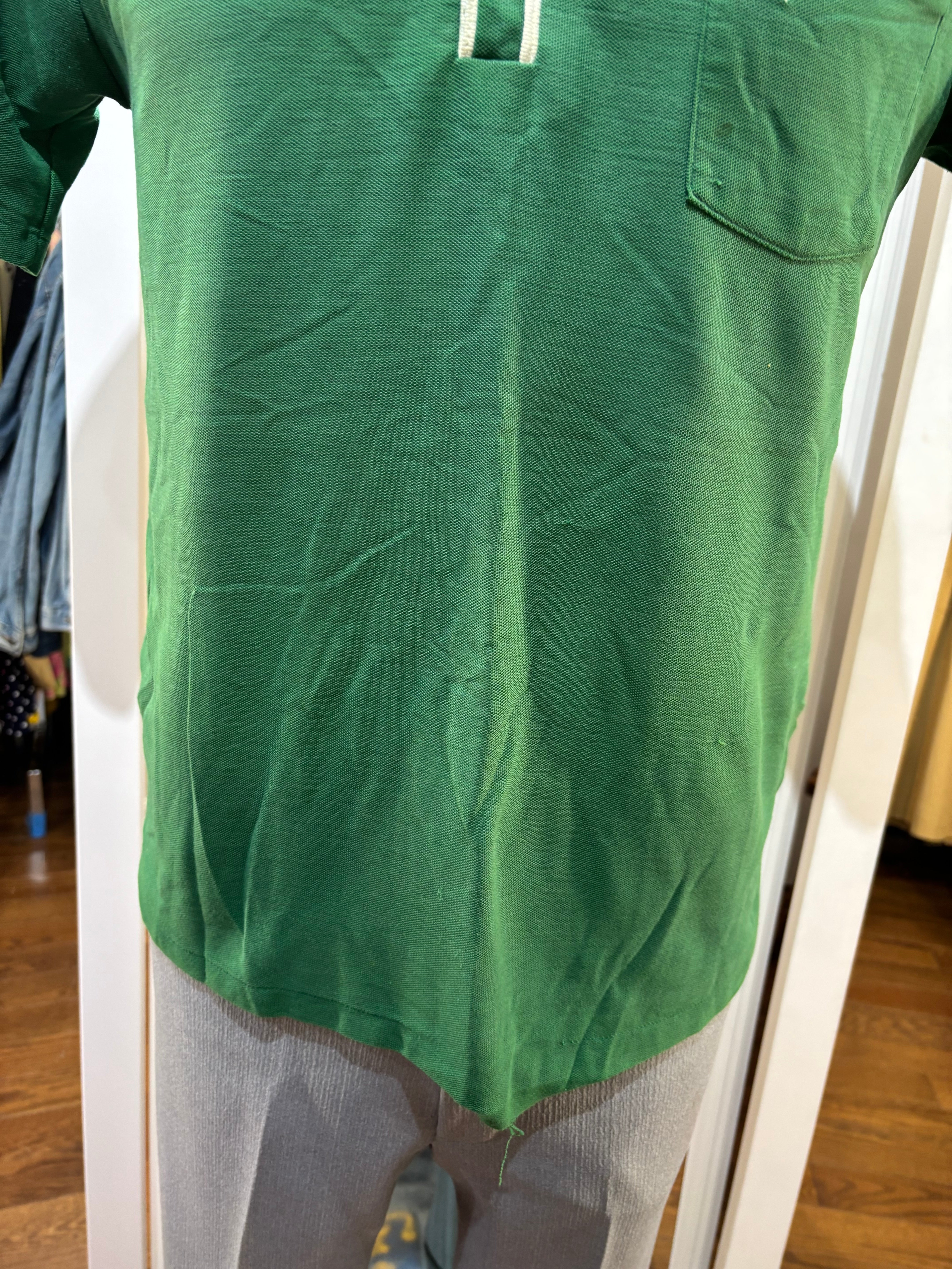 70’s kelly Green Solid Print Collared Disco Polo Shirt By By Fashion Knitwear