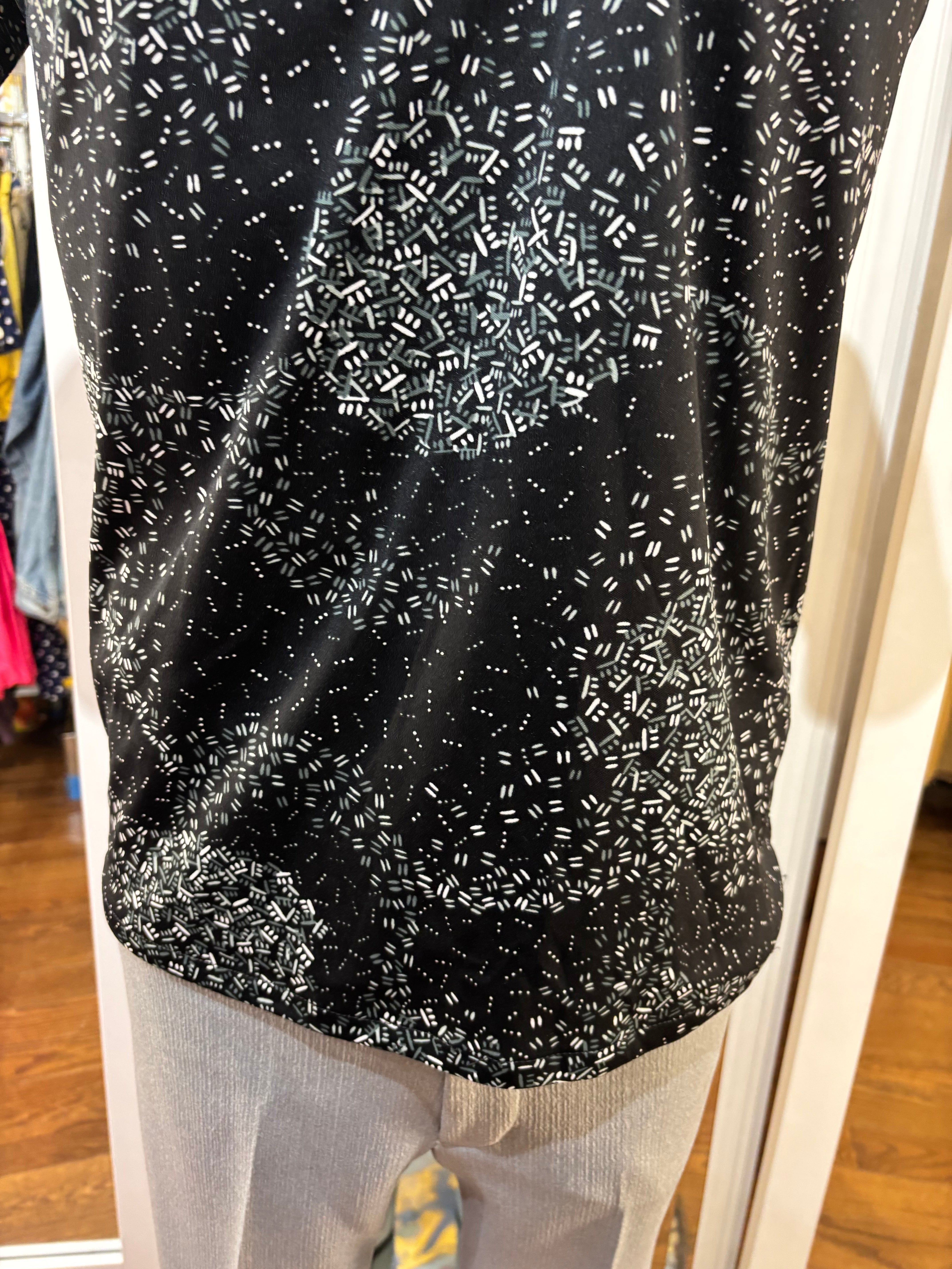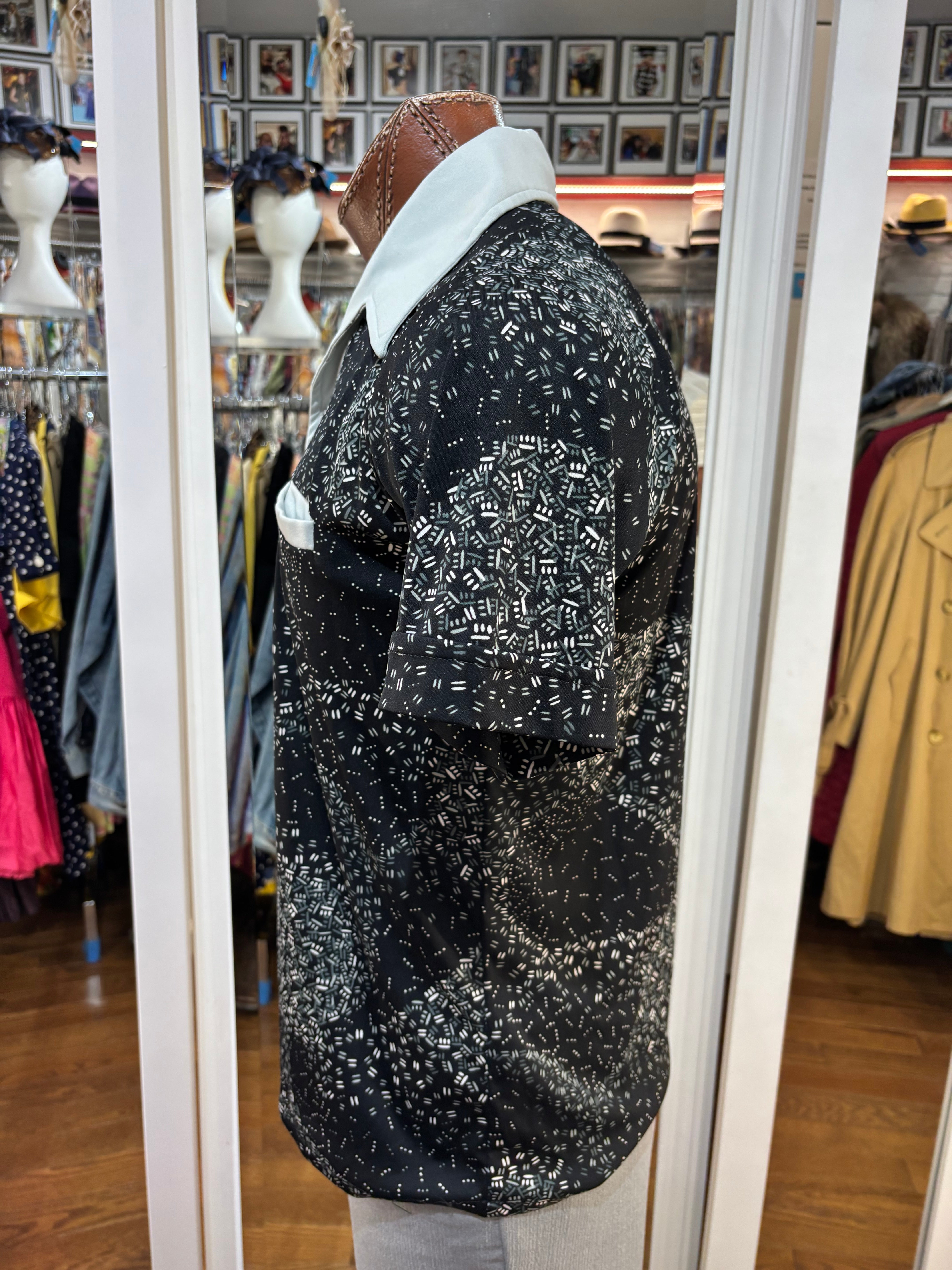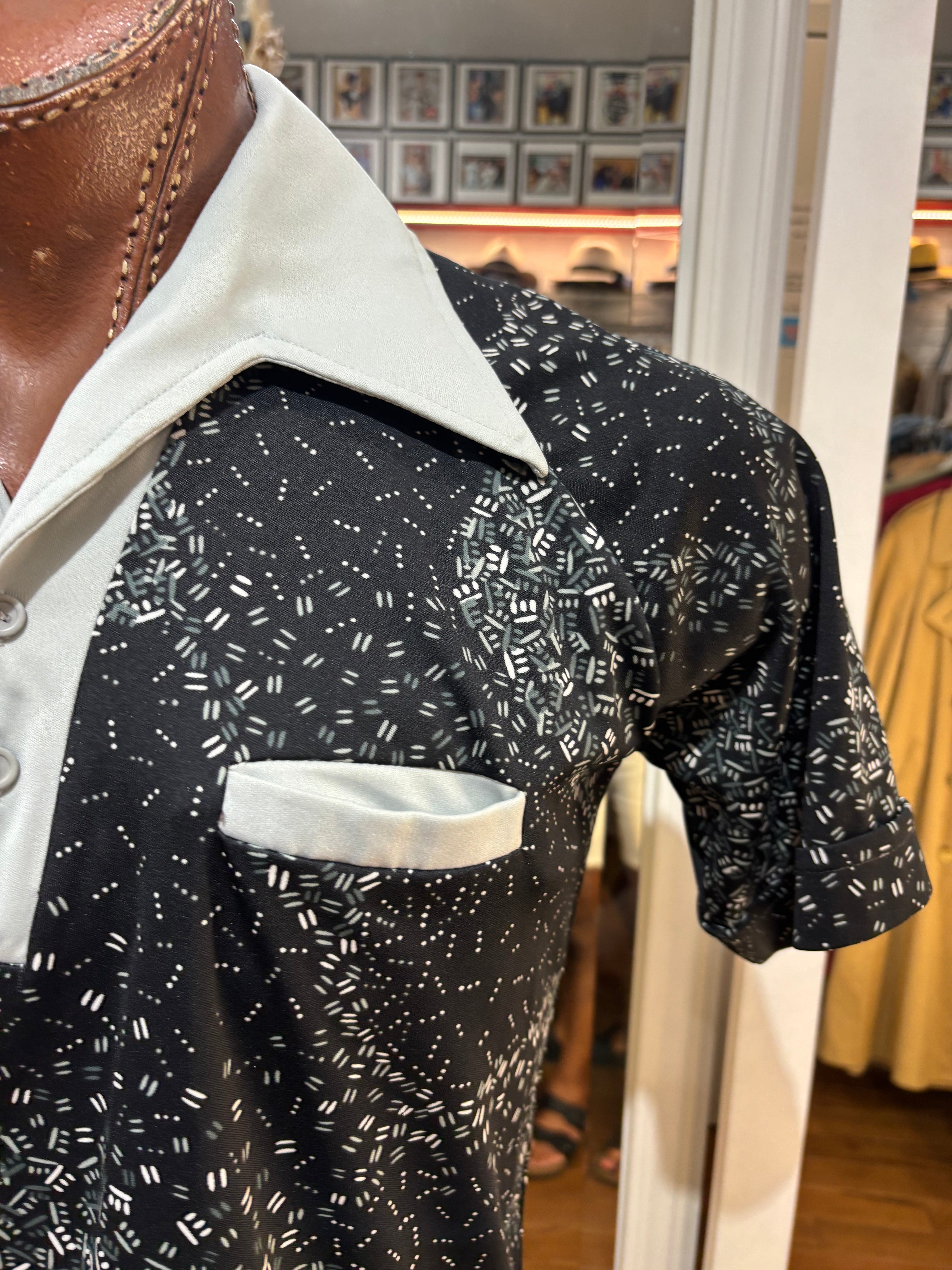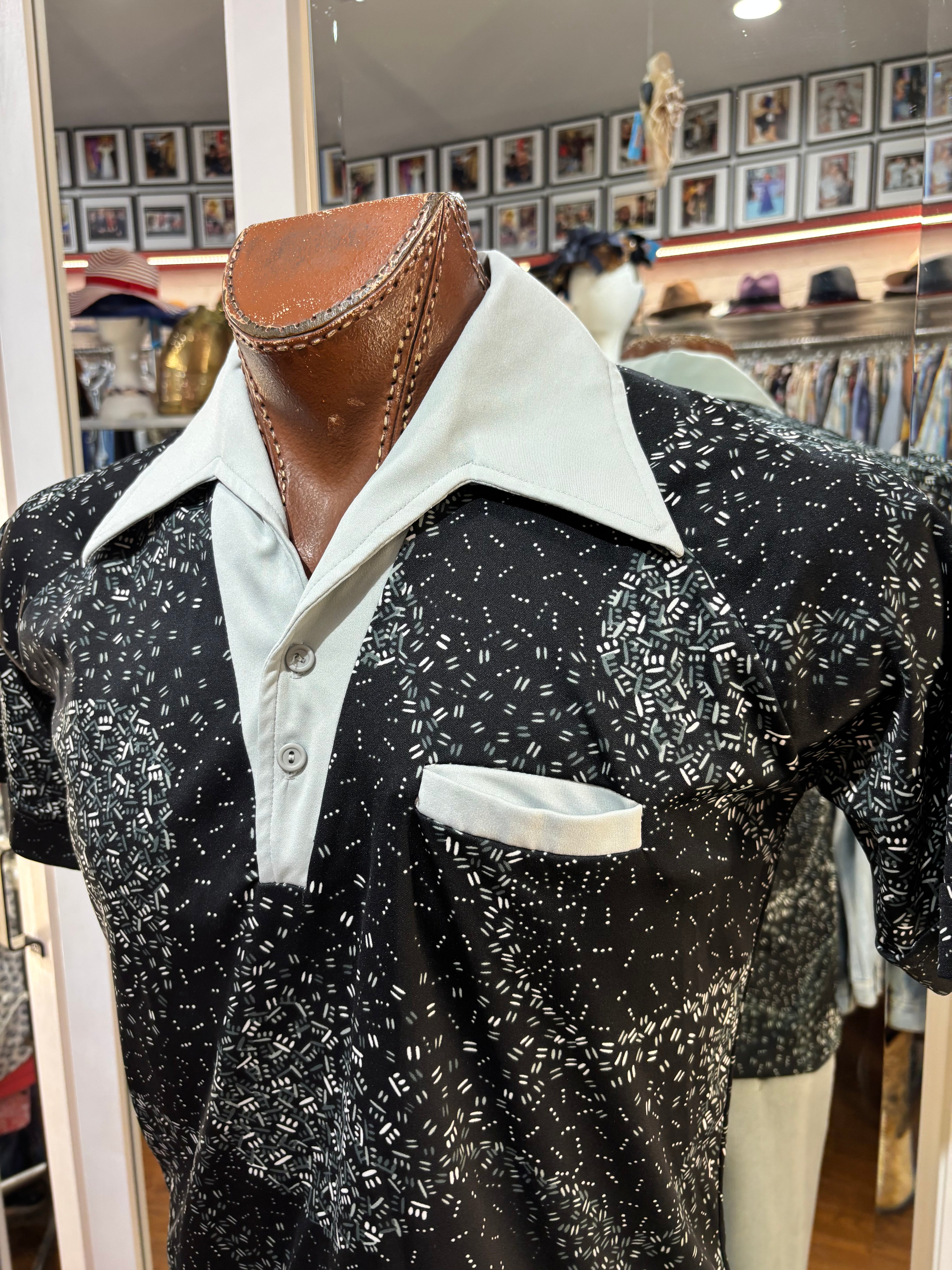 70’s Black And Grey Abstract Multicolor Print Collared Disco Polo Shirt By Da Vinci