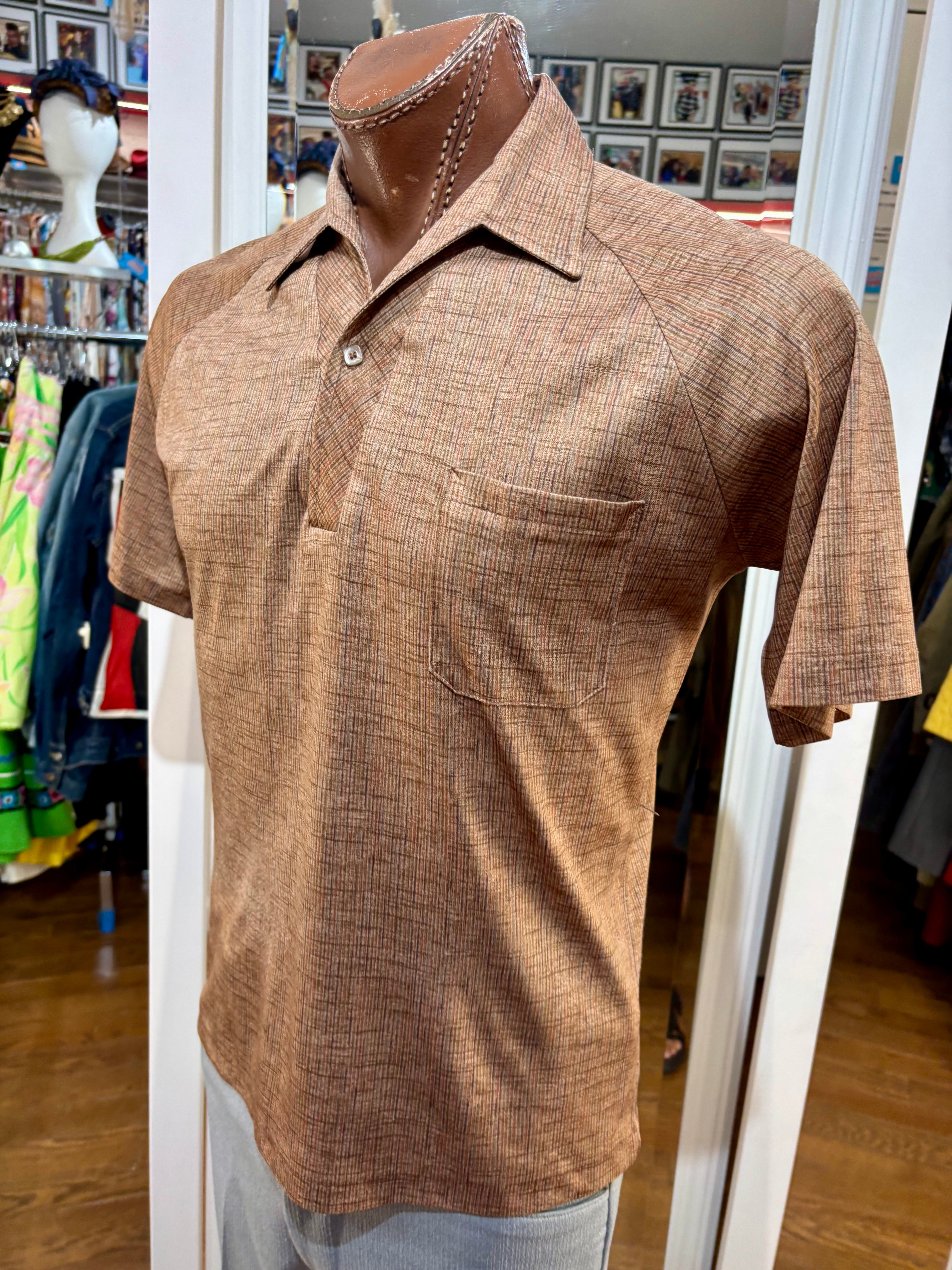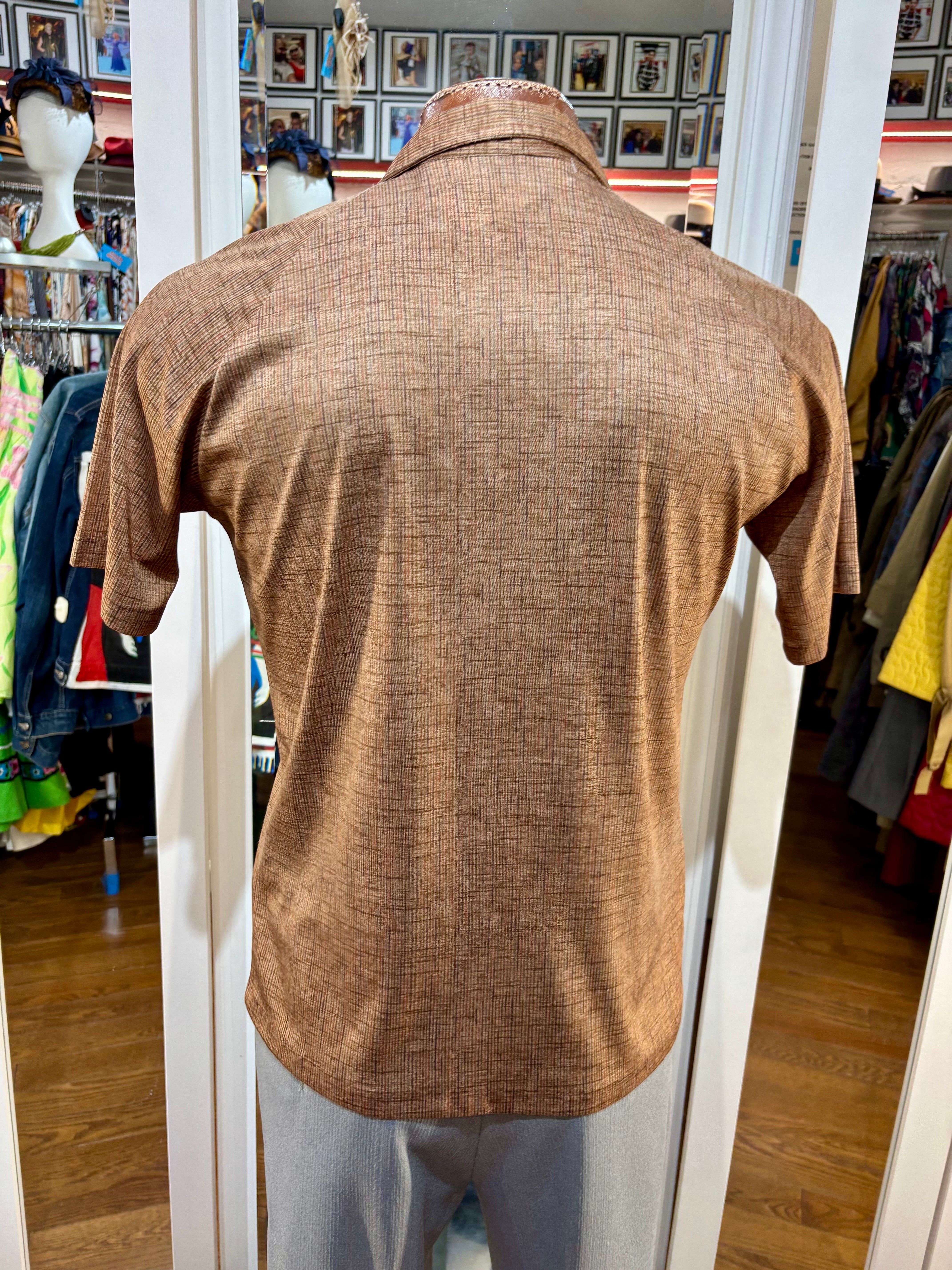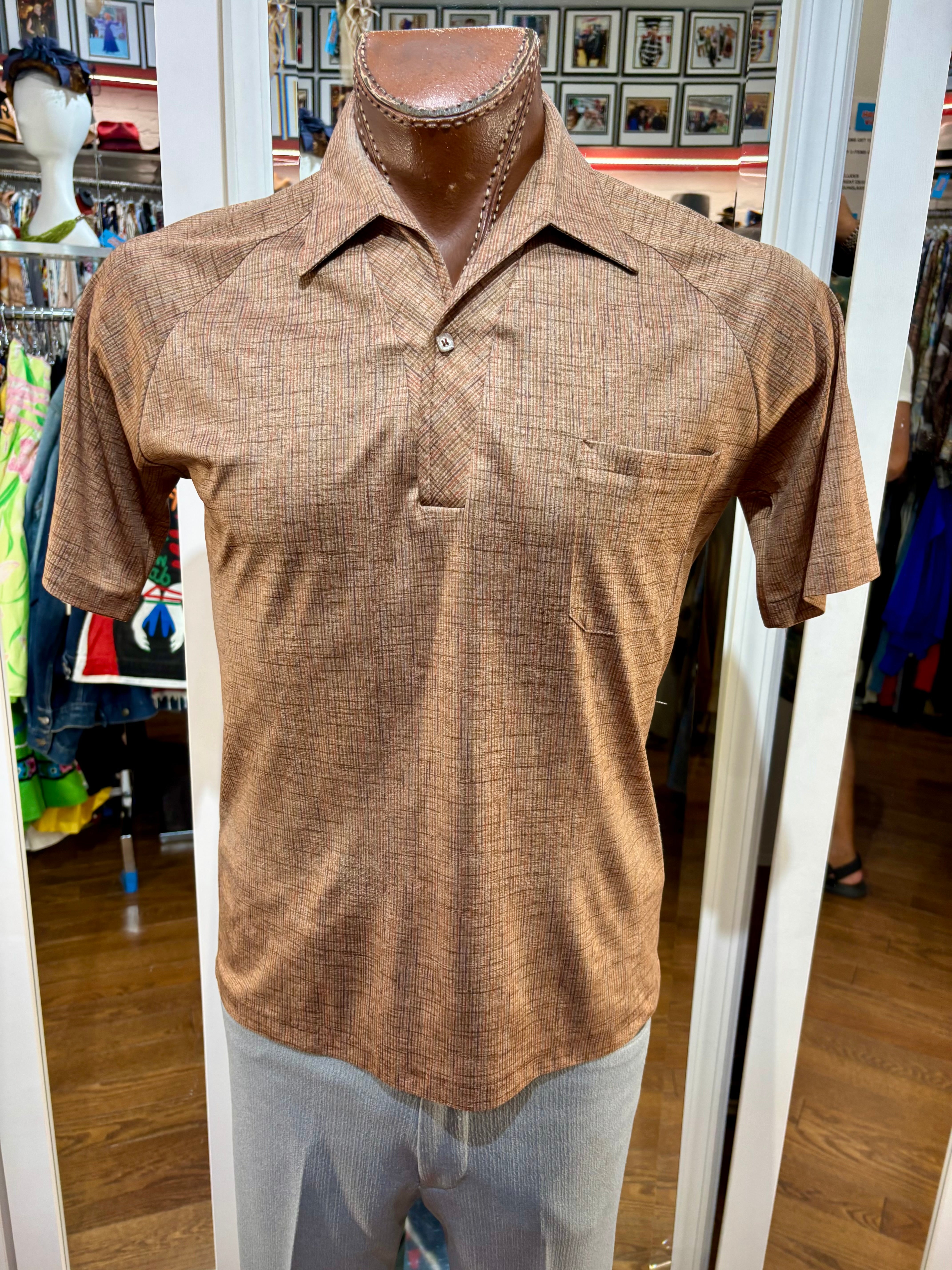 70’s Brown Multicolored Abstract Print Collared Discography Polo By Resort Ware