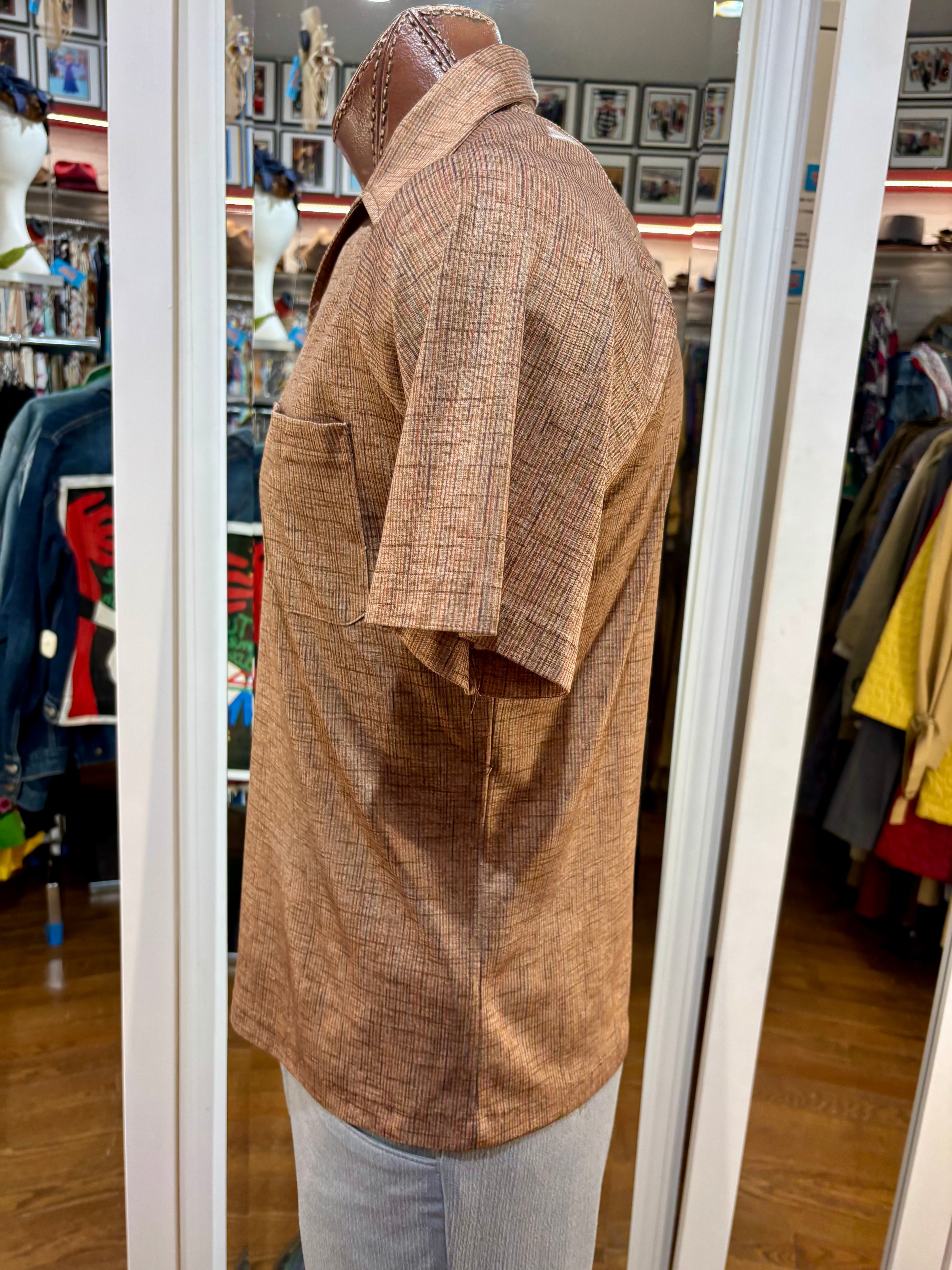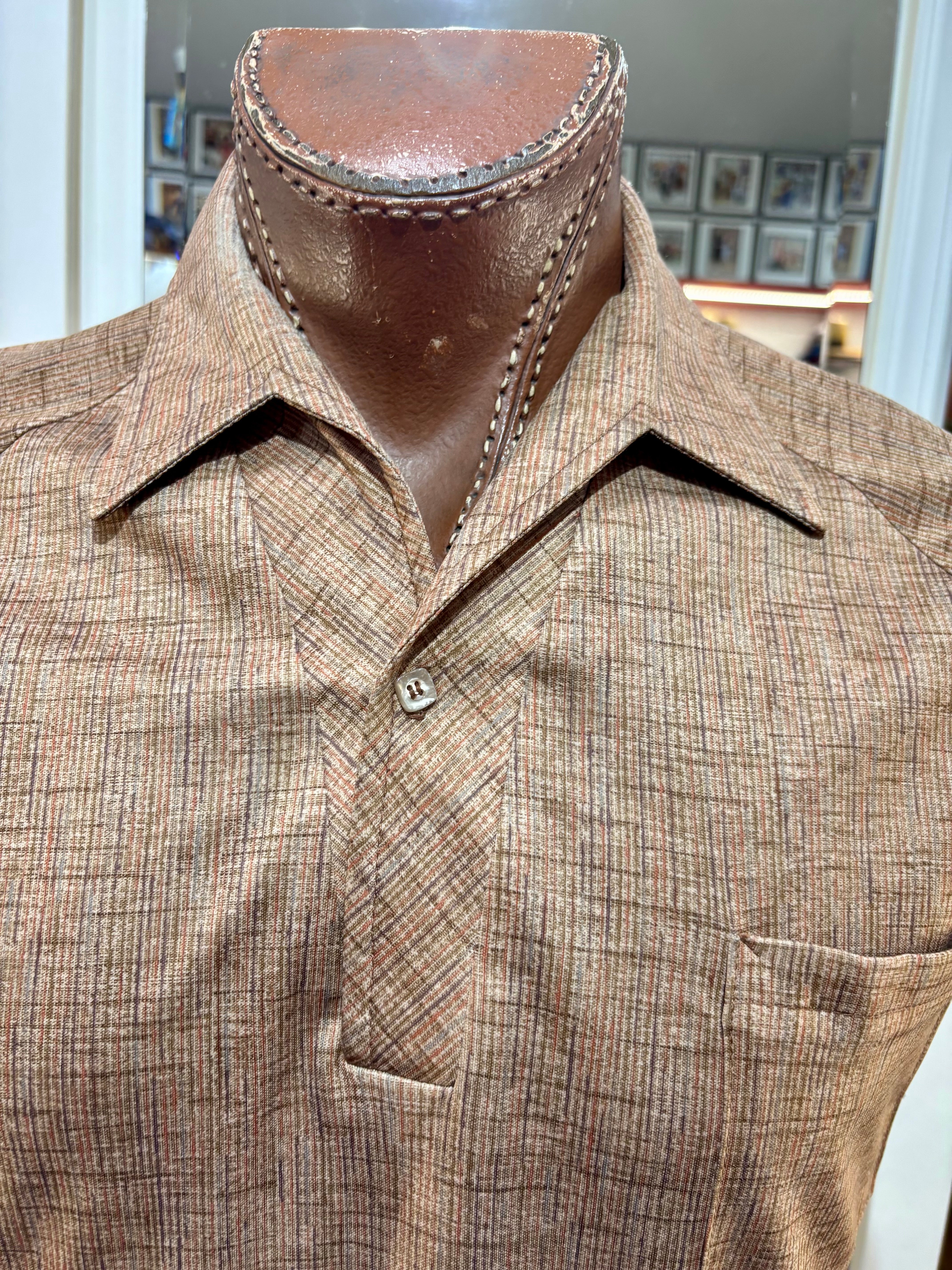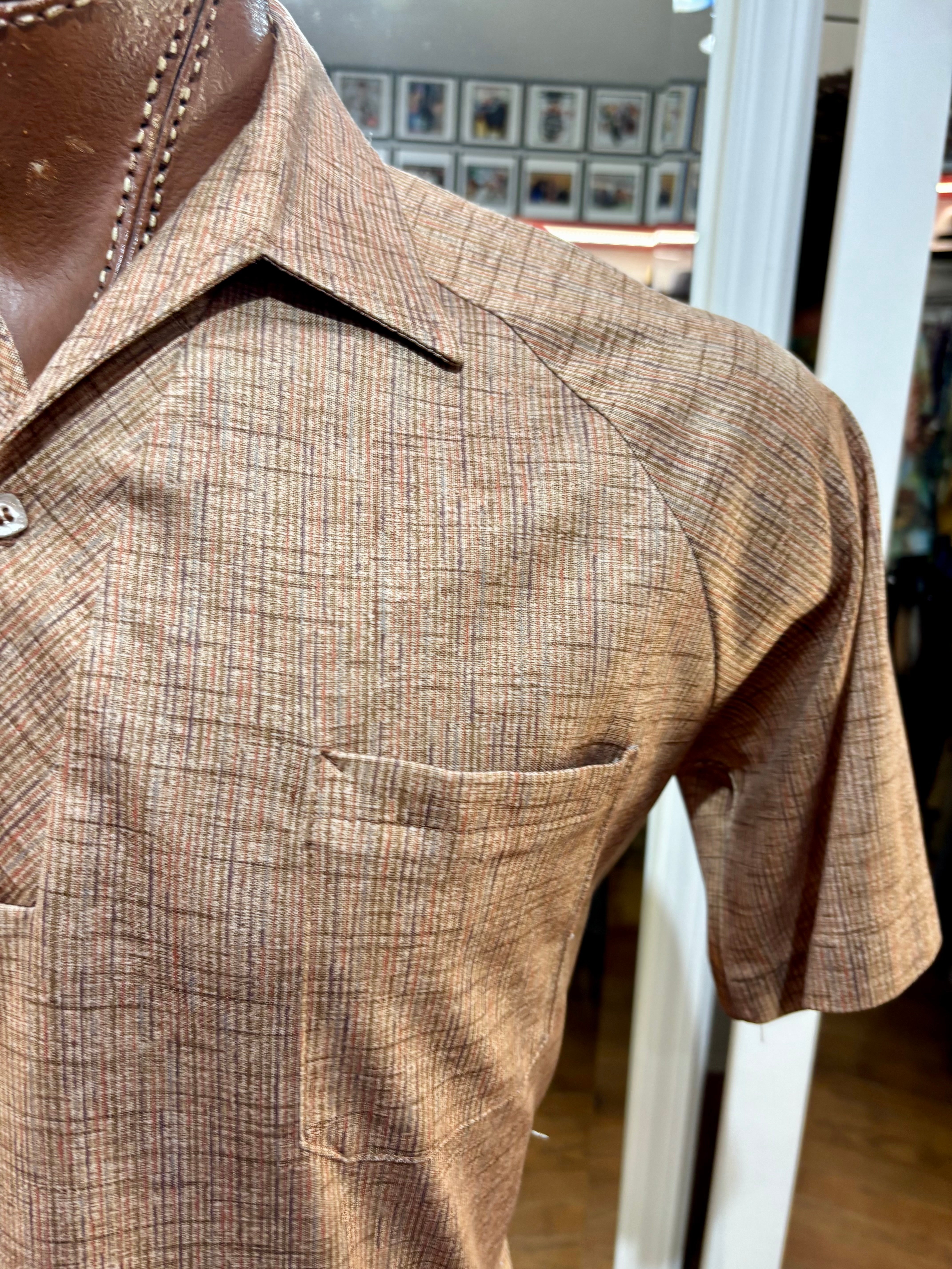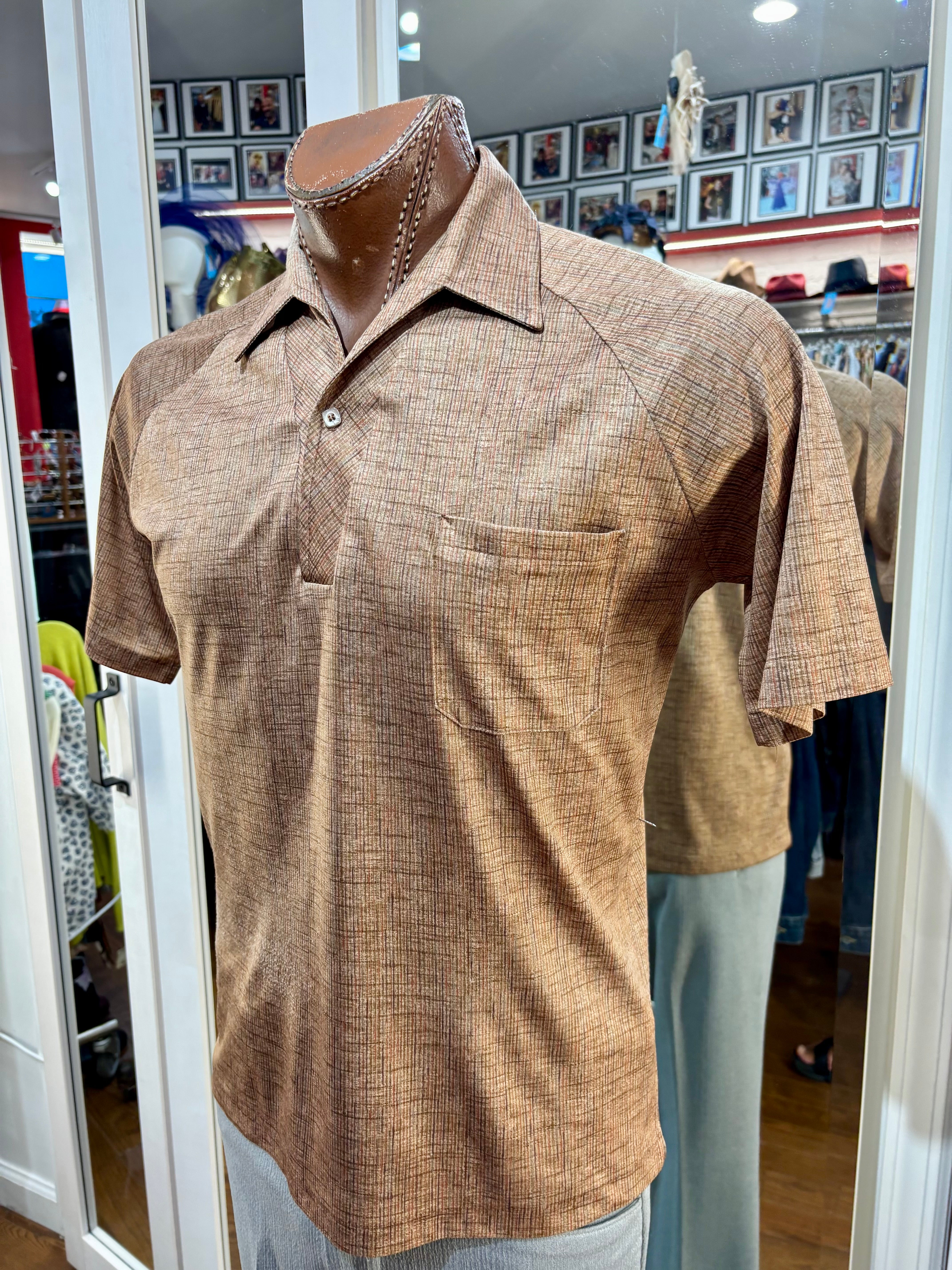 70’s Brown Multicolored Abstract Print Collared Discography Polo By Resort Ware