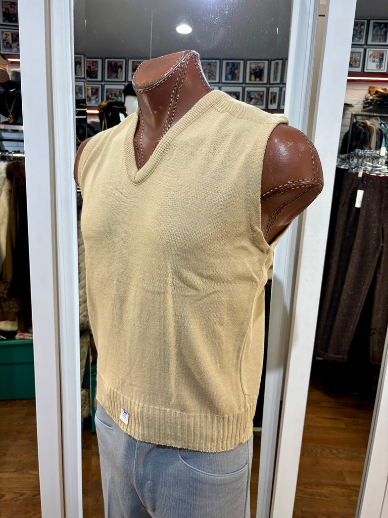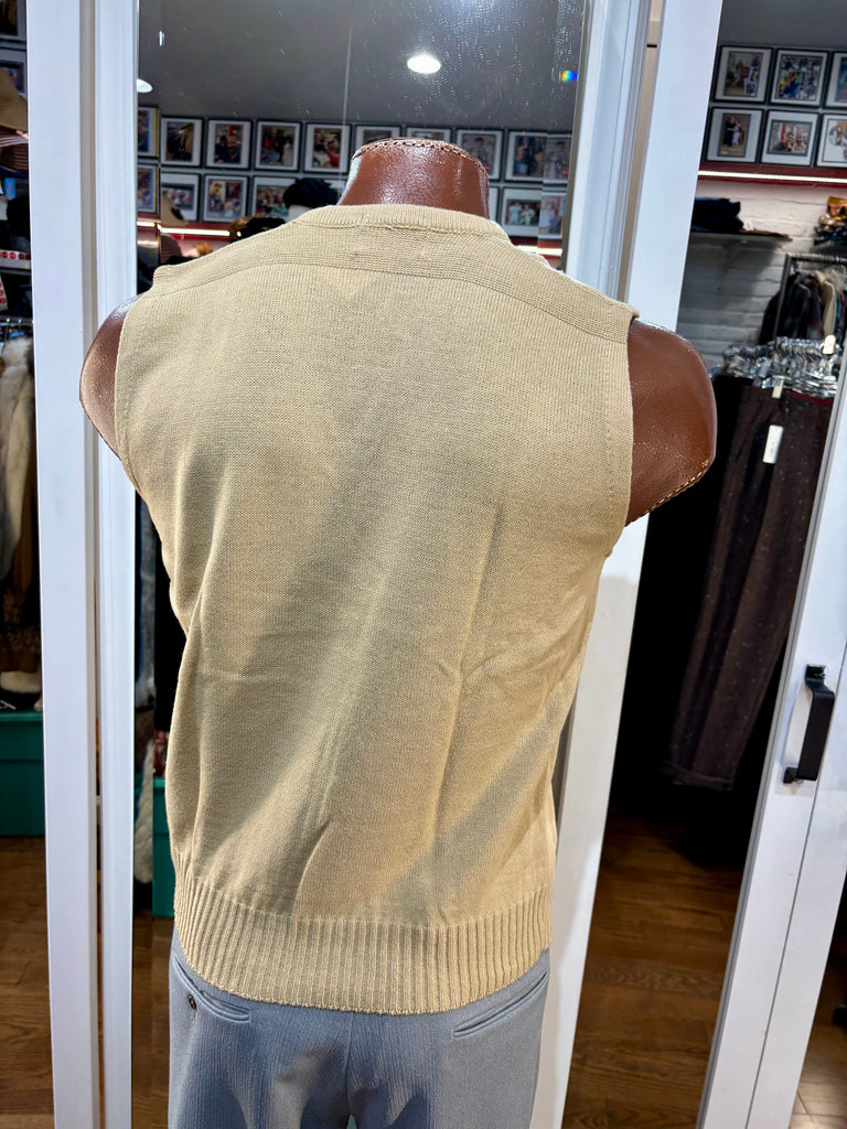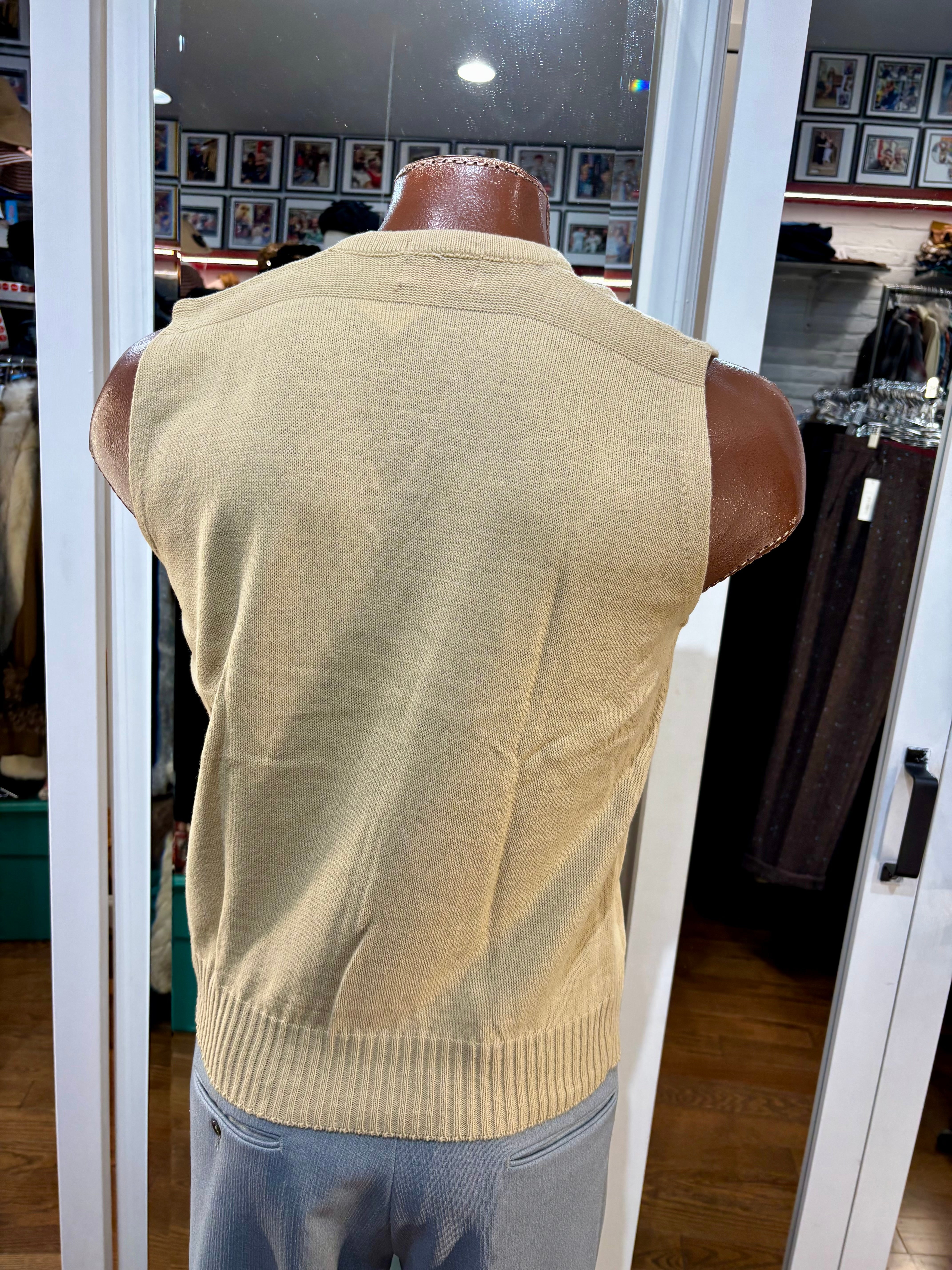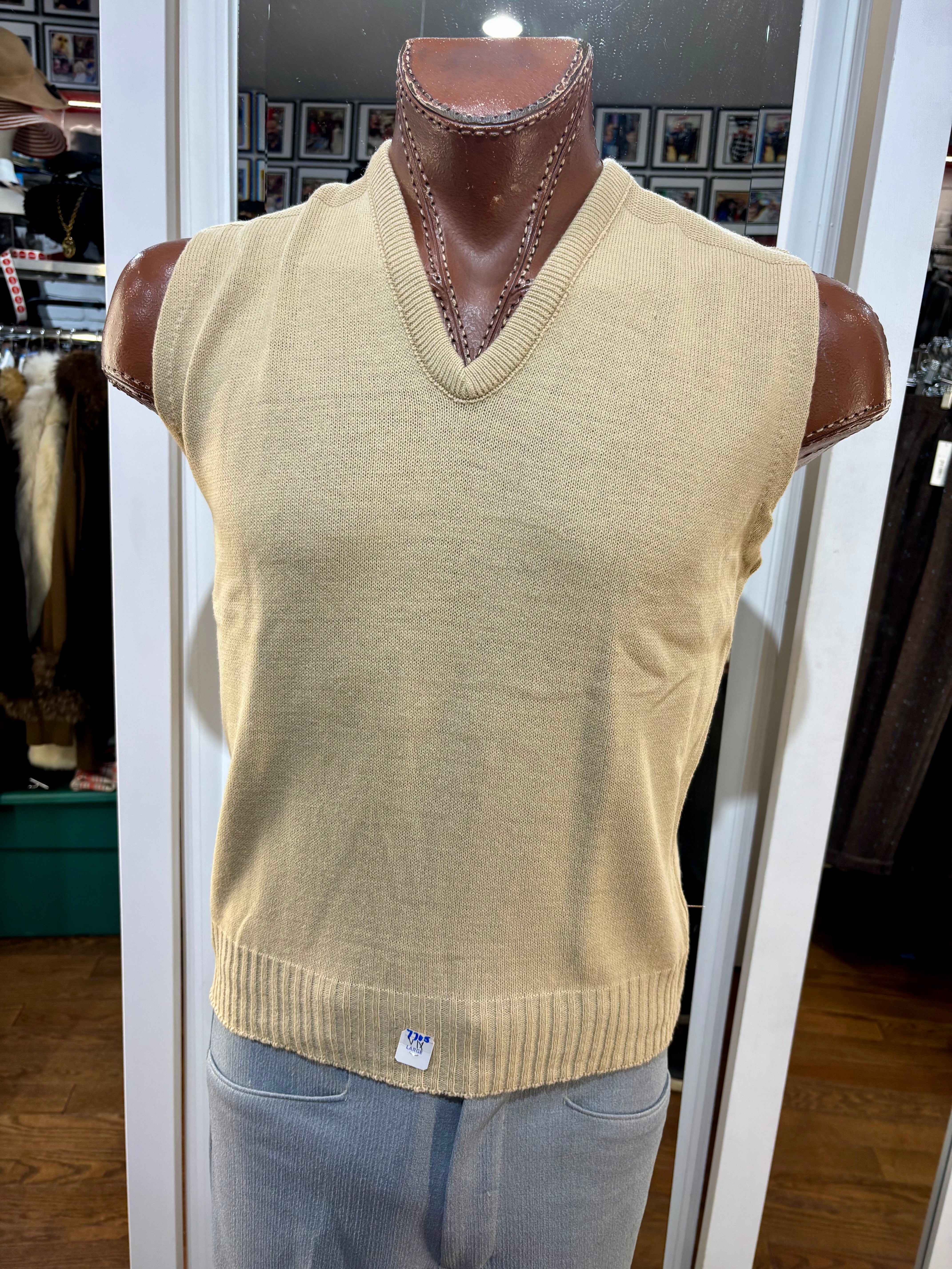 70’s Light Brown Old Stock V-Neck Knit Sweater Vest By Marks Sweater