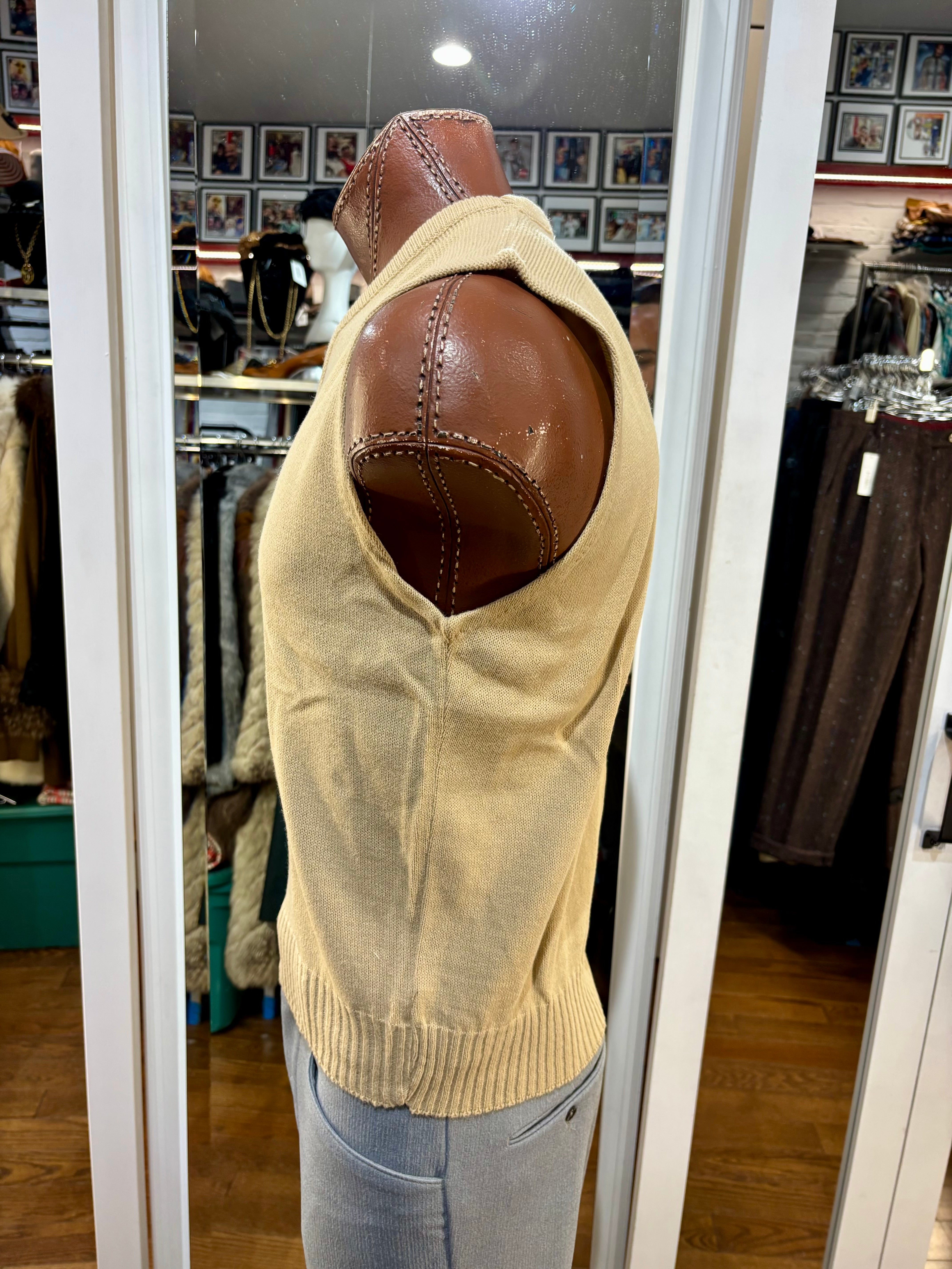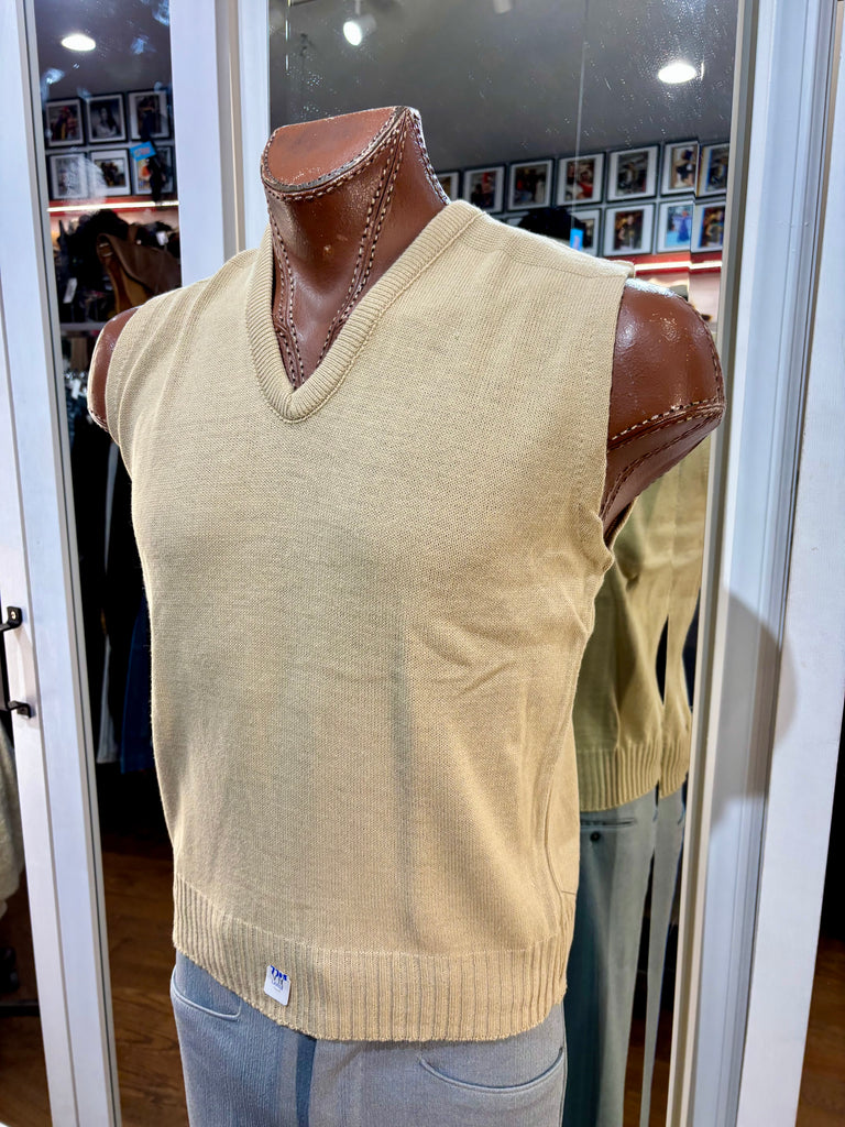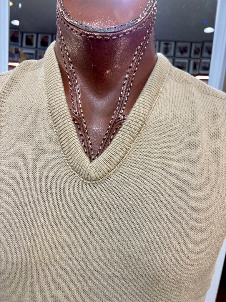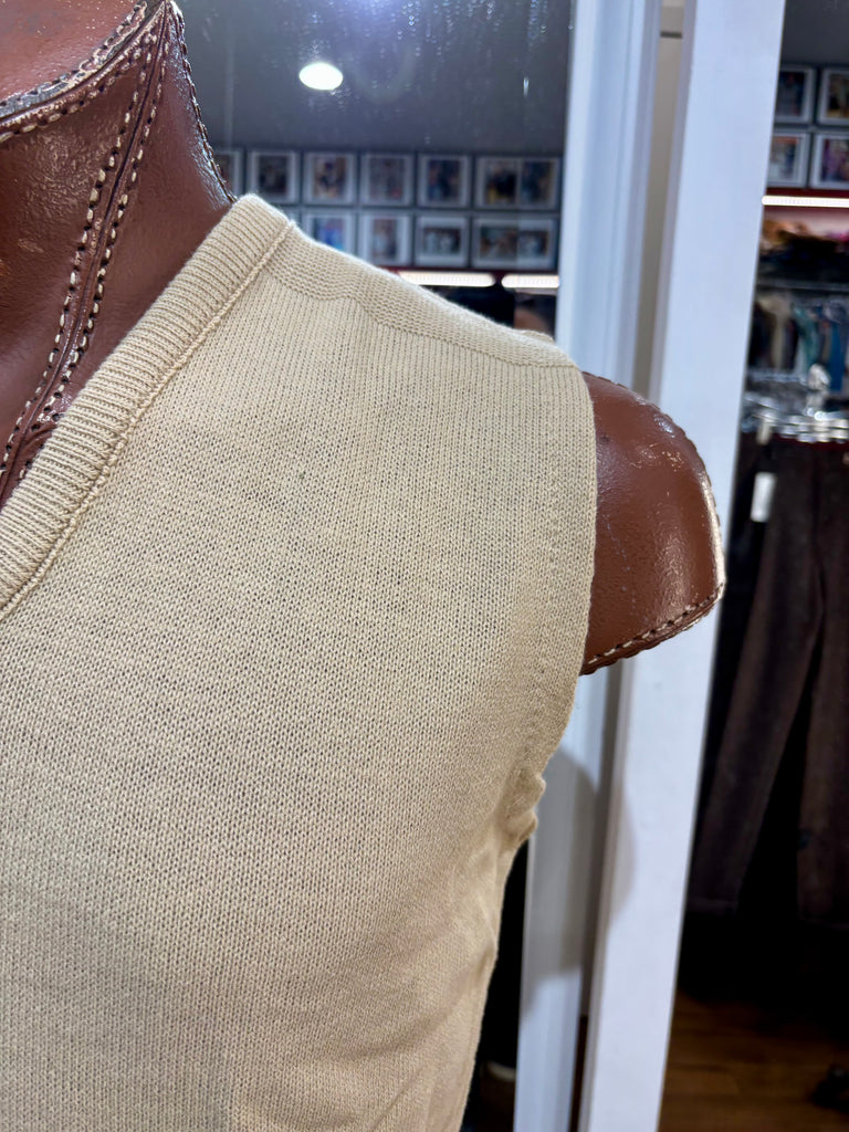 70’s Light Brown Old Stock V-Neck Knit Sweater Vest By Marks Sweater