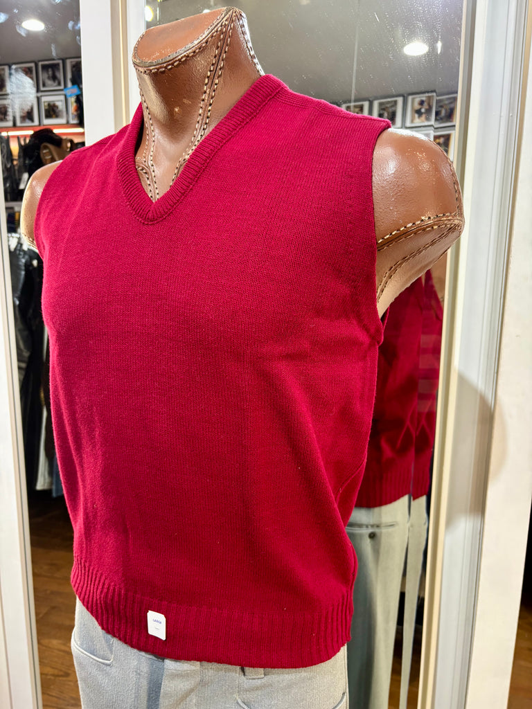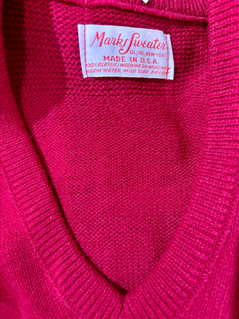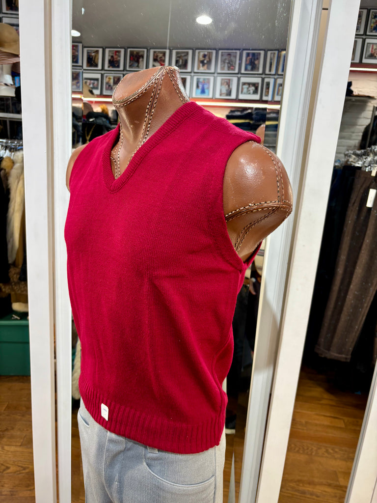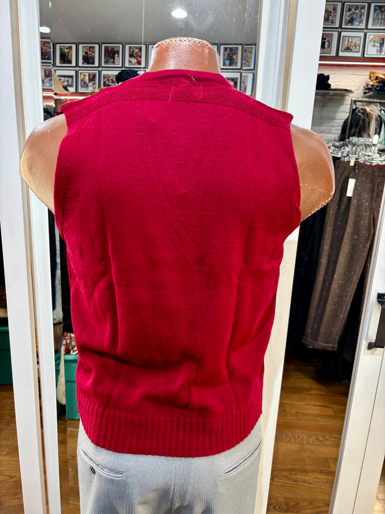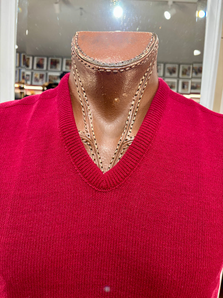 70’s Red Old Stock V-Neck Knit Sweater Vest By Marks Sweater