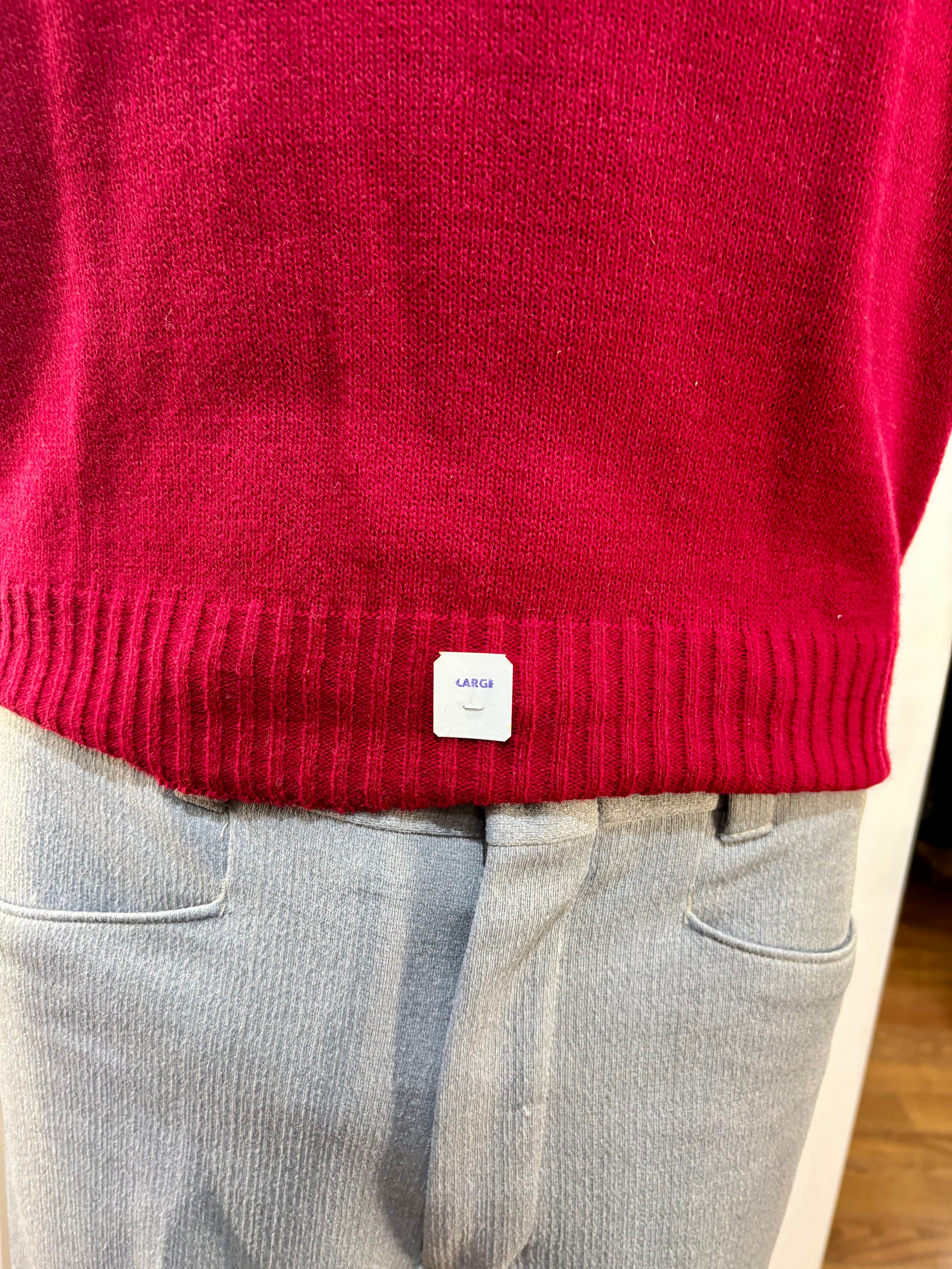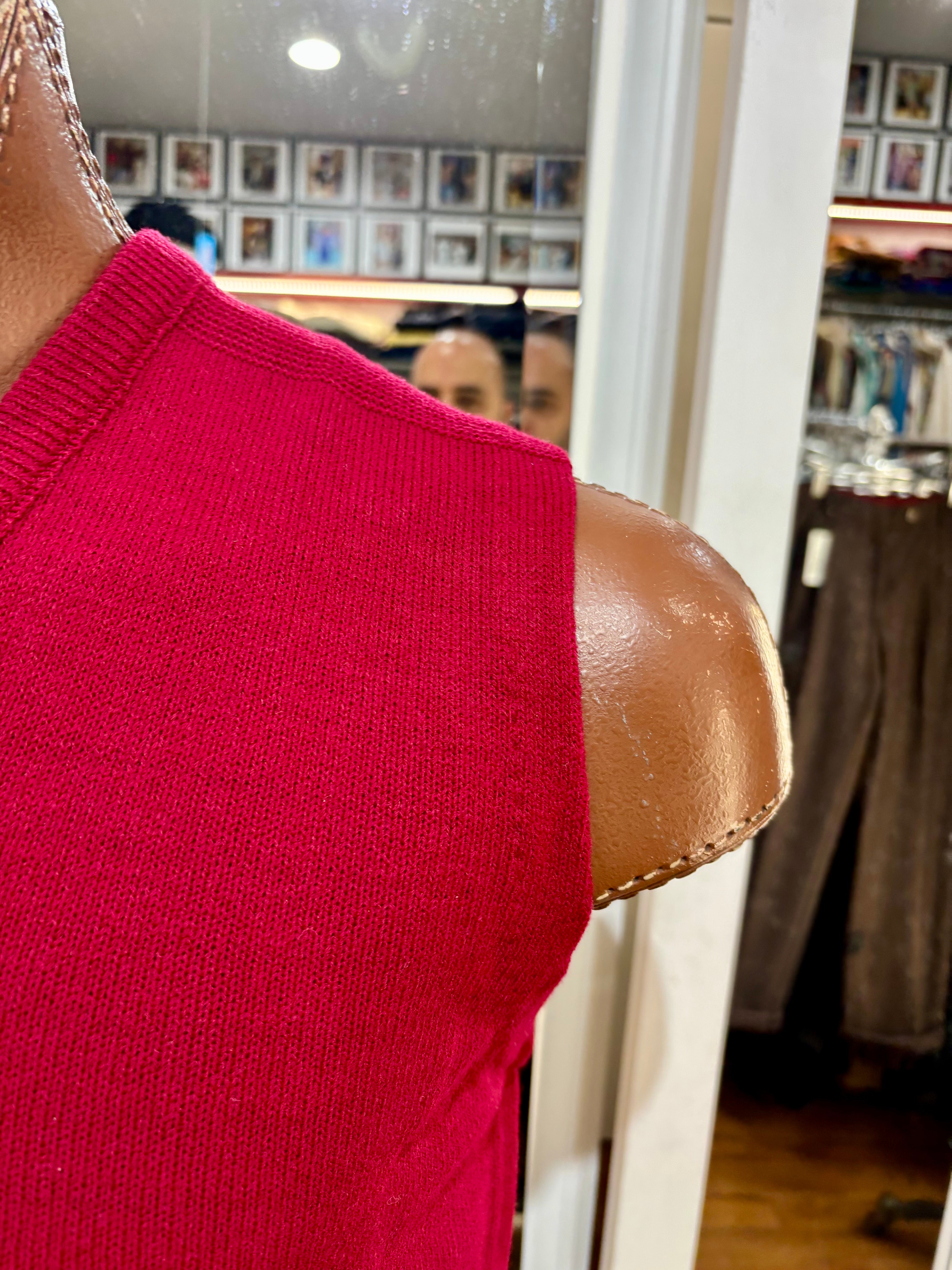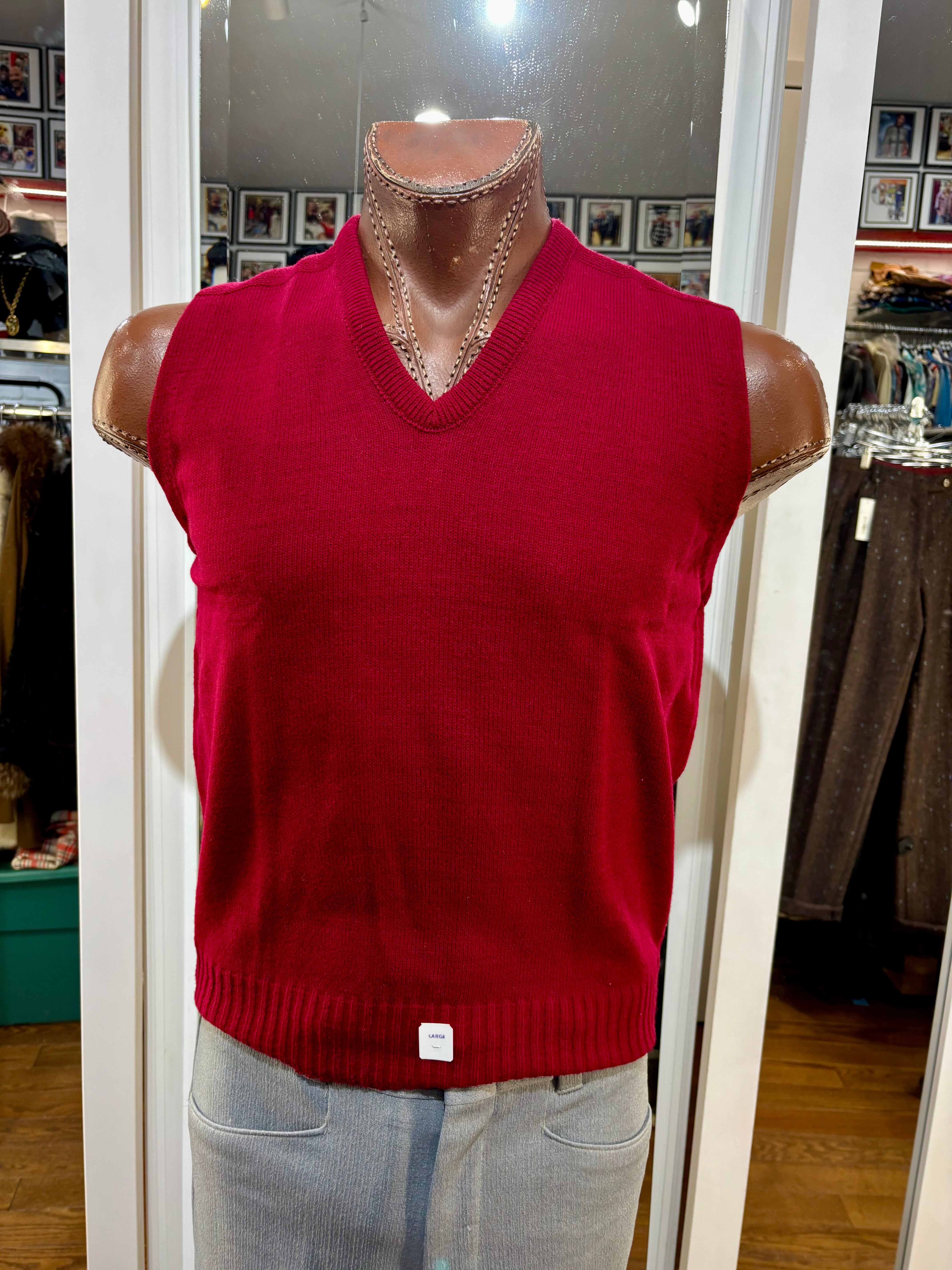 70’s Red Old Stock V-Neck Knit Sweater Vest By Marks Sweater
