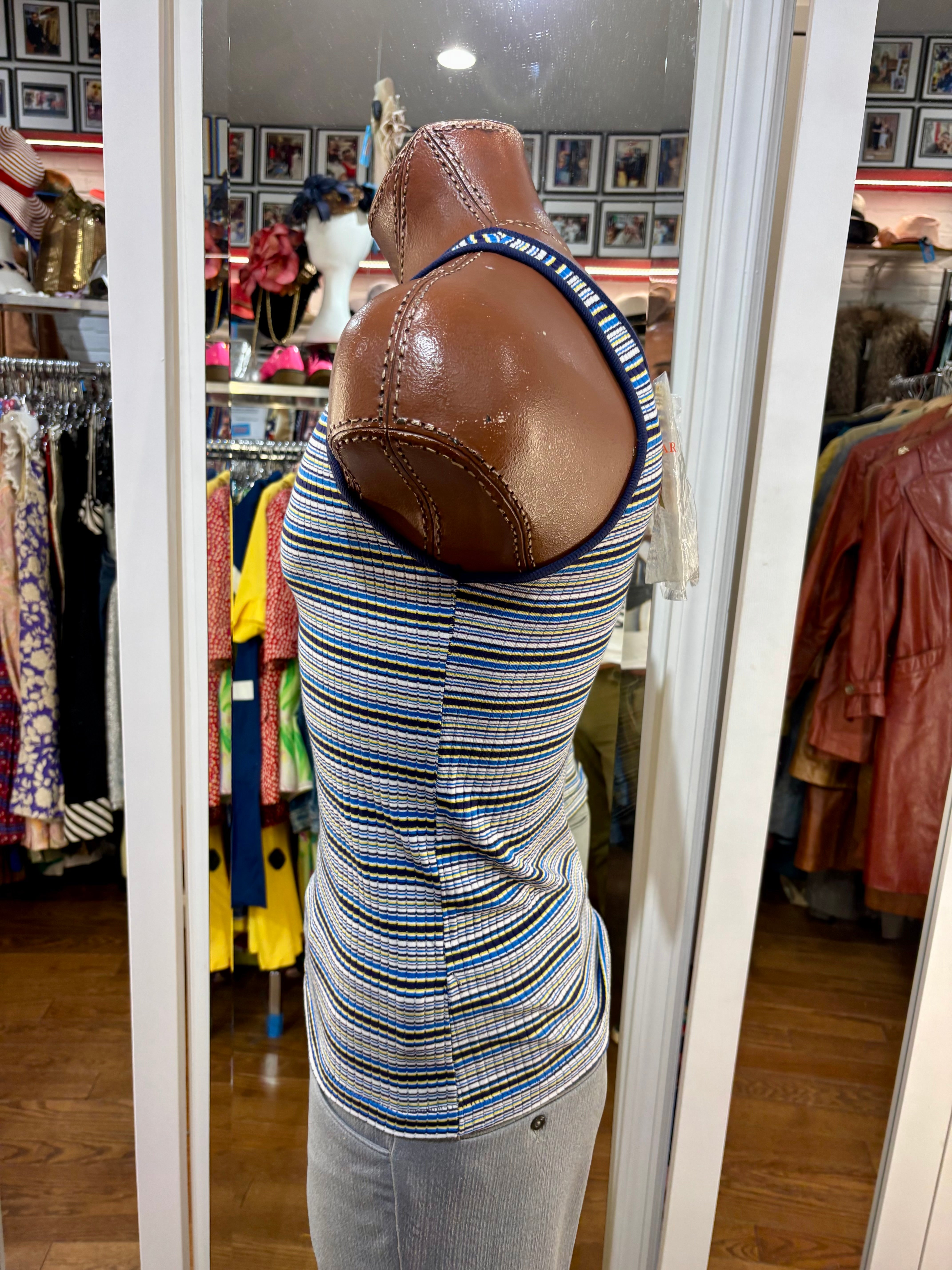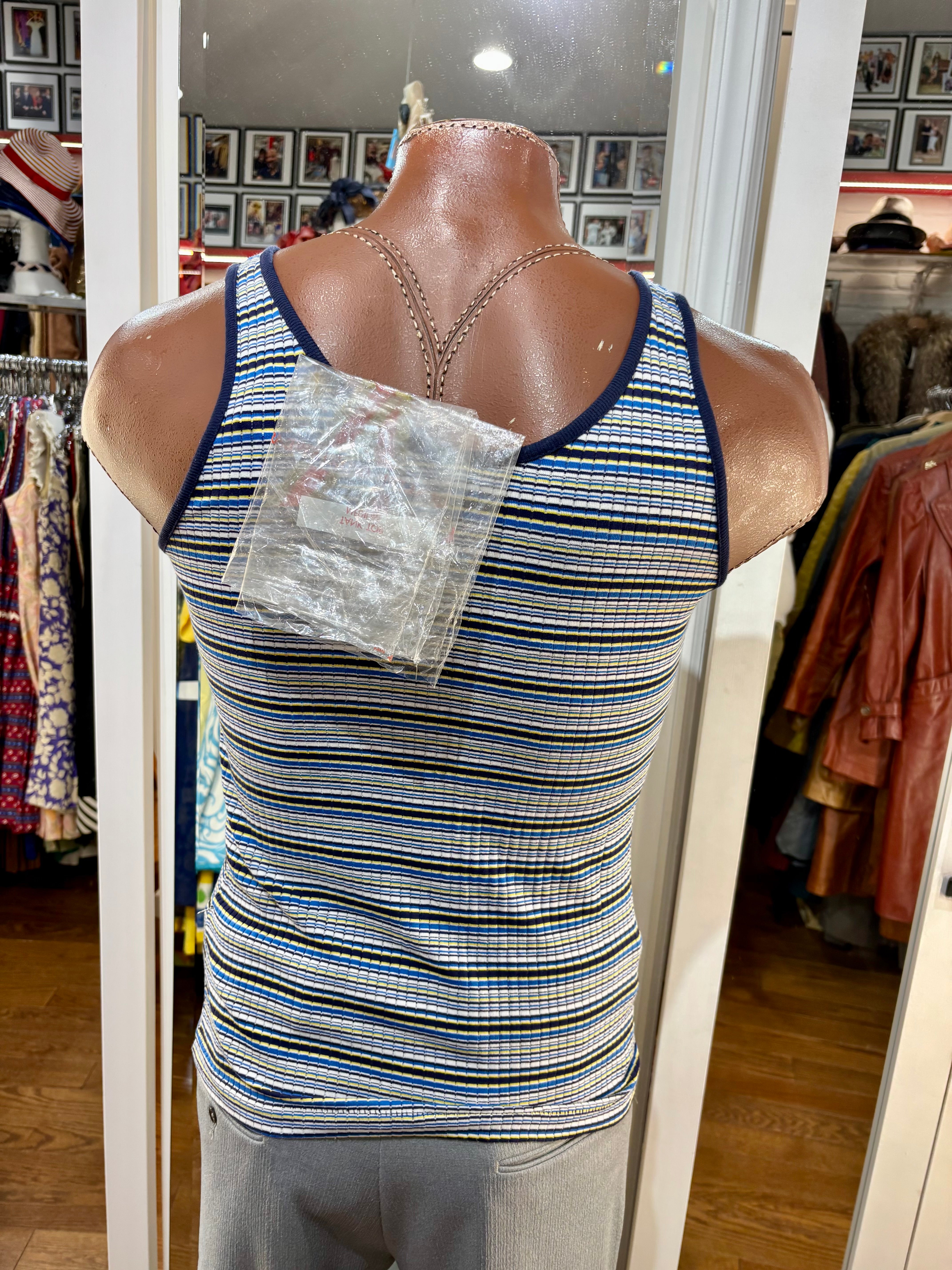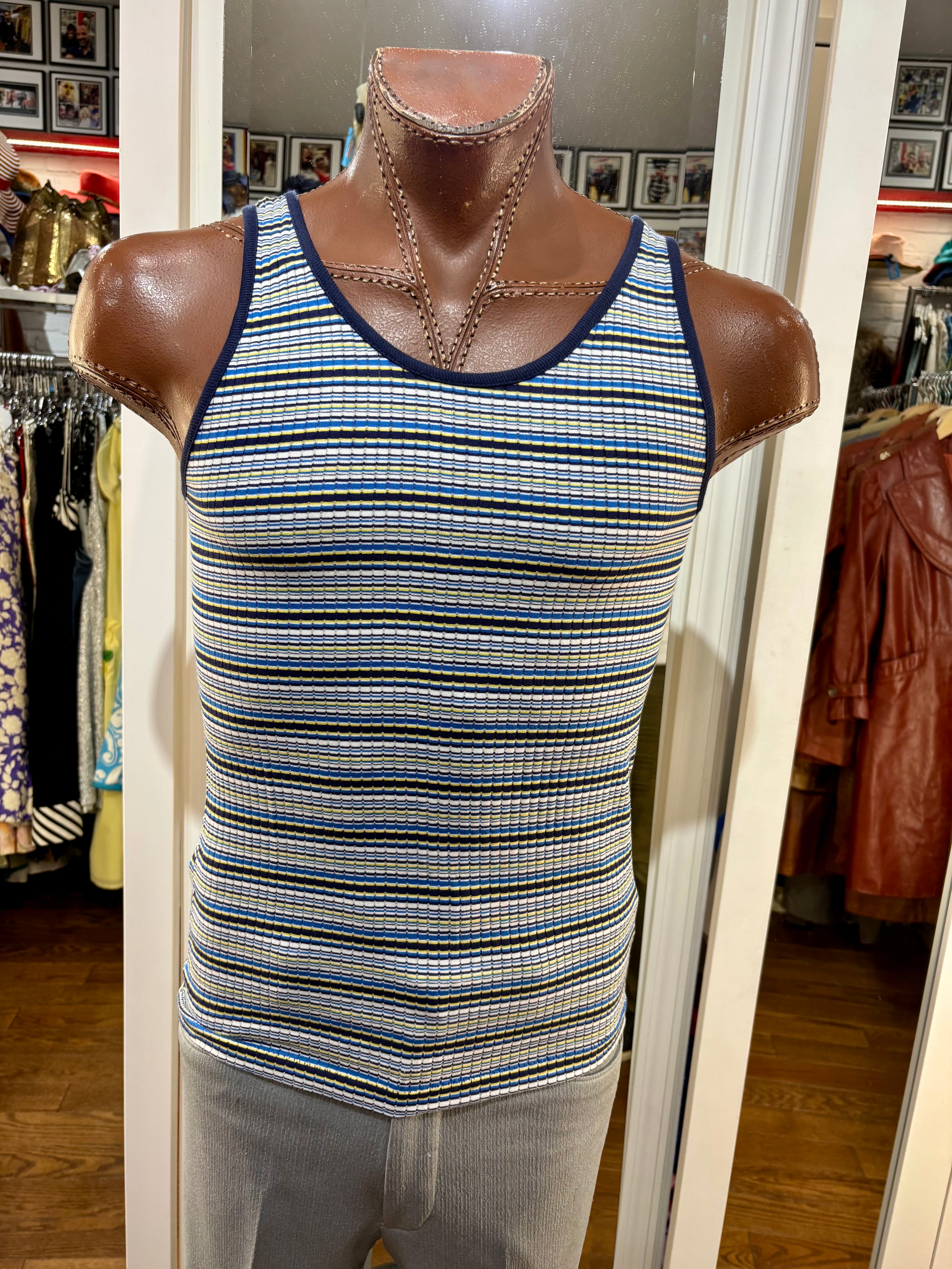70’s Blue And Yellow Striped Tank Top By Westbury
