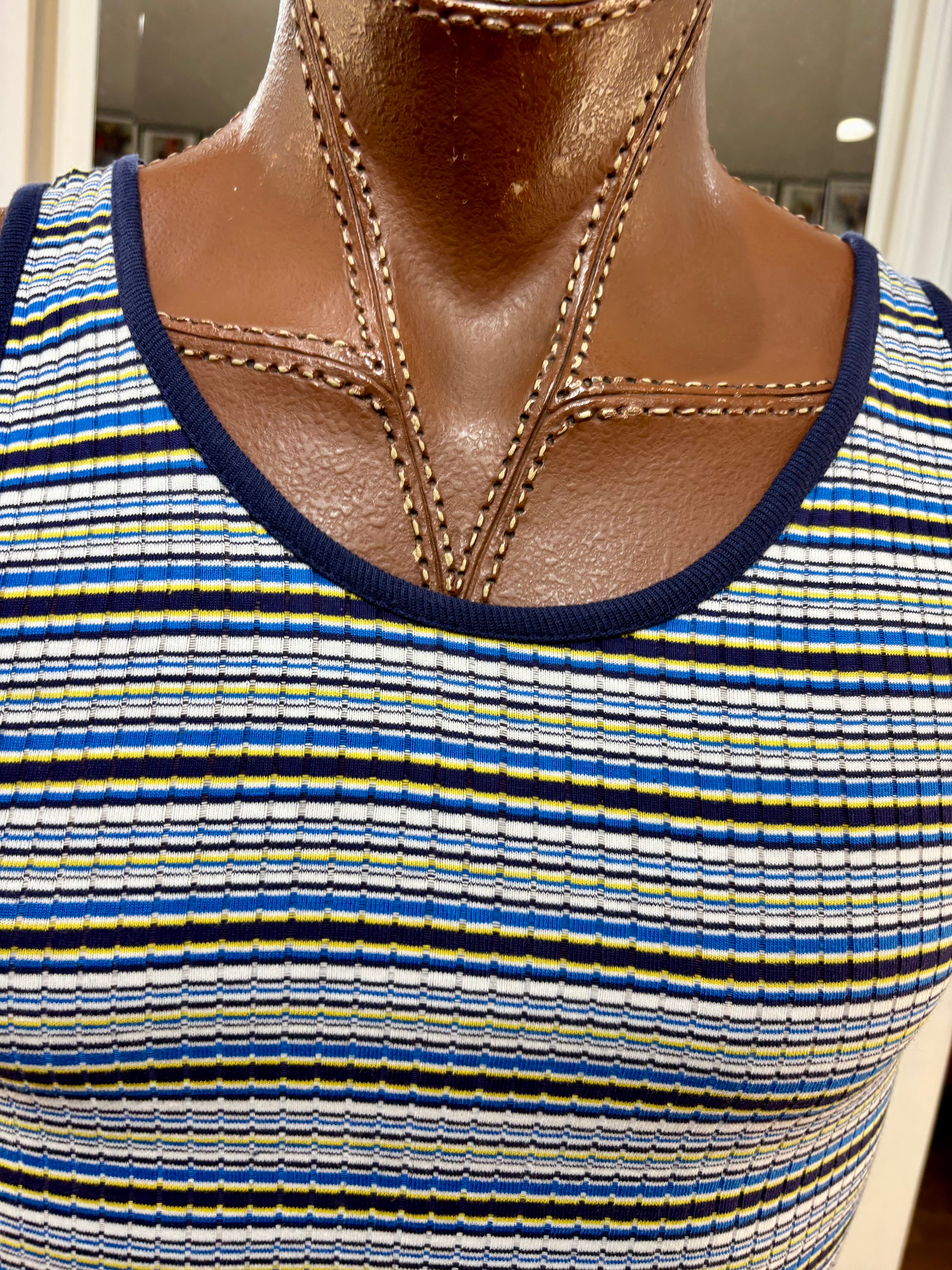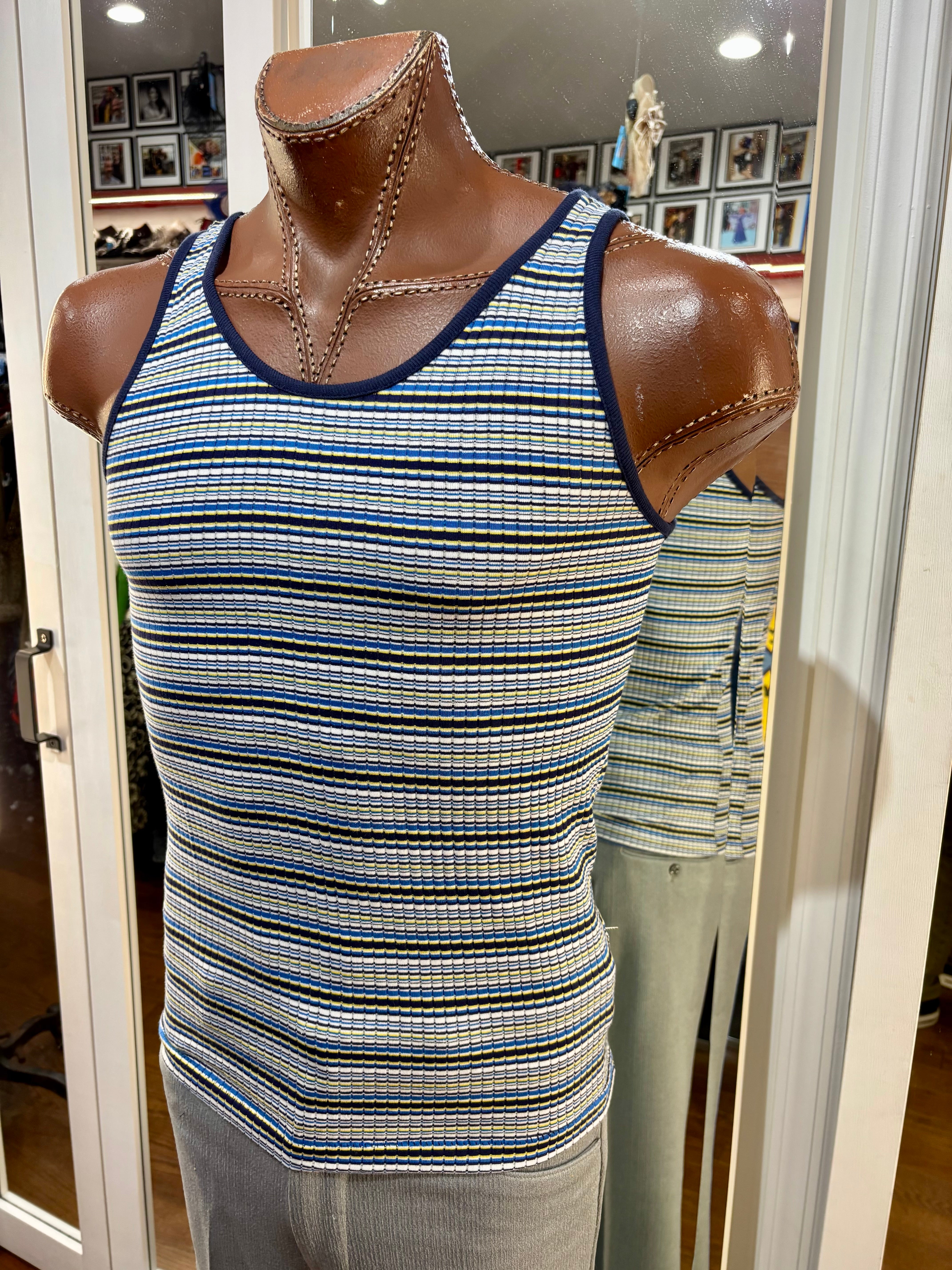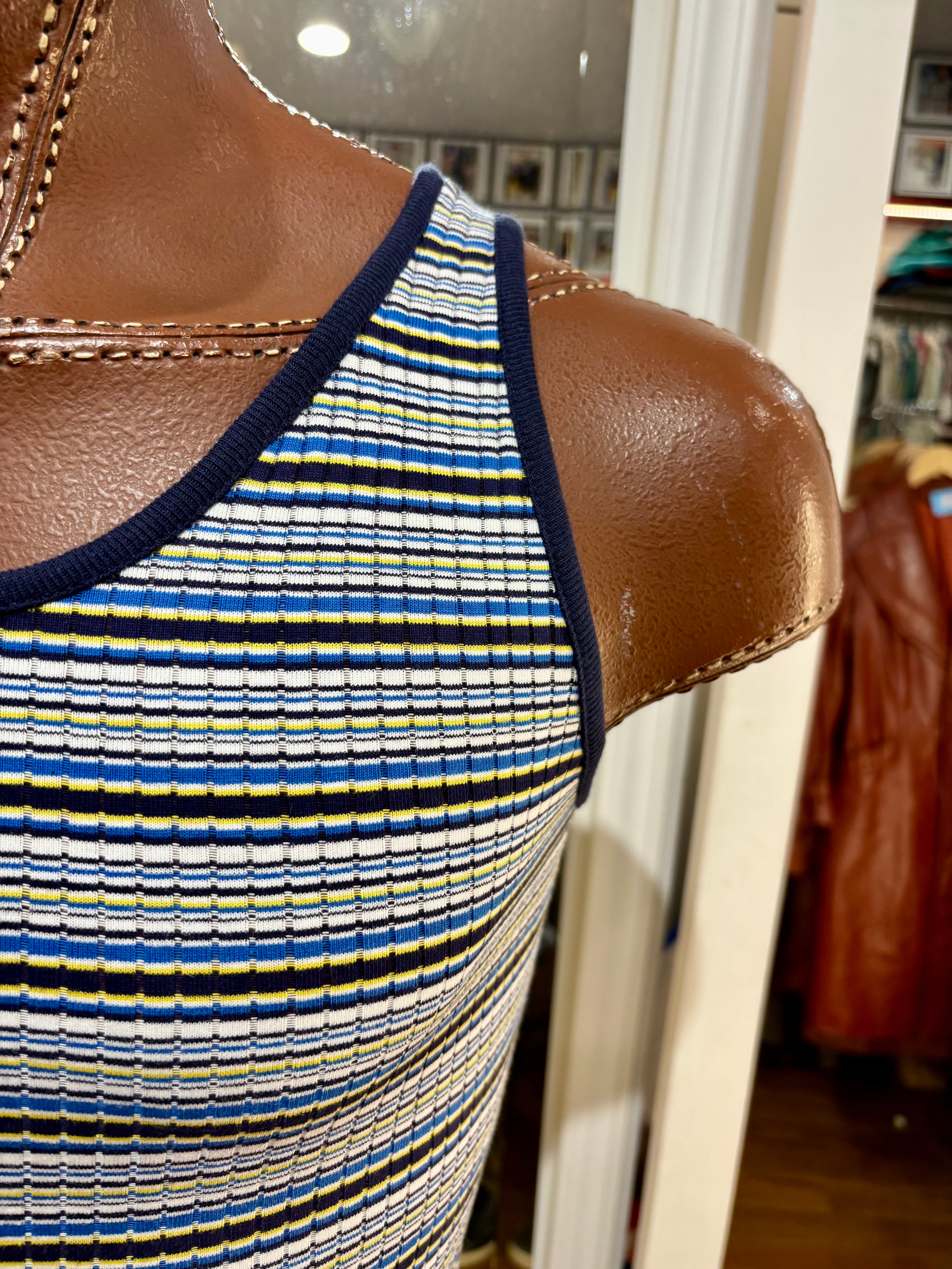 70’s Blue And Yellow Striped Tank Top By Westbury