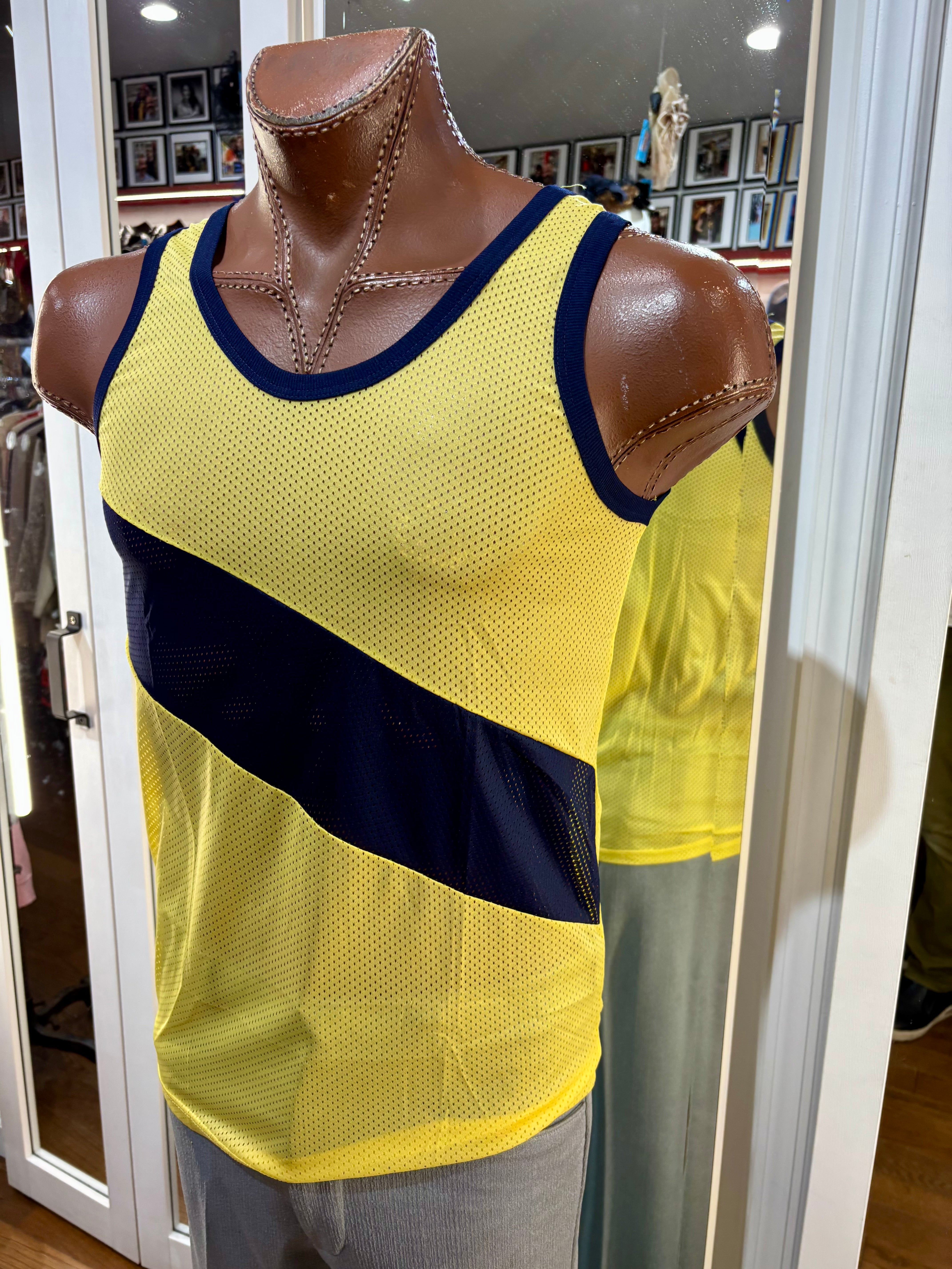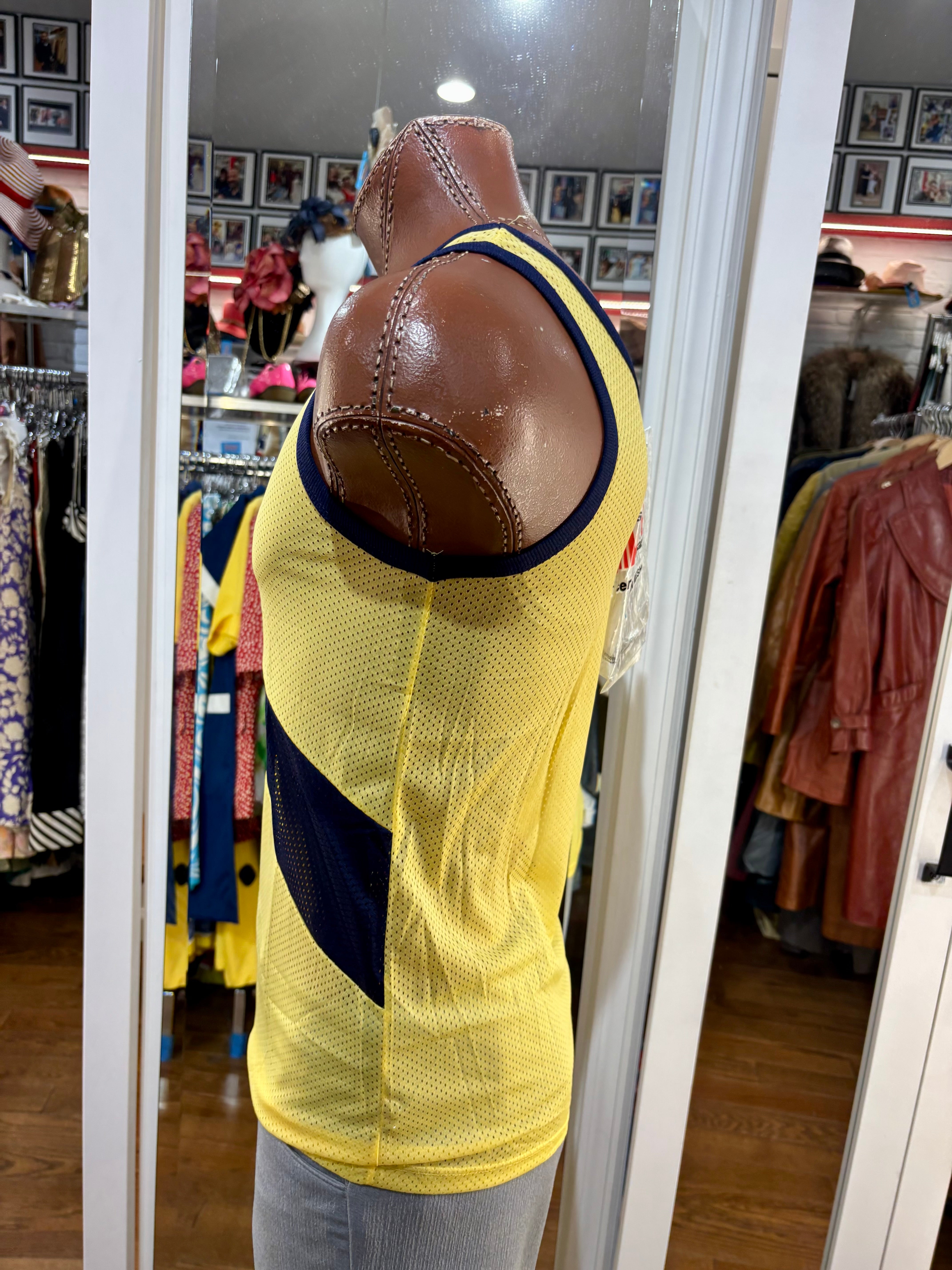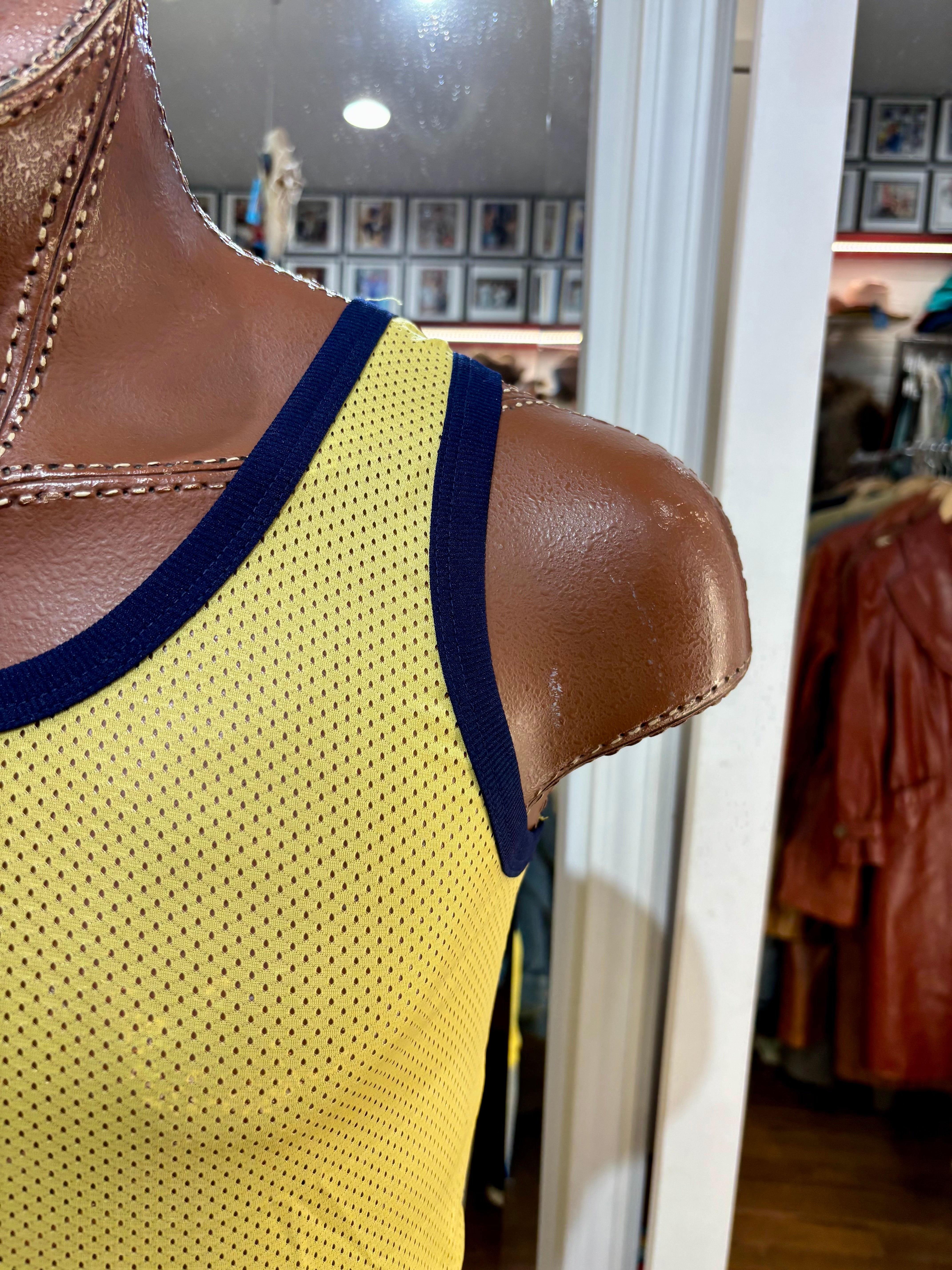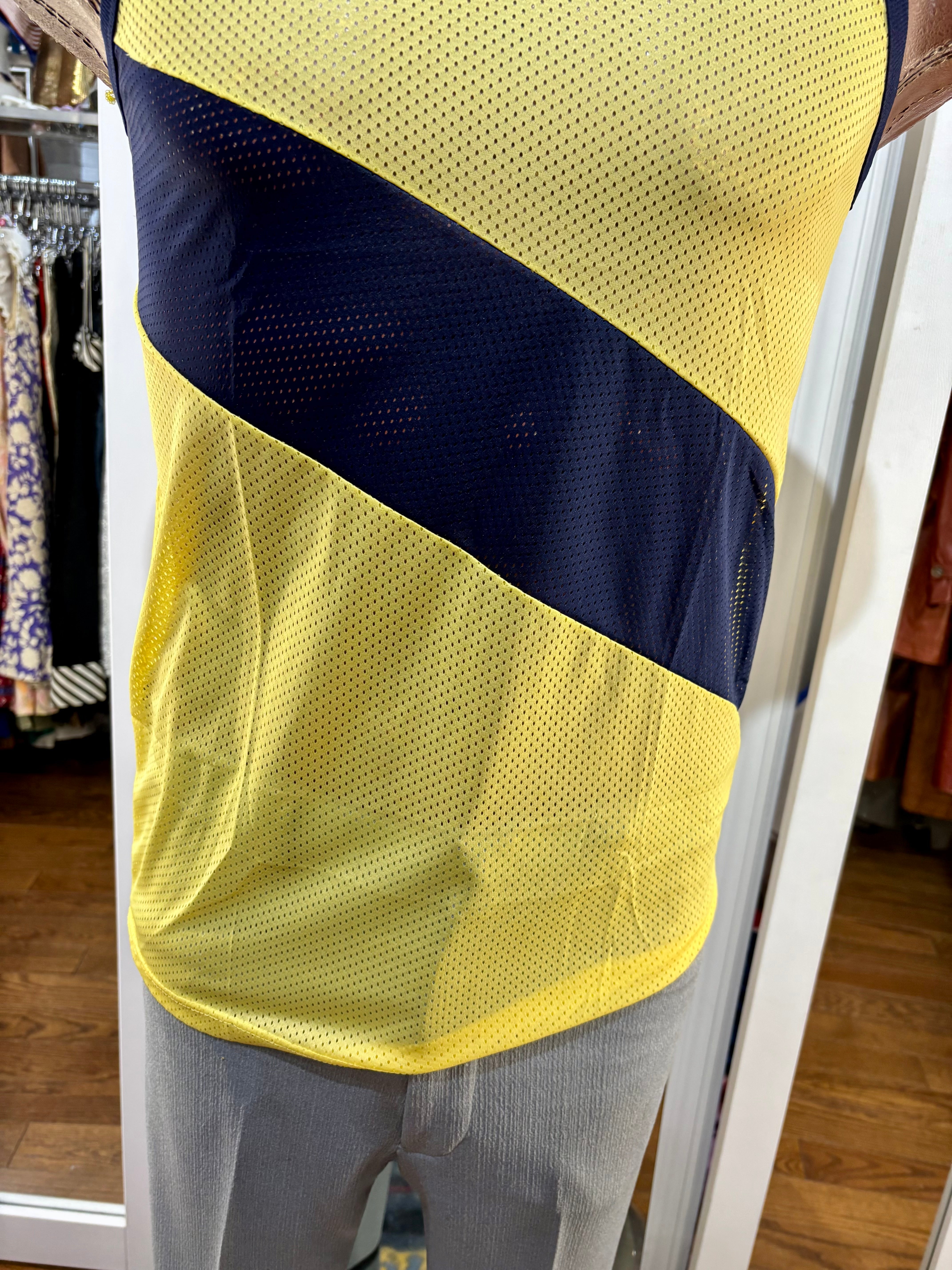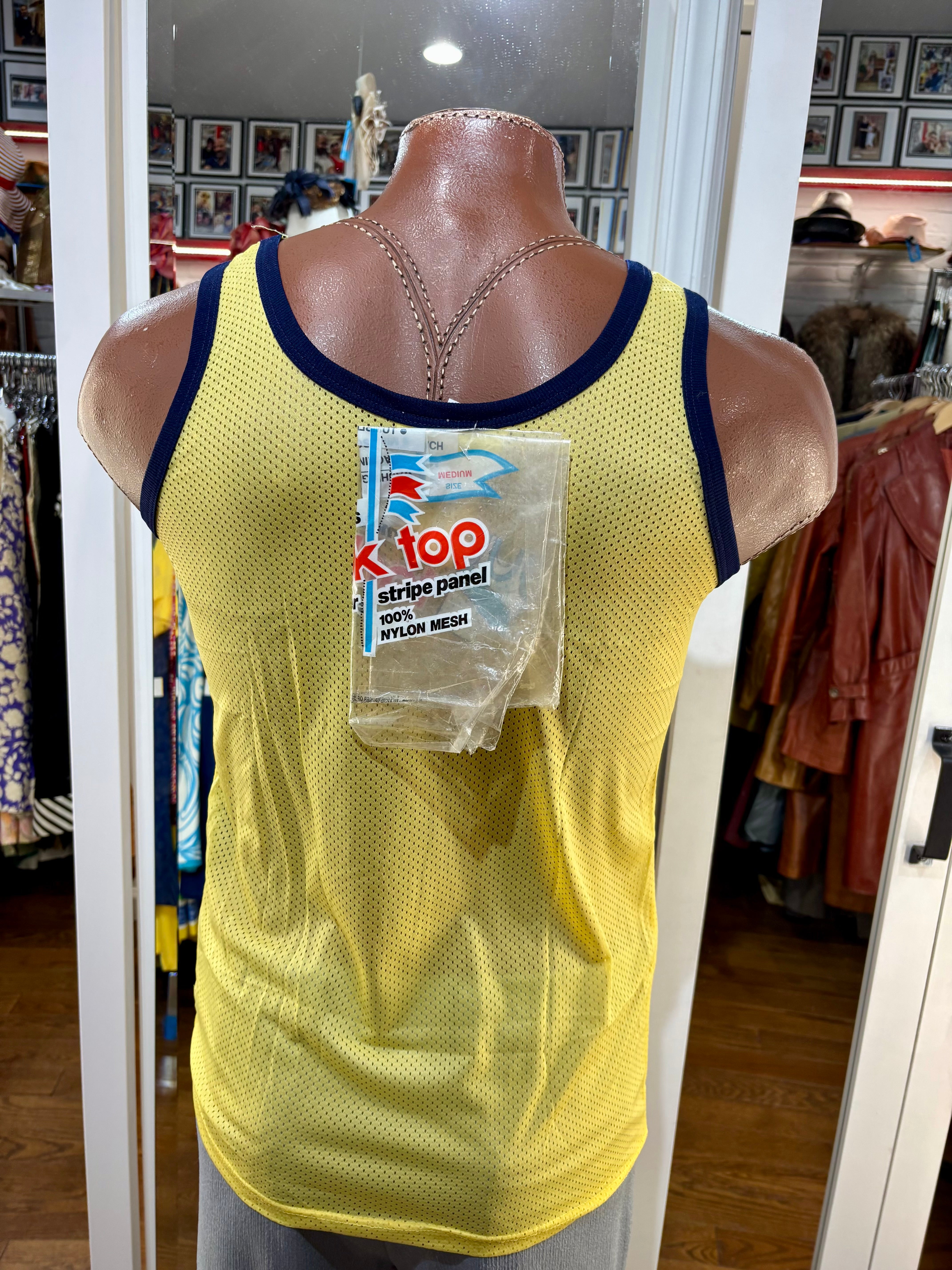 70’s Pale Yellow And Navy Mesh Stretch Ringer Tank Top