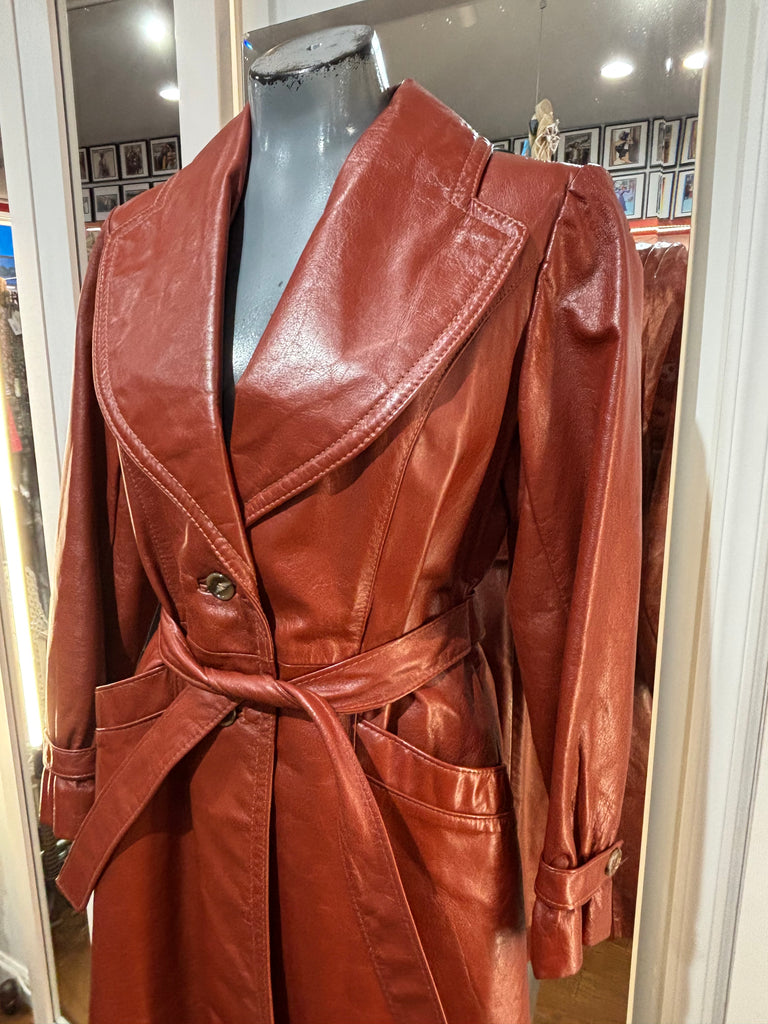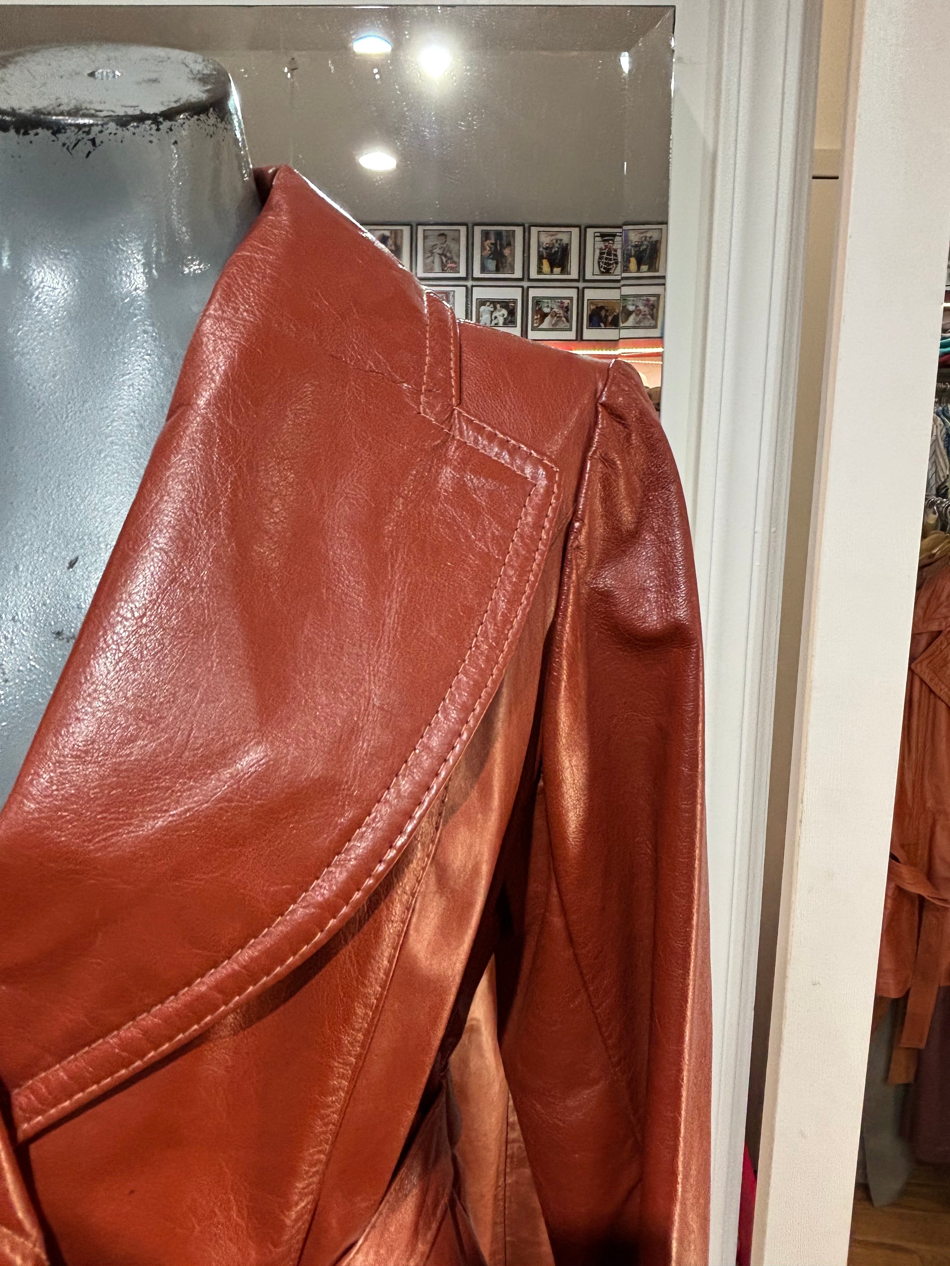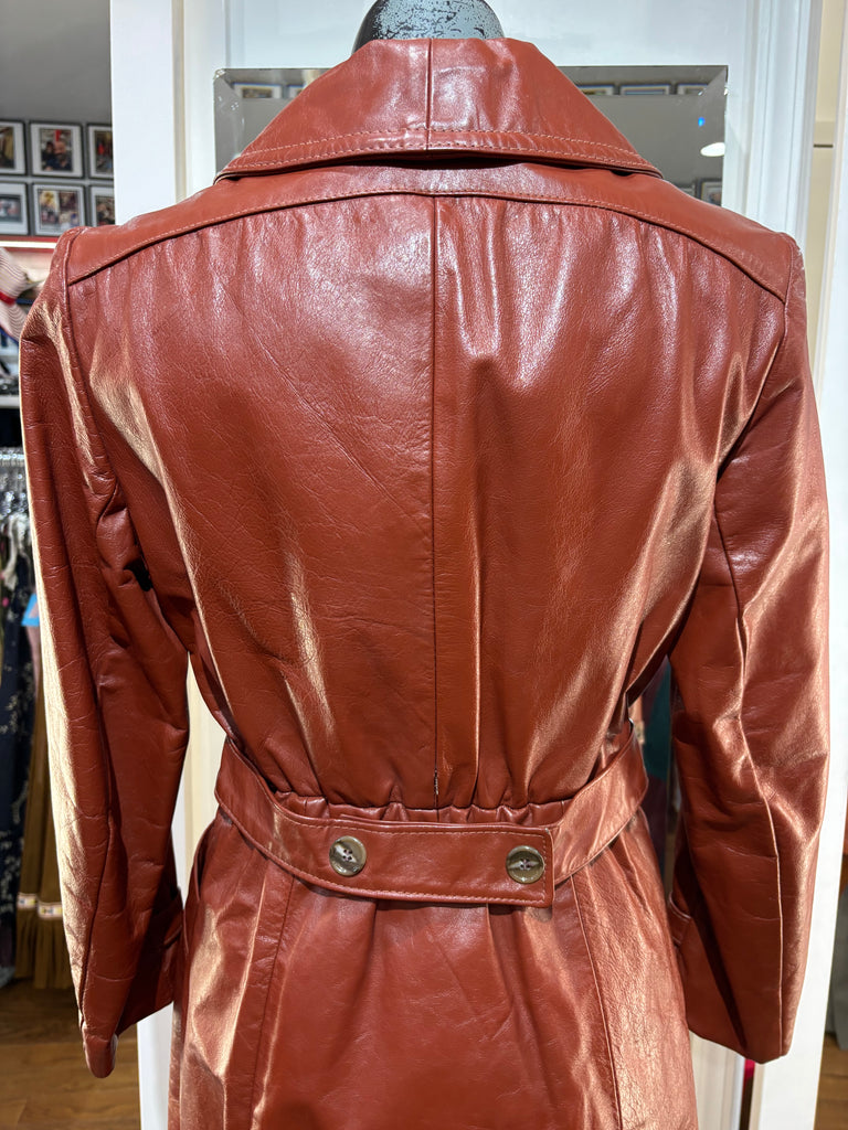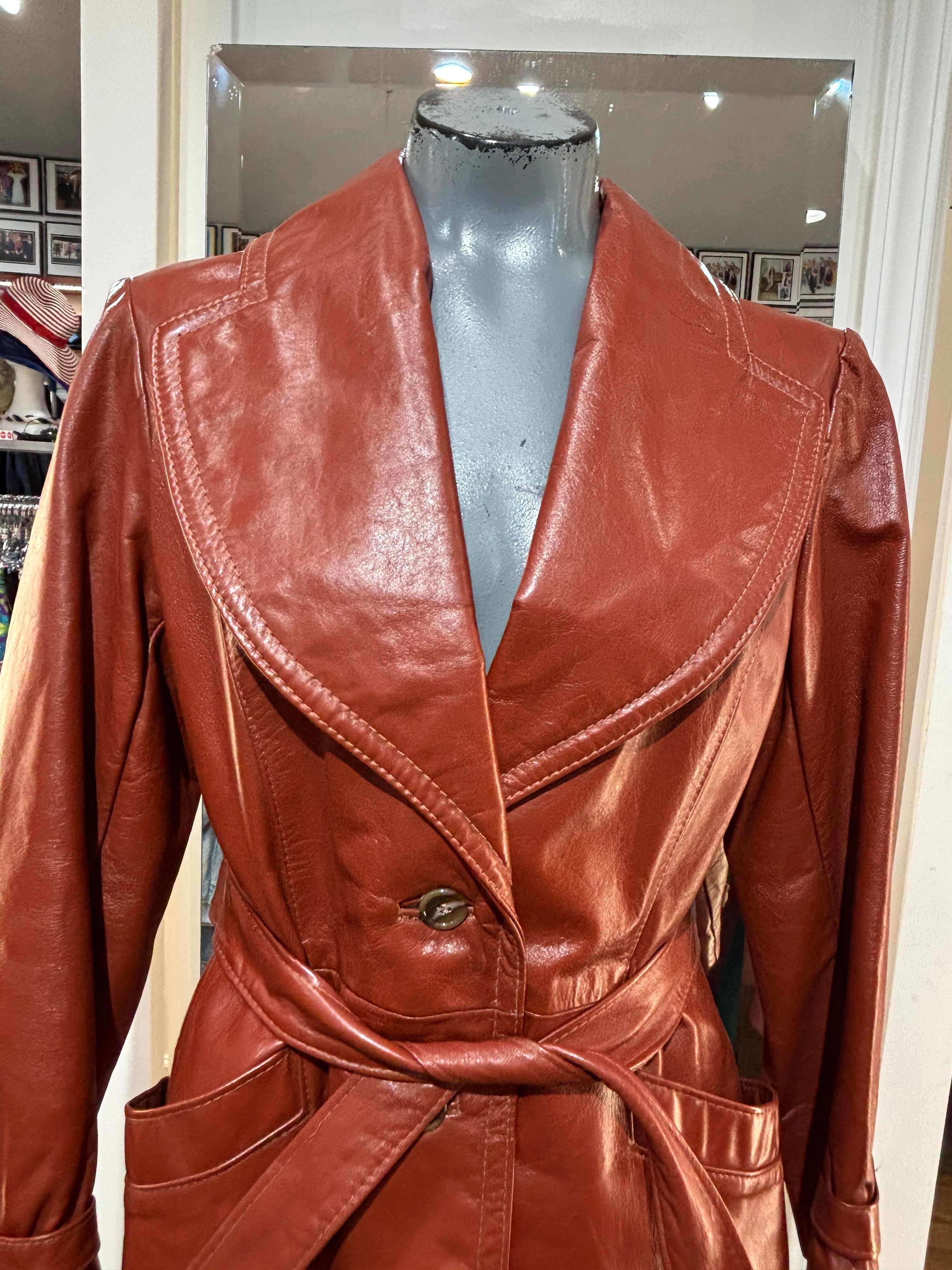 70’s Brown Oversized Lapel Leather Belted Jacket
