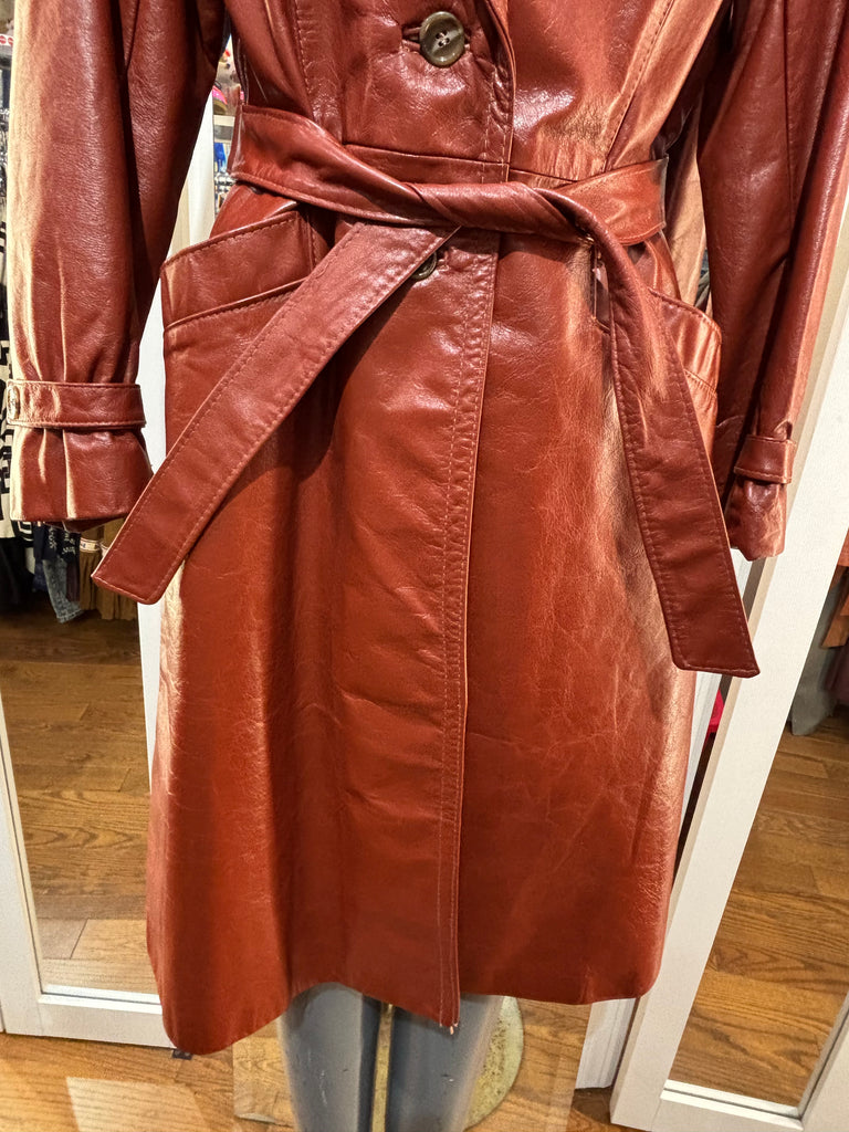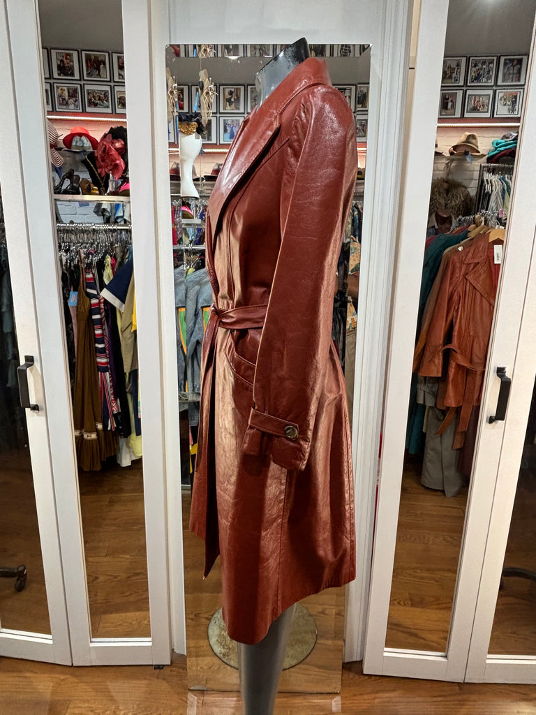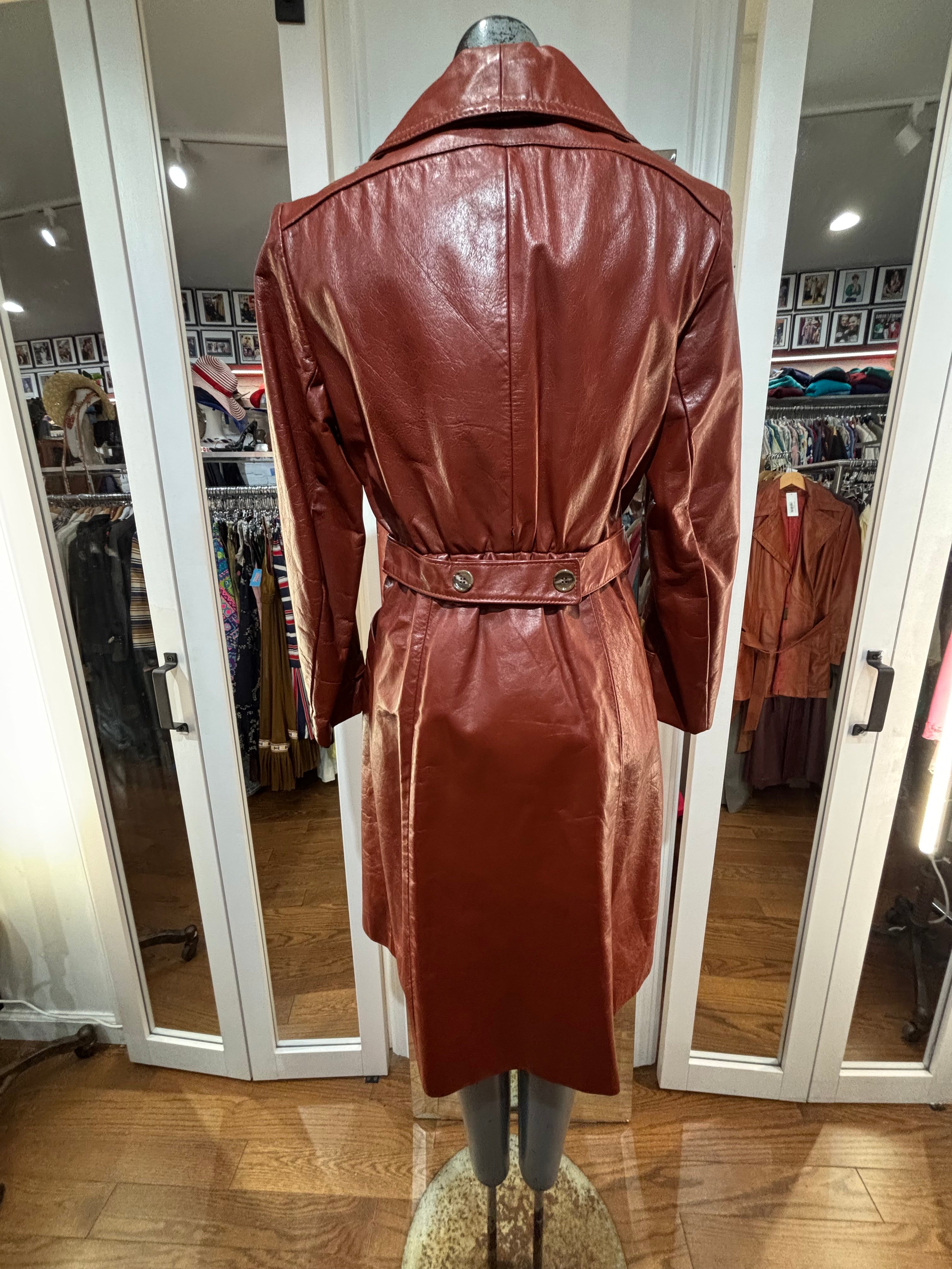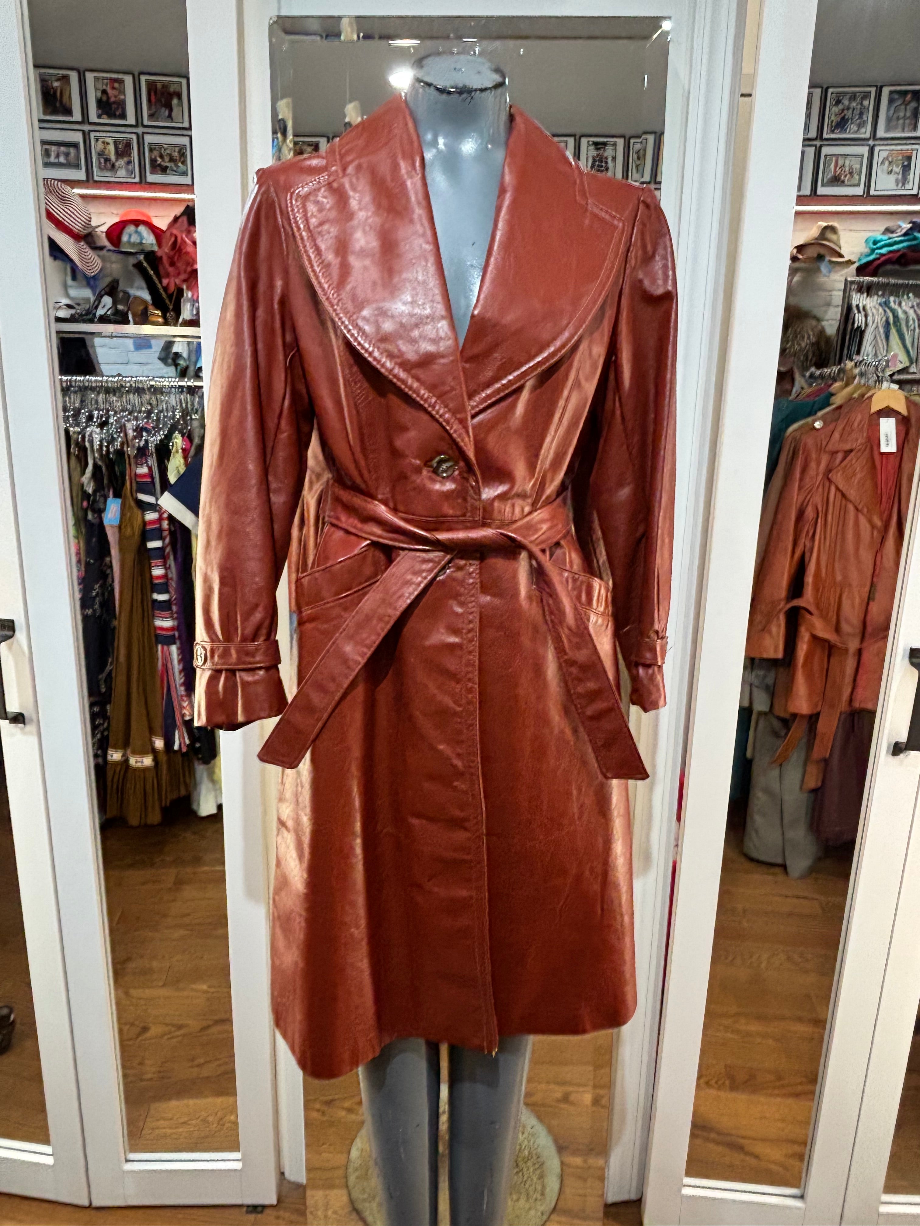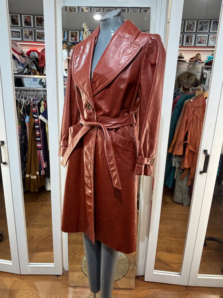 70’s Brown Oversized Lapel Leather Belted Jacket