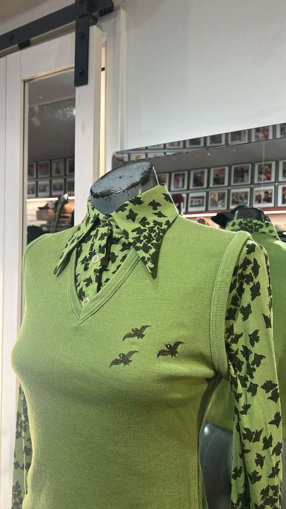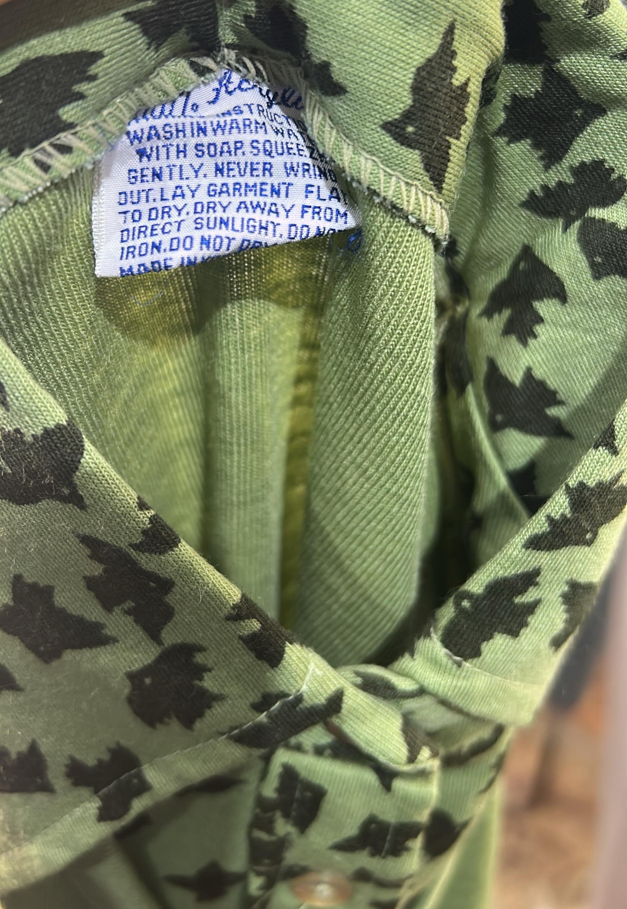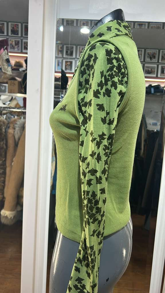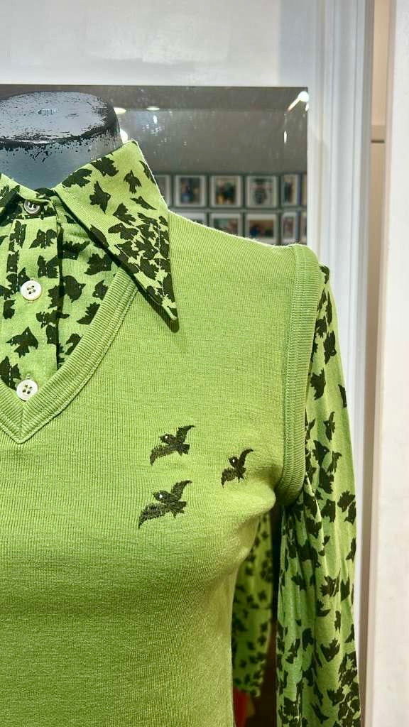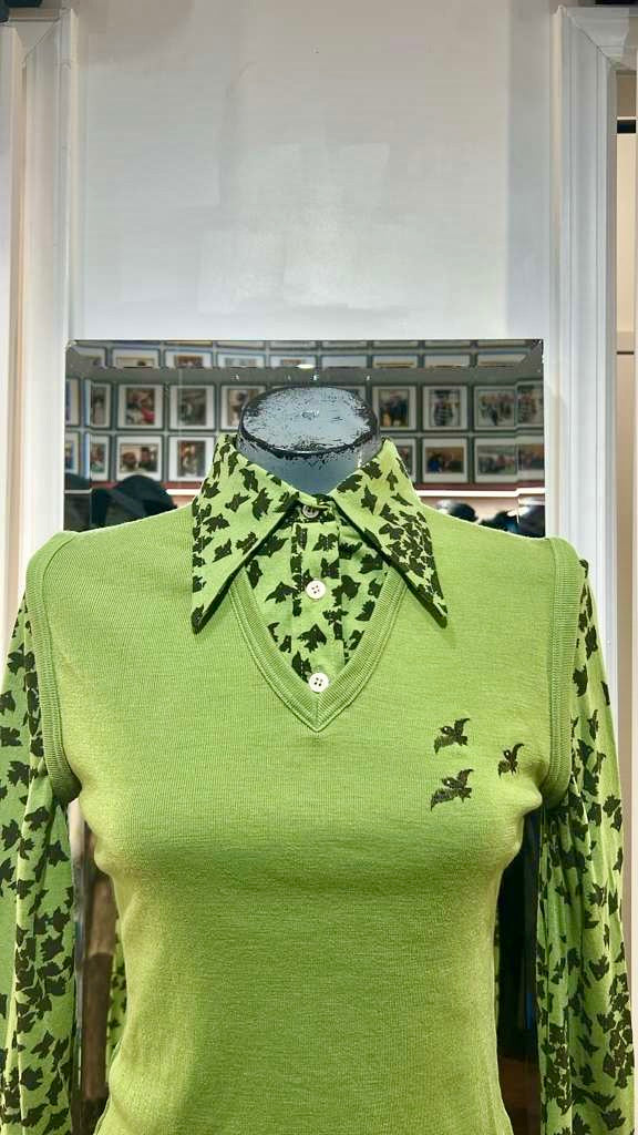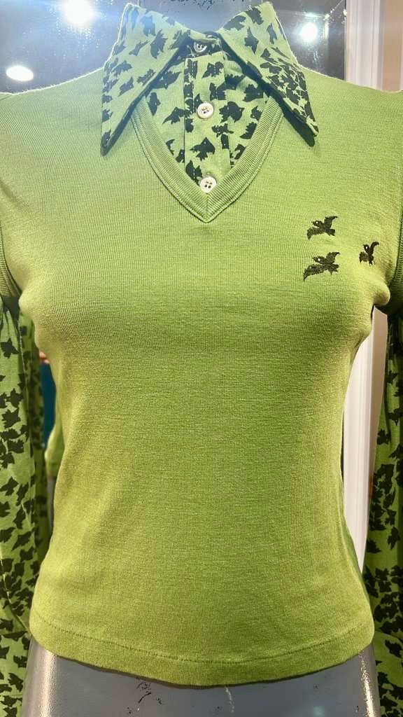 70’s Green Double Layer ilussion Vest & Print Shirt Long Sleeve Pull Dead Stock