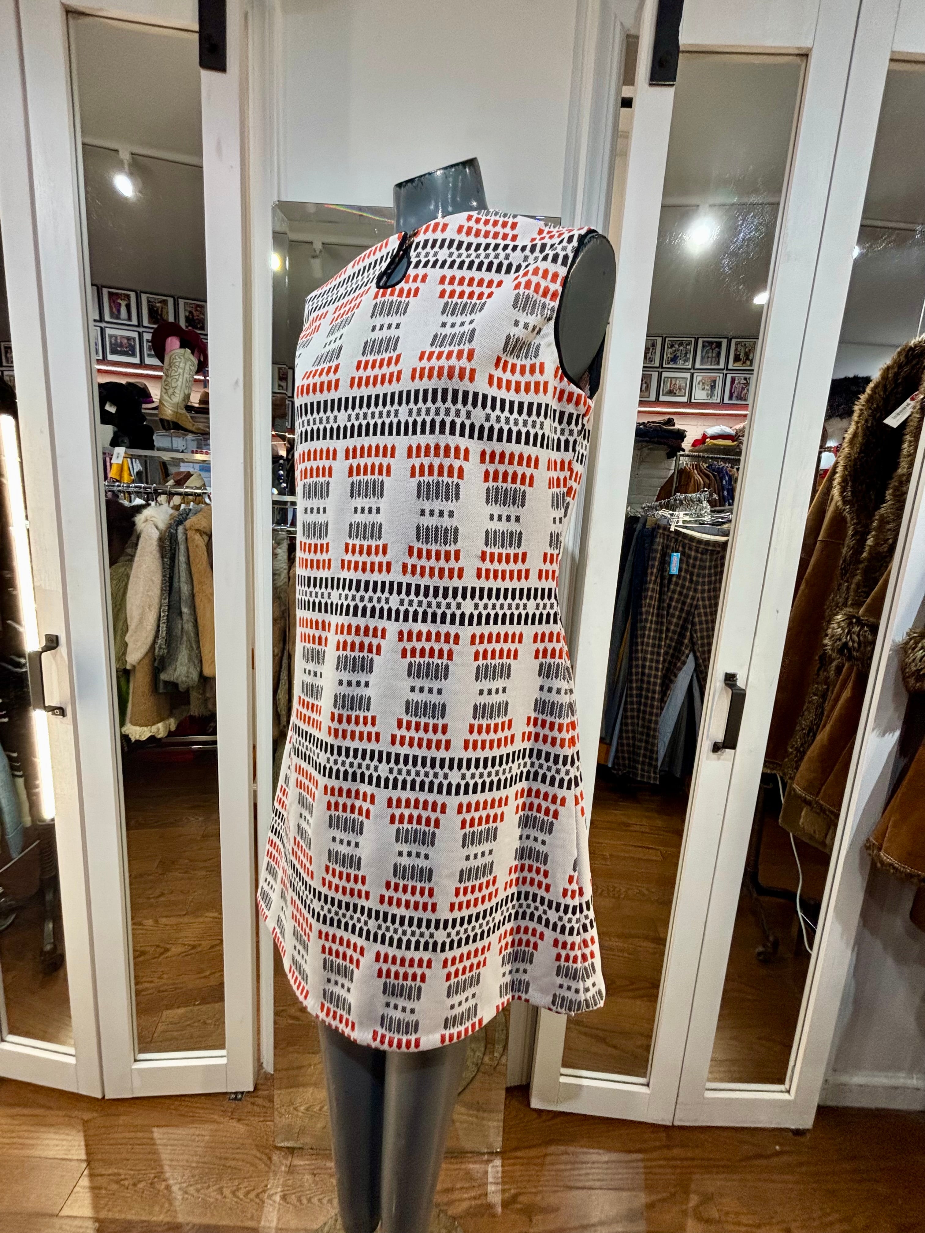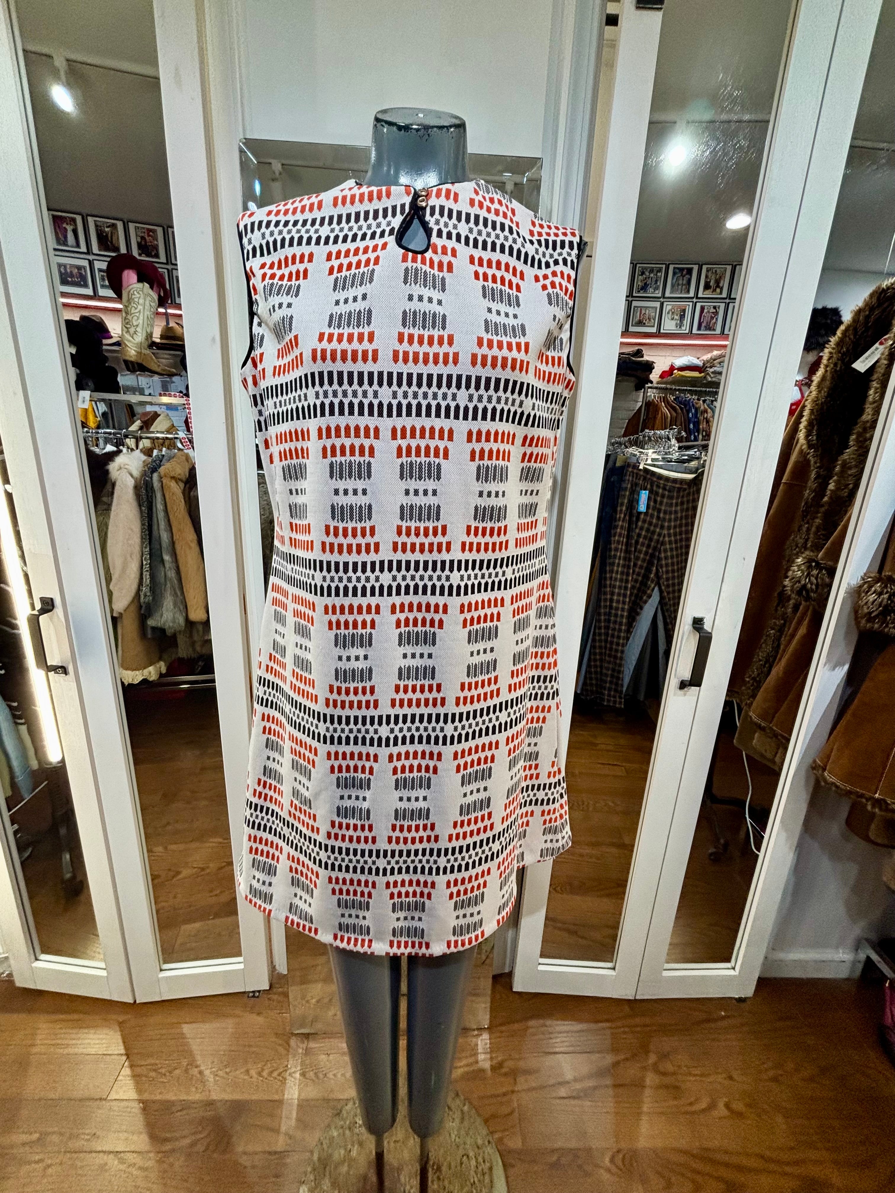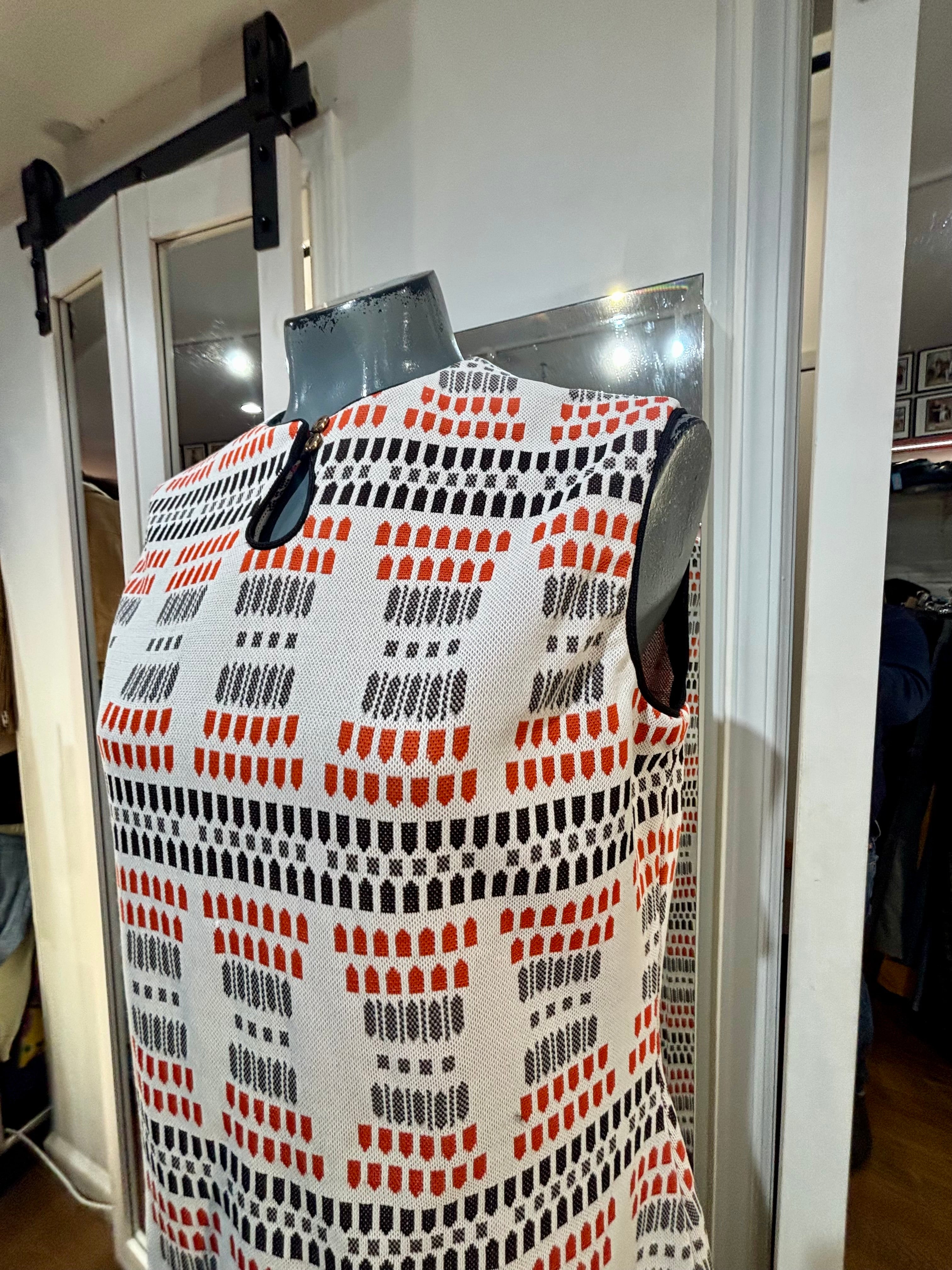 70’s White Multicolor Non Sleeve Mod Print Dress
