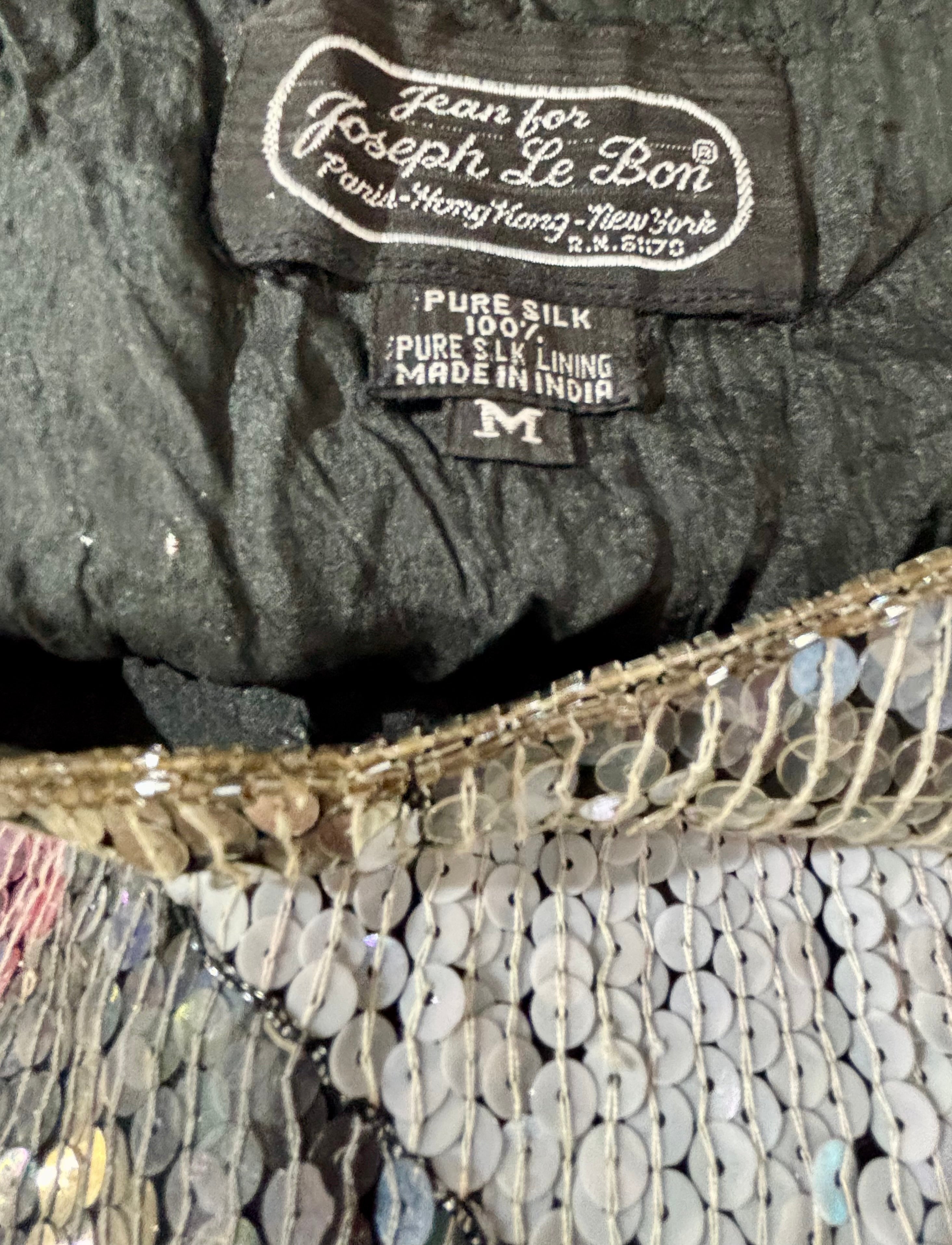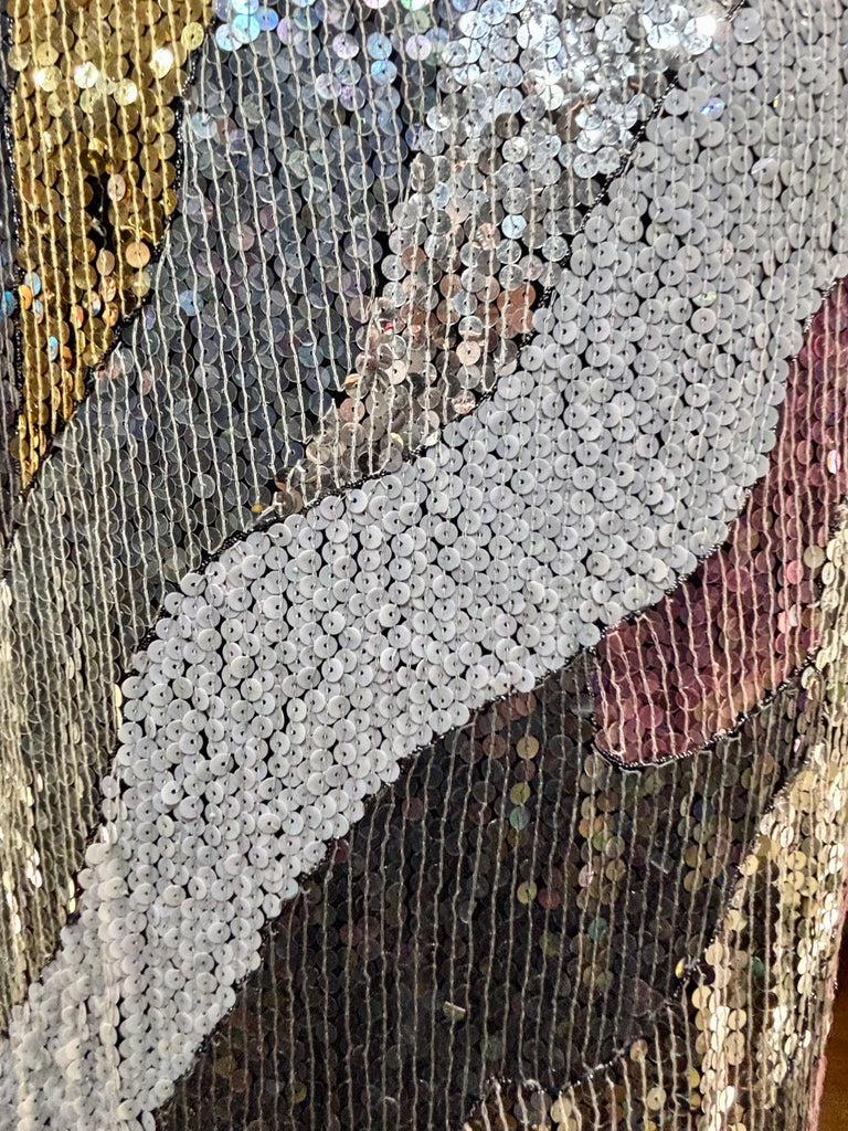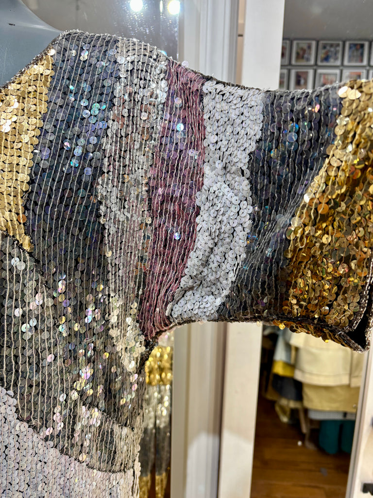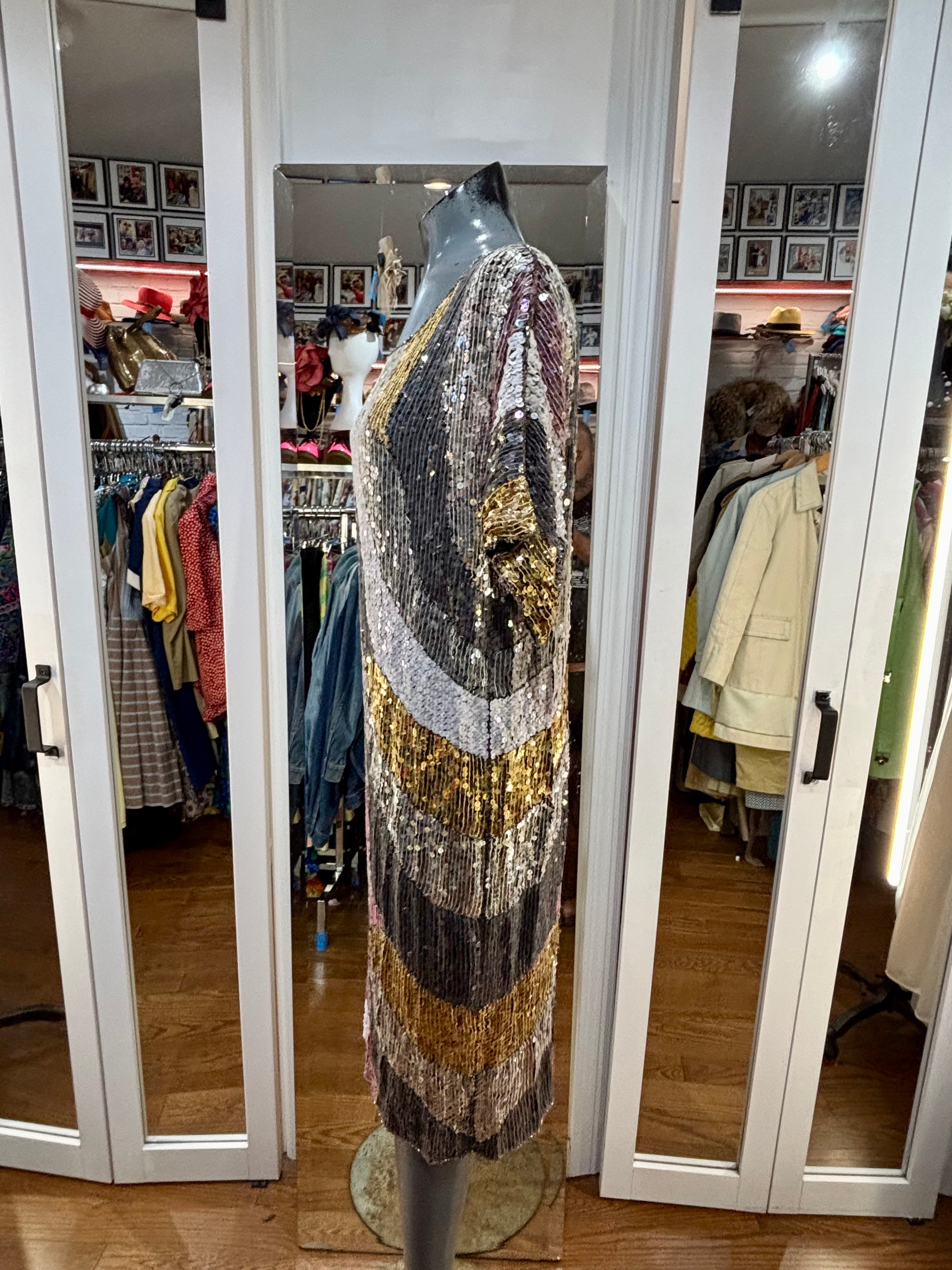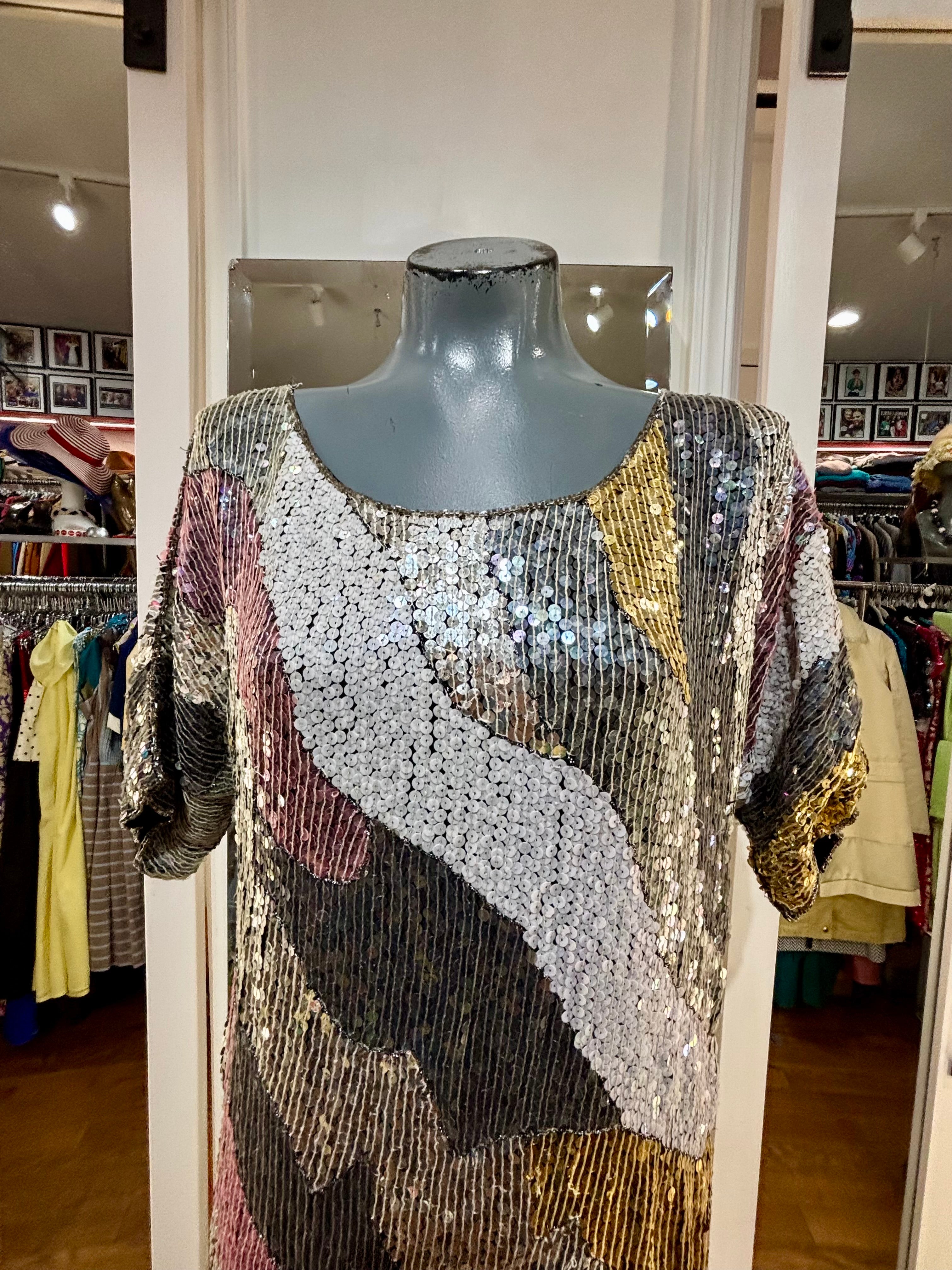 80’s Gray Multicolored Abstract Sequins Short Sleeve Dress By Joseph Le Bon