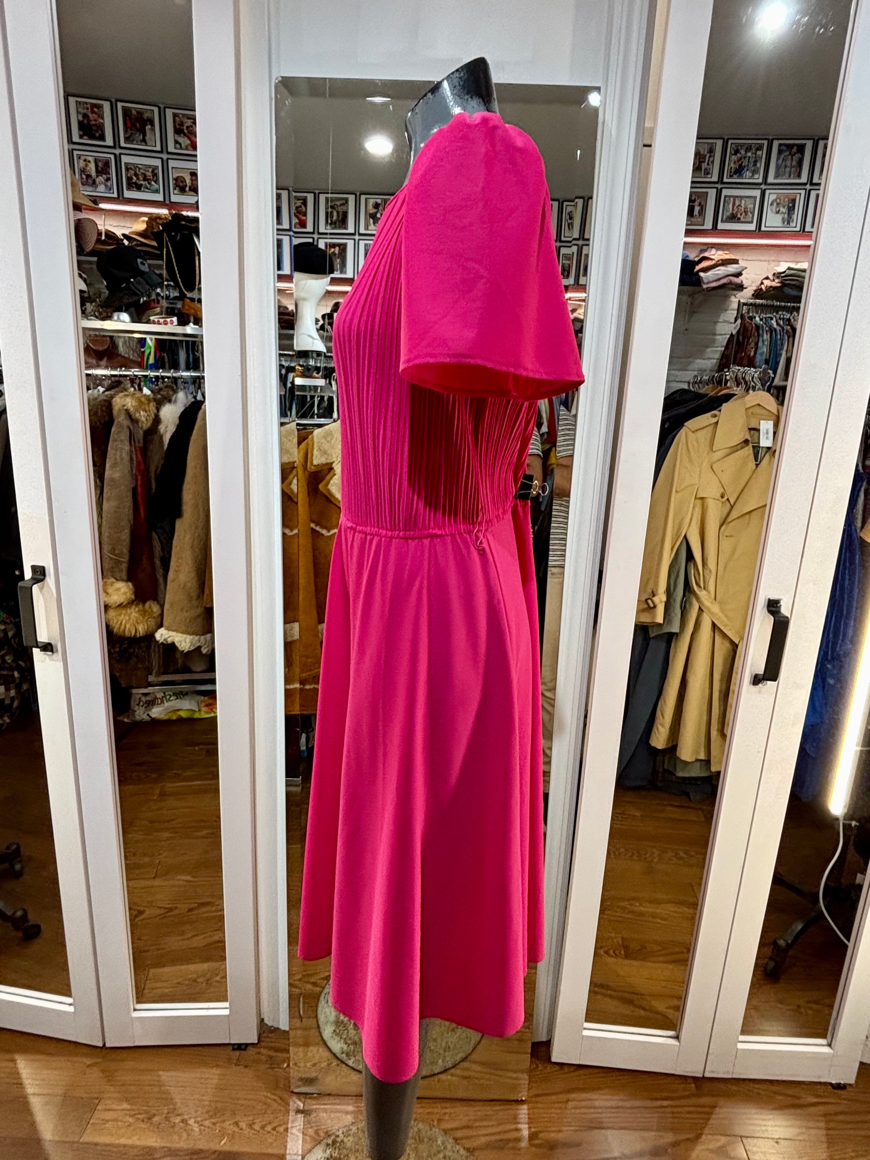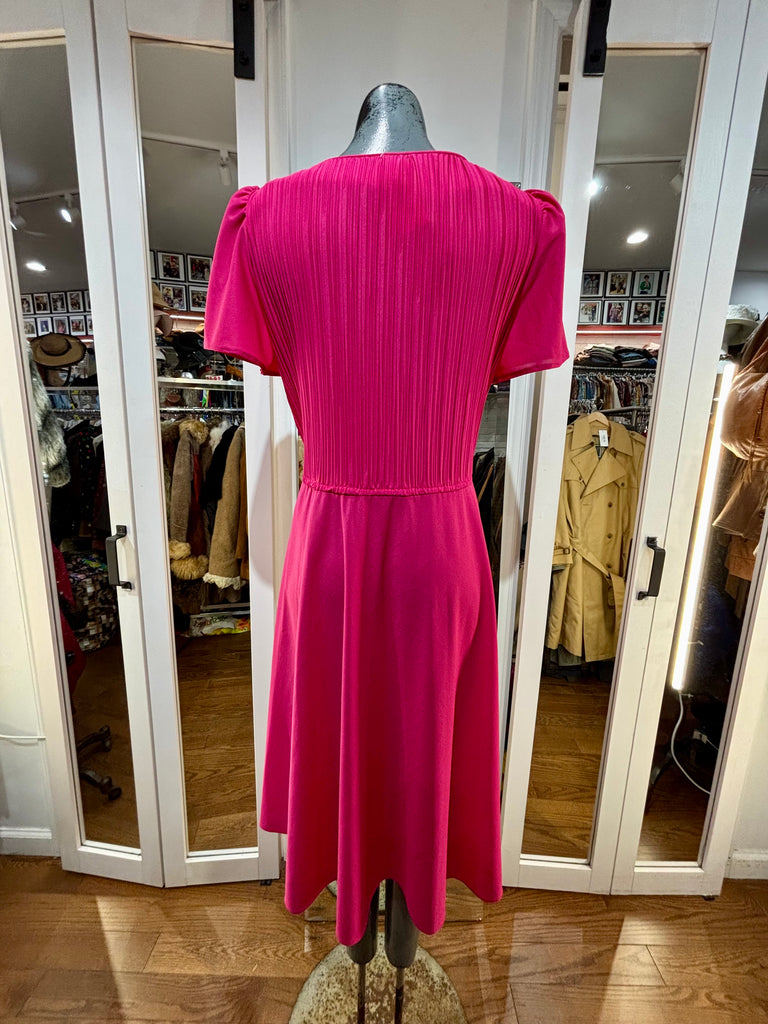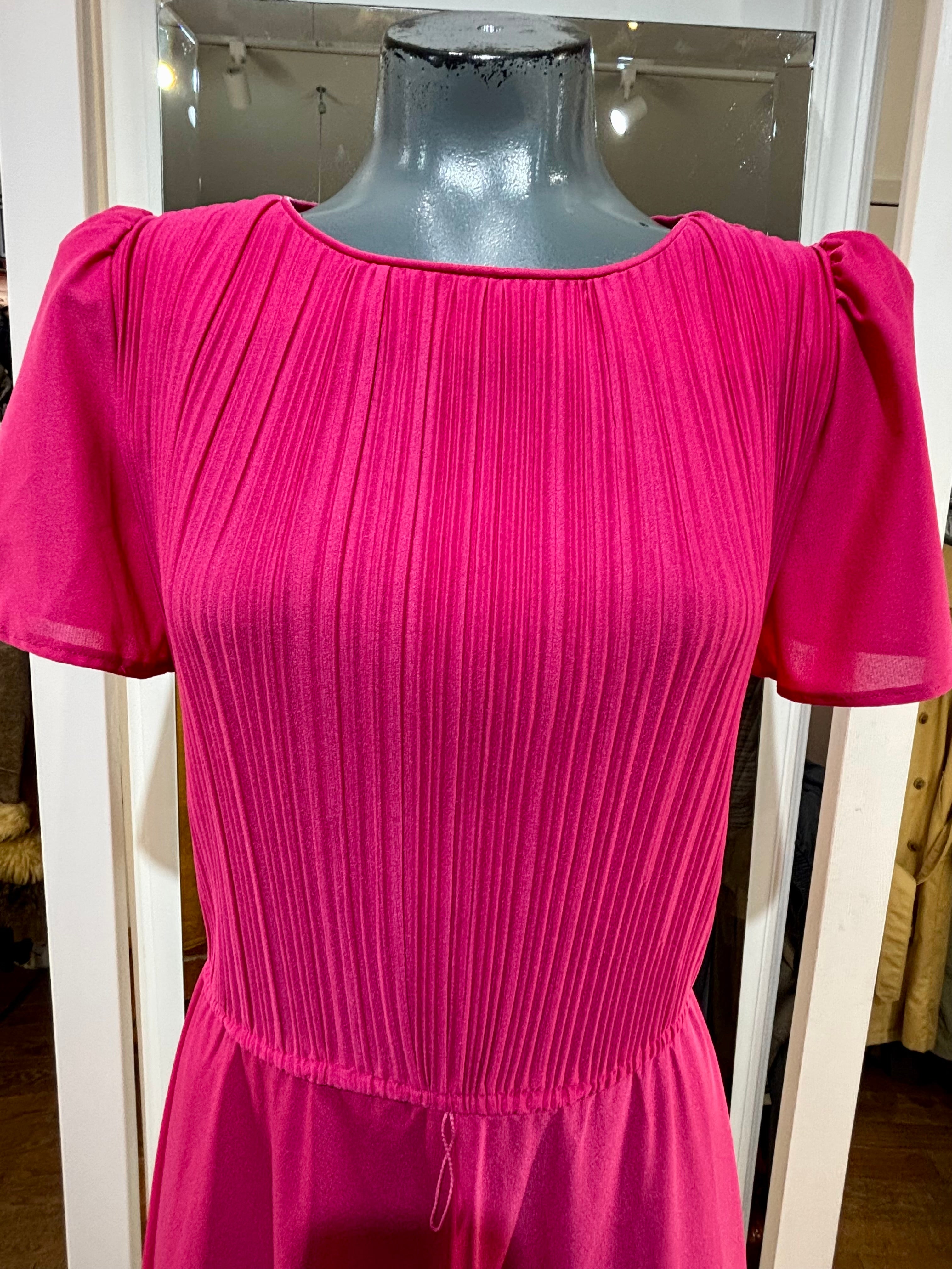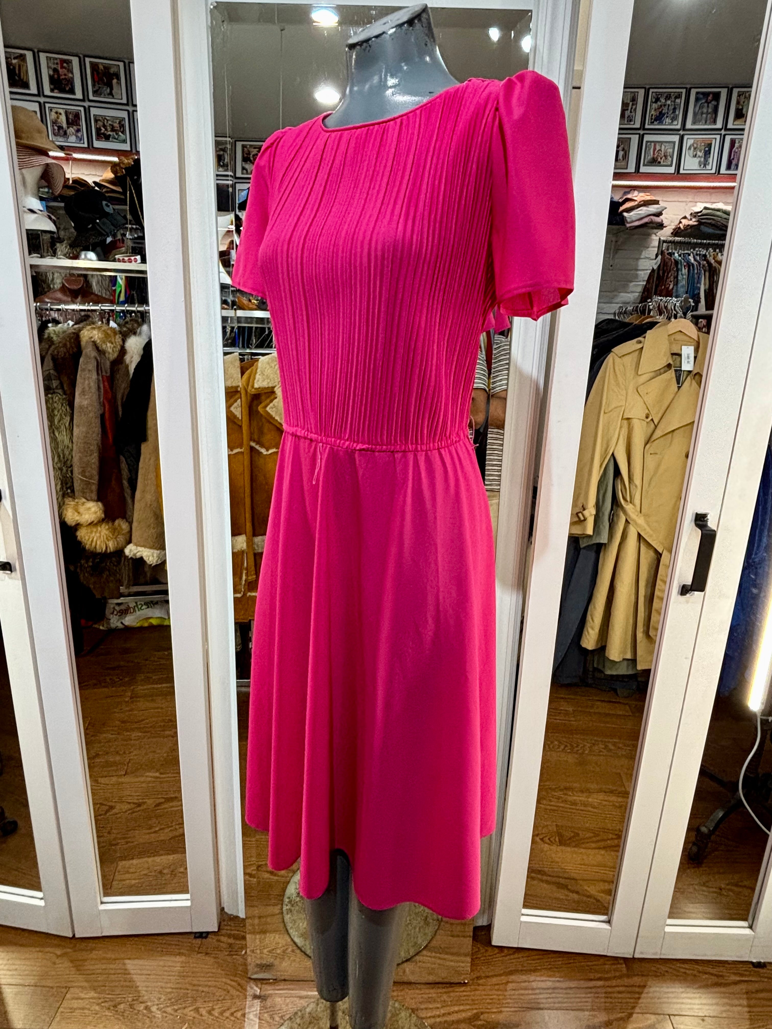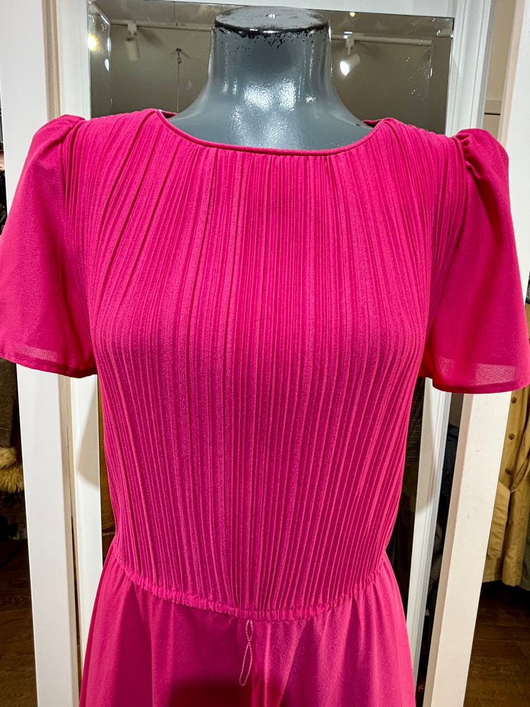 80’s Hot Pink Cap Ruffle Sleeve Dress By S. L. Petites