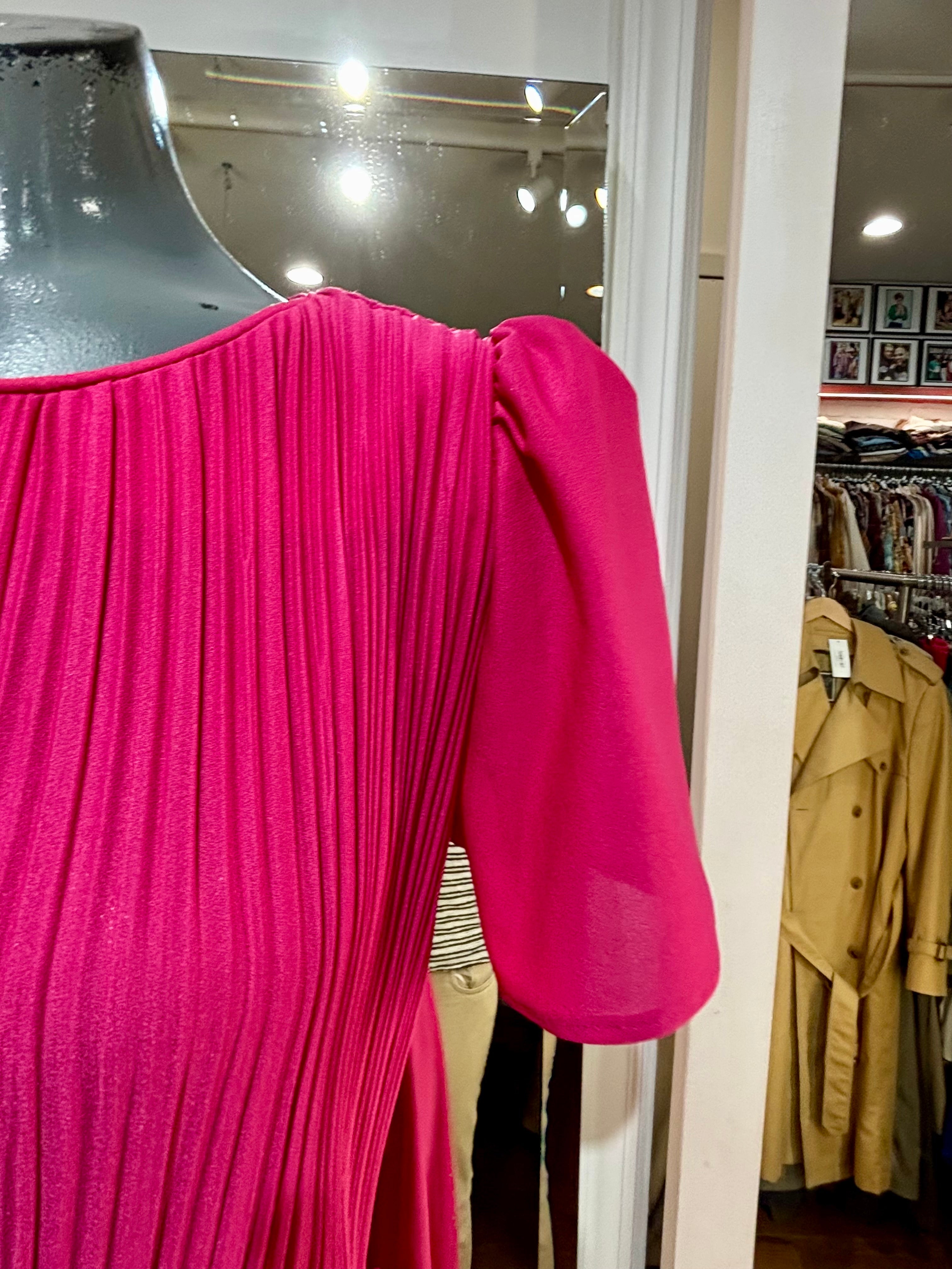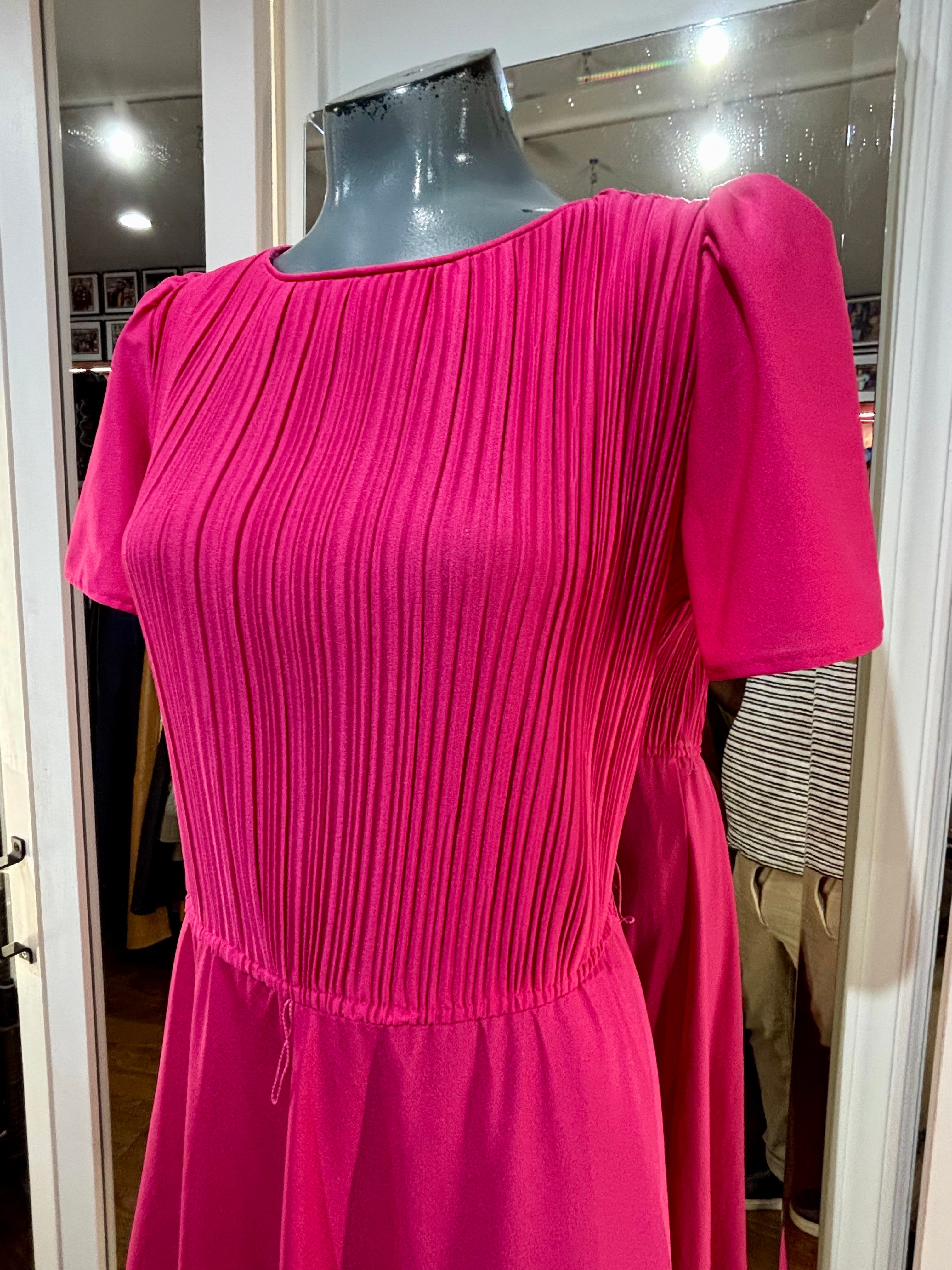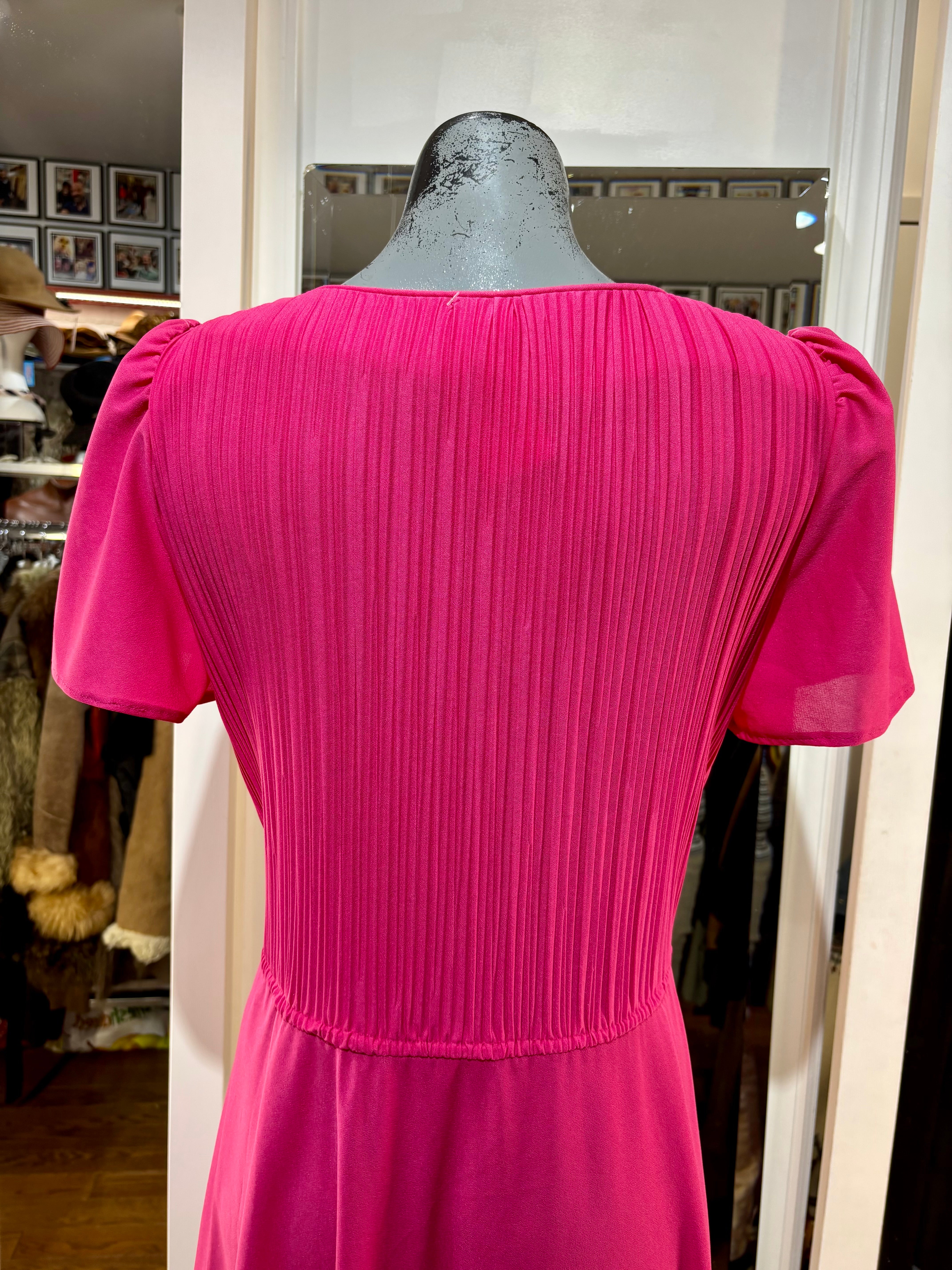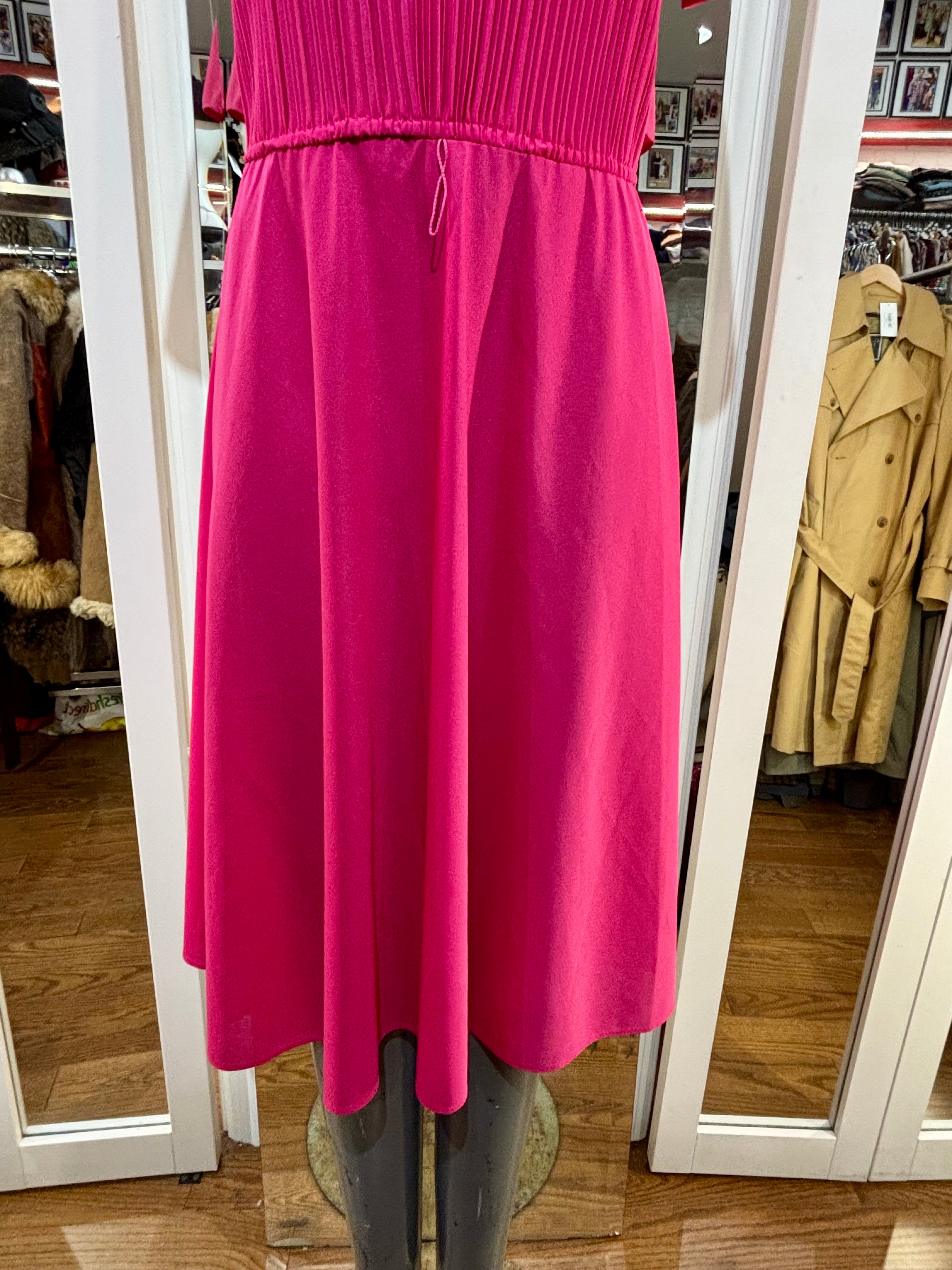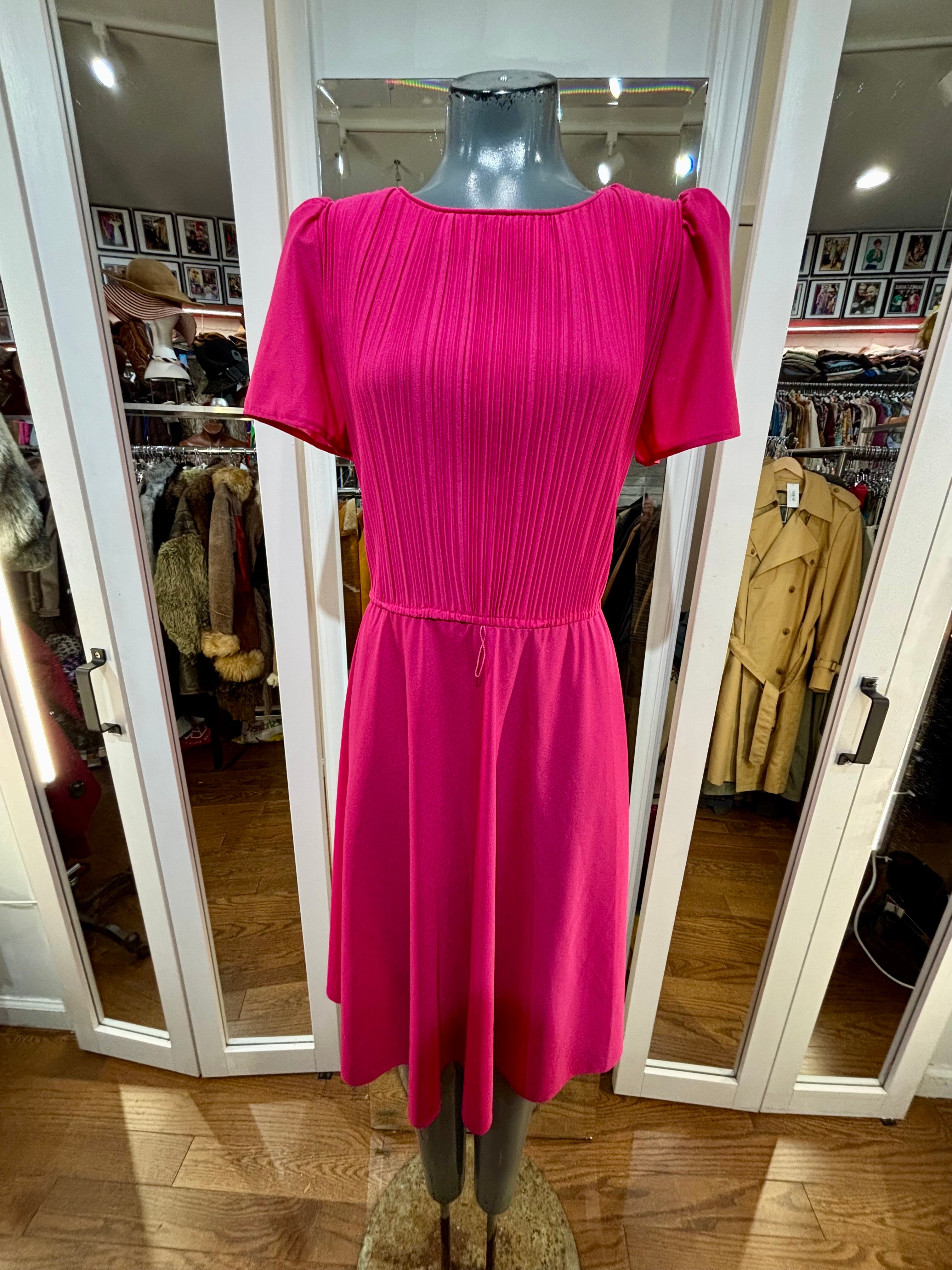 80’s Hot Pink Cap Ruffle Sleeve Dress By S. L. Petites