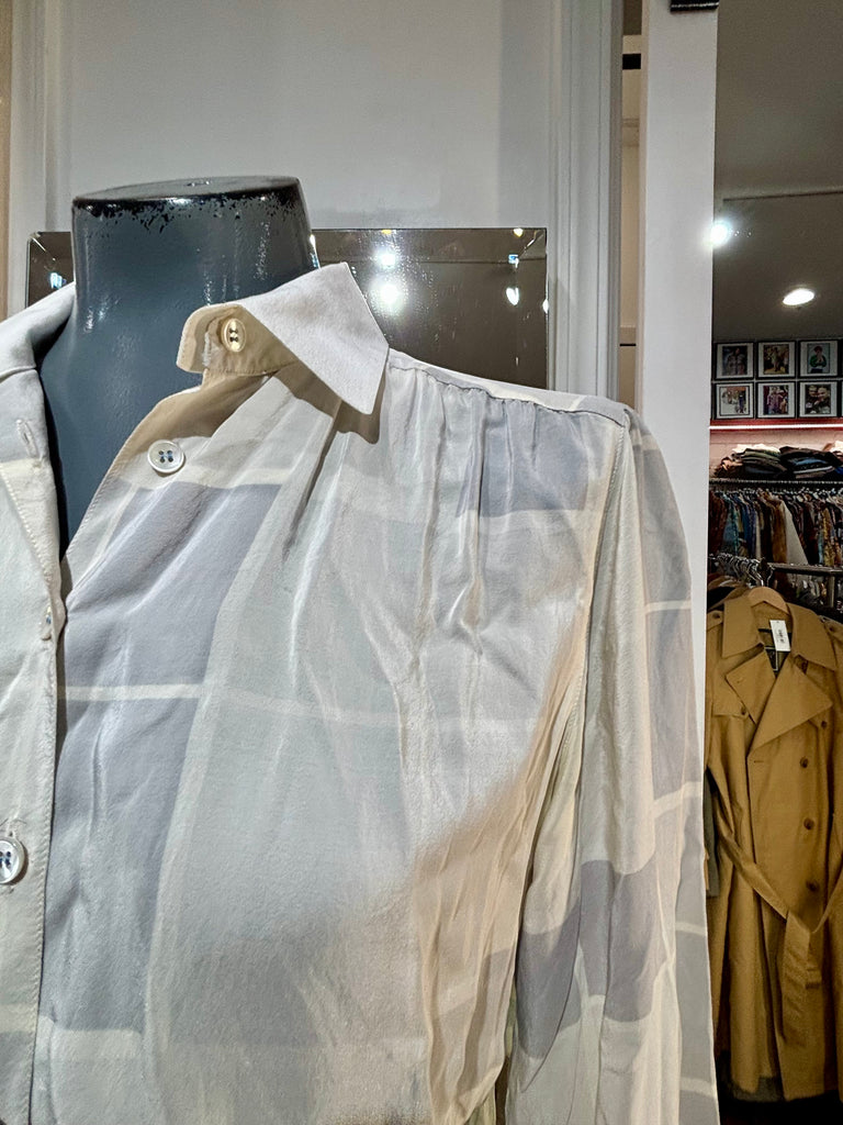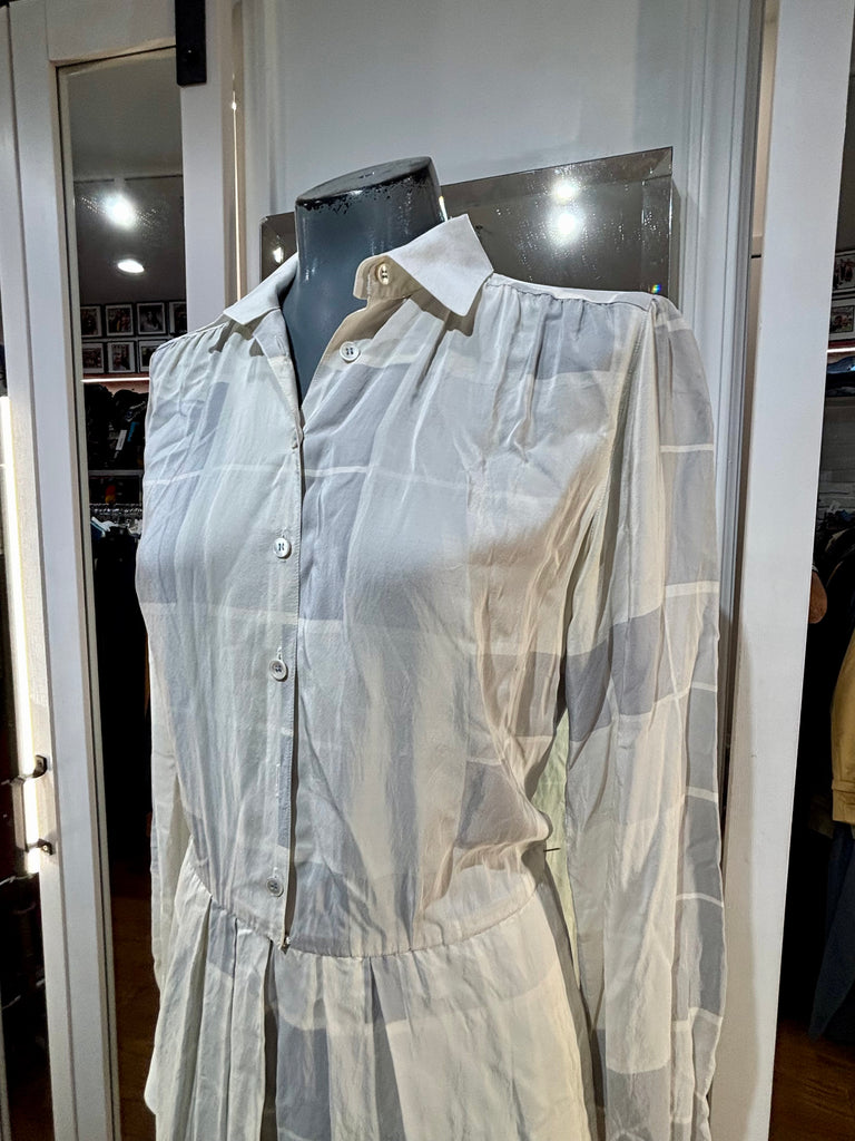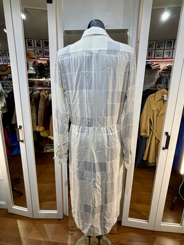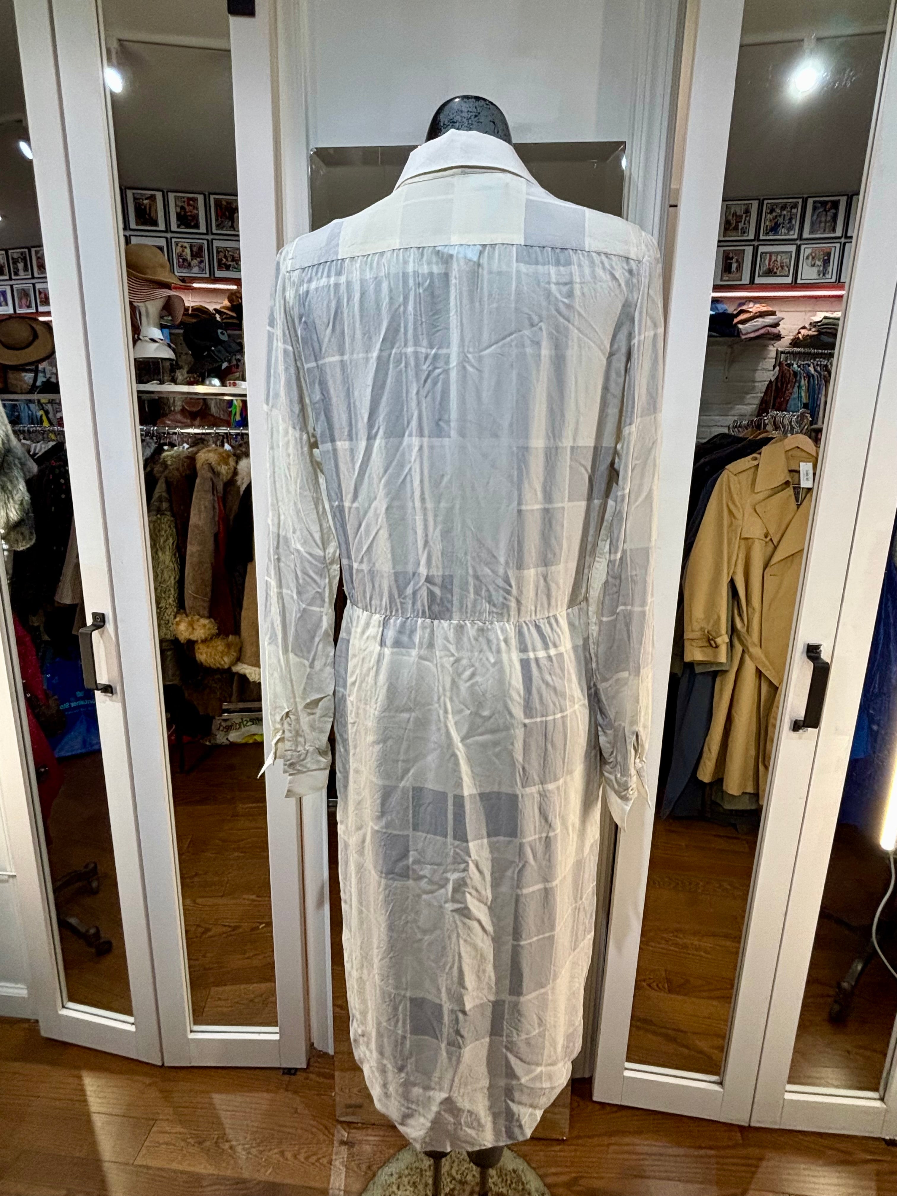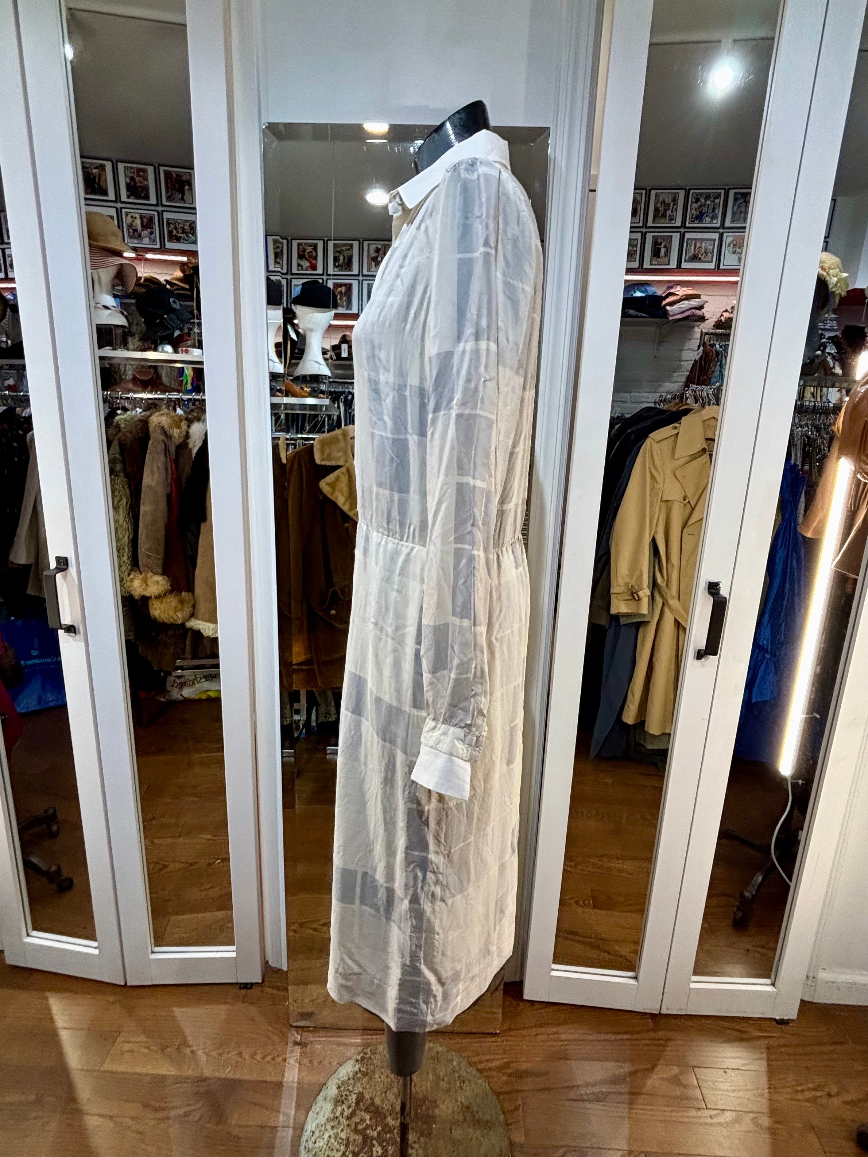 60’s Light Gray And Off White Square Prints Long Sleeve Dress