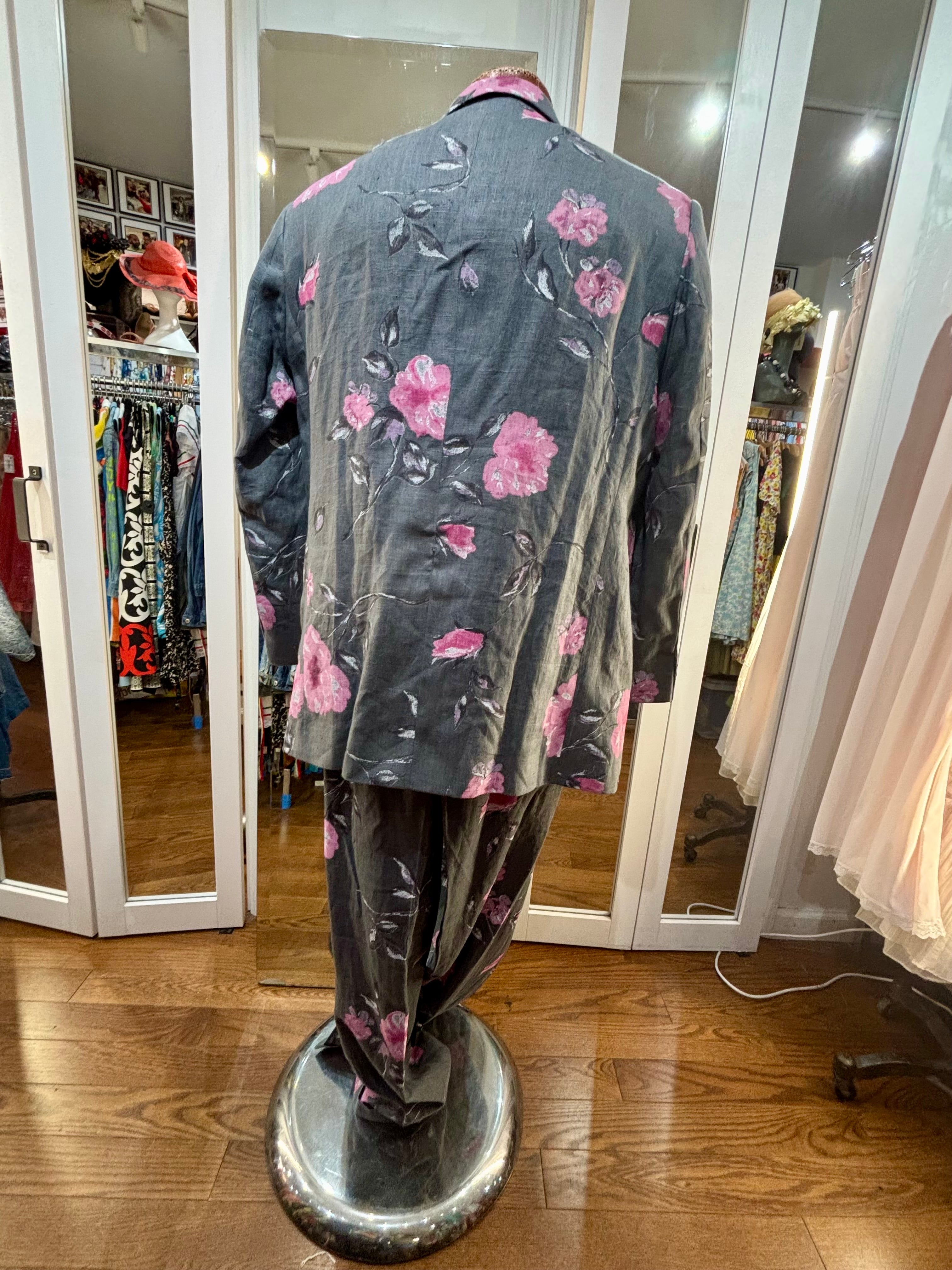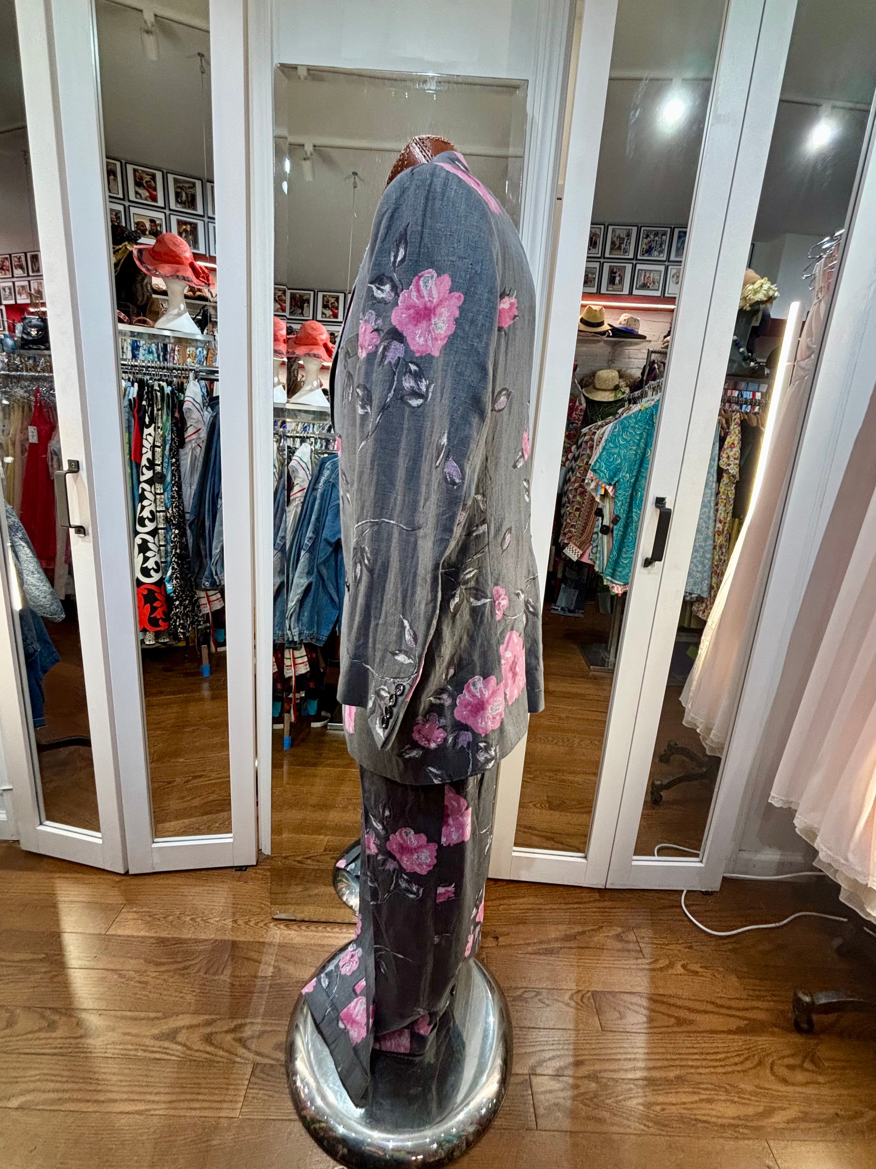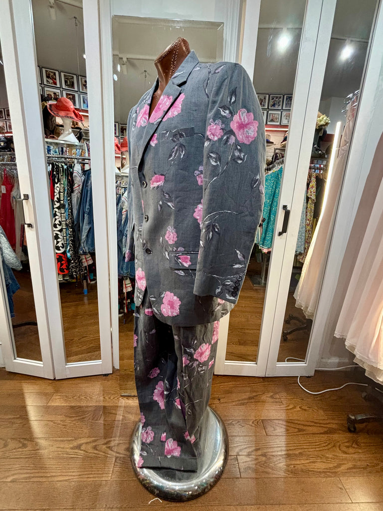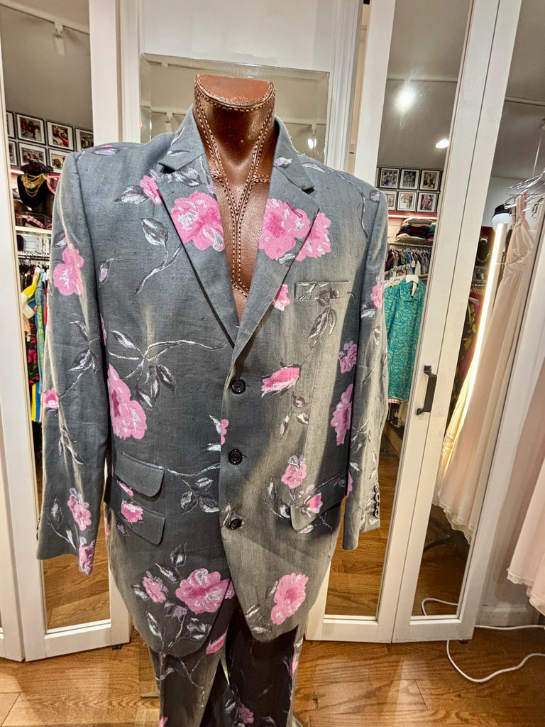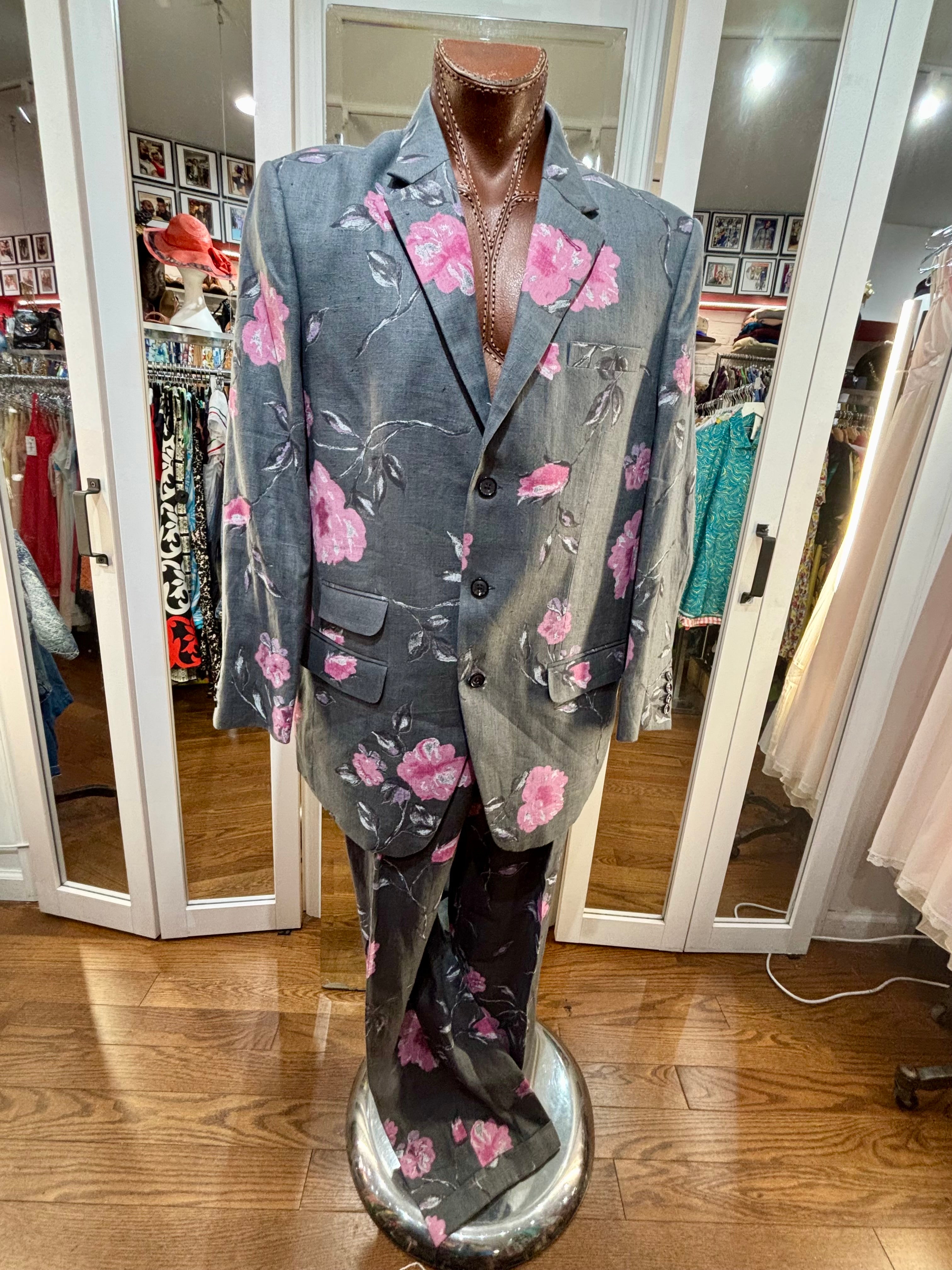 00’s Custom Collection Gray With Pink Flowers print 2 Piece Suit Set By Pablo Van Dijk