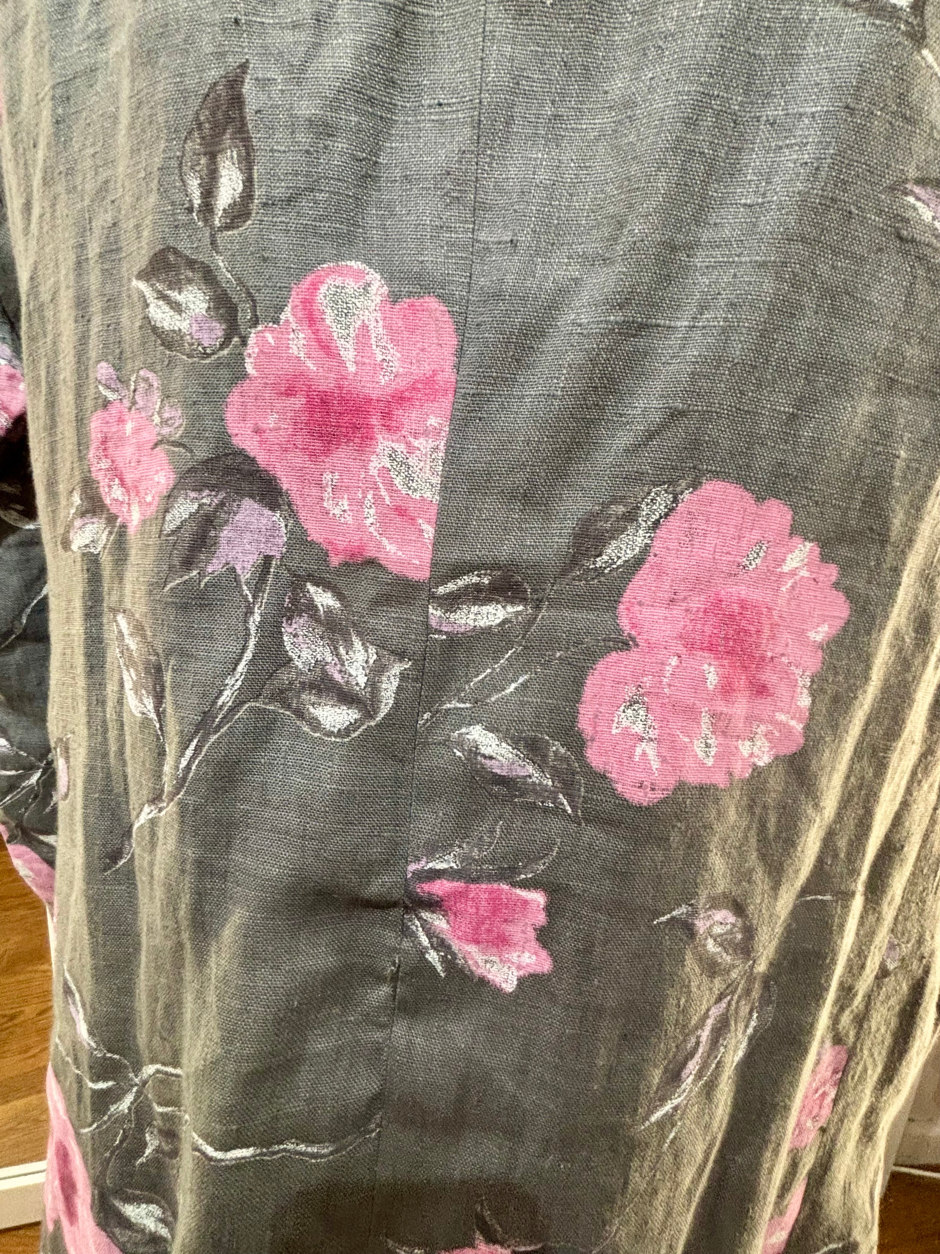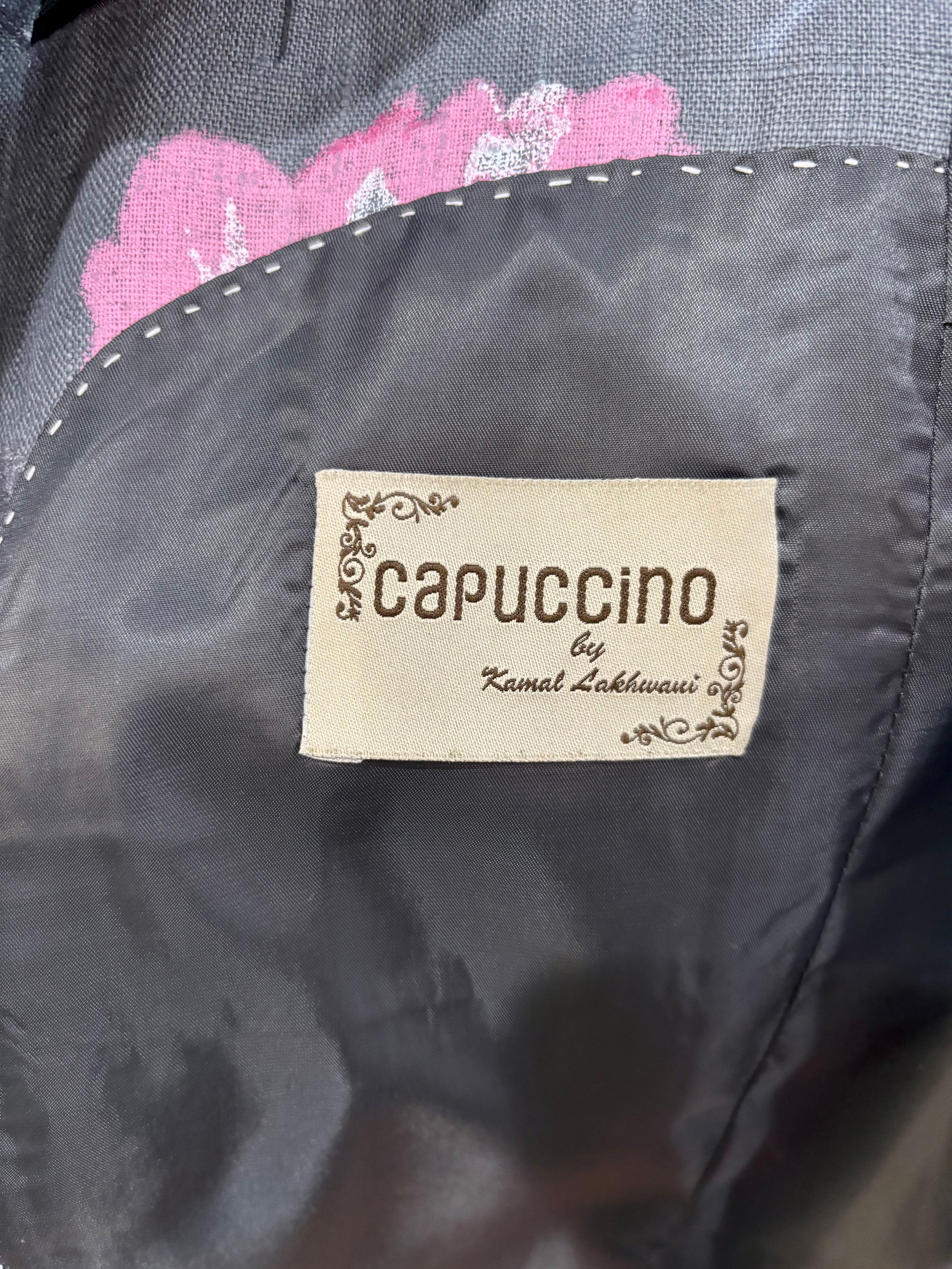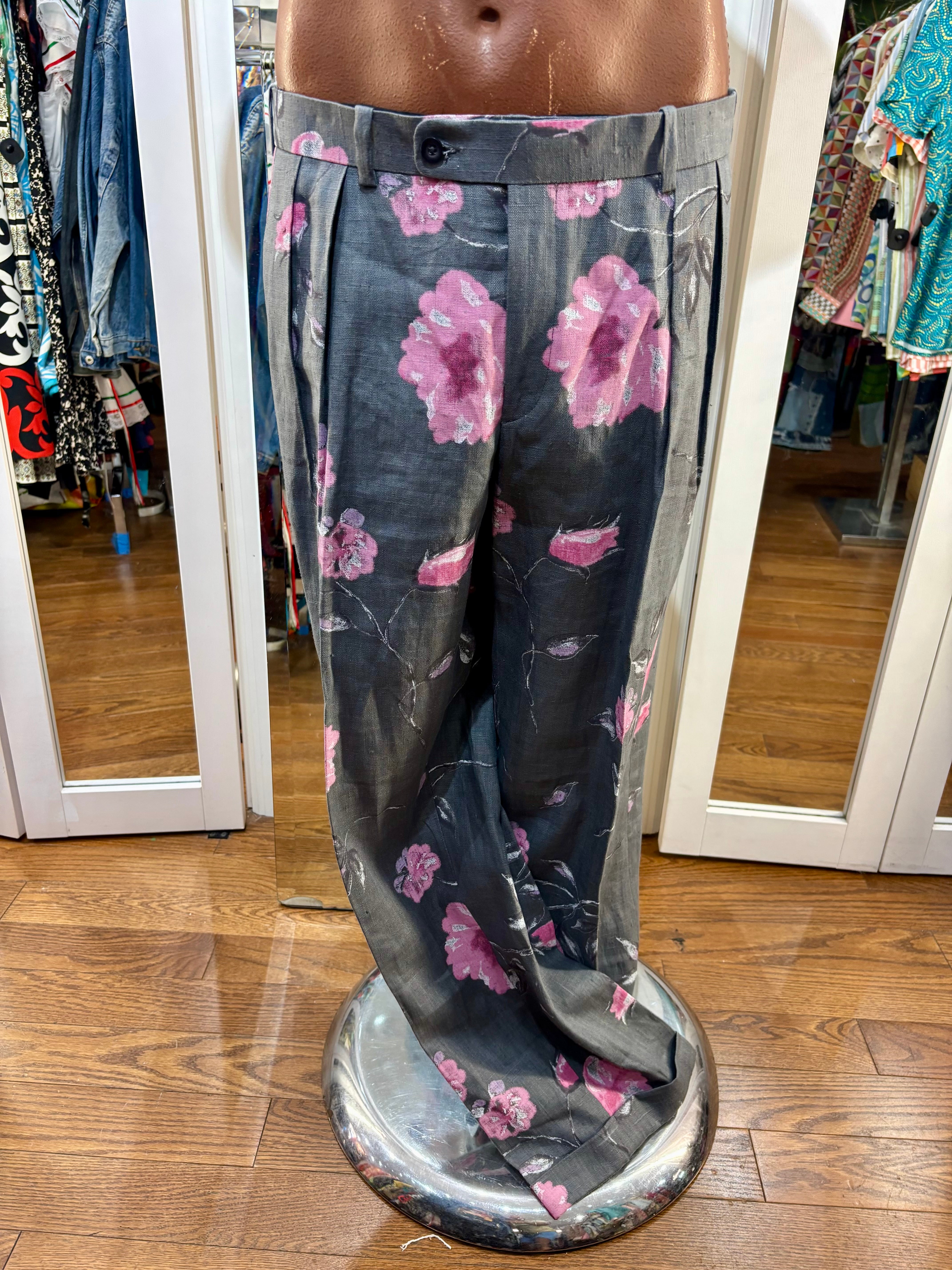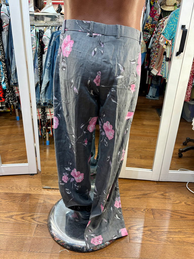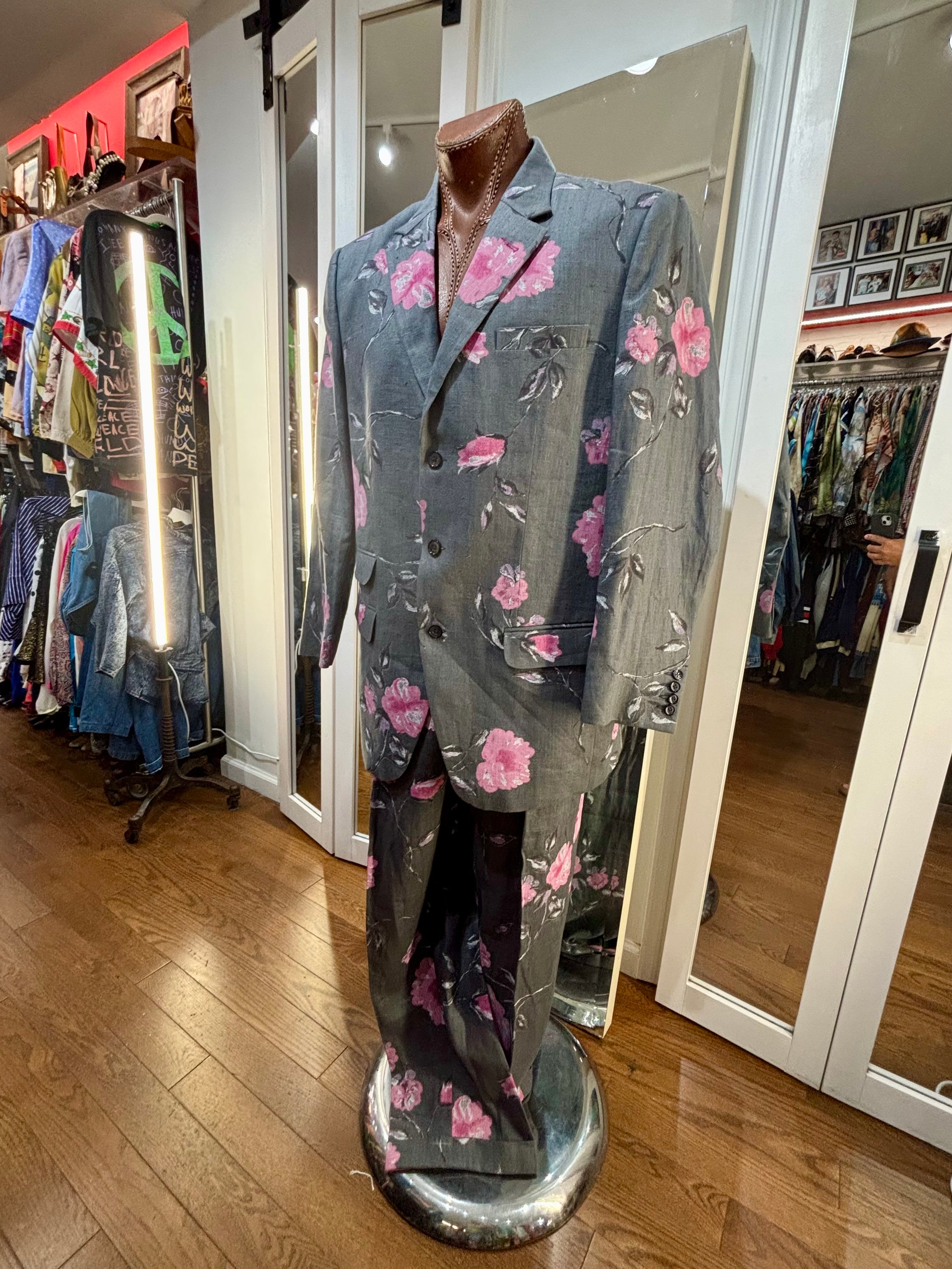 00’s Custom Collection Gray With Pink Flowers print 2 Piece Suit Set By Pablo Van Dijk