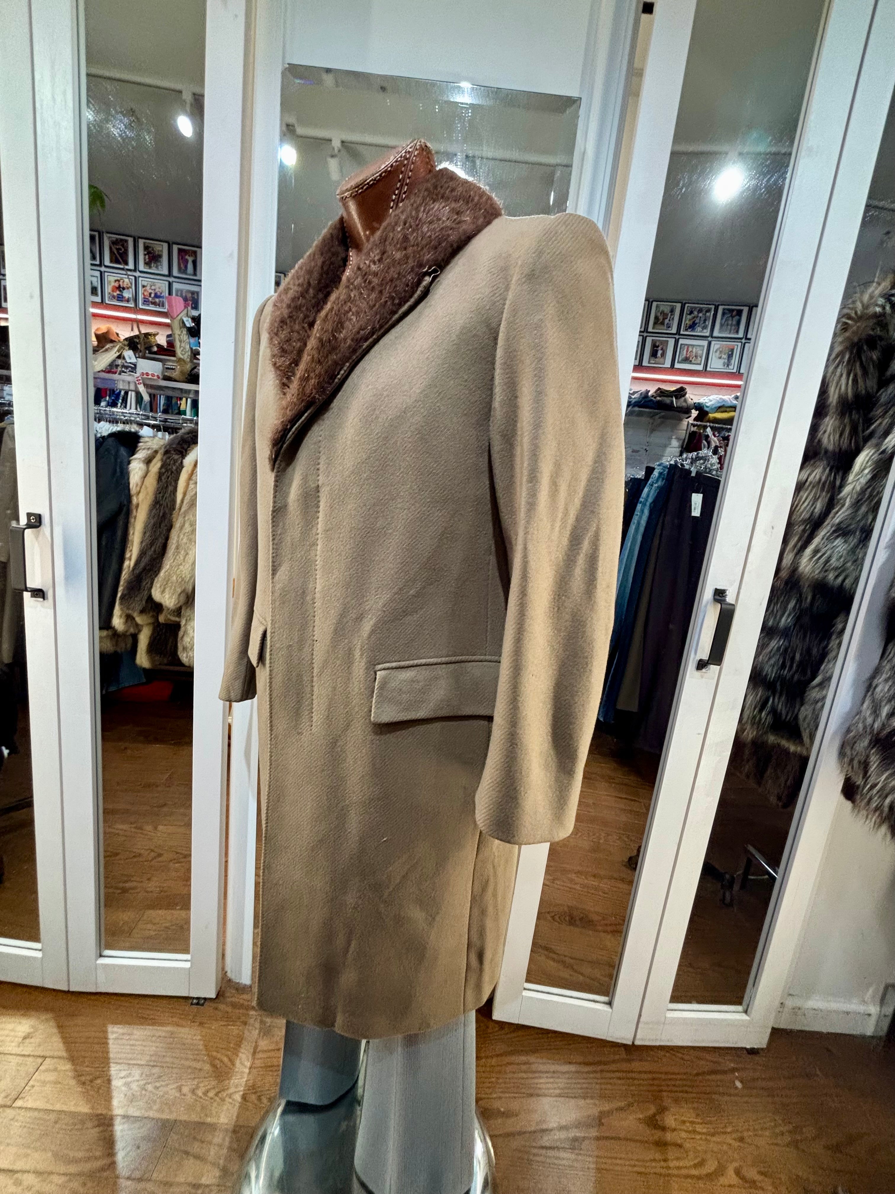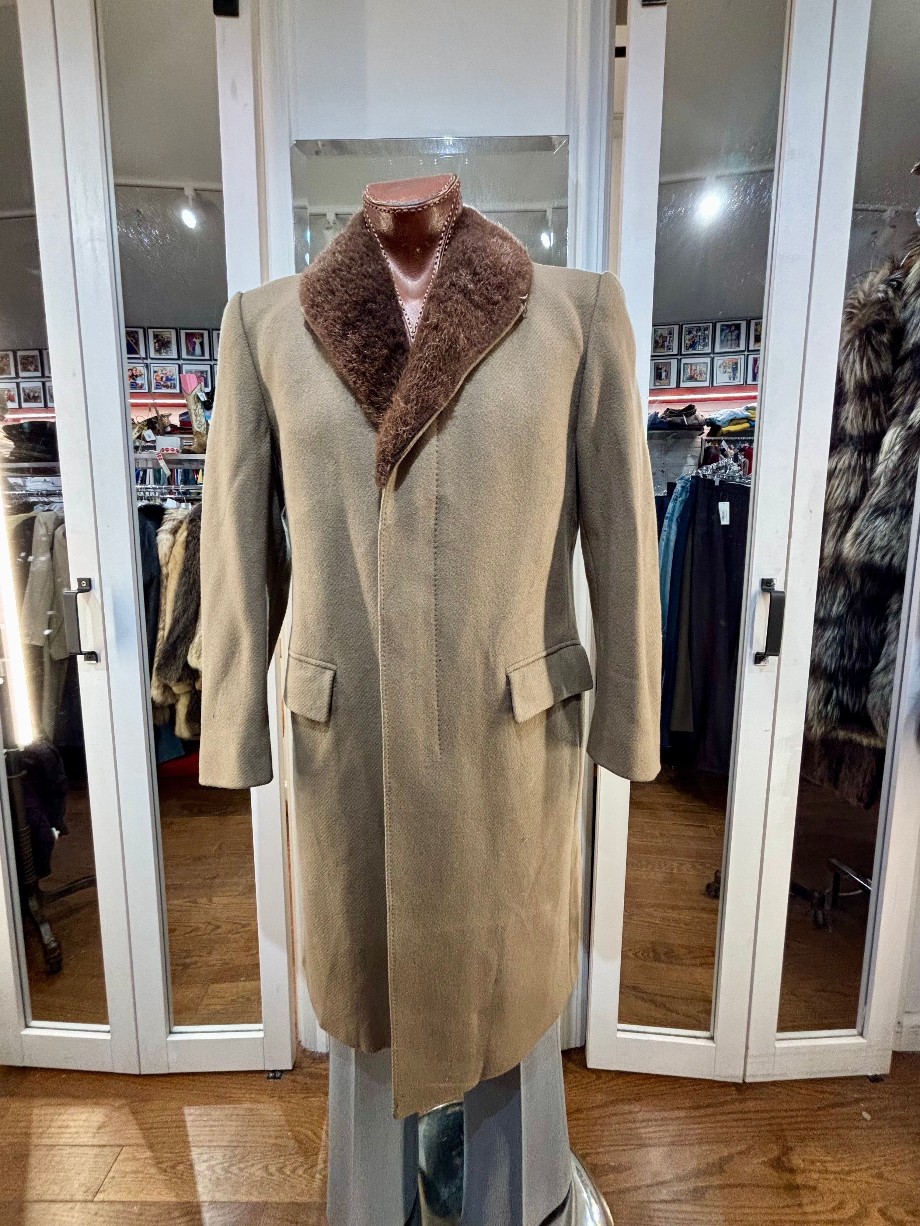 60’s Light Brown Wool Overcoat With Fur Collar By Vohl & Meyer