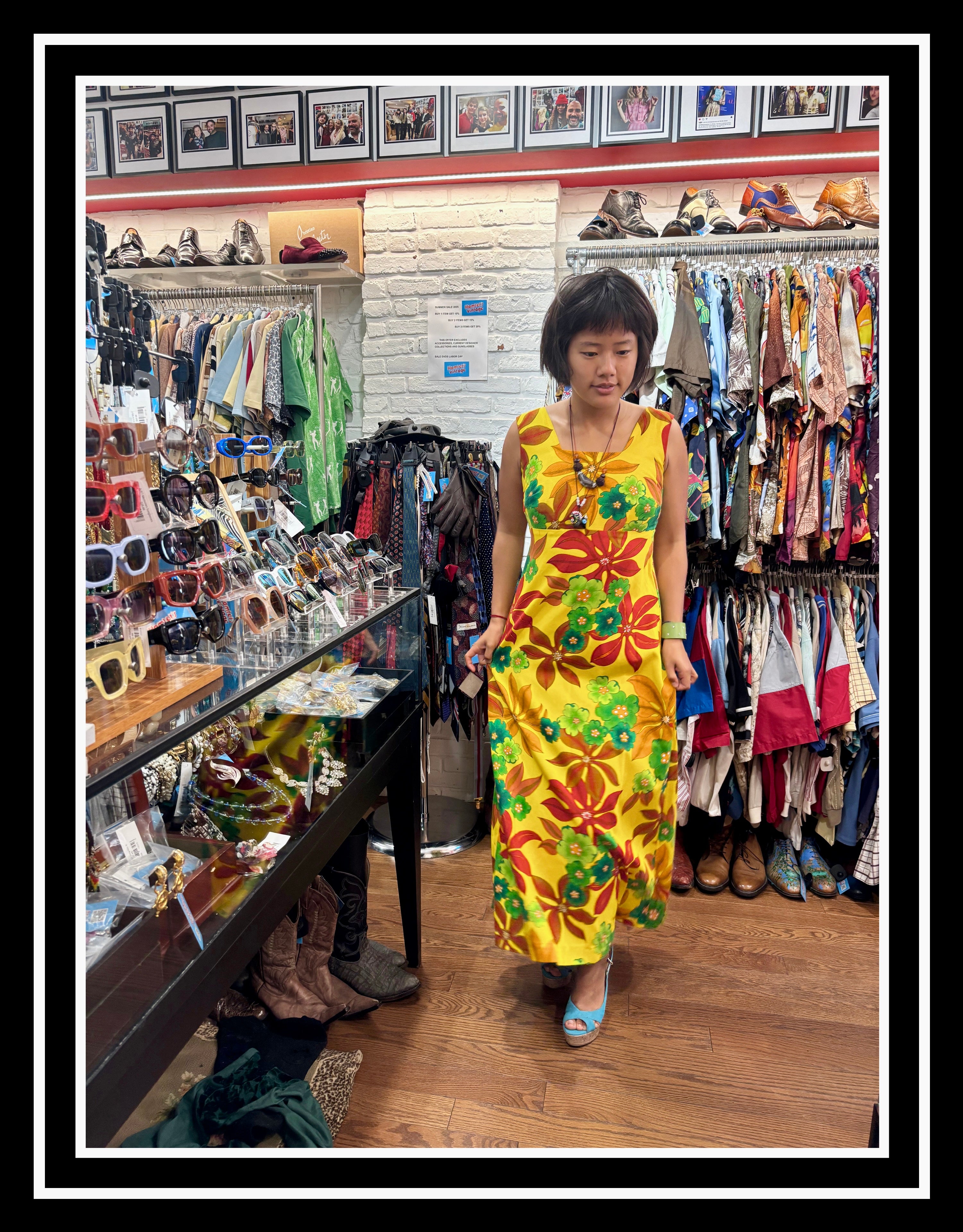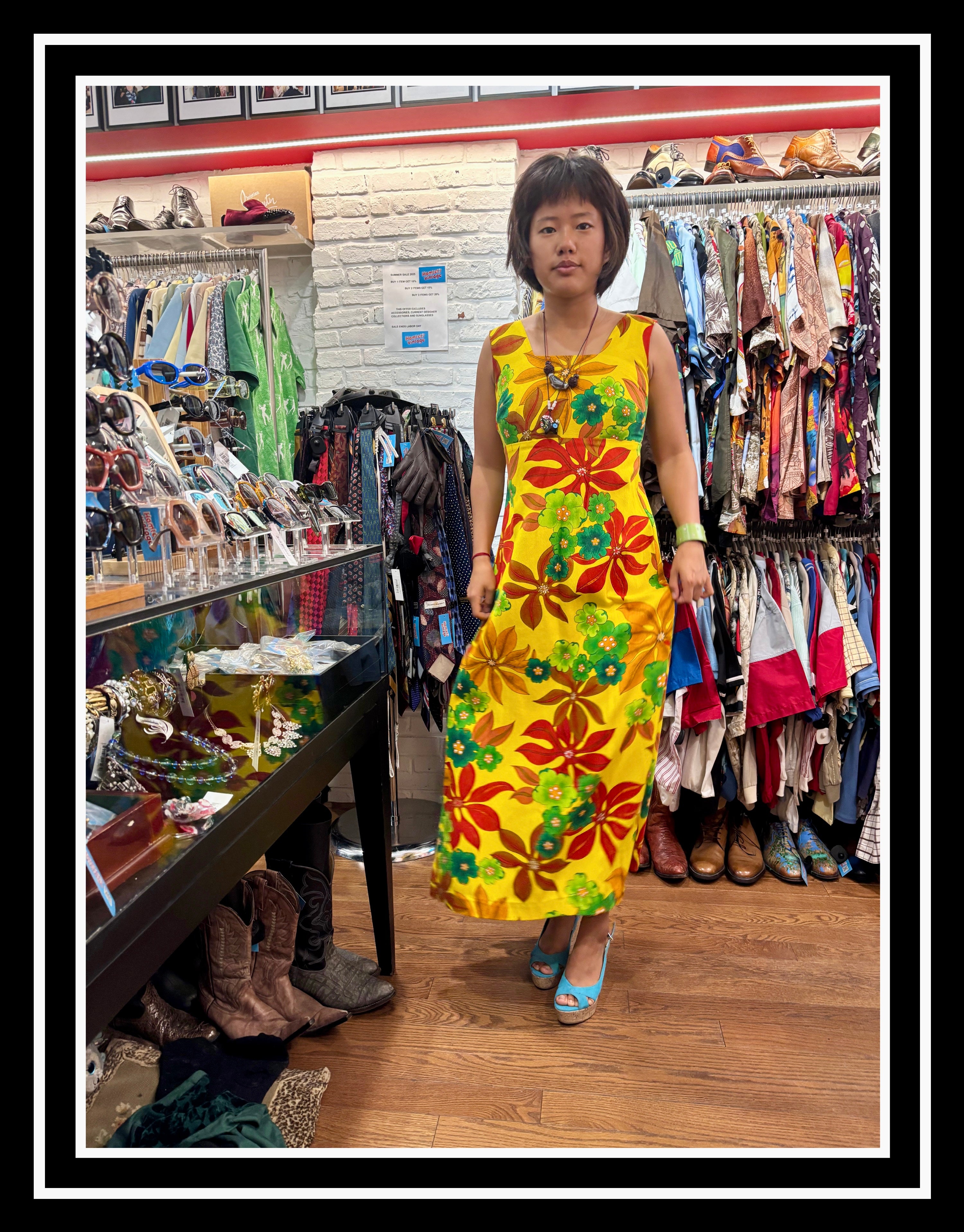 60s/70s Green Red And Yellow Floral Maxi Dress