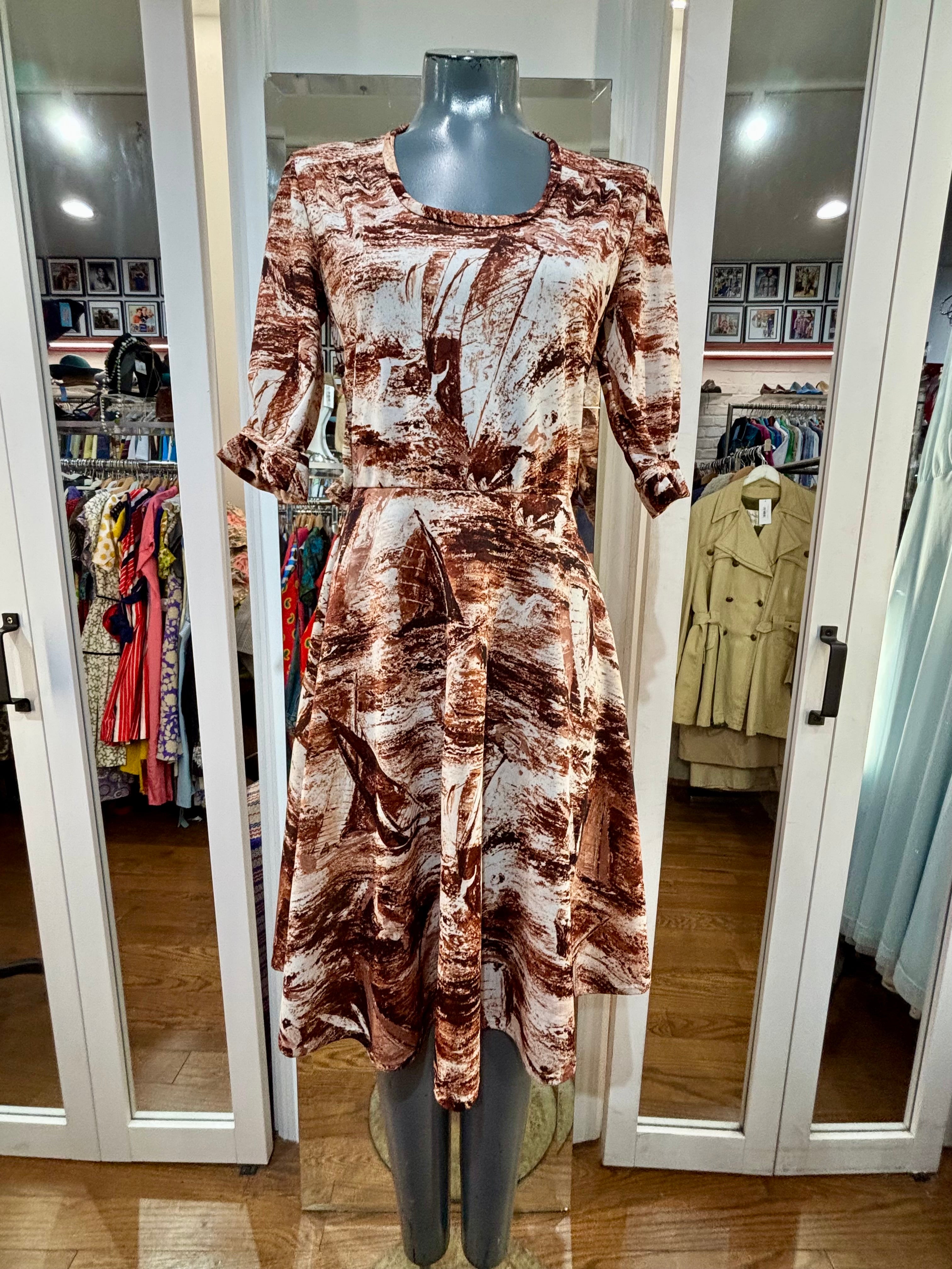60s - Boat Print Dress With 3/4 Sleeves By Momentum