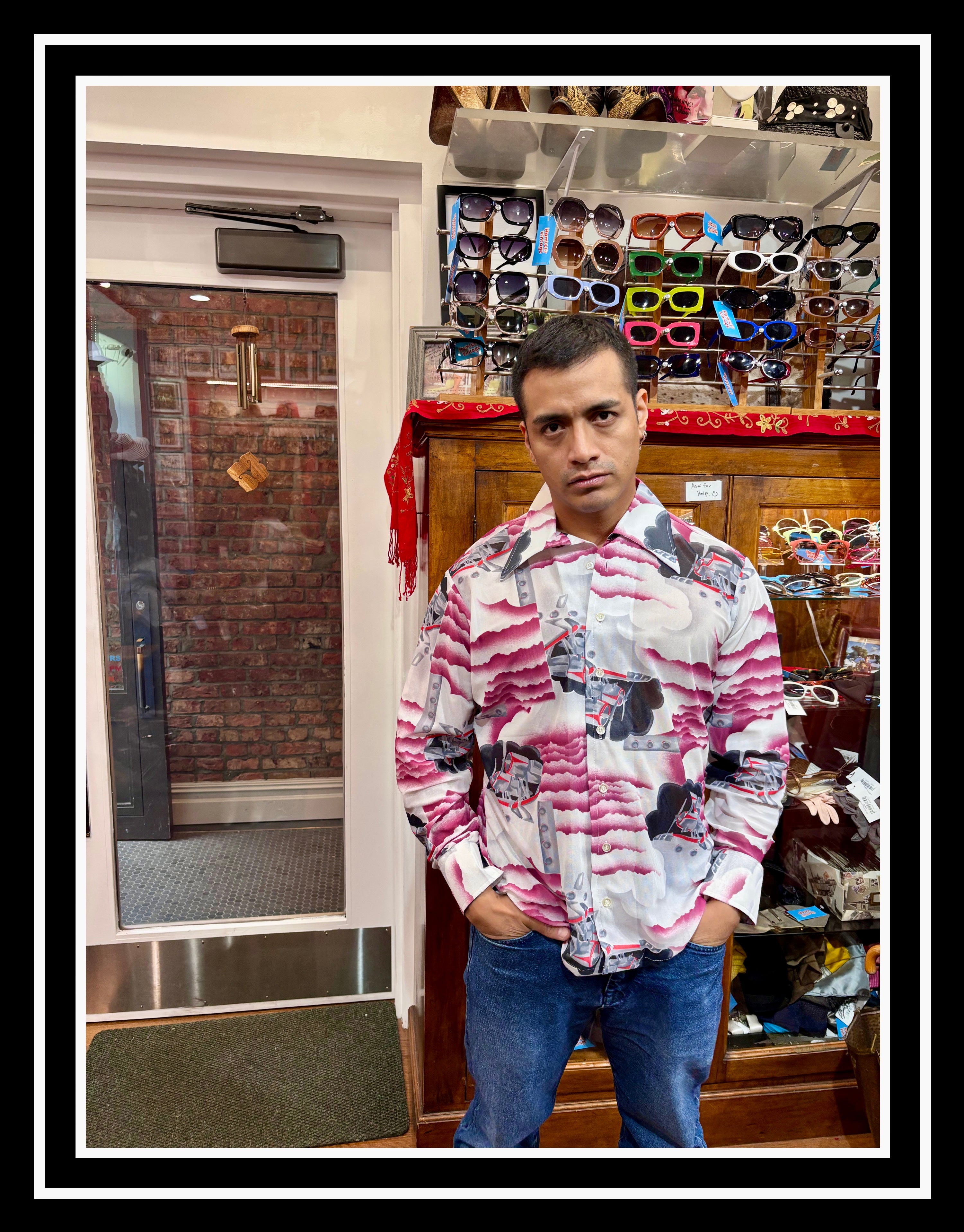 70’s Airplanes Sheer Print with Long Sleeve Shirt